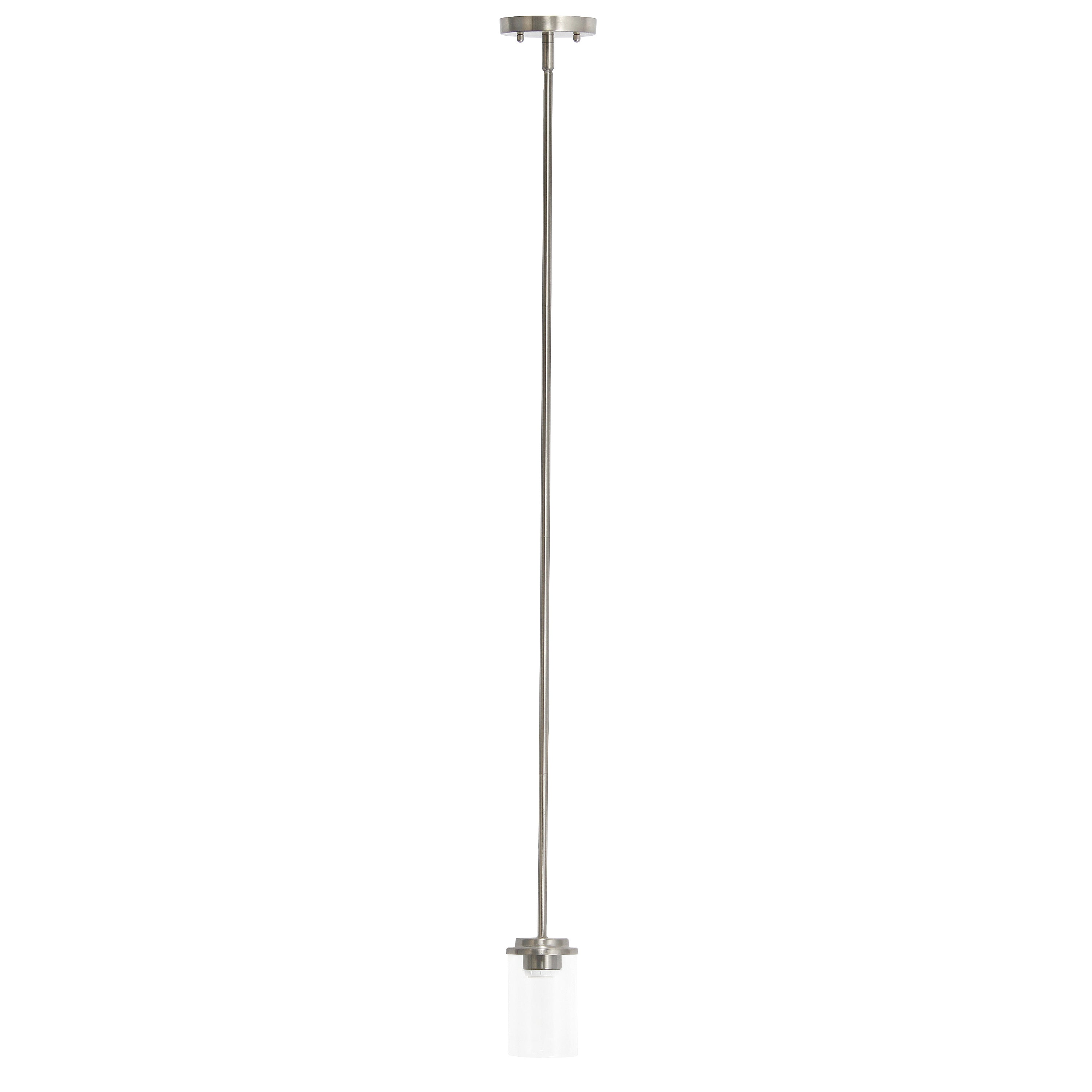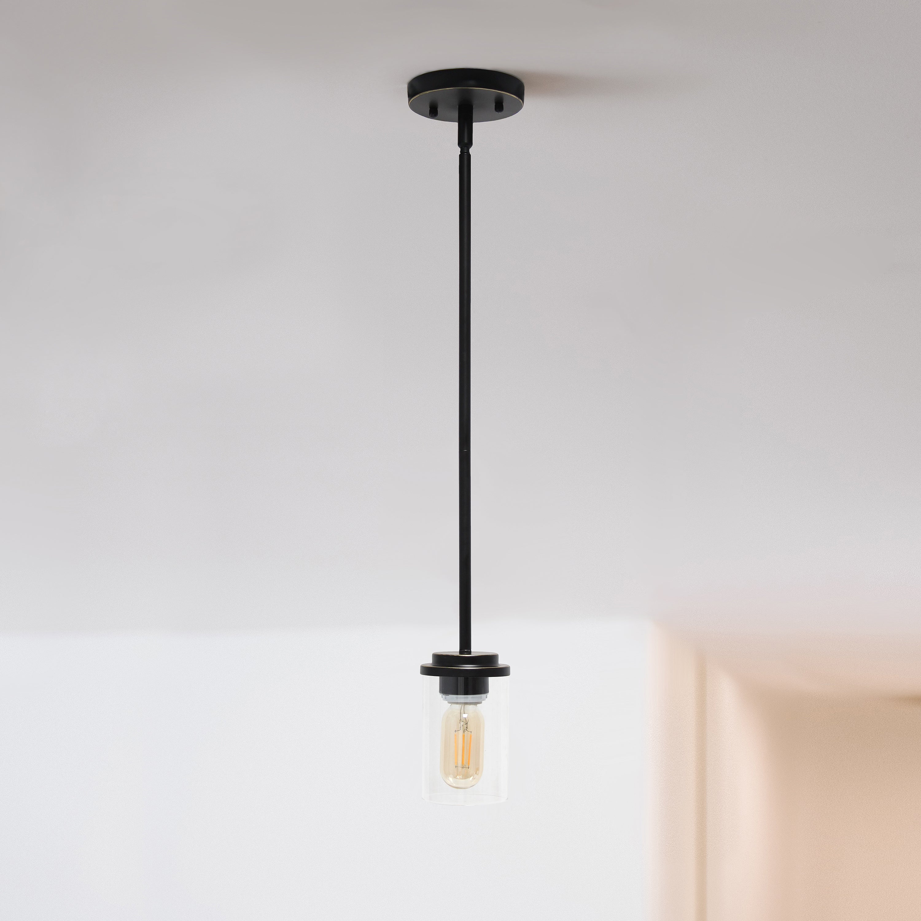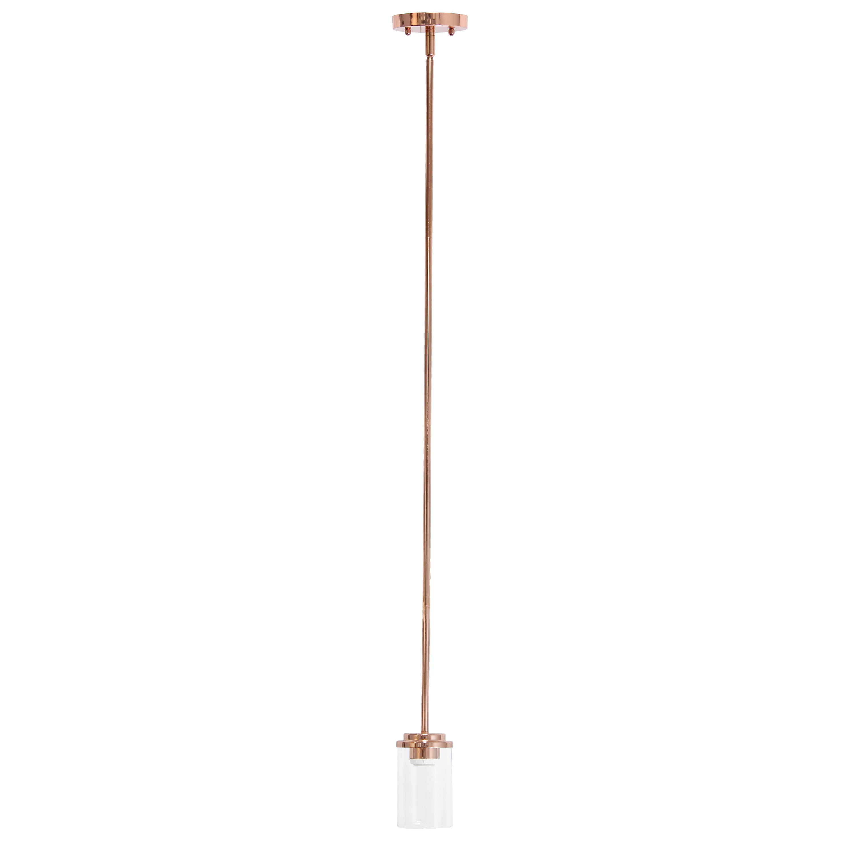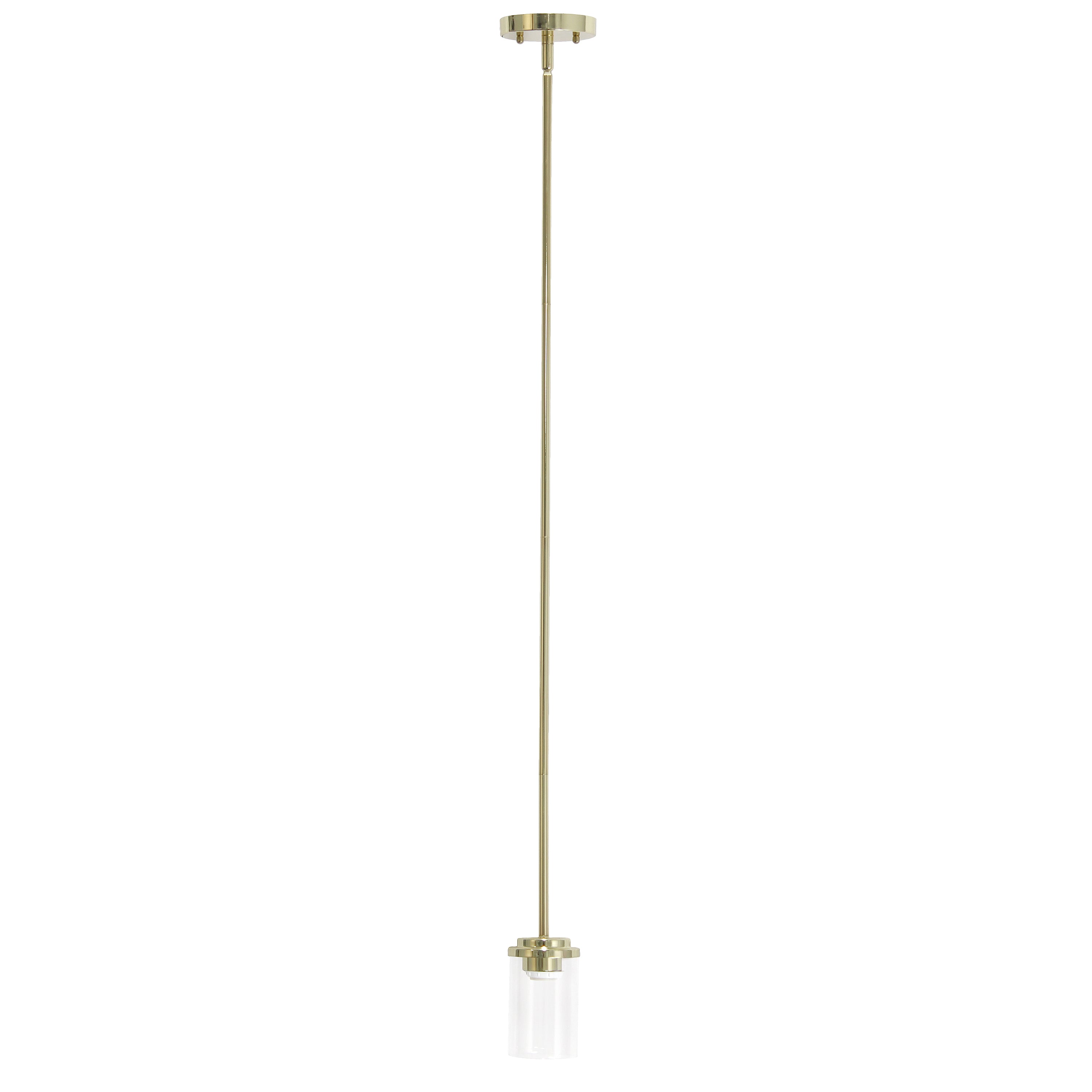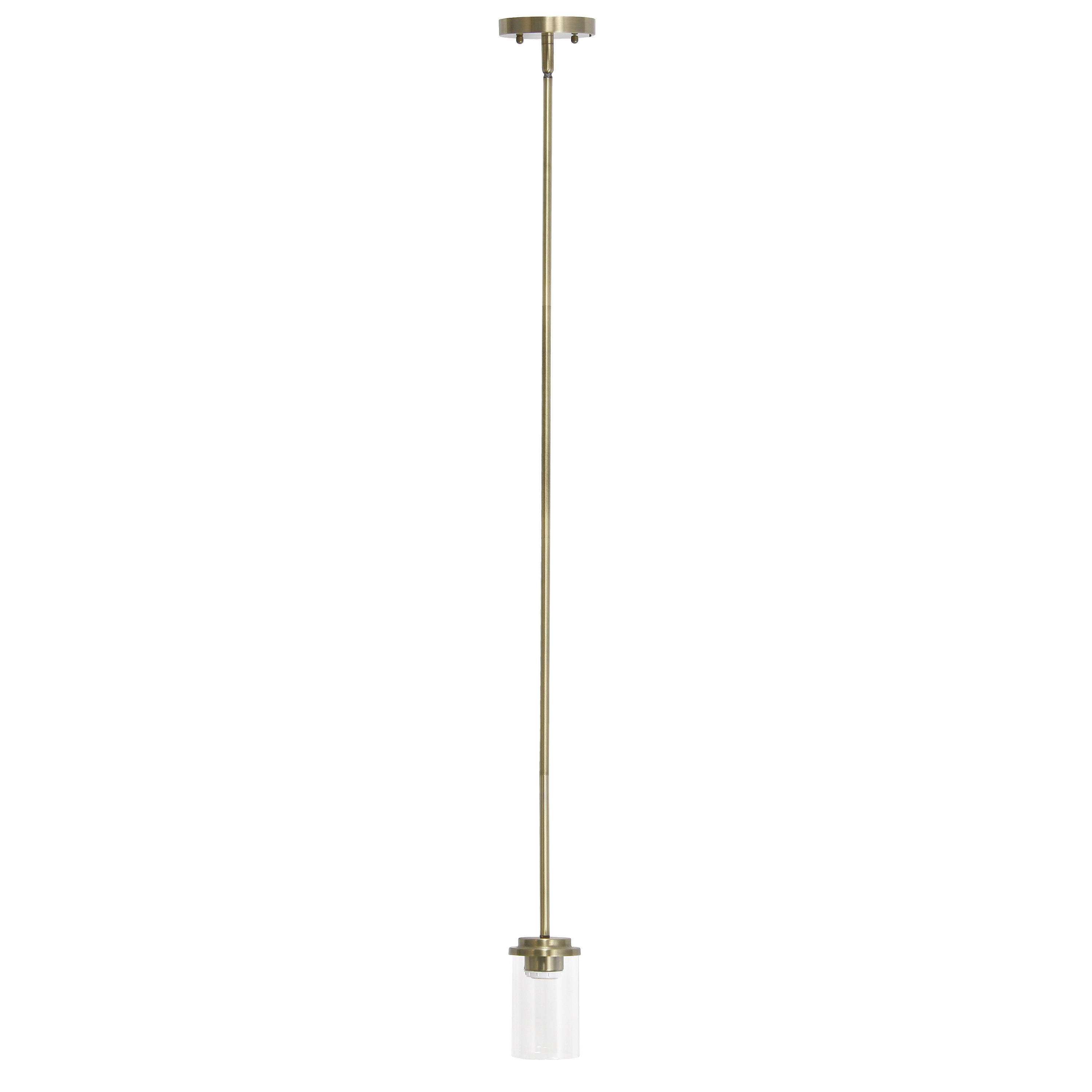 This simple yet stylish one-light pendant will beautifully illuminate your kitchen island, foyer or hallway with a charming glow. Made of smooth metal details and a clear cylindrical glass shade, this style pendant can easily work with any contemporary, modern, farmhouse or industrial decor.