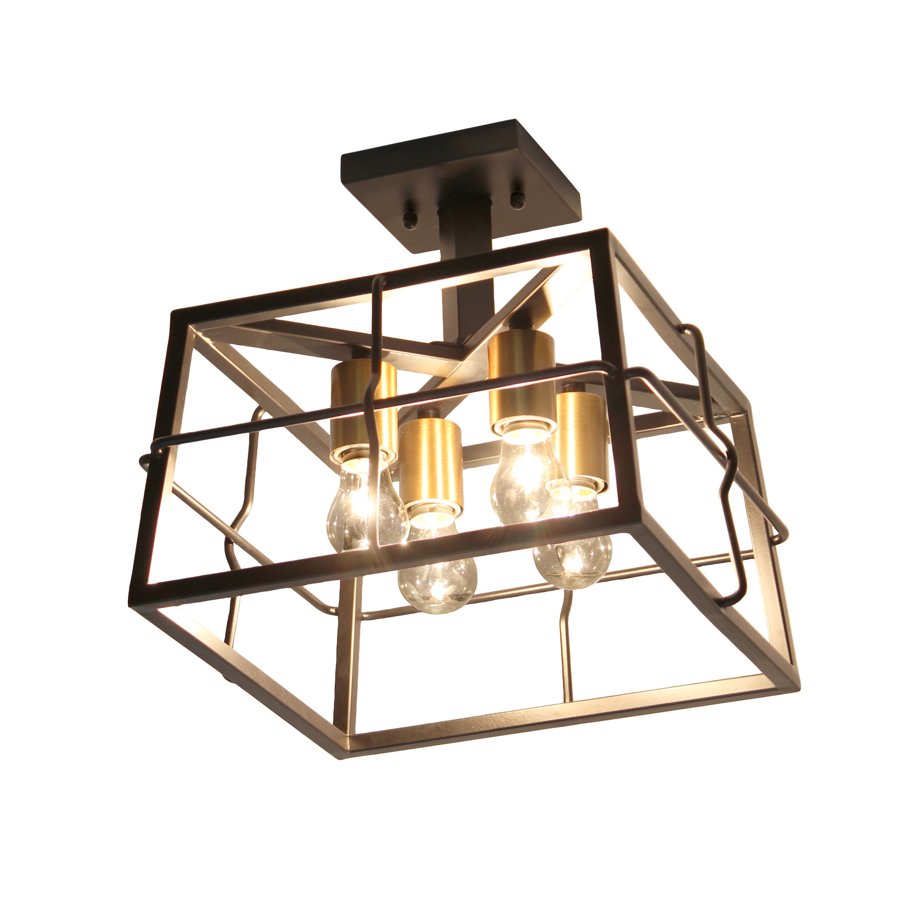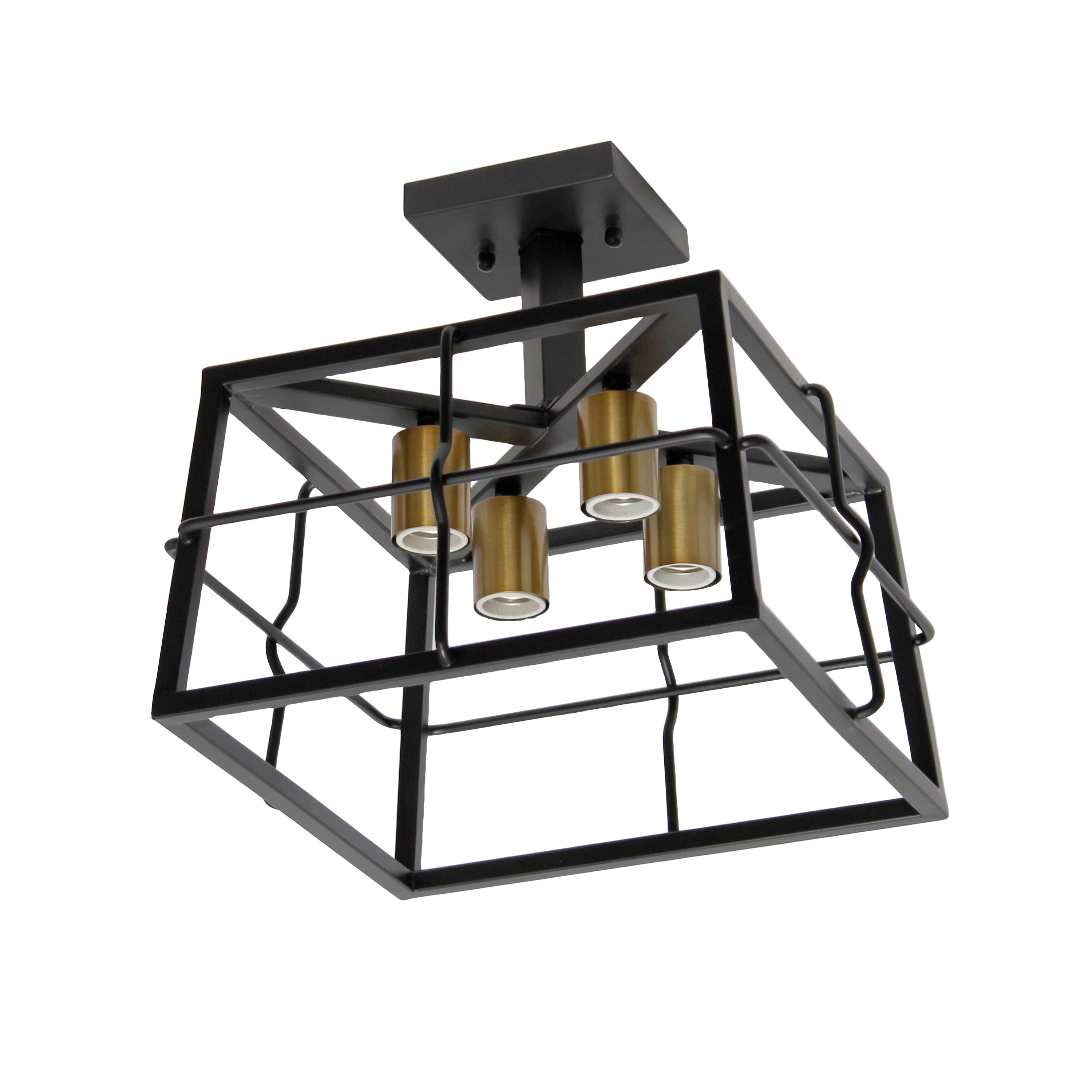 Compliment your decor with this gorgeous farmhouse 4 light caged semi flush mount created to light your space in style. An iron square in black frames the space for four light bulbs to remain exposed. Transform your home or office with this single piece of lighting decor that is guaranteed to spruce up your space.