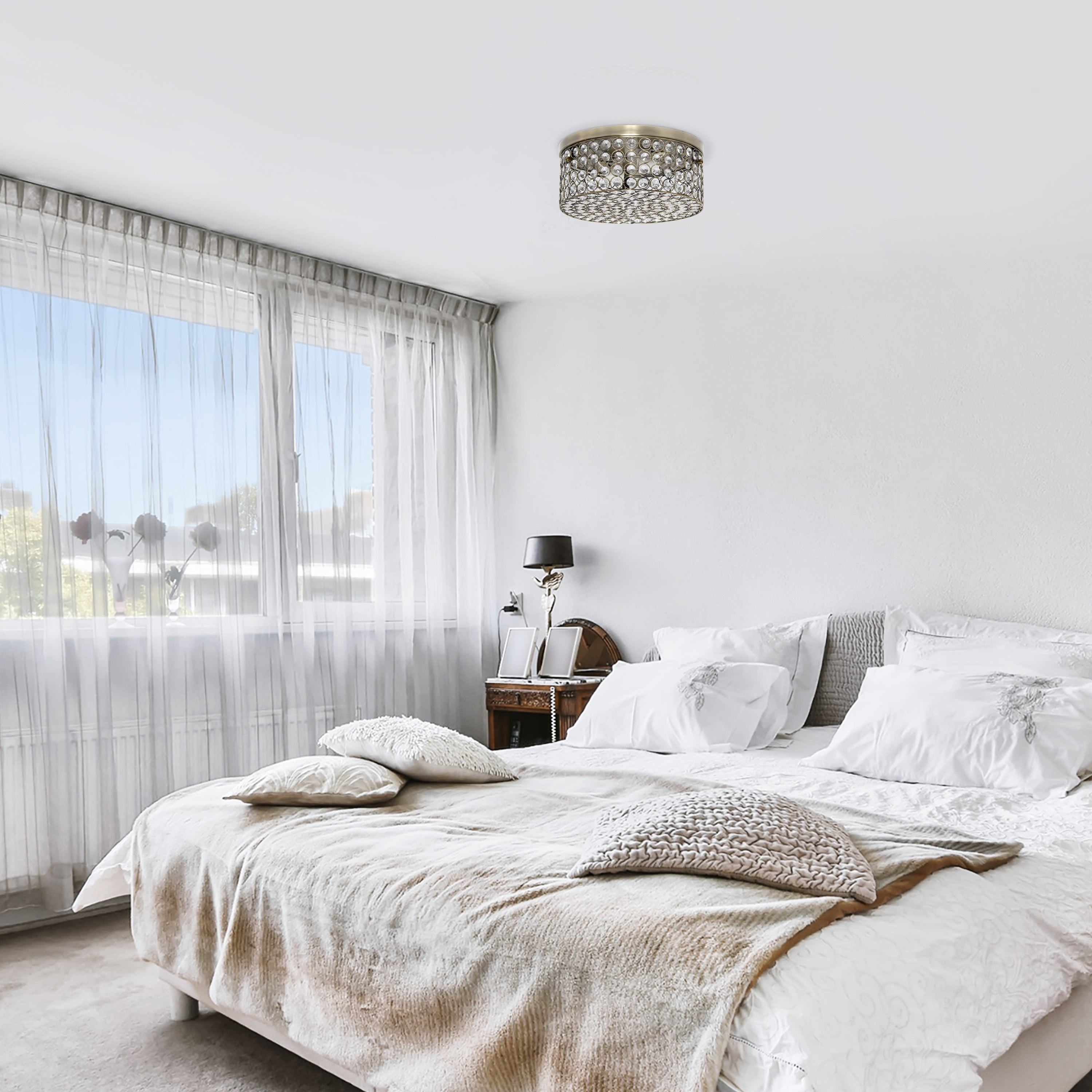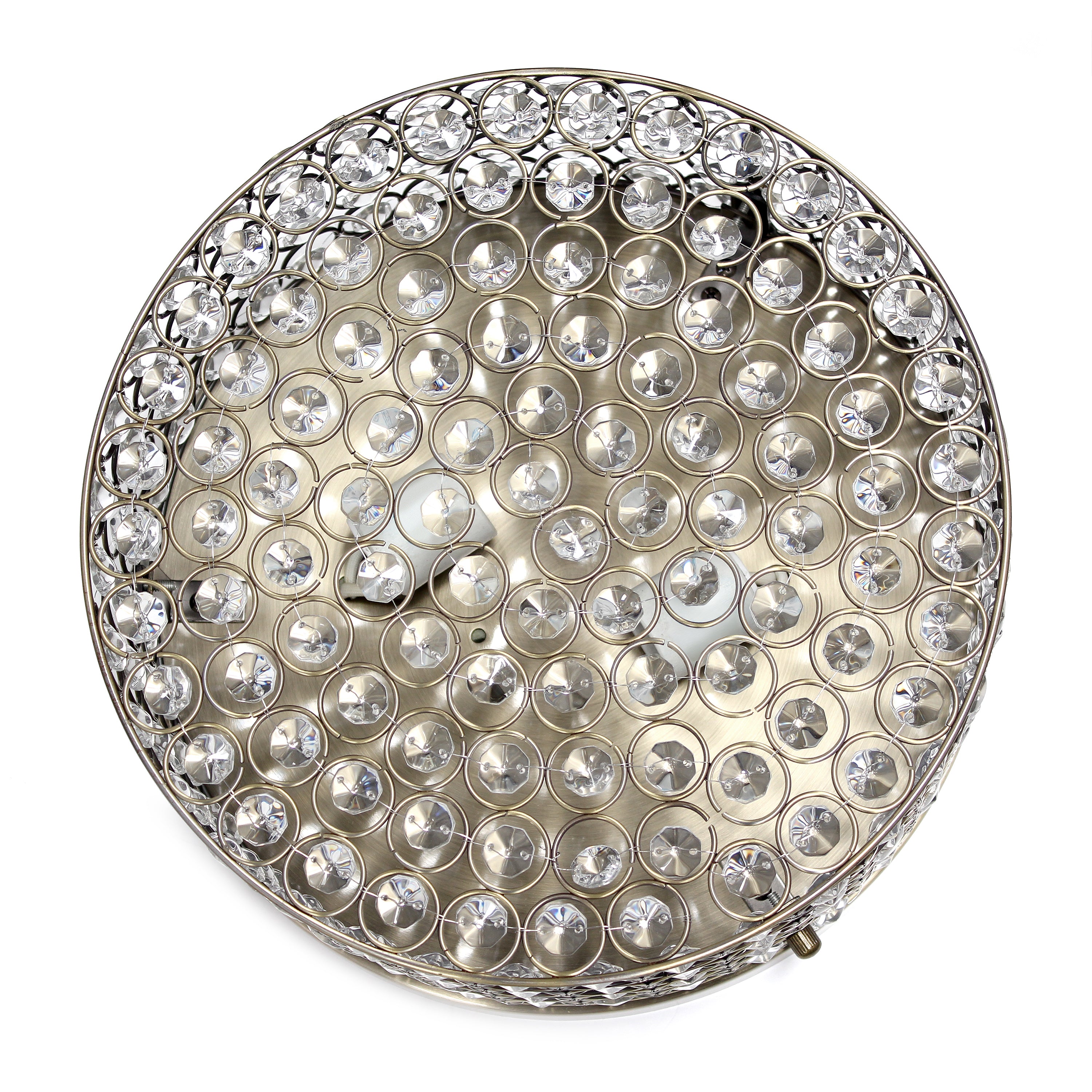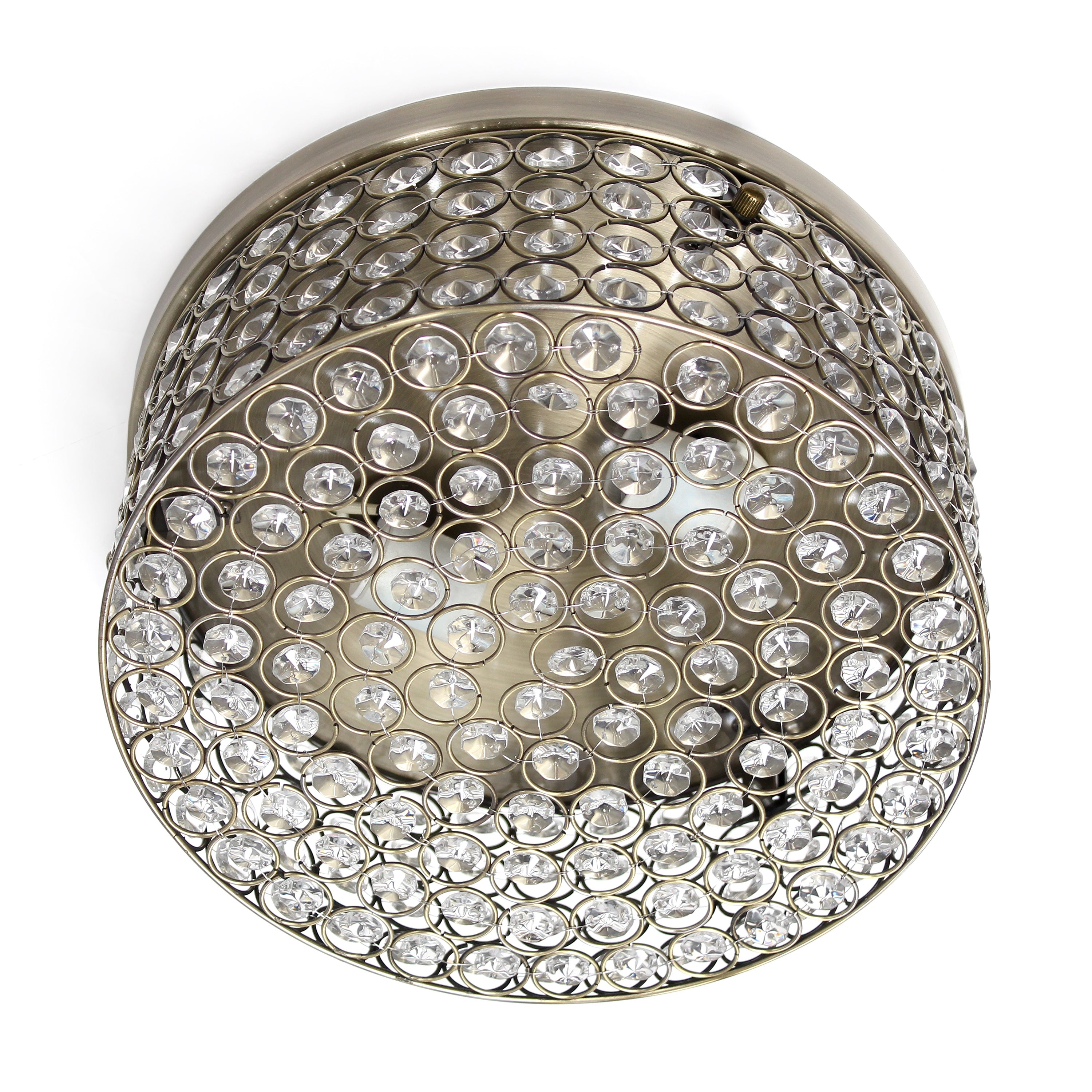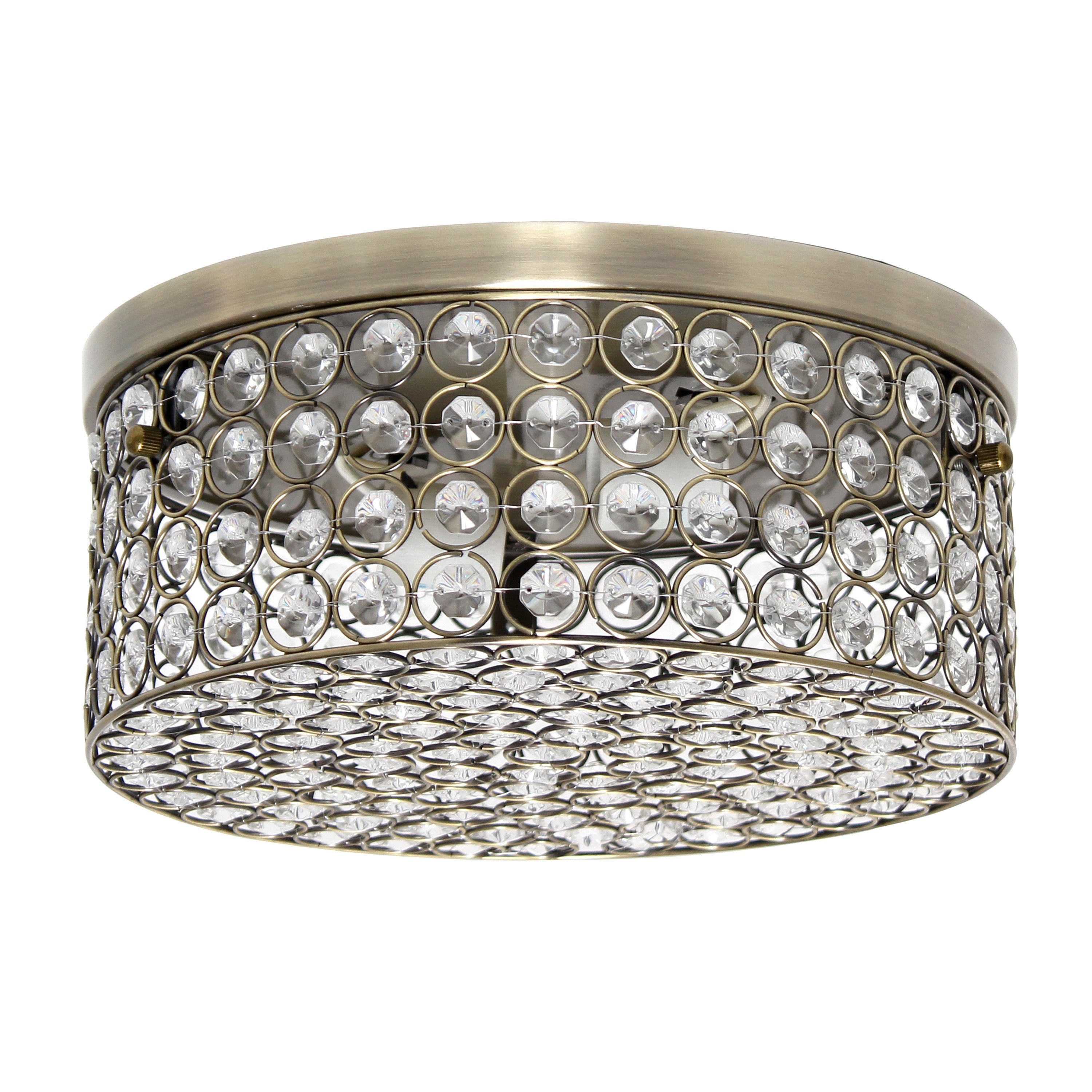 Luxury at its finest. This 2 light round crystal flush mount is the perfect accent piece for any room in your home. Elegant crystals are showcased on the flawless antique brass base for a simple but glamorous look! This flush mount will compliment both contemporary and modern decor.