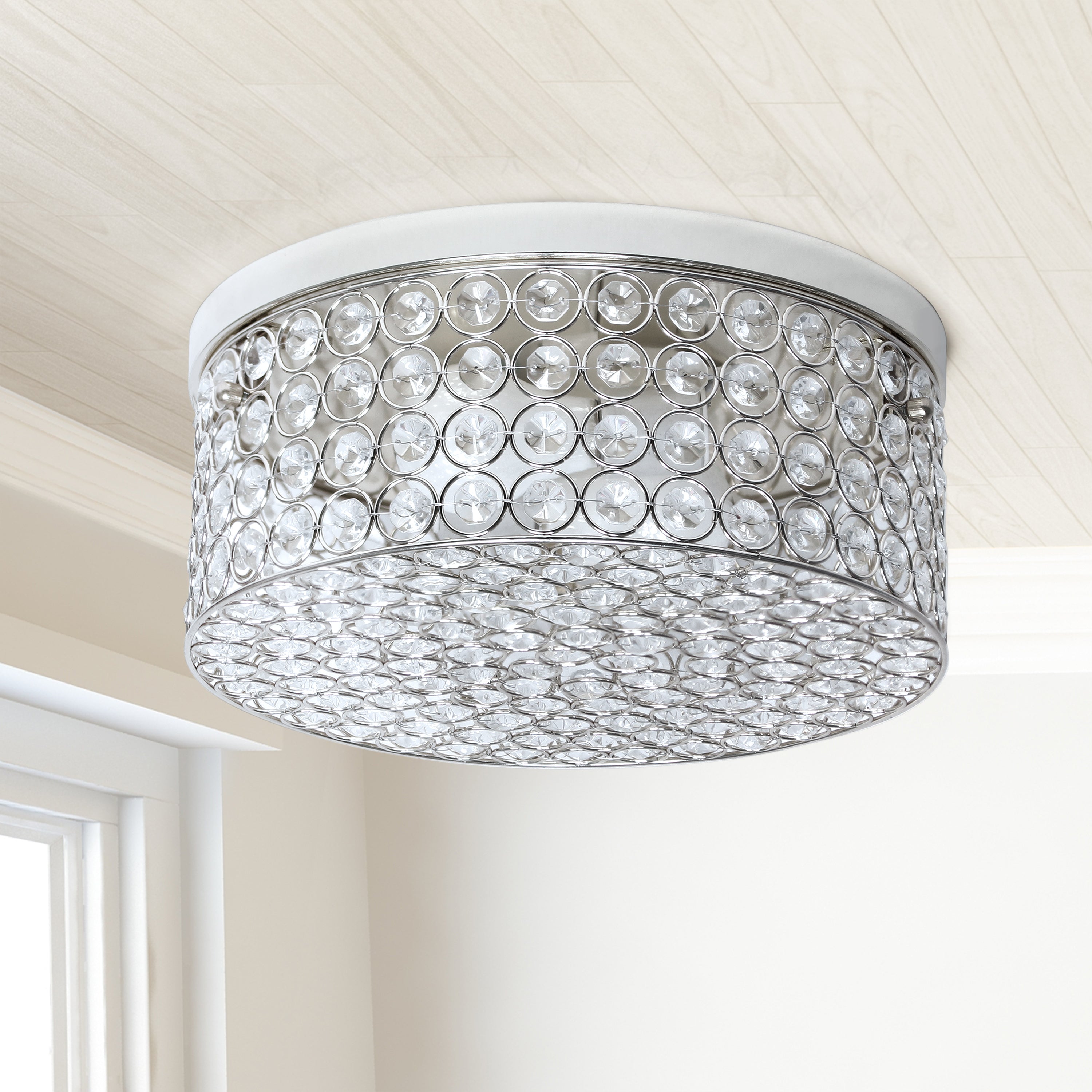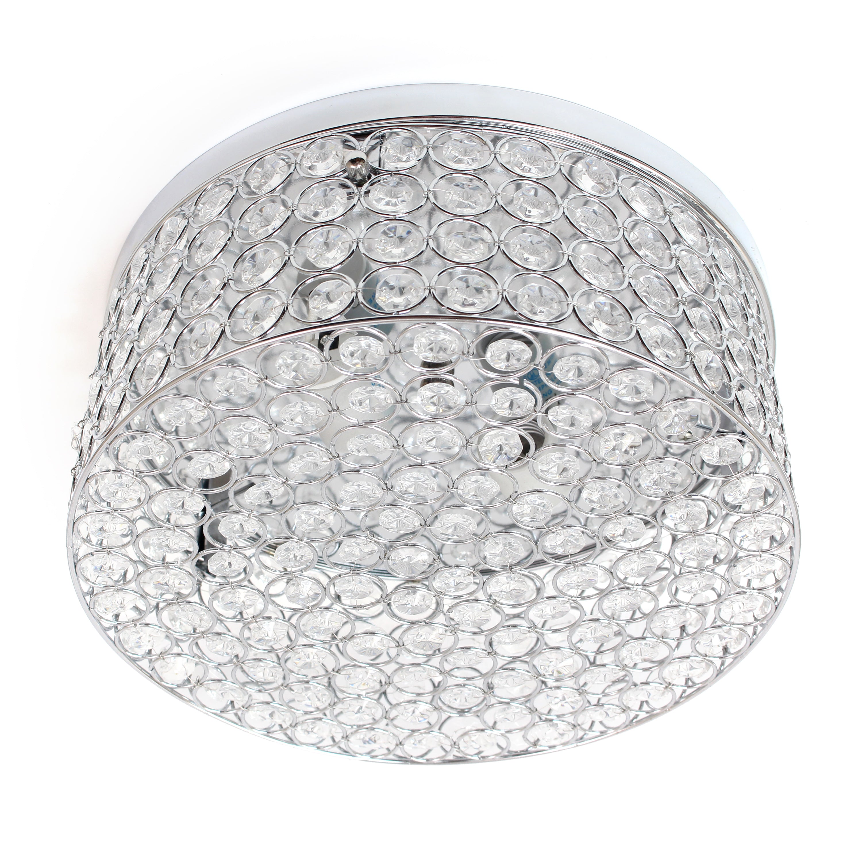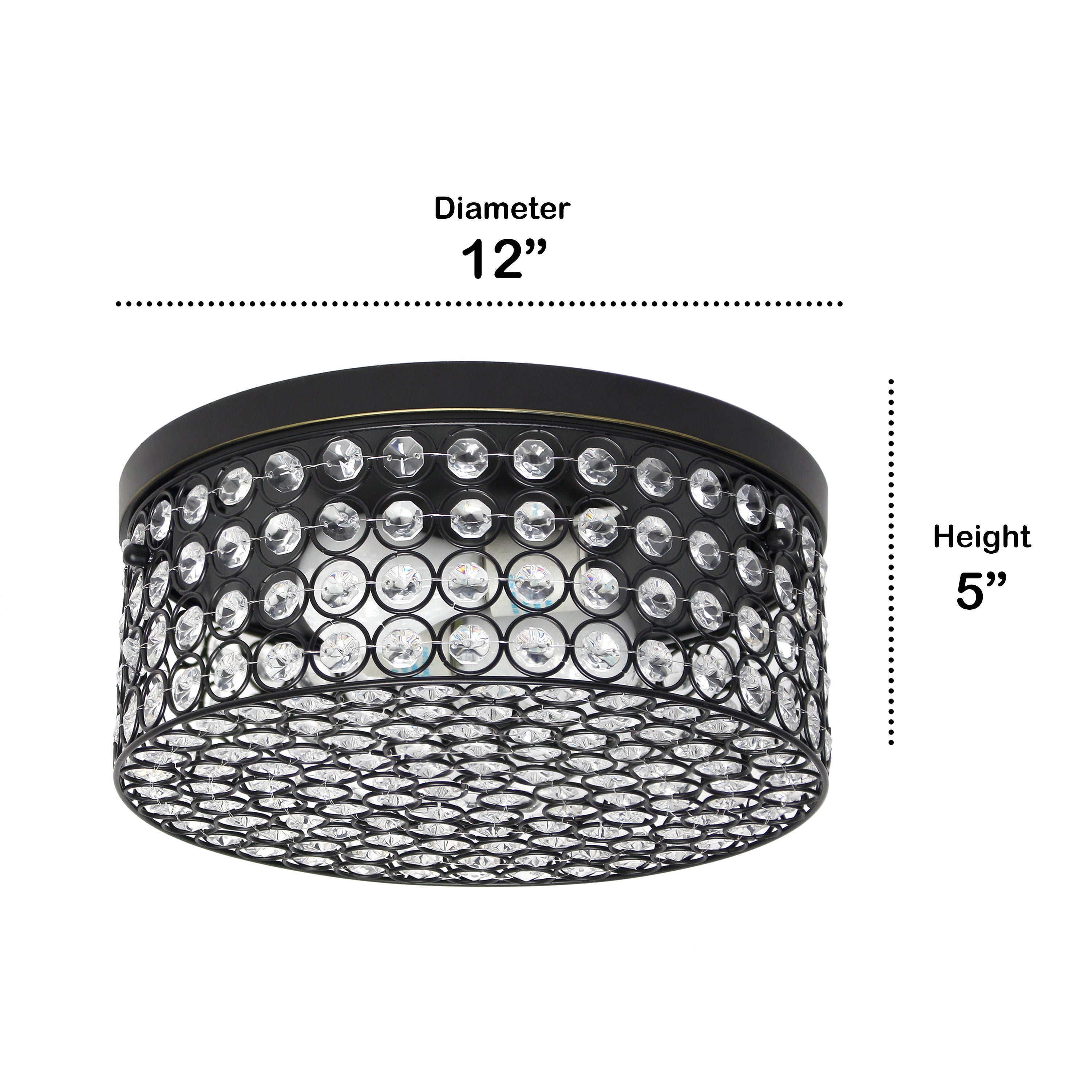 2 Light Glam Crystal Flush Mount 12" Ceiling Light Fixture