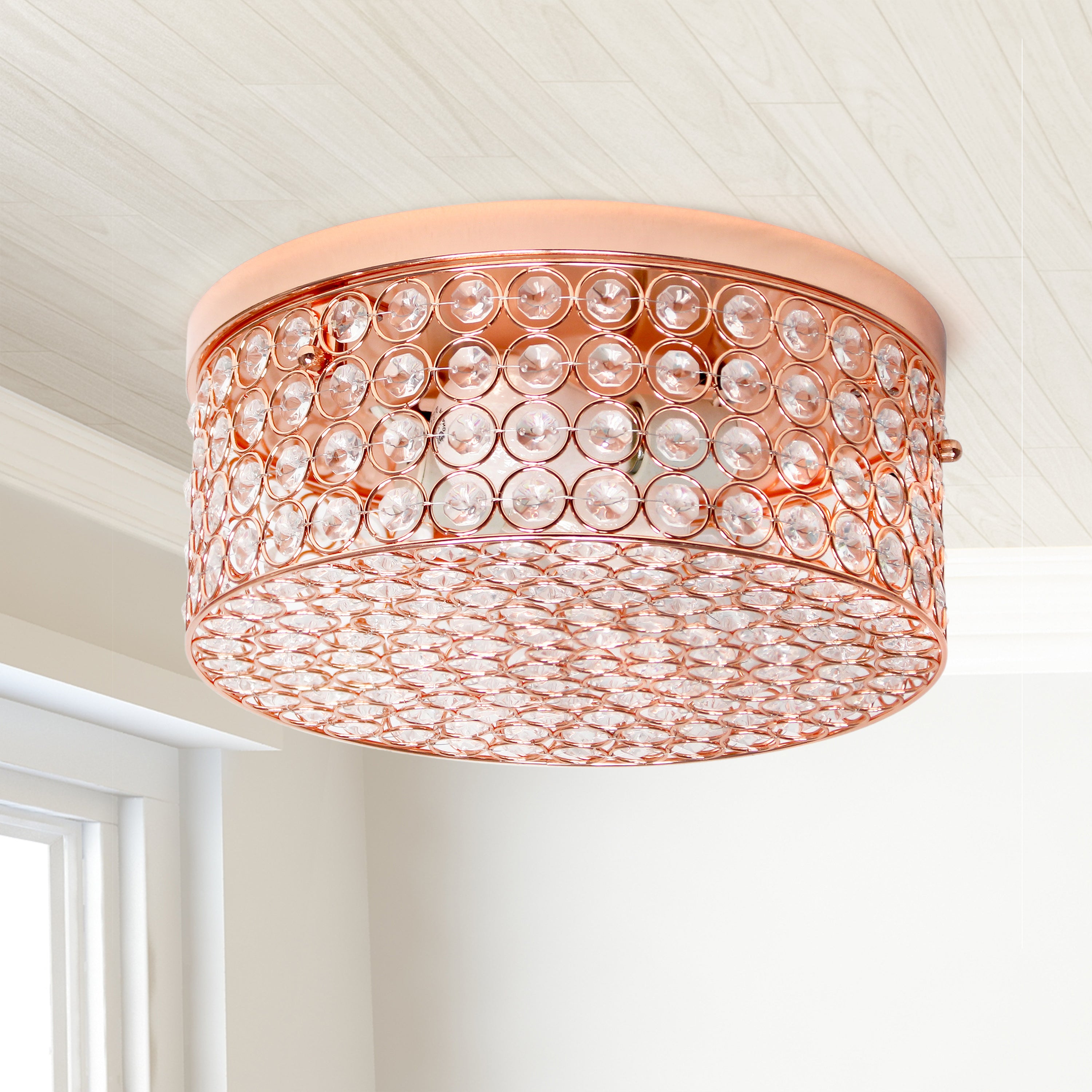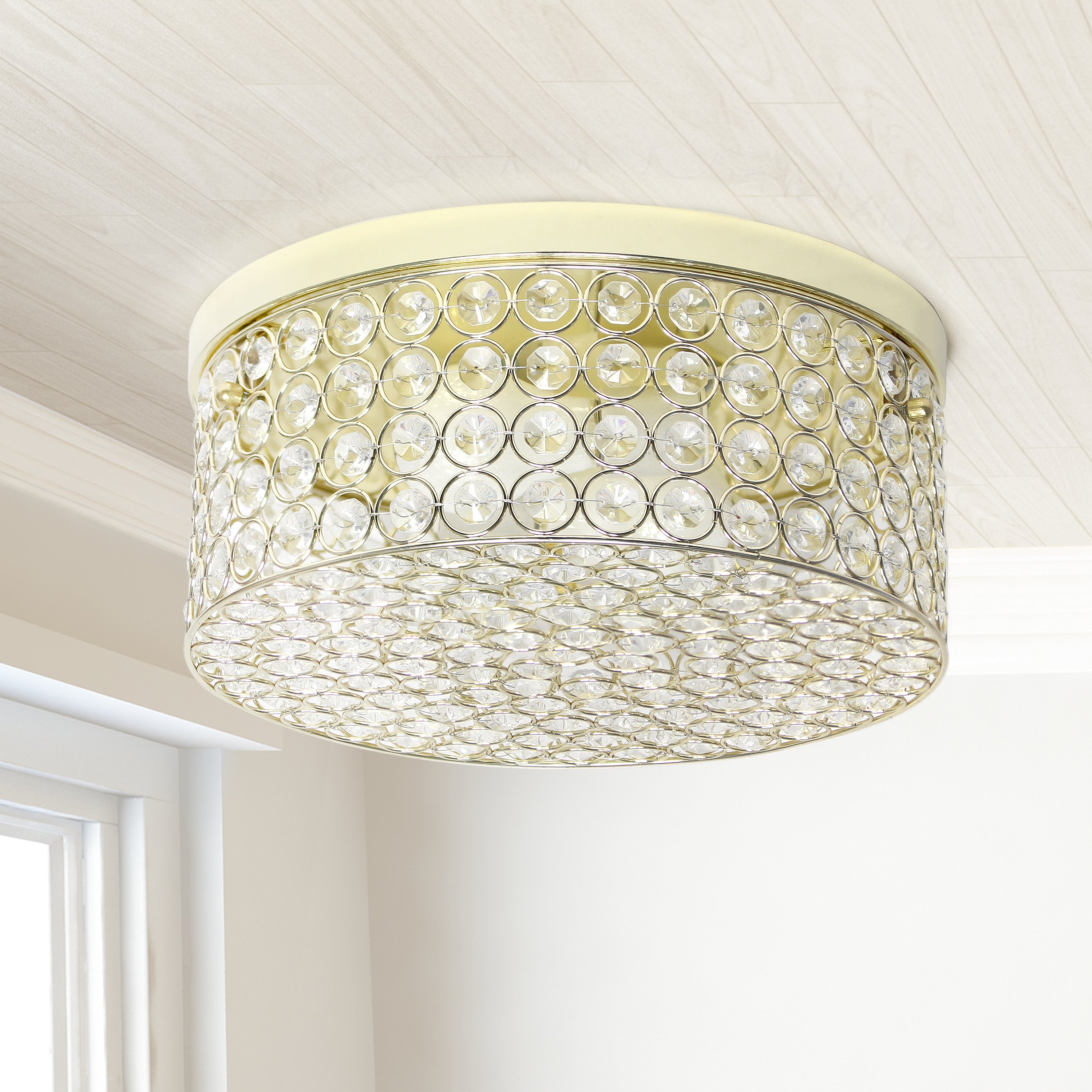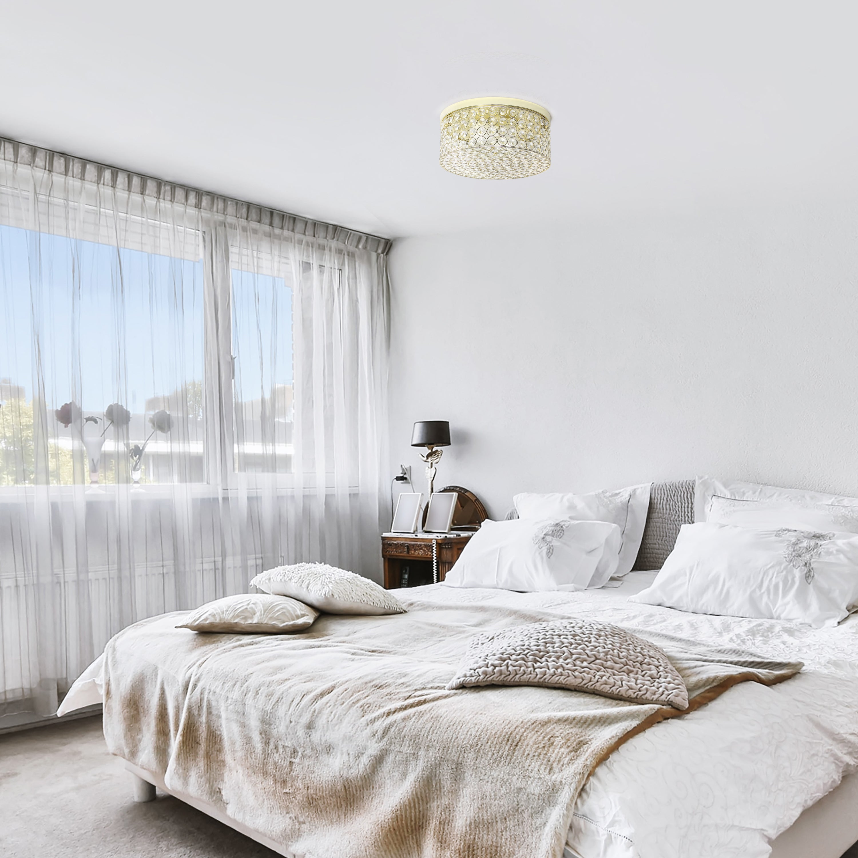 2 Light Glam Crystal Flush Mount 12" Ceiling Light Fixture