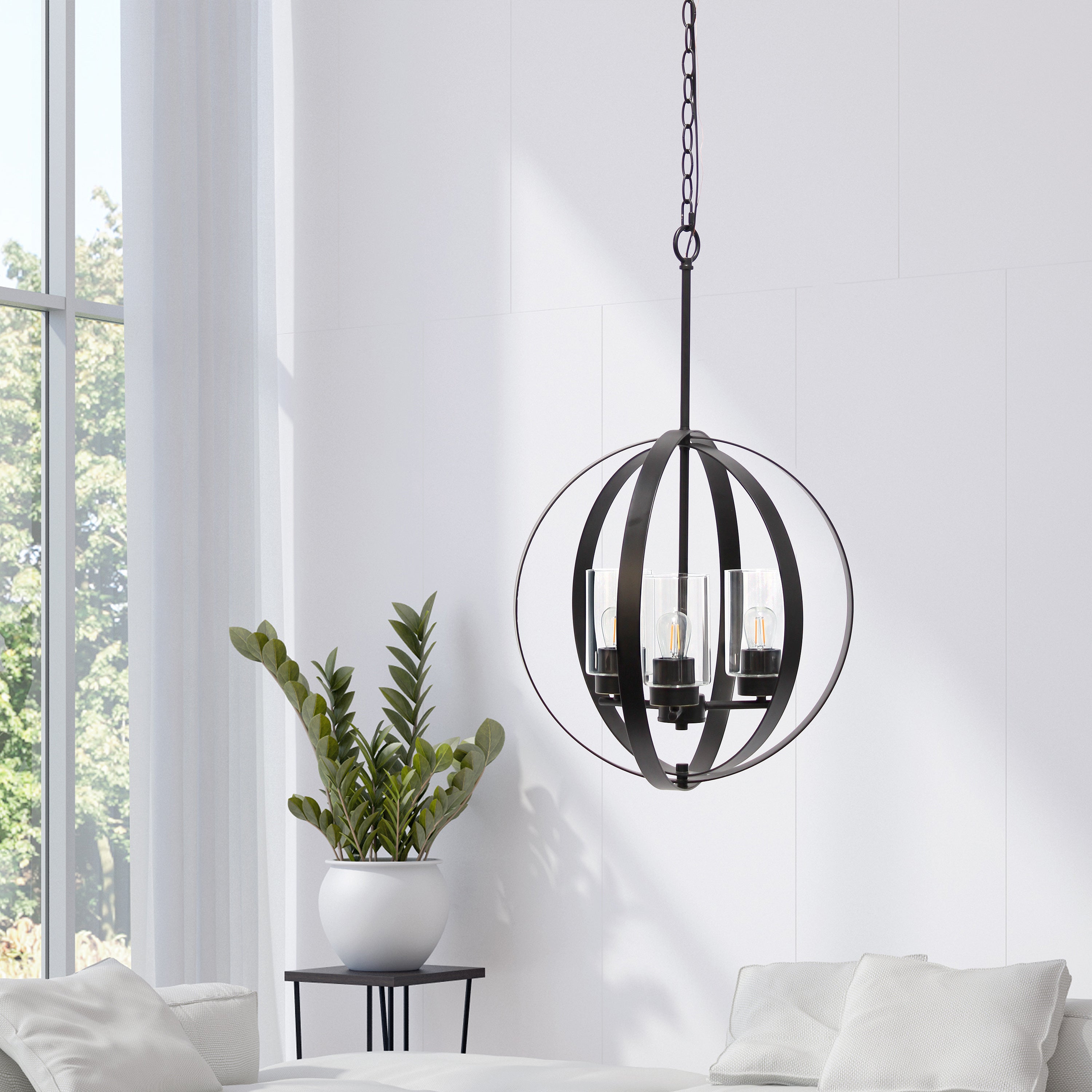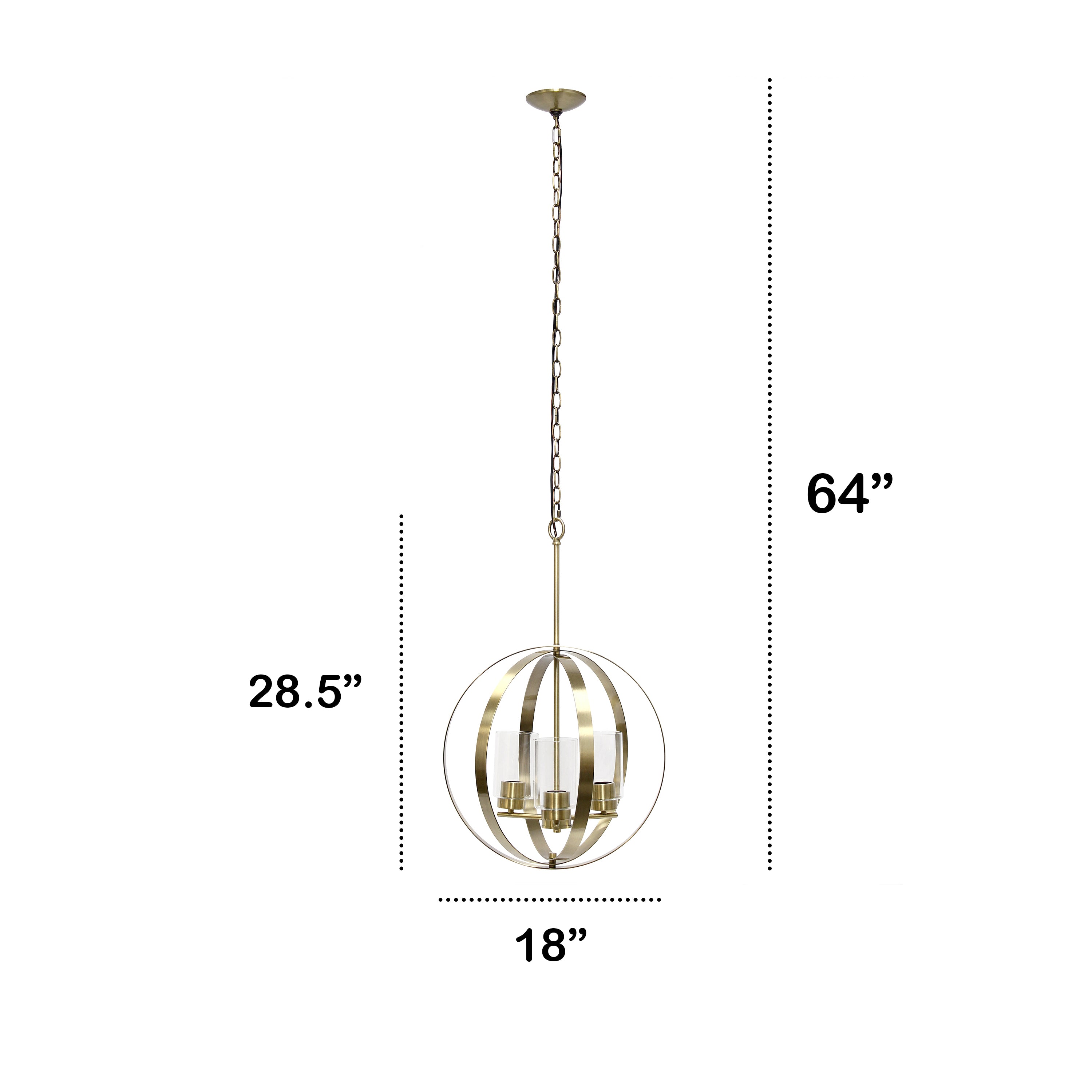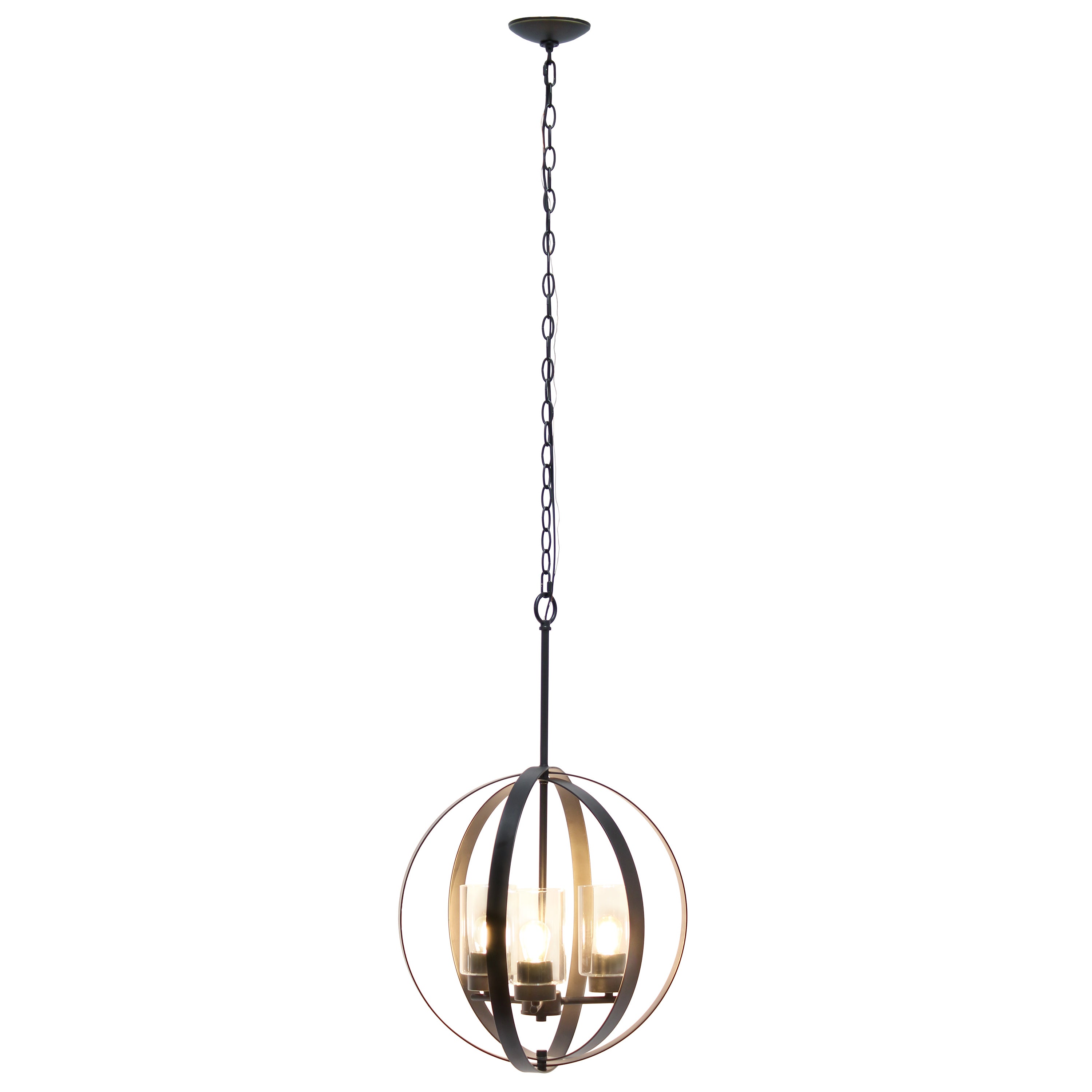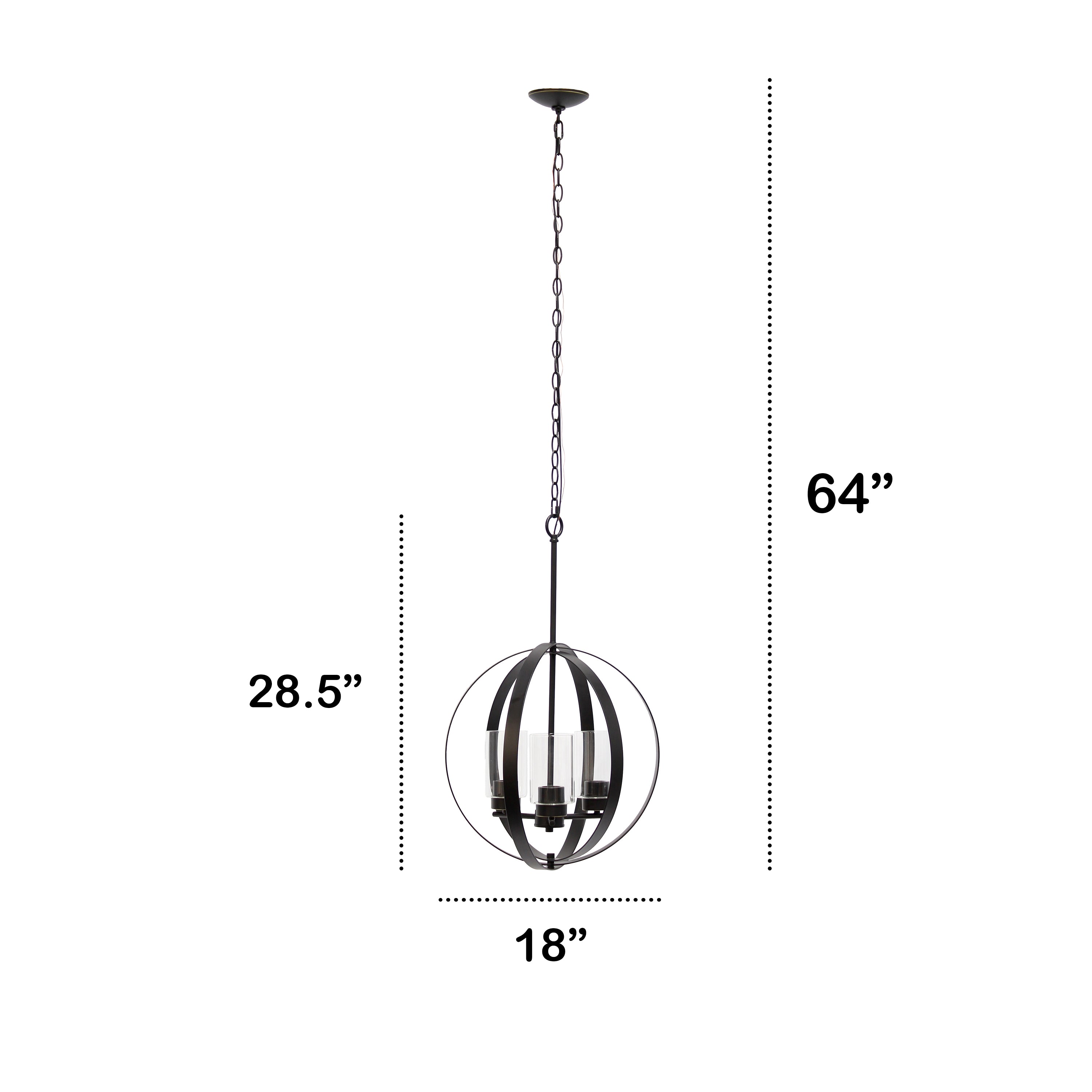 3 Light Globe Hanging Metal Clear Glass 18" Ceiling Pendant