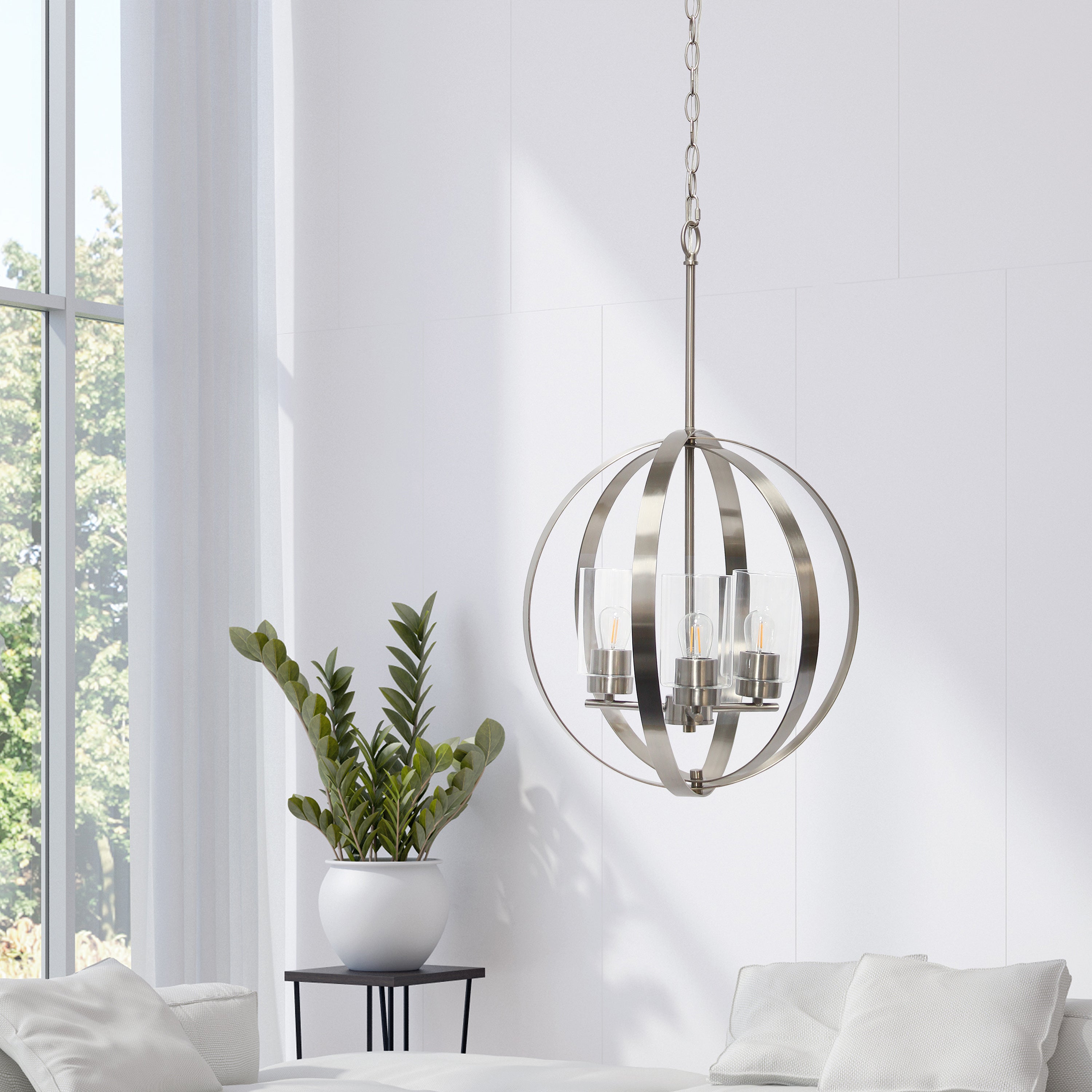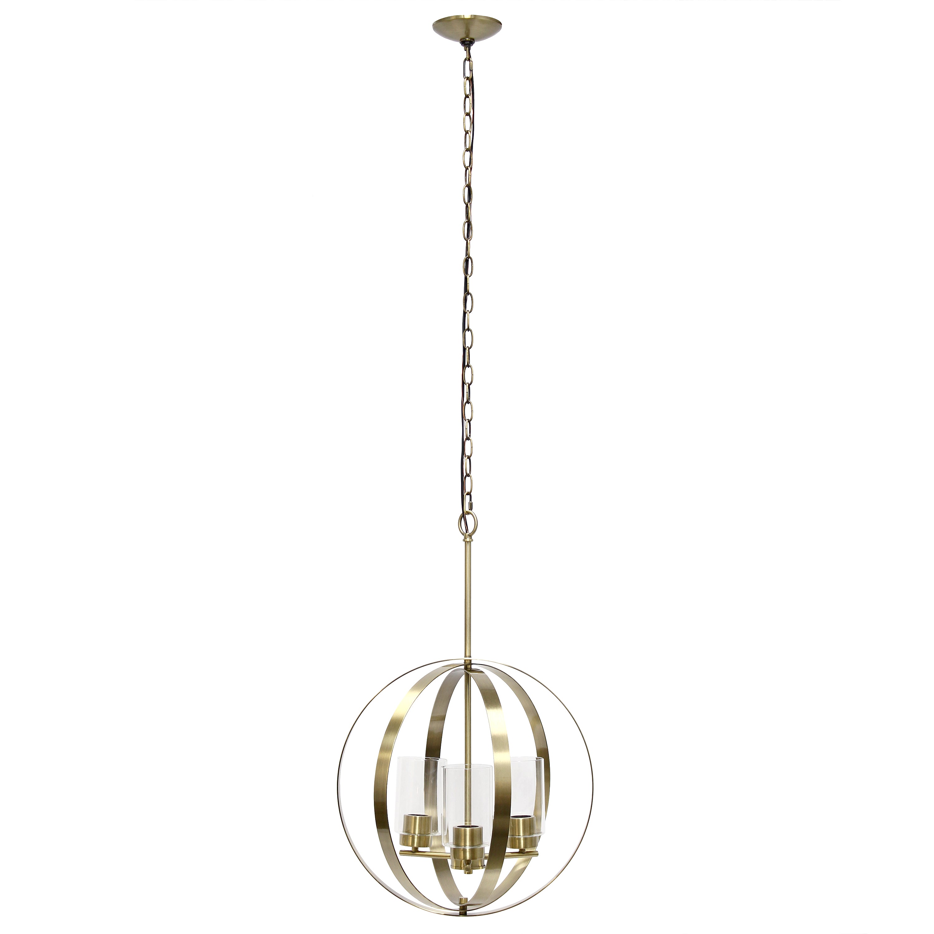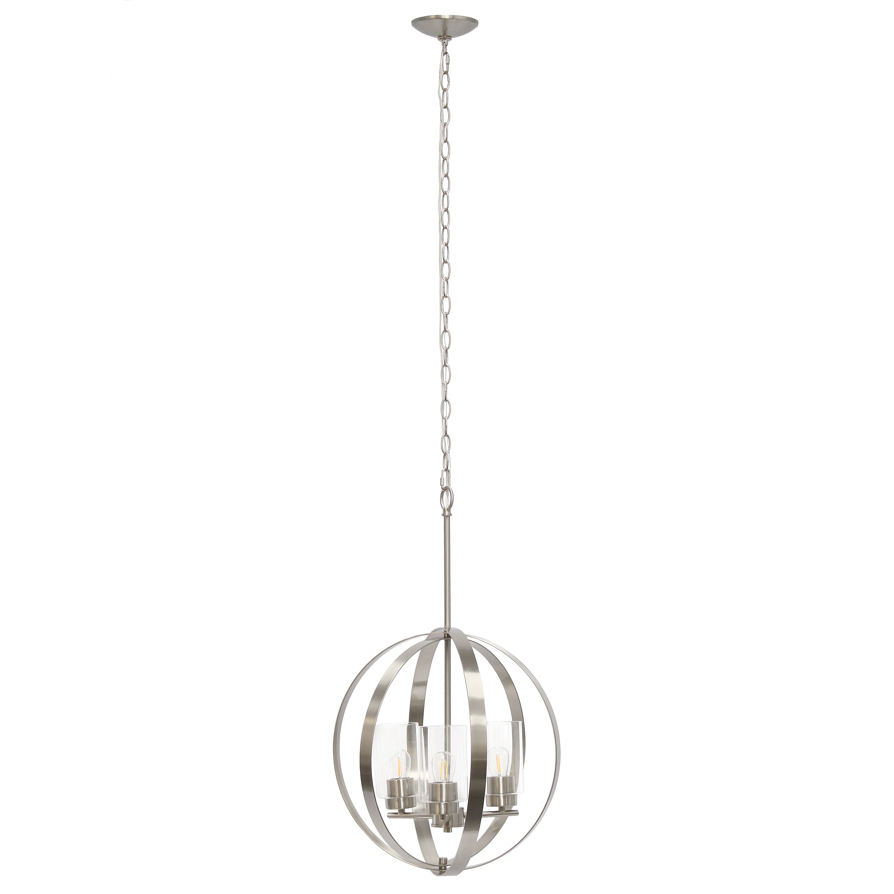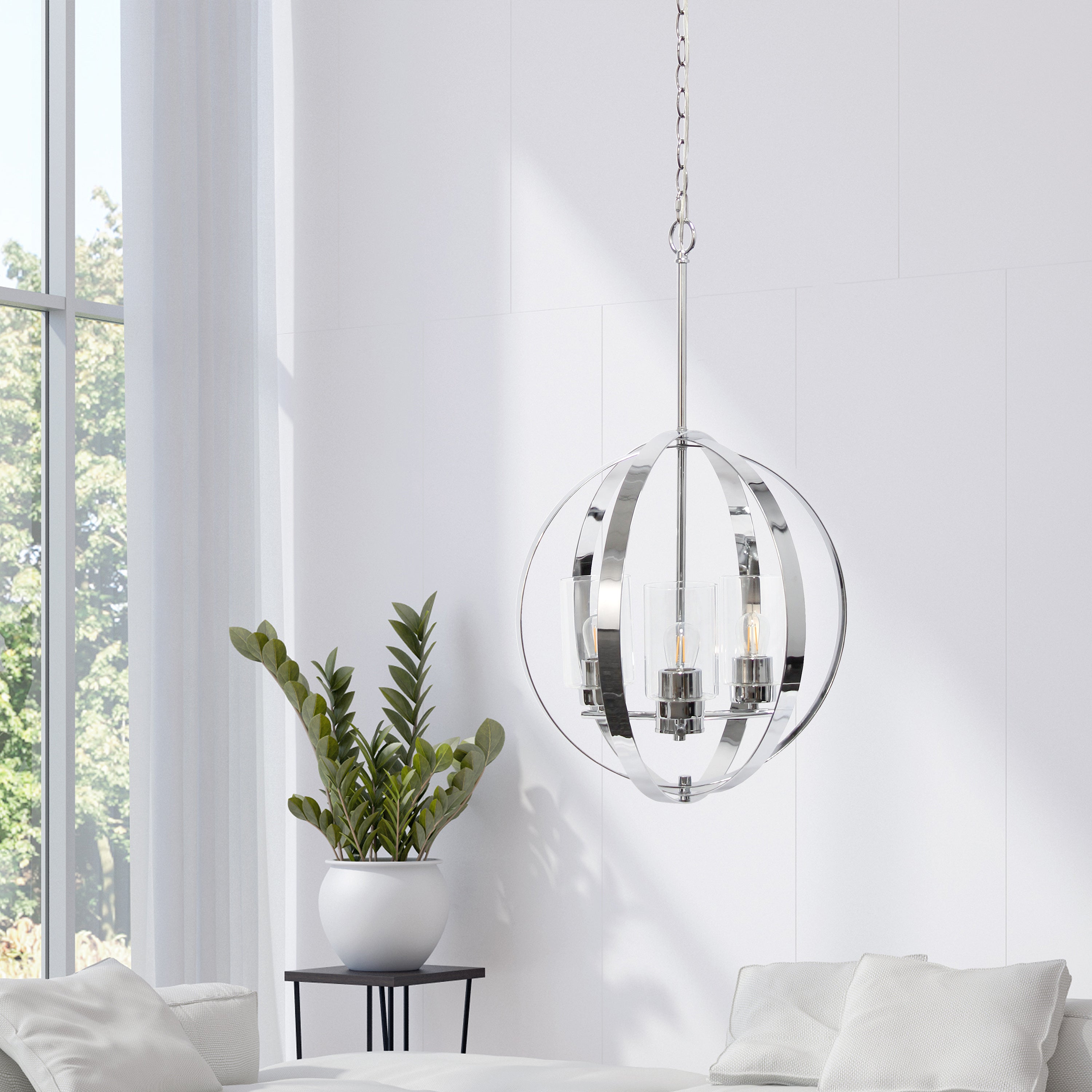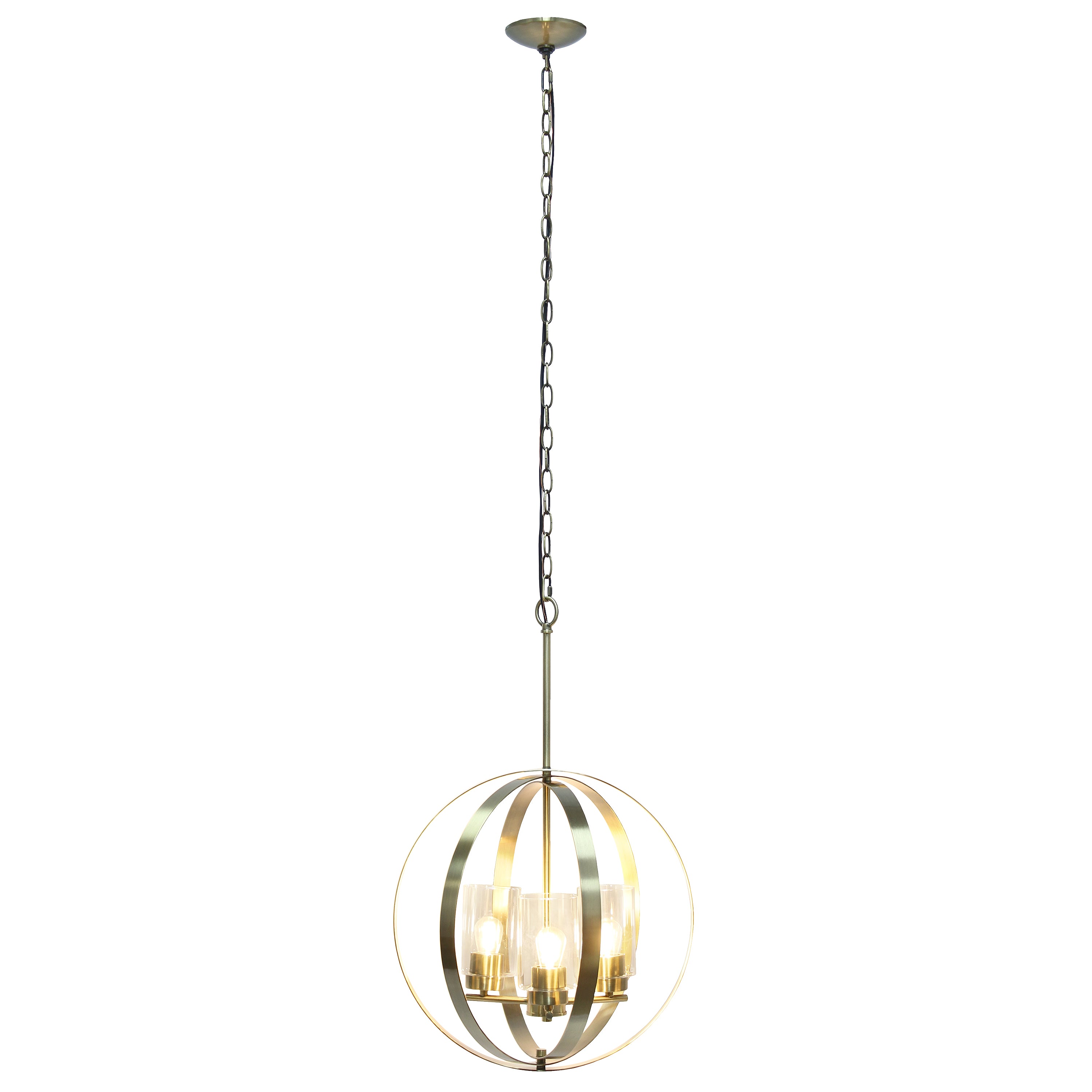 3 Light Globe Hanging Metal Clear Glass 18" Ceiling Pendant