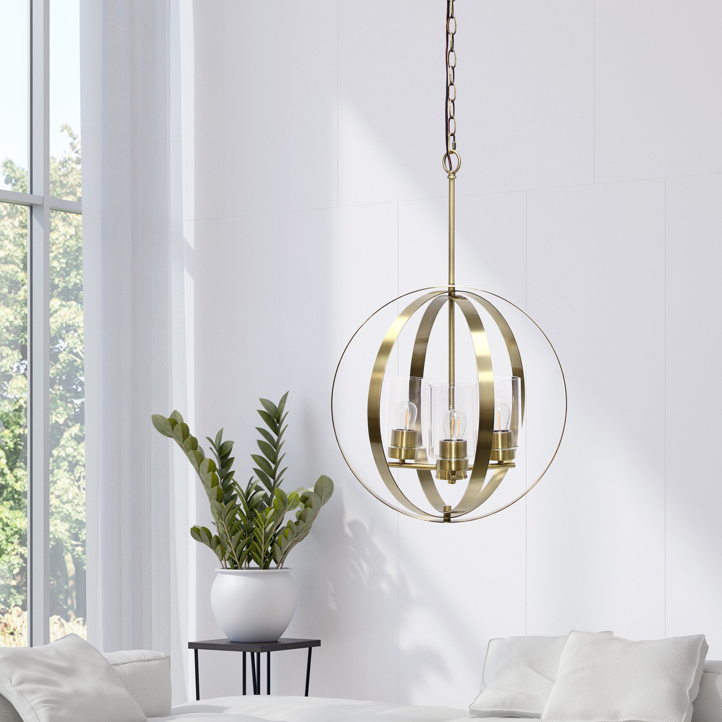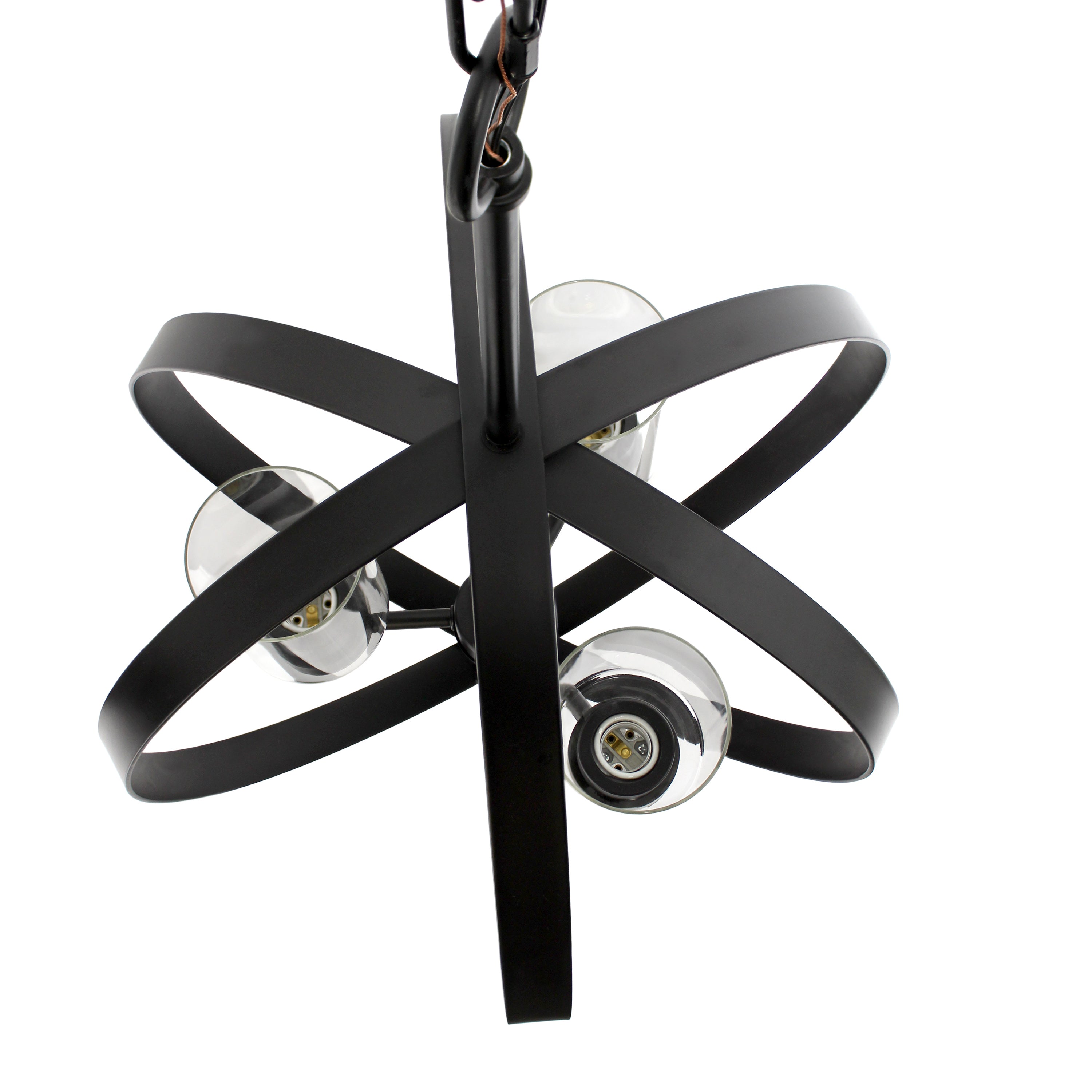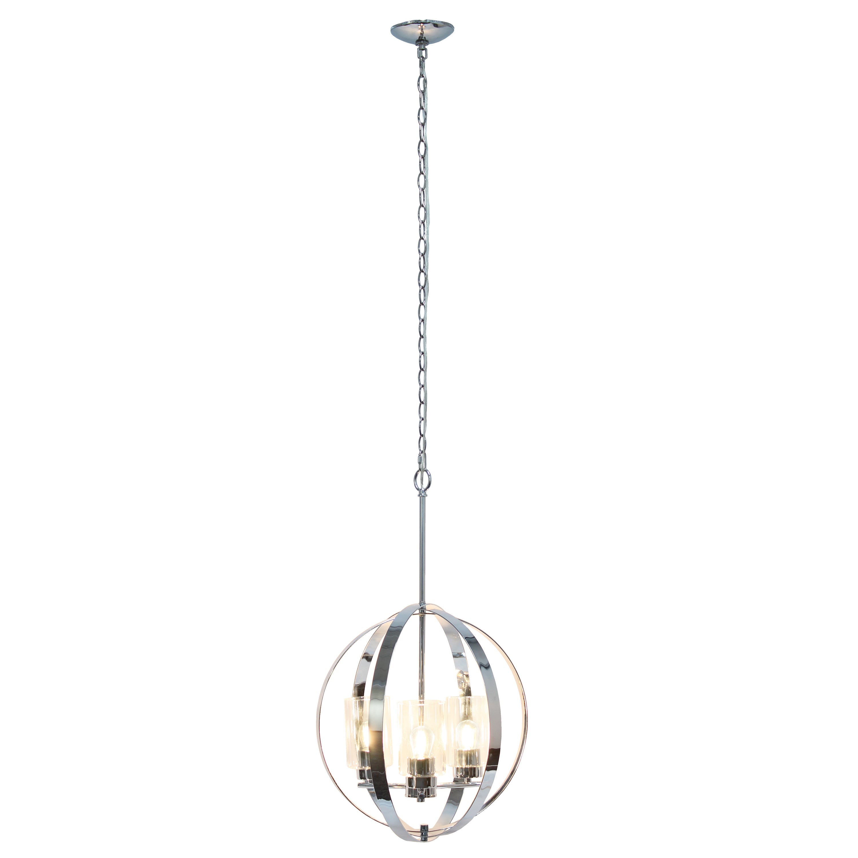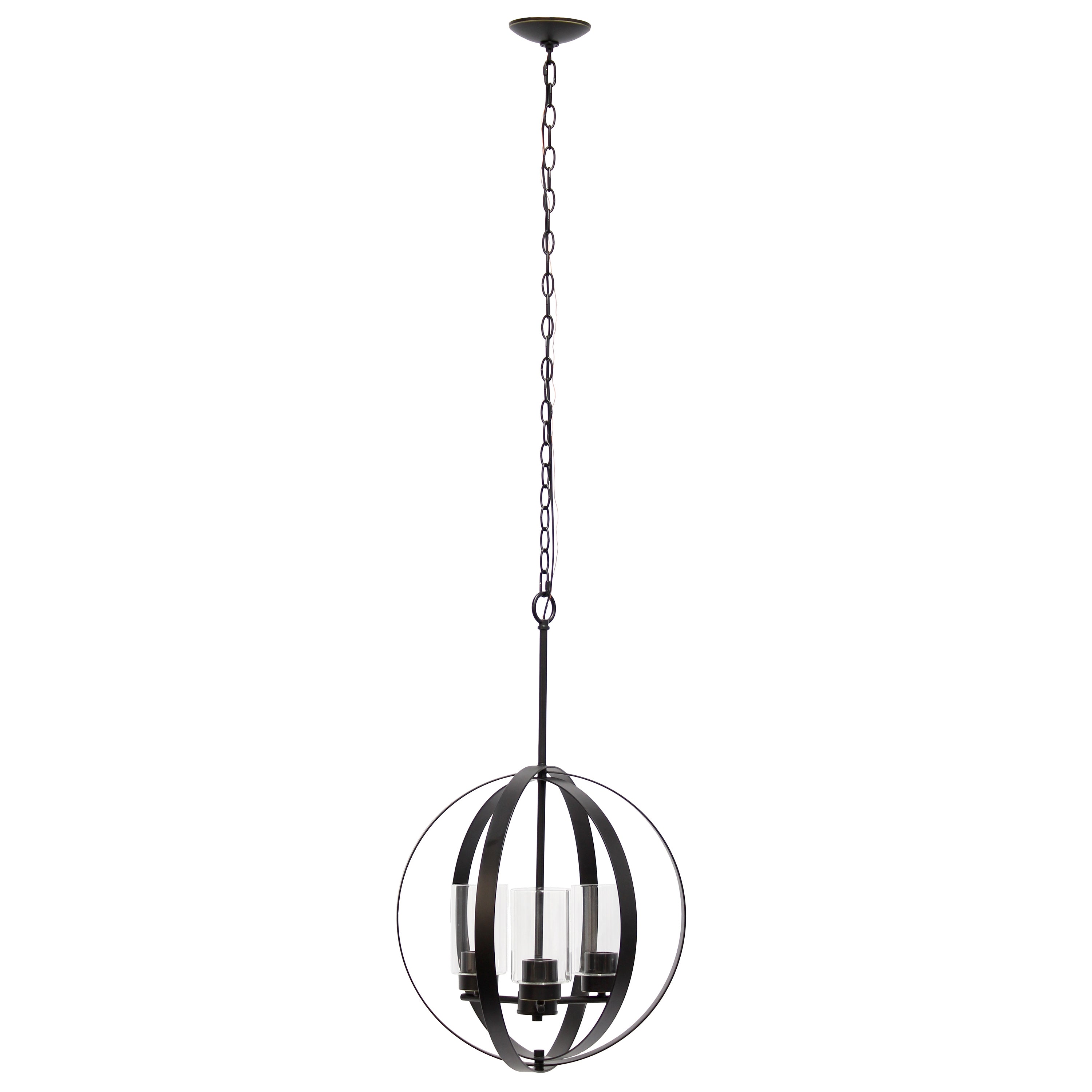 3 Light Globe Hanging Metal Clear Glass 18" Ceiling Pendant