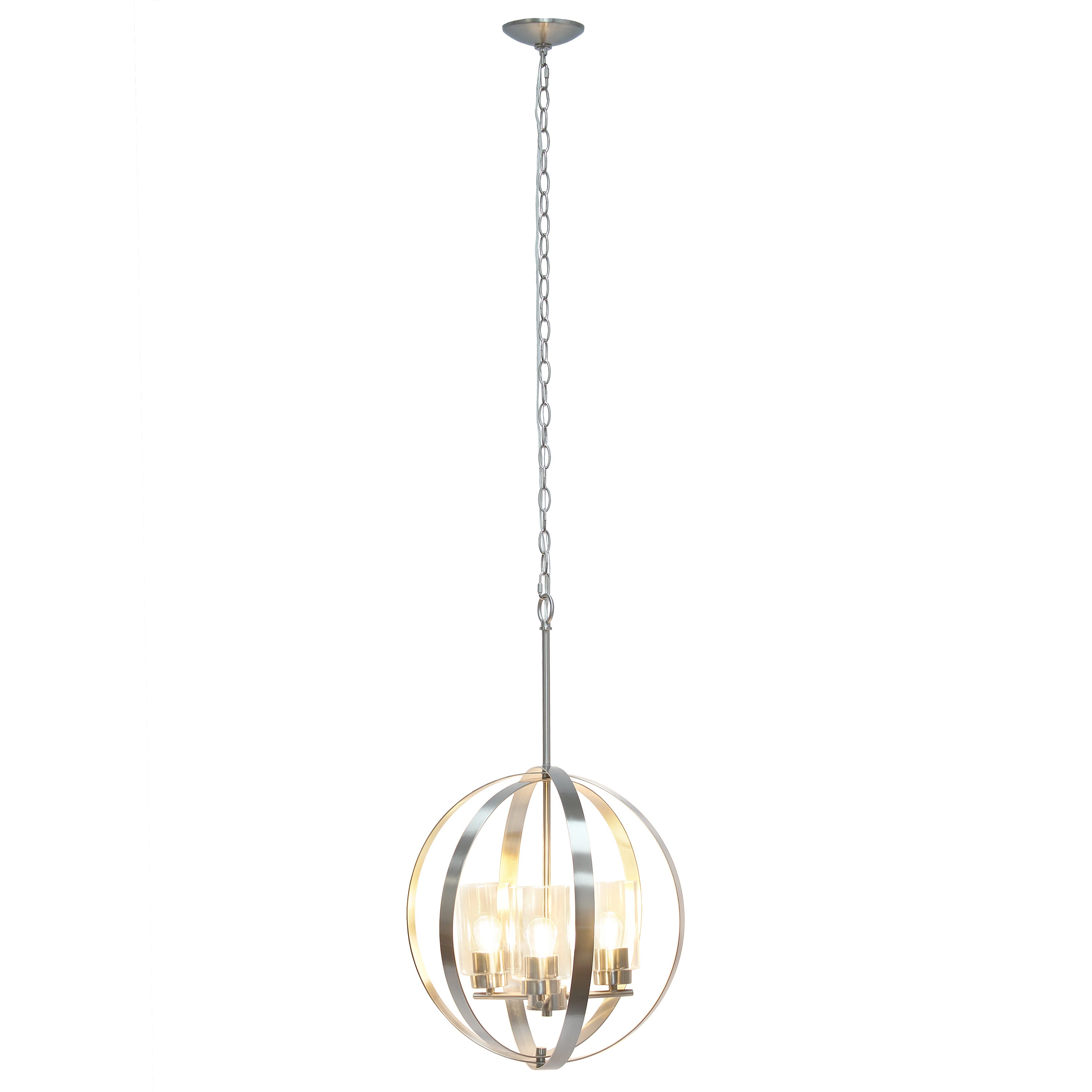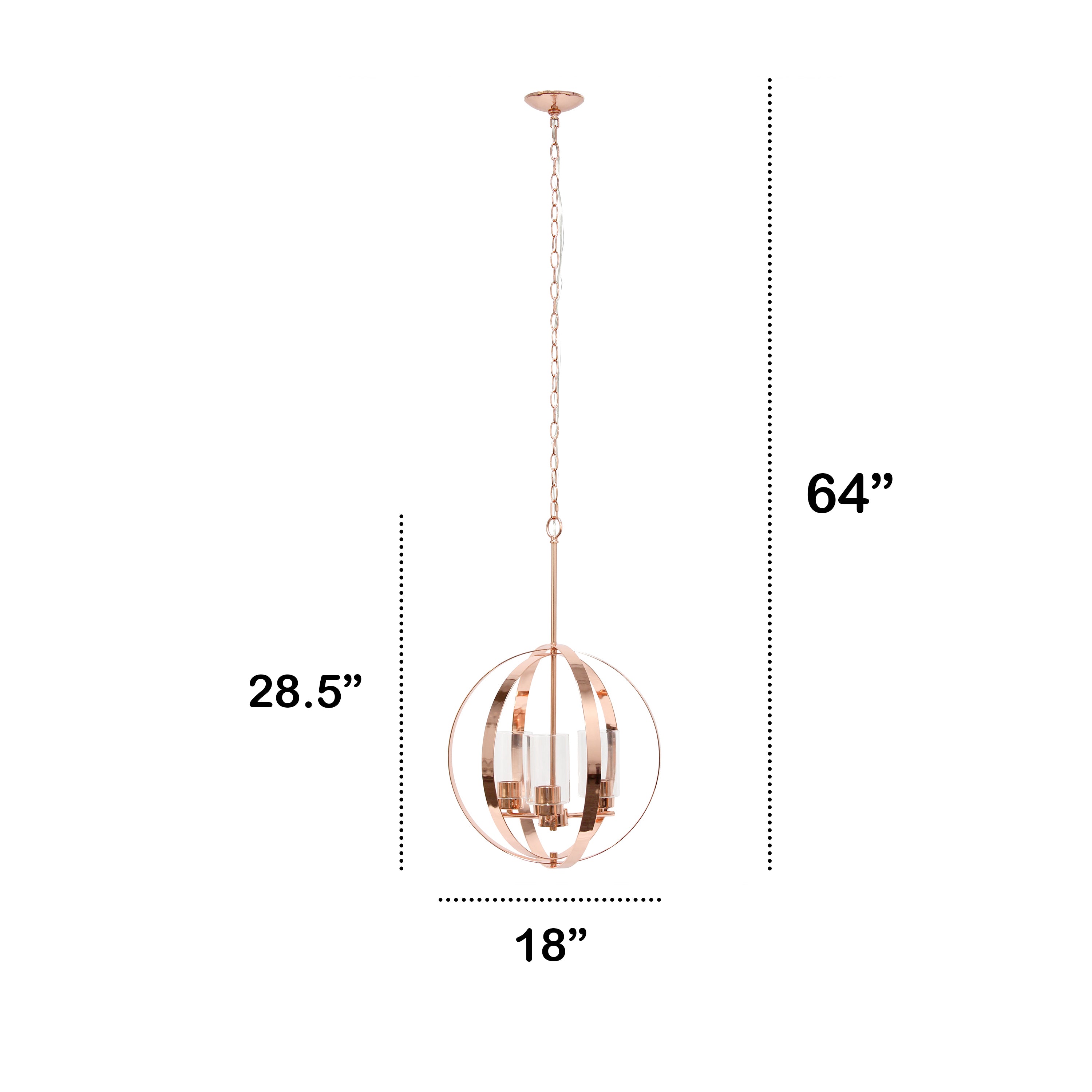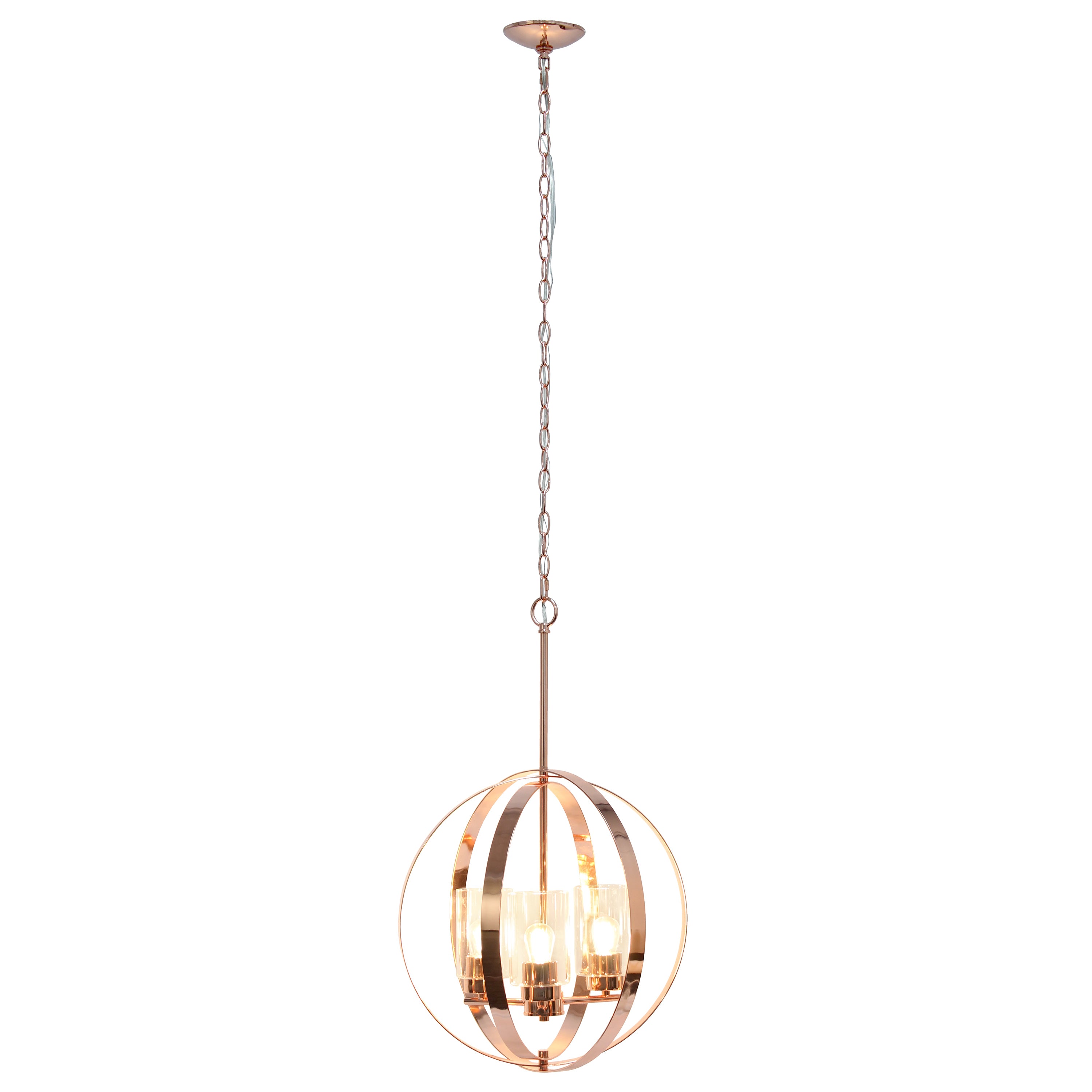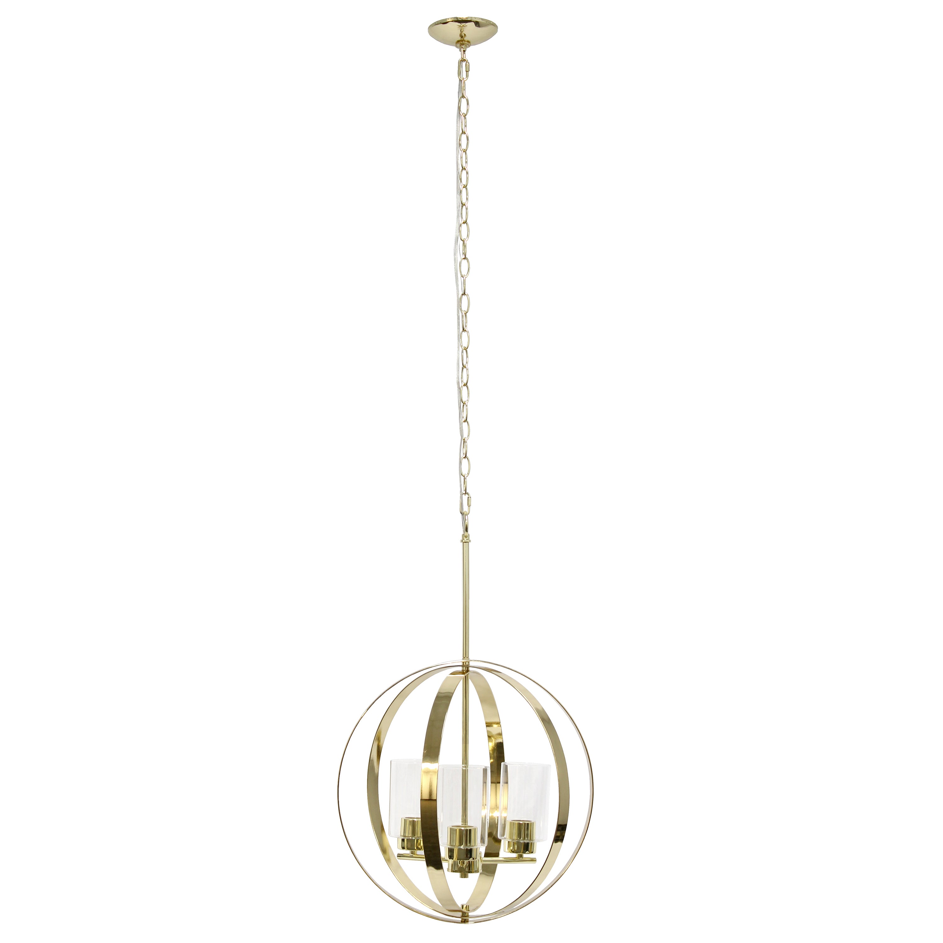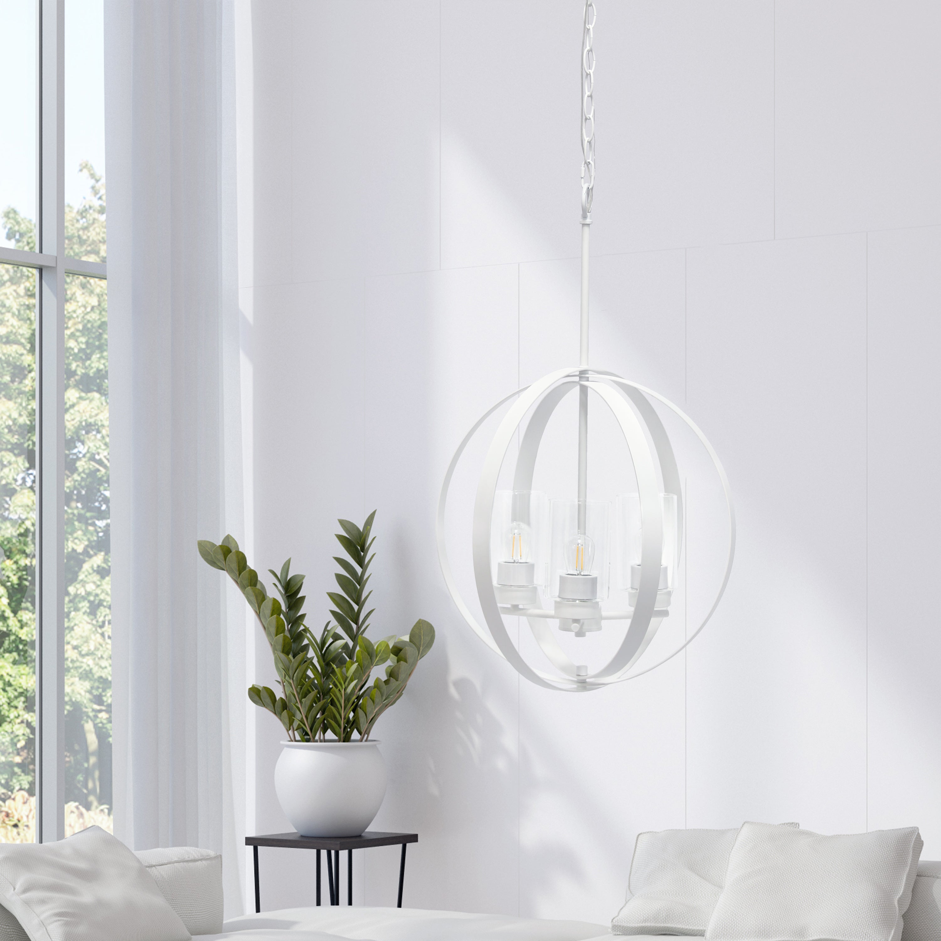 3 Light Globe Hanging Metal Clear Glass 18" Ceiling Pendant