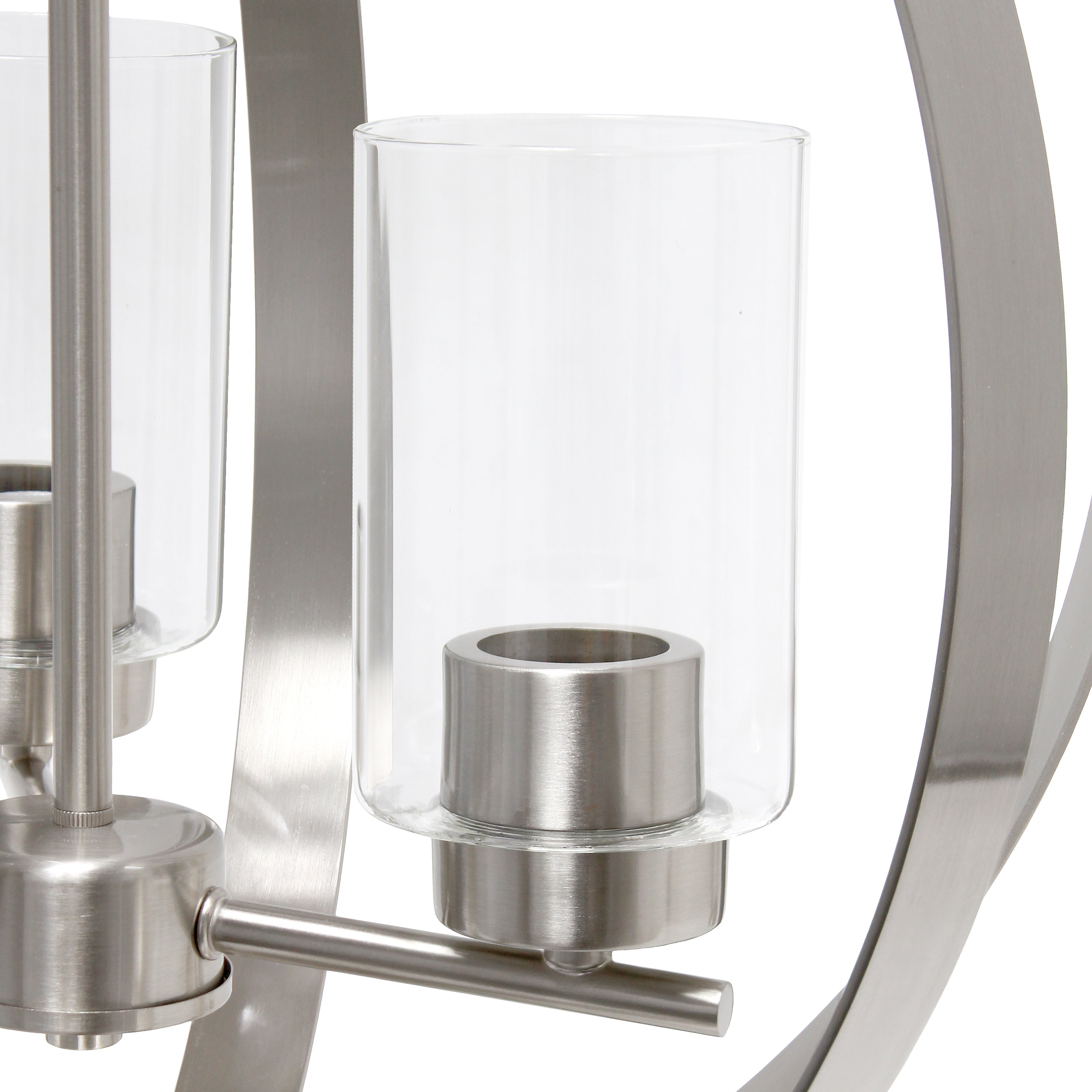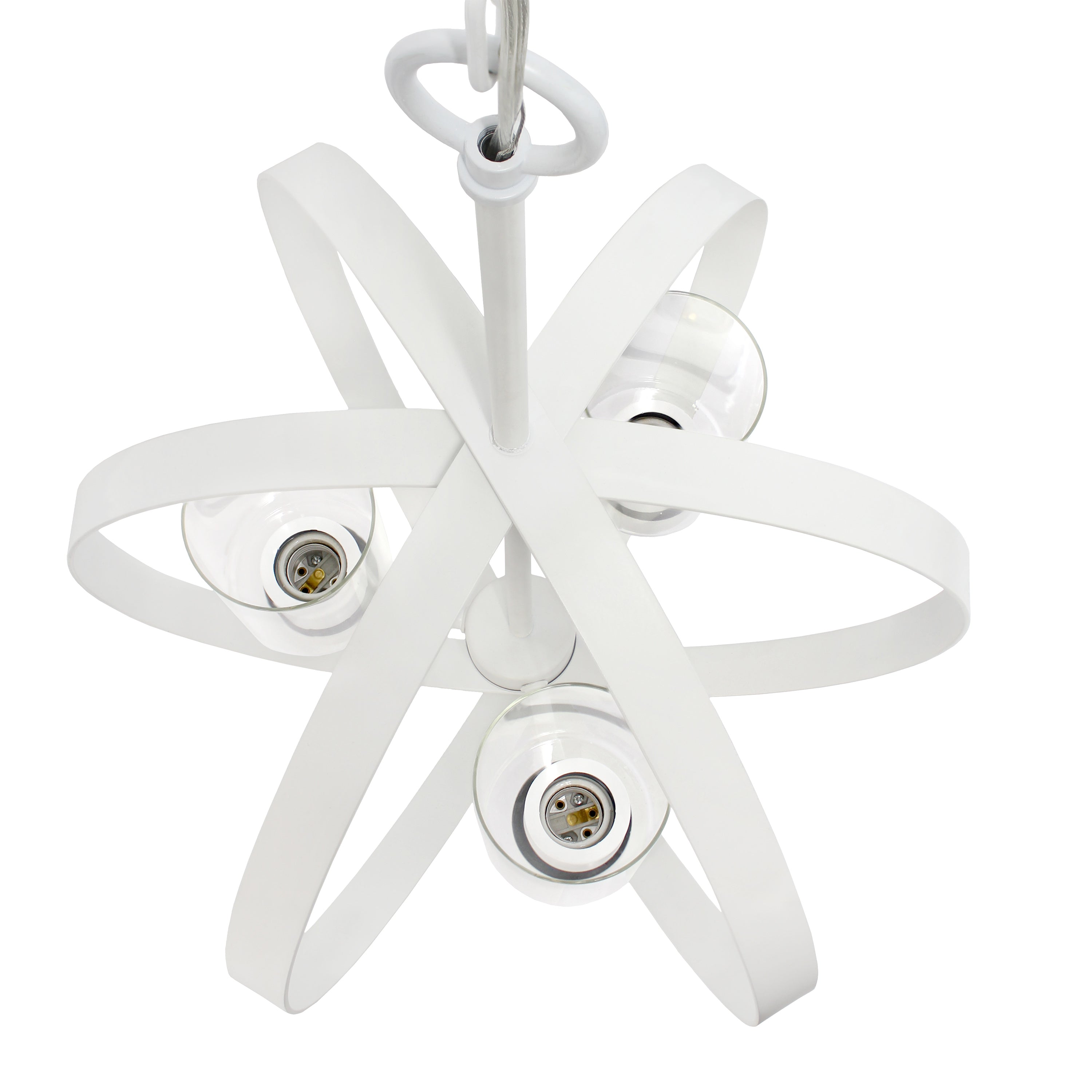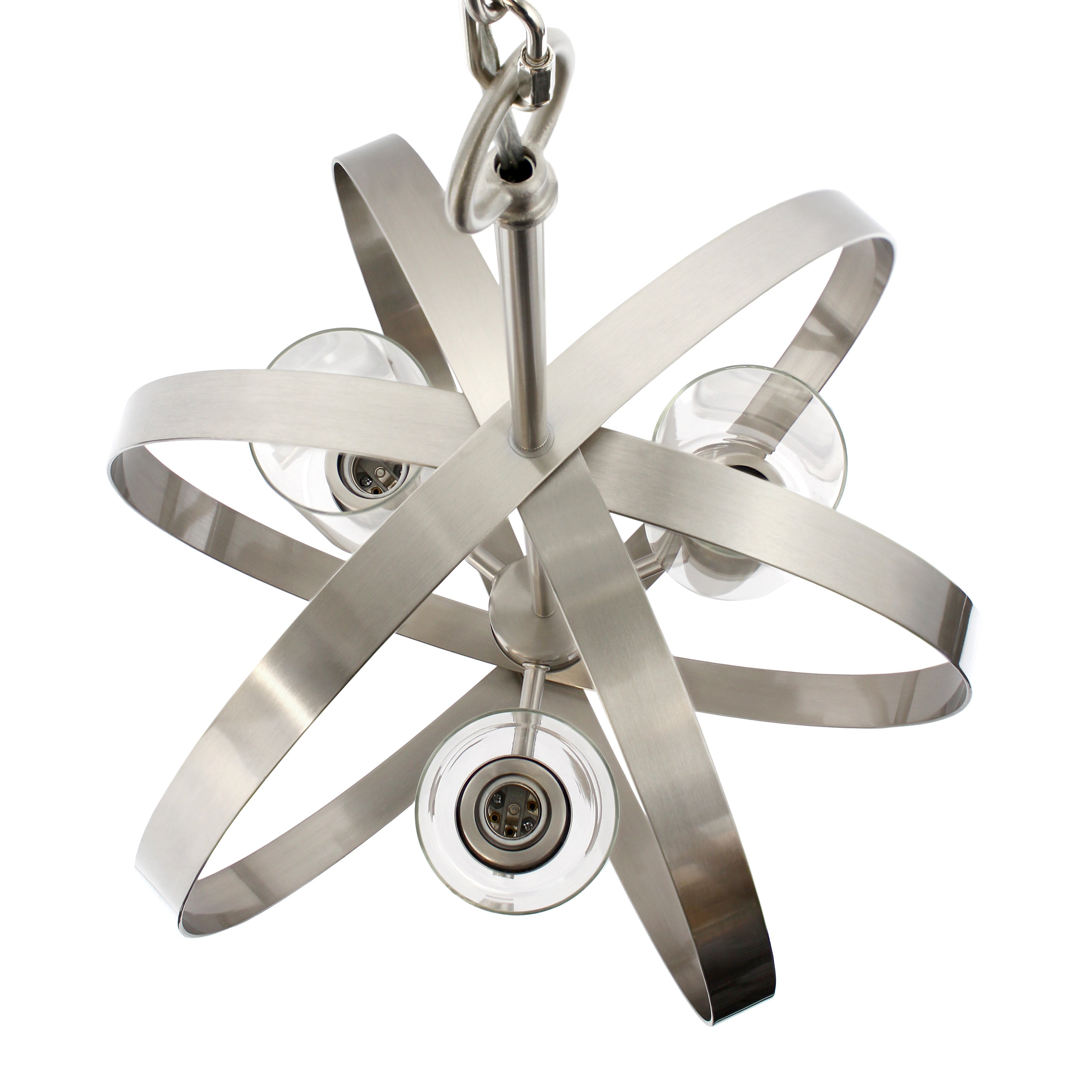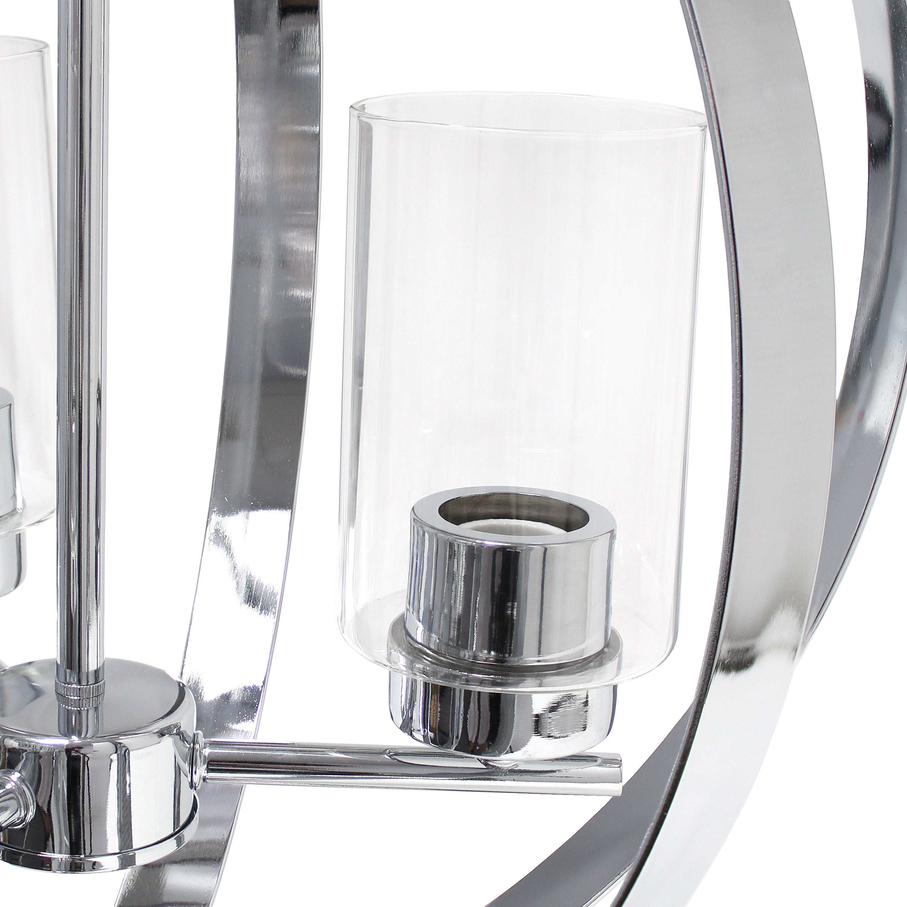 Three cylindrical clear glass shades are surrounded by curvy metal bands to create a dramatic silhouette adding charm and character to any room in your home. Adjust this chandelier pendant fixture to the height of your liking in your kitchen, foyer, hallway, bedroom, living room or dining room. This eye catching modern piece is sure to make a statement!
