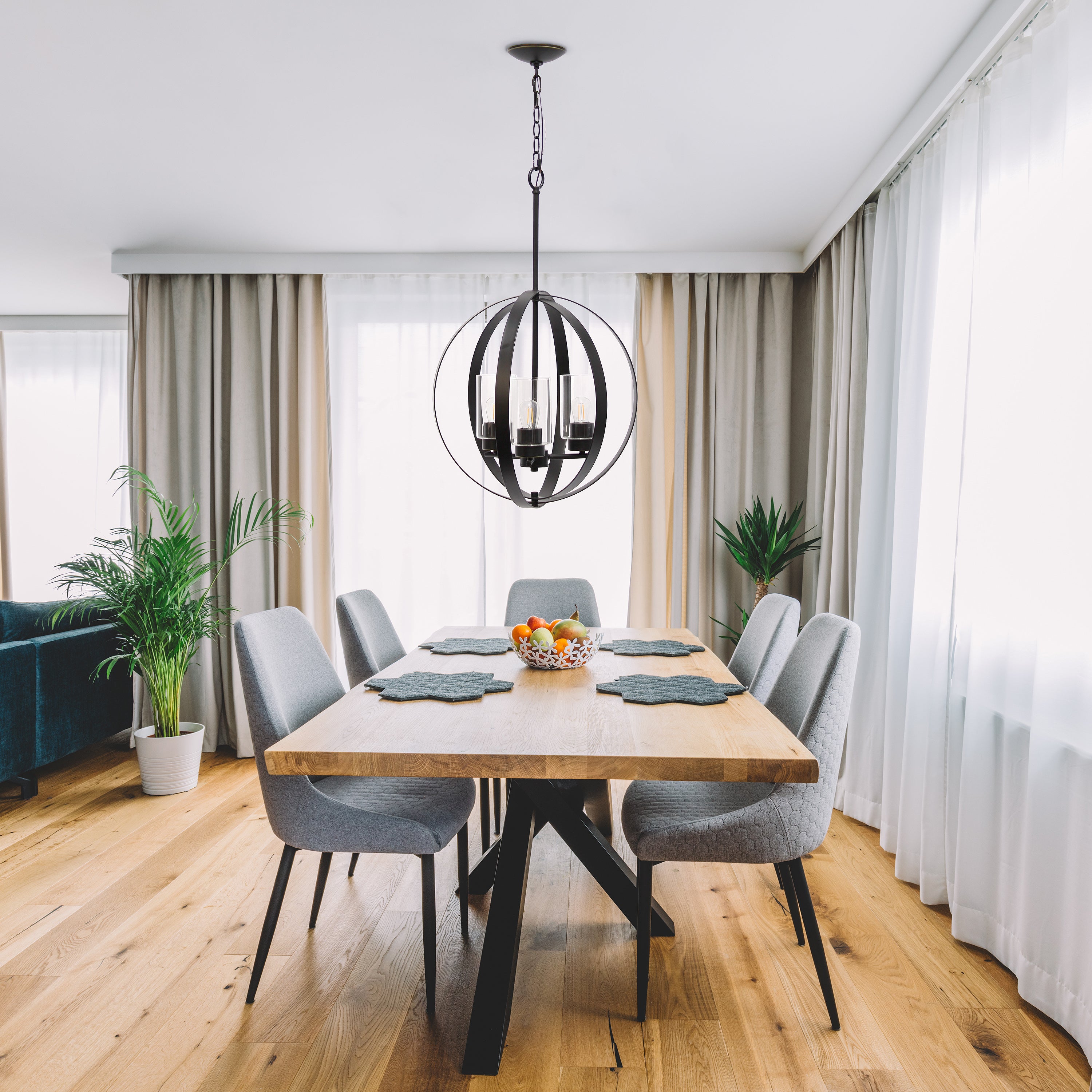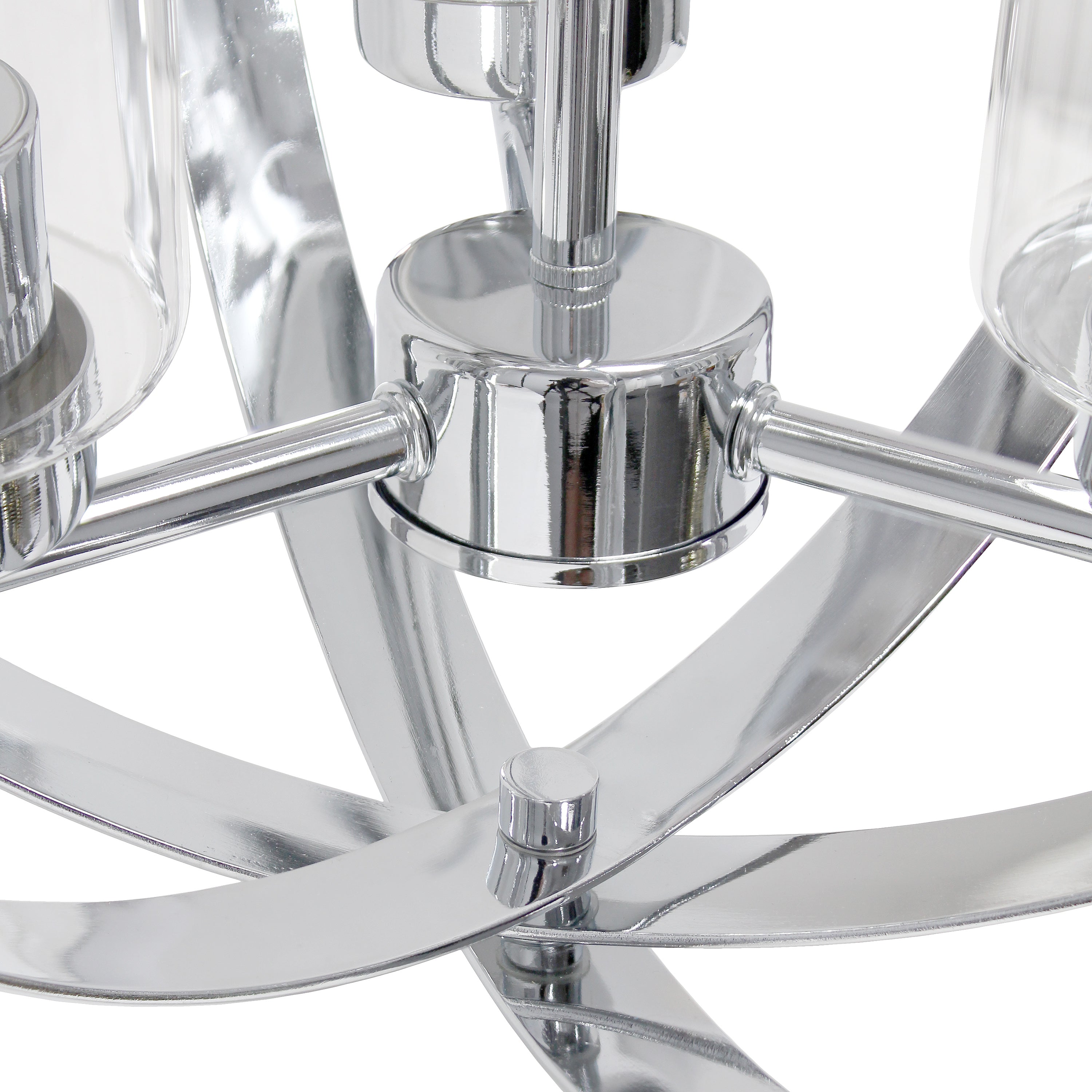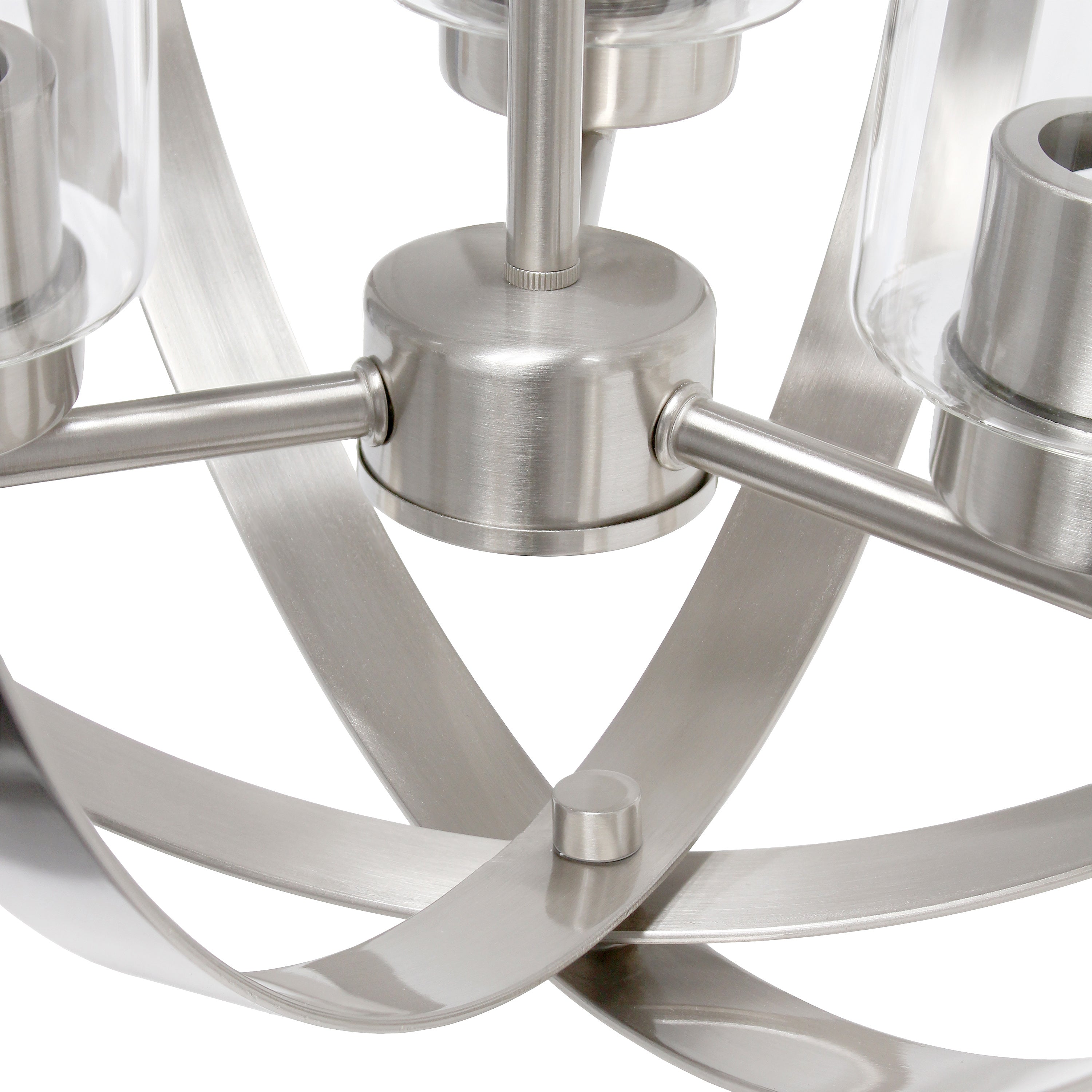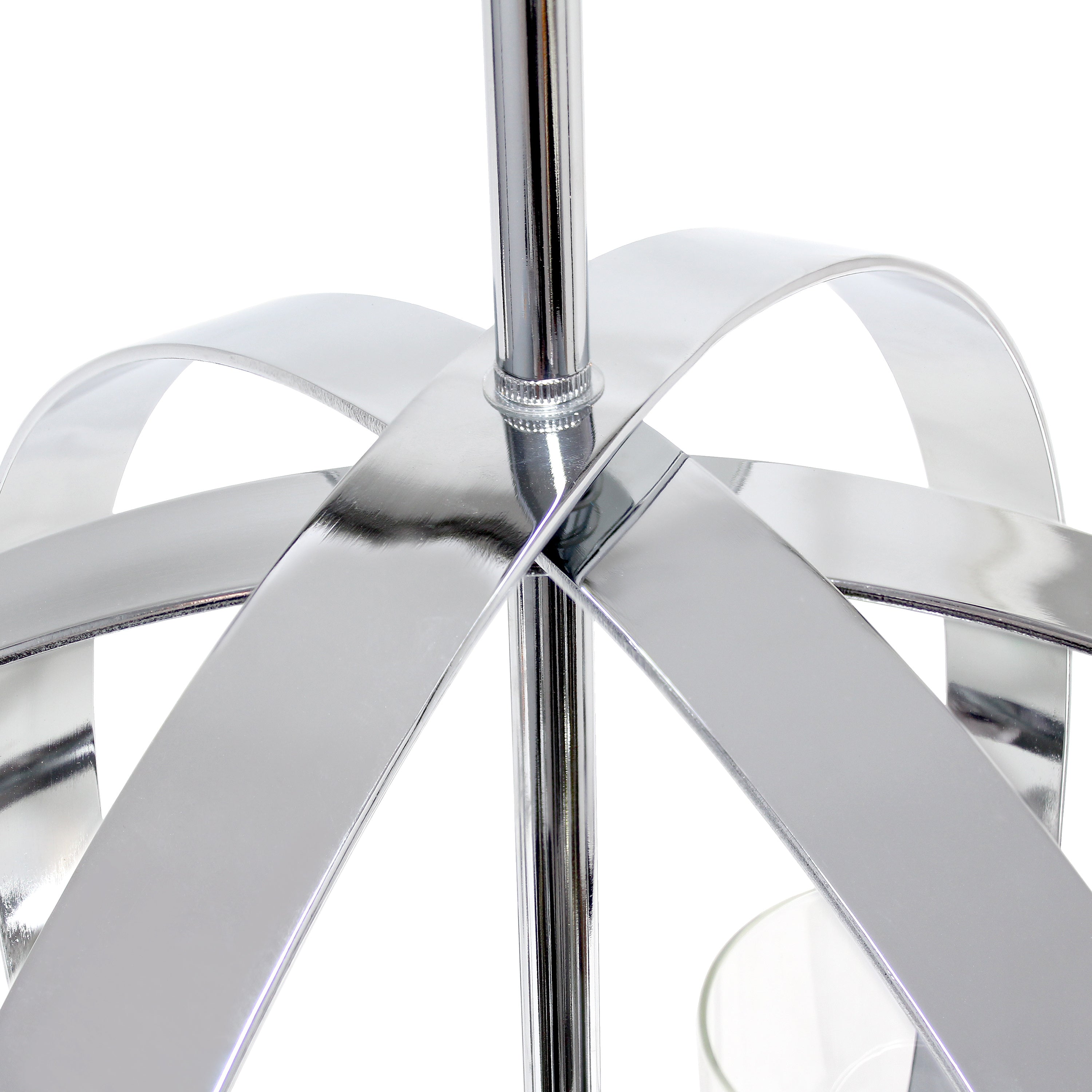 Three cylindrical clear glass shades are surrounded by curvy metal bands to create a dramatic silhouette adding charm and character to any room in your home. Adjust this chandelier pendant fixture to the height of your liking in your kitchen, foyer, hallway, bedroom, living room or dining room. This eye catching modern piece is sure to make a statement!