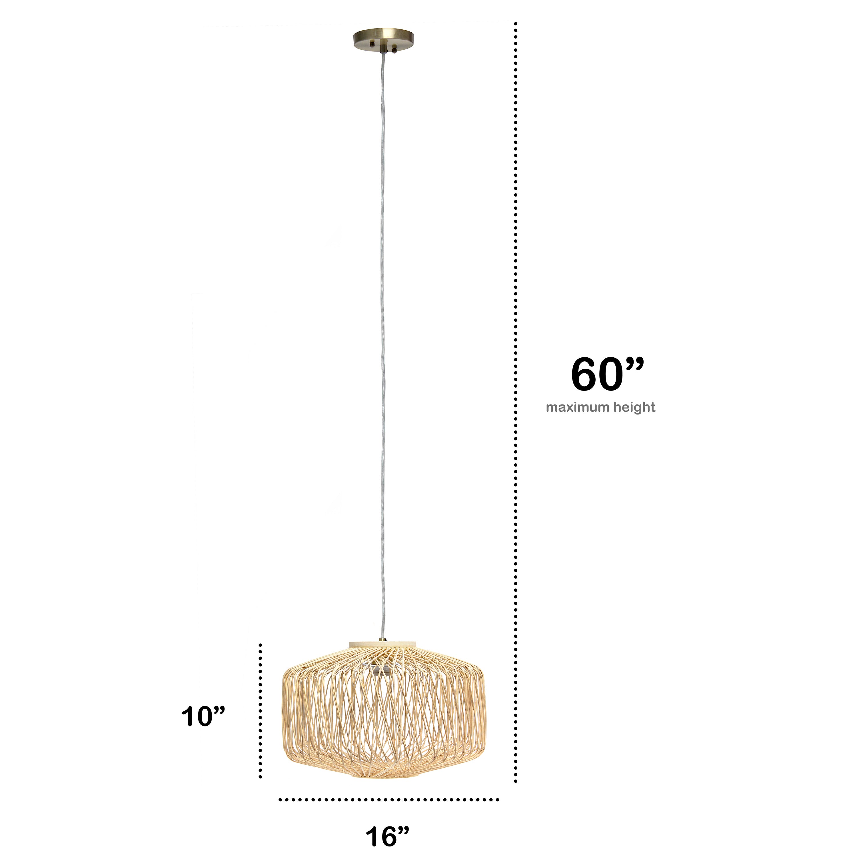 - 16" L X 16" W X pendant: 10" H, canopy to bottom of pendant: 60" H