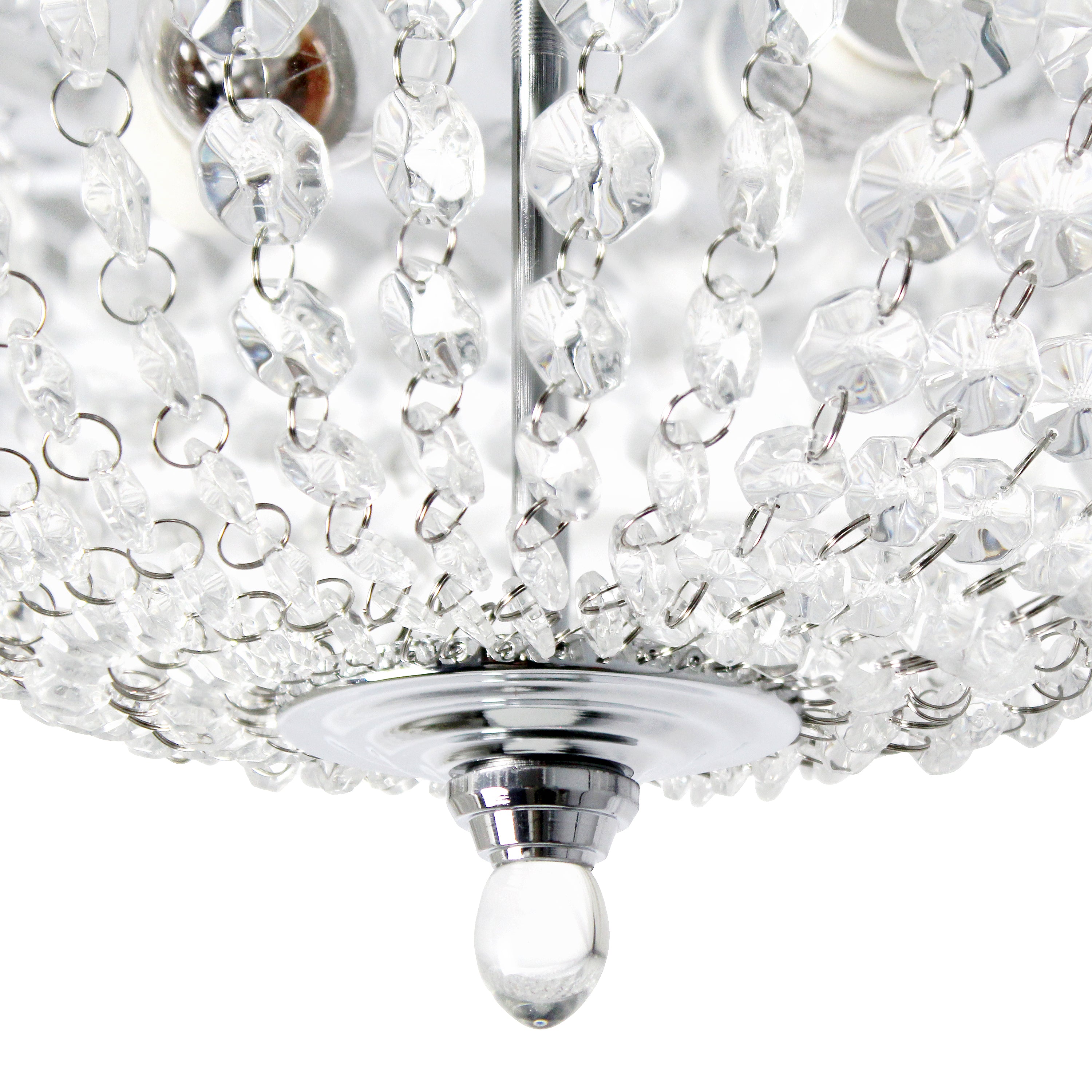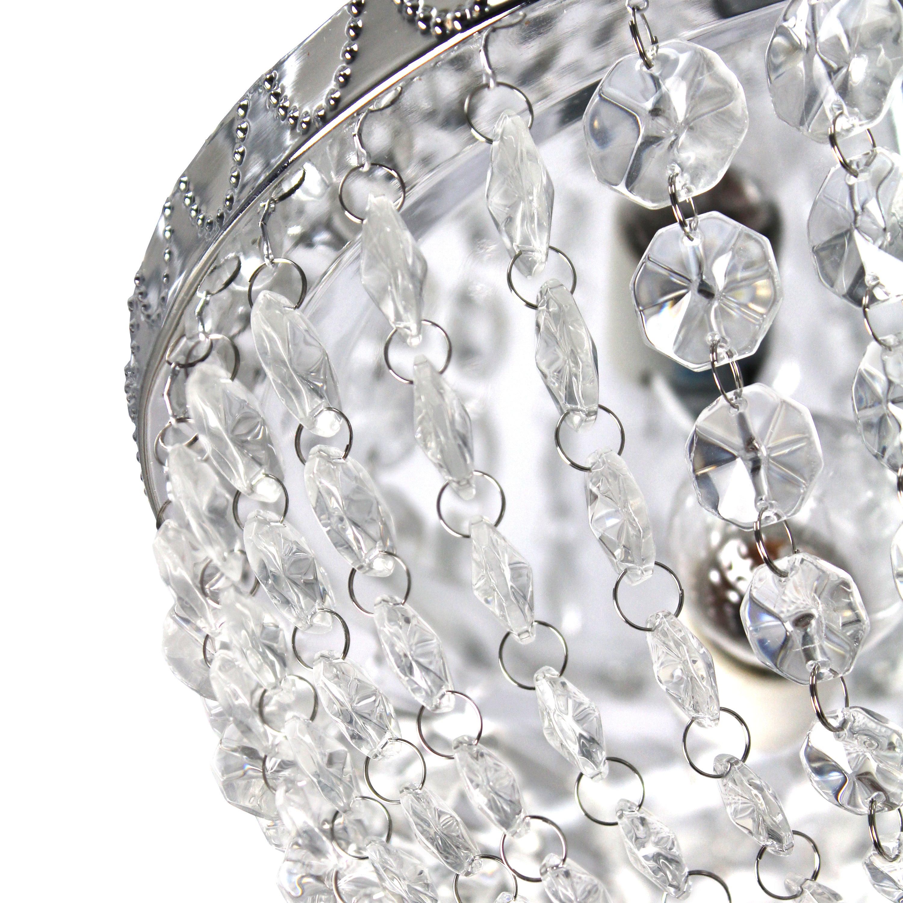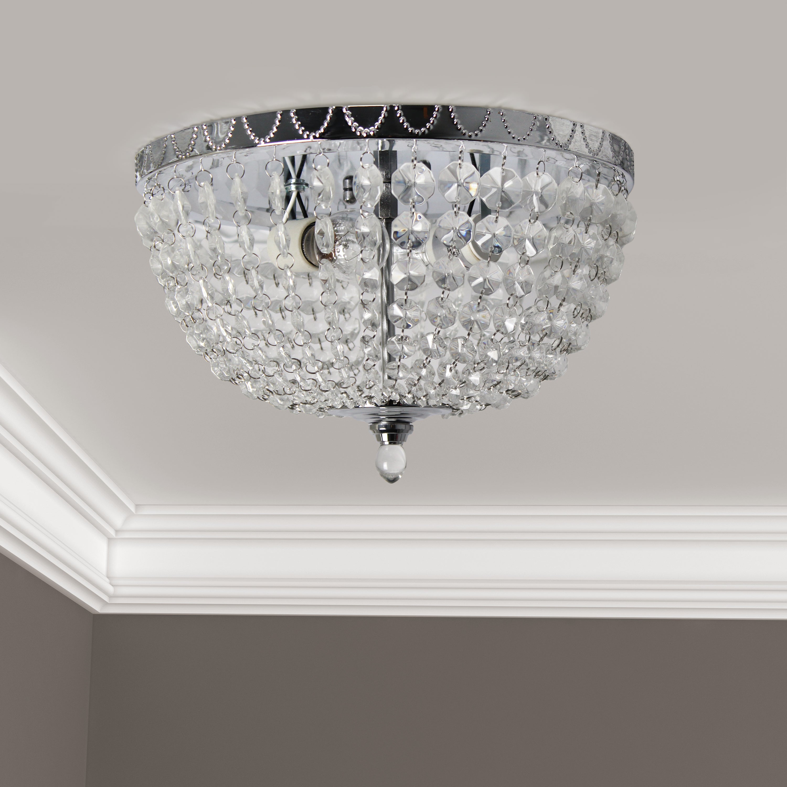 Enhance your room with this exquisite 2 light crystal drop ceiling flush mount. Featuring a gorgeous crystal shade and chrome metal accents, this chic light will add sophistication and charm to any room!