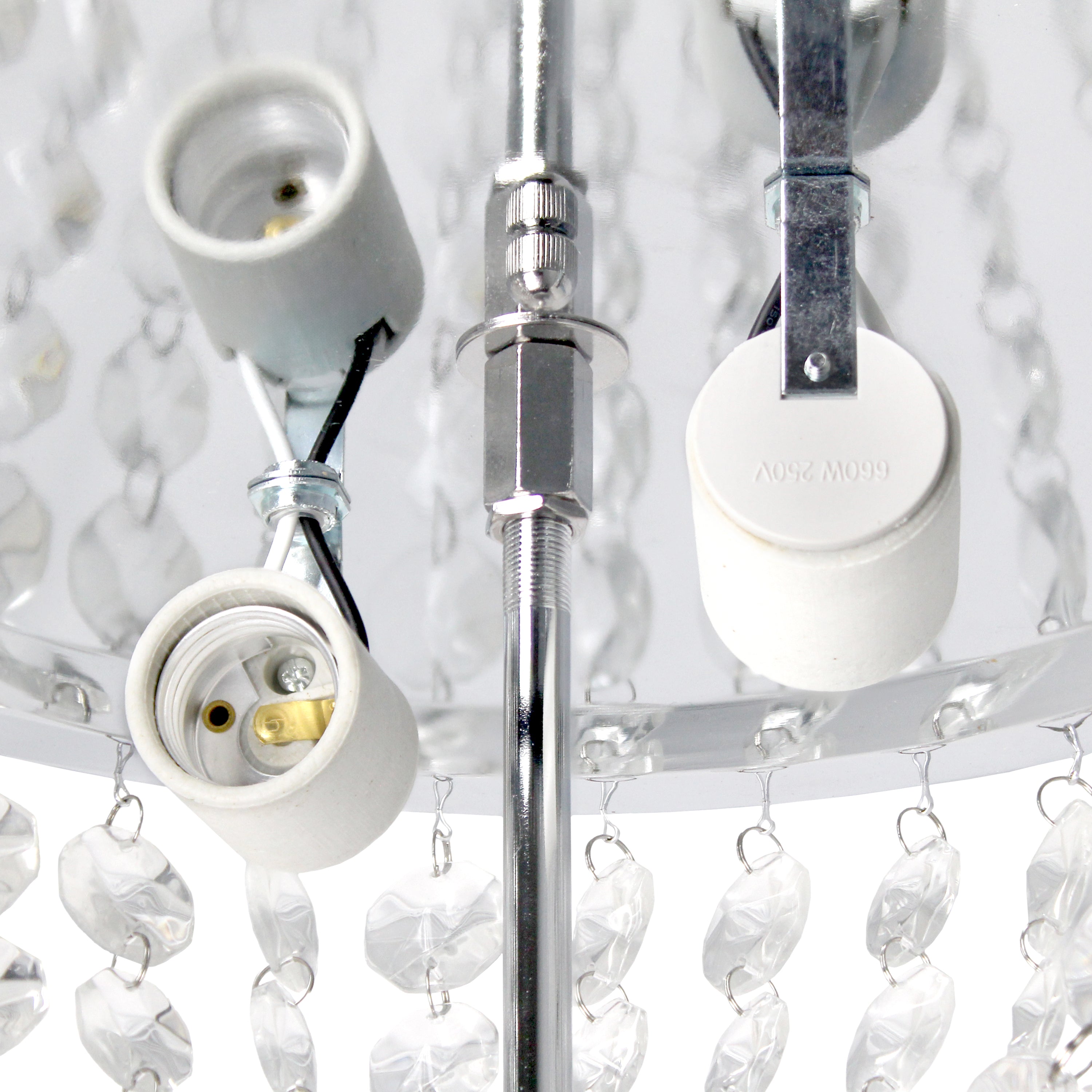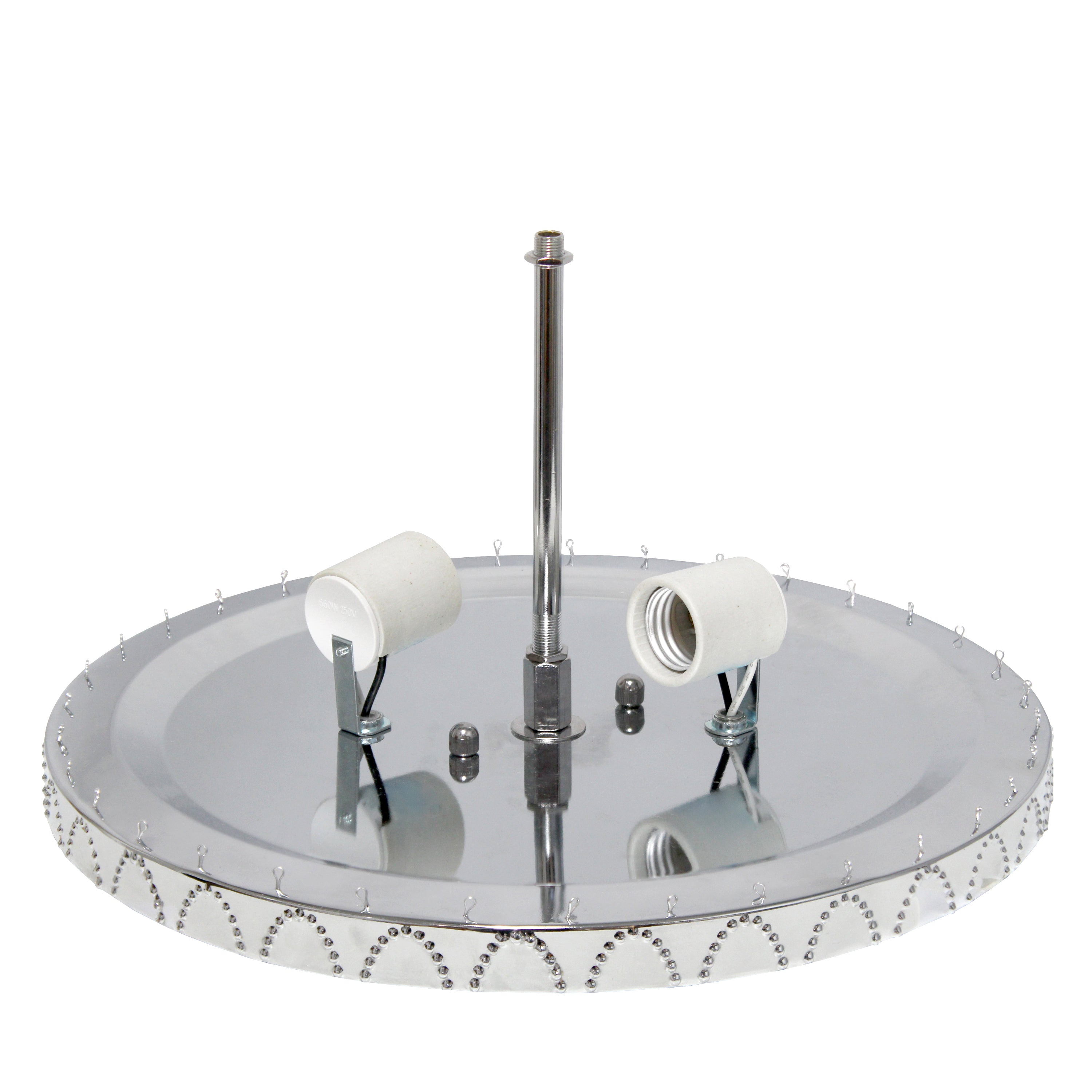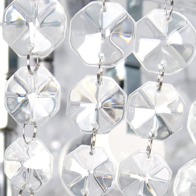 Enhance your room with this exquisite 2 light crystal drop ceiling flush mount. Featuring a gorgeous crystal shade and chrome metal accents, this chic light will add sophistication and charm to any room!