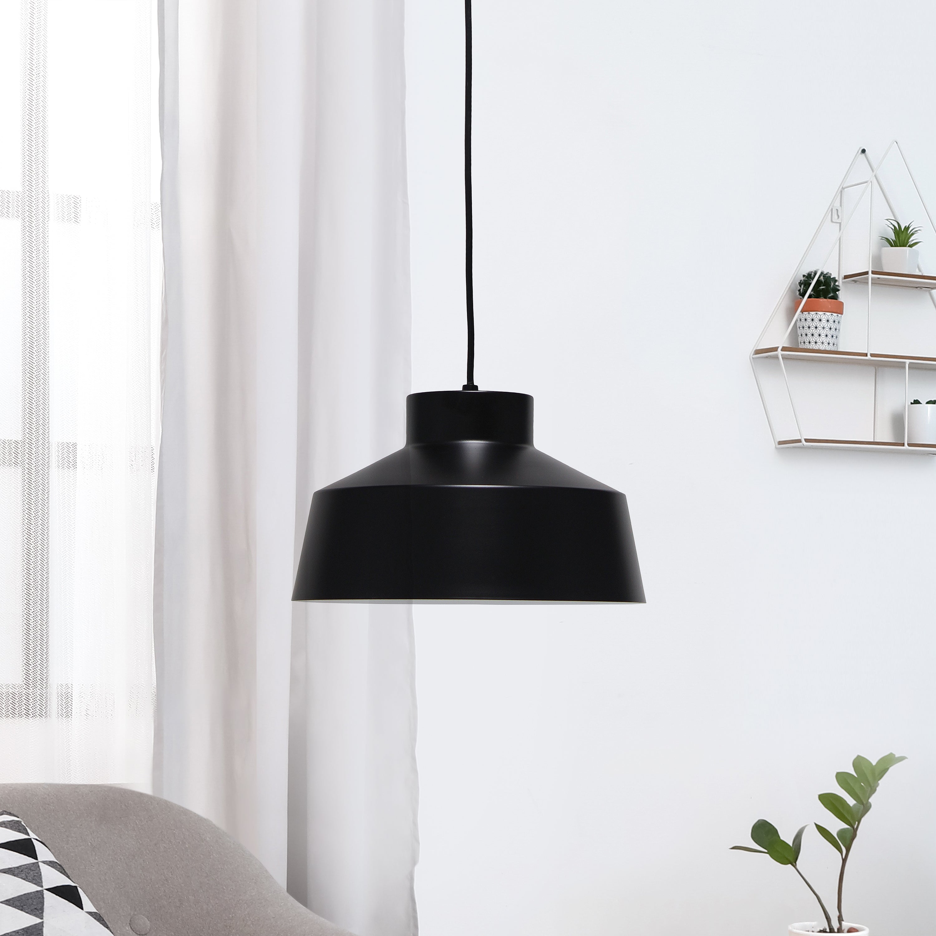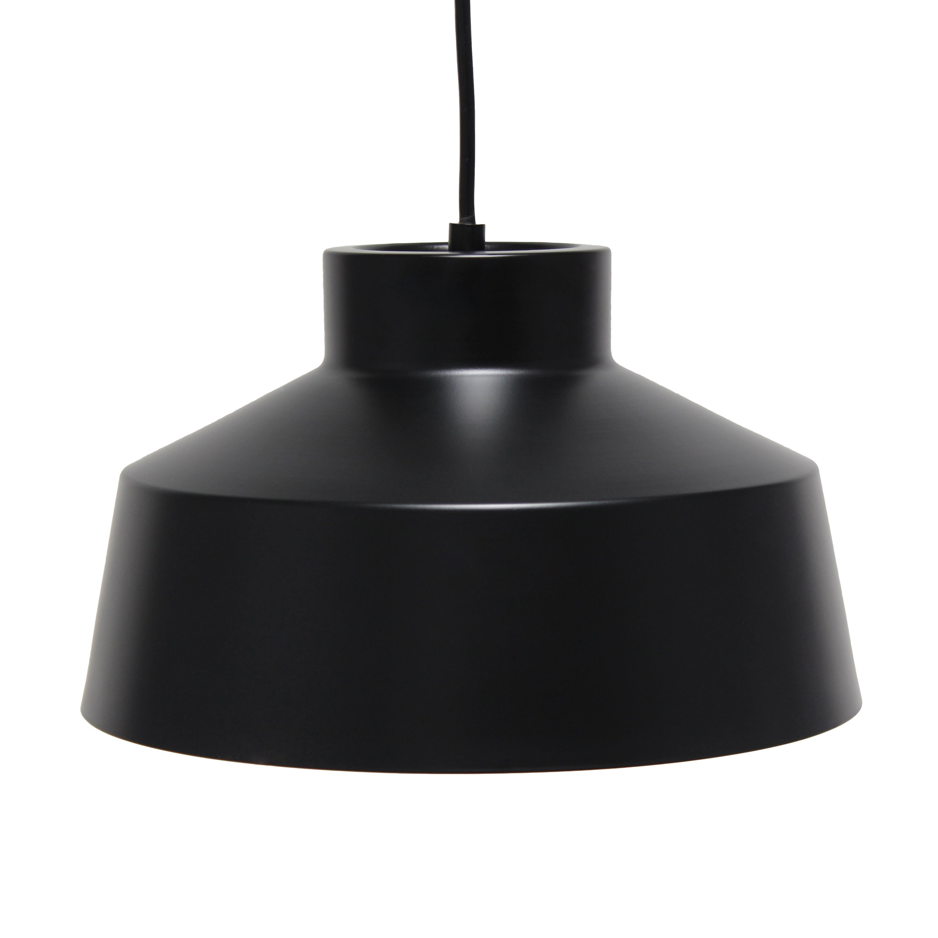 A vintage look with a modern feel, this hardwired pendant hangs exquisitely above your space. The smooth black finish from canopy down to the base of the pendant provides a simplicity built for a number of complimenting decor styles. Tastefully designed, this lamp is perfect to hang above your kitchen island, dining room, or space of your choice!