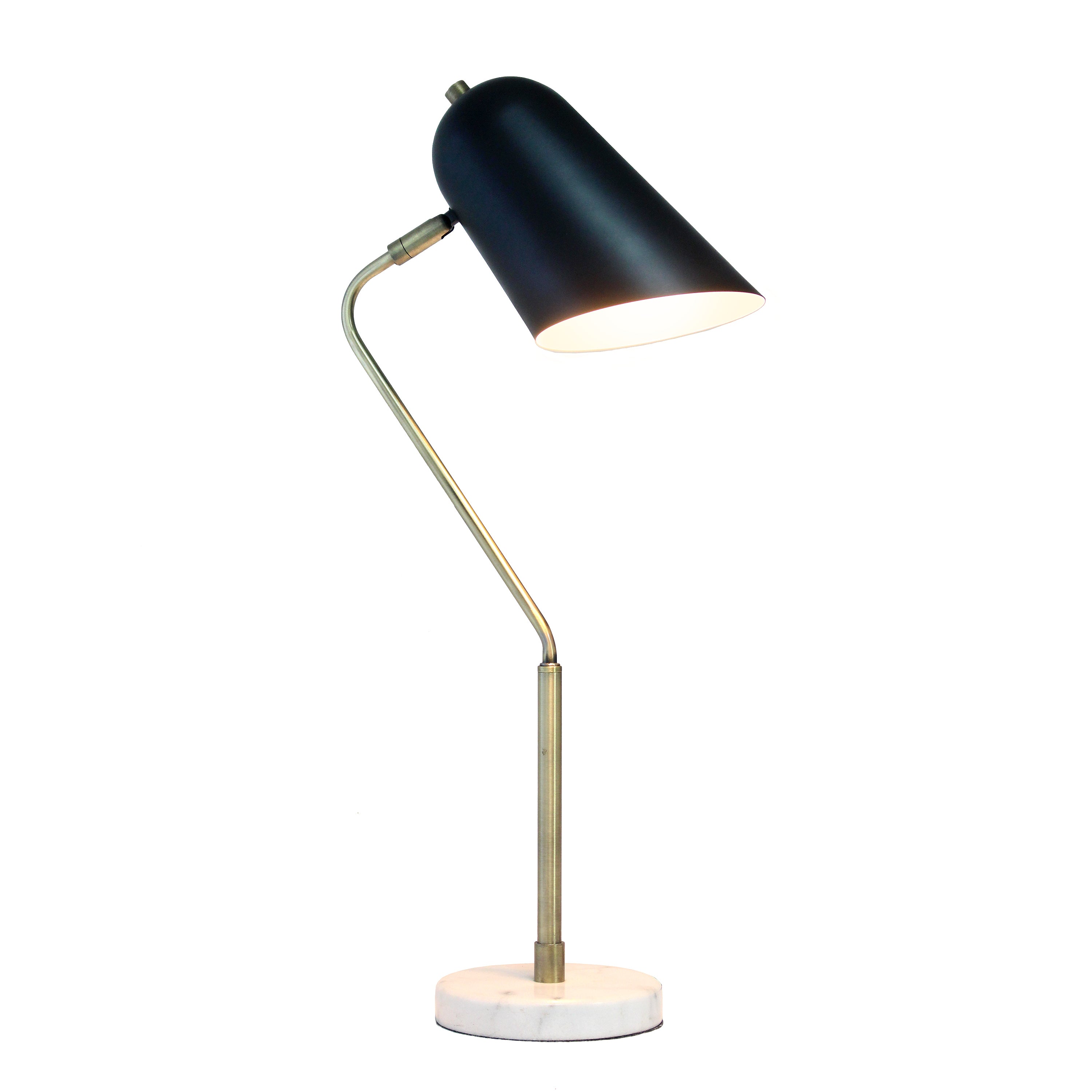 Modern and polished, this desk lamp is sure to add a touch of style to any room in your home. The antique brass metal arm and matte black angled metal shade are paired with a white marble base, the ideal mix of materials for an on trend lamp! Perfect for your living room, bedroom, office or anywhere you need to add a touch of sophistication.