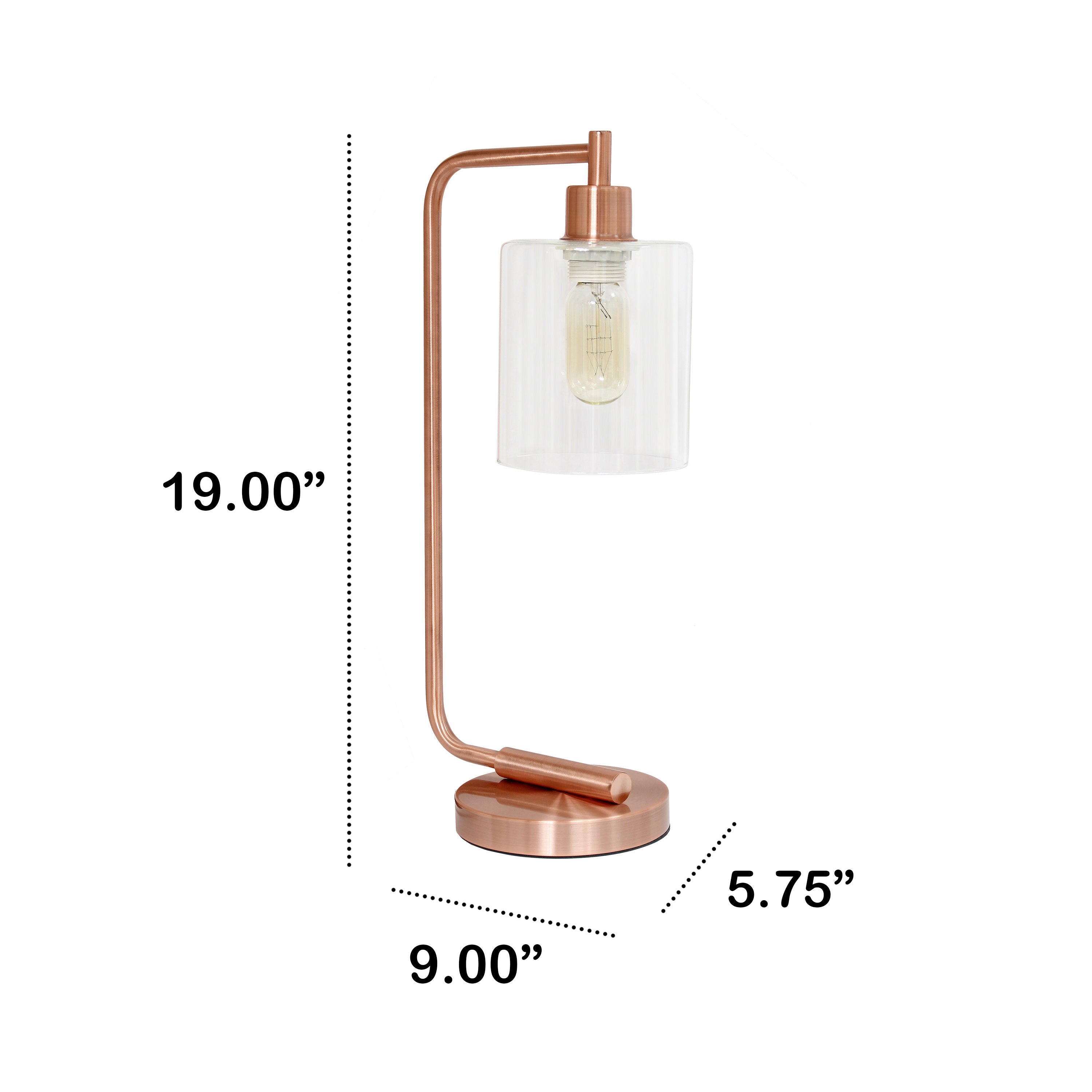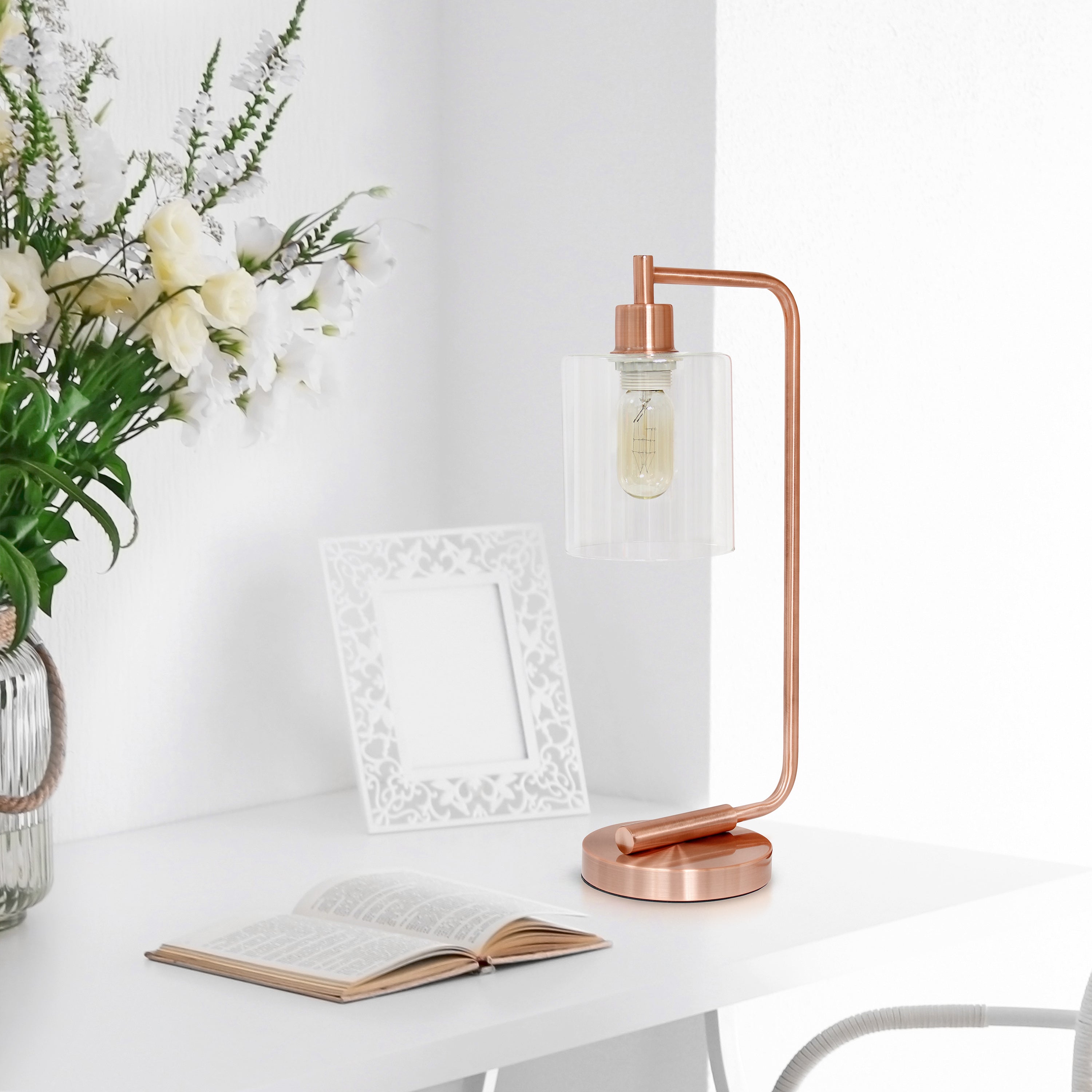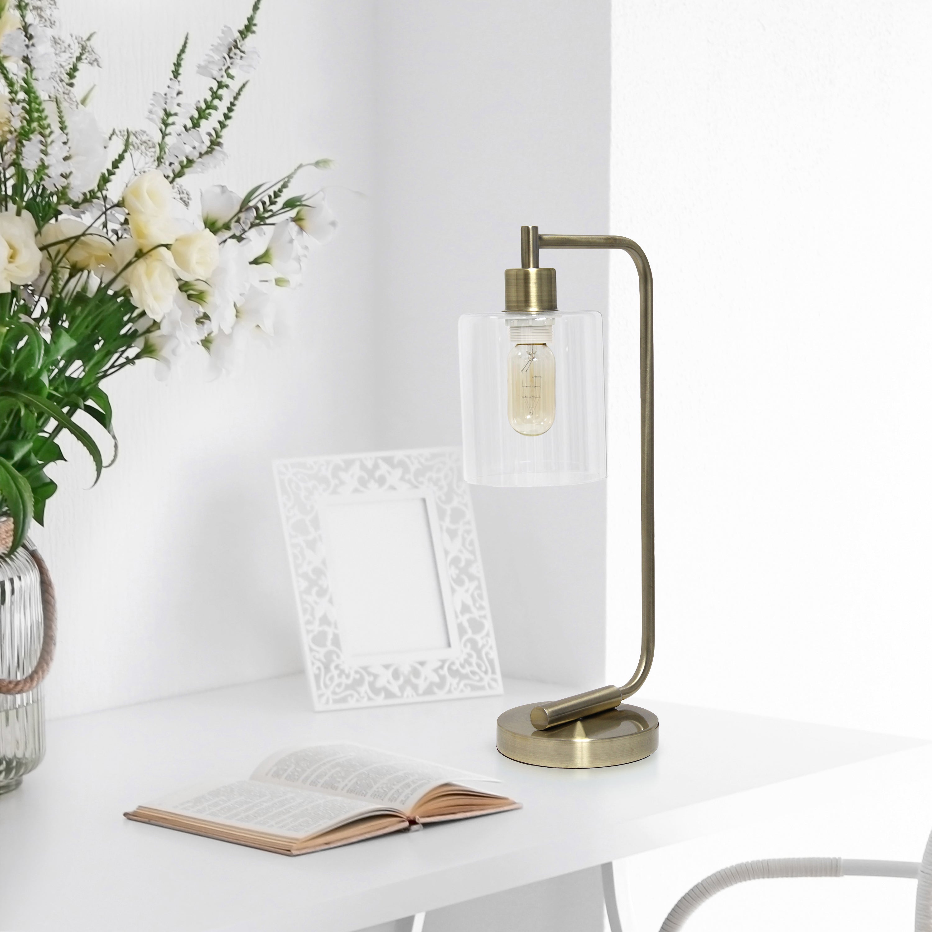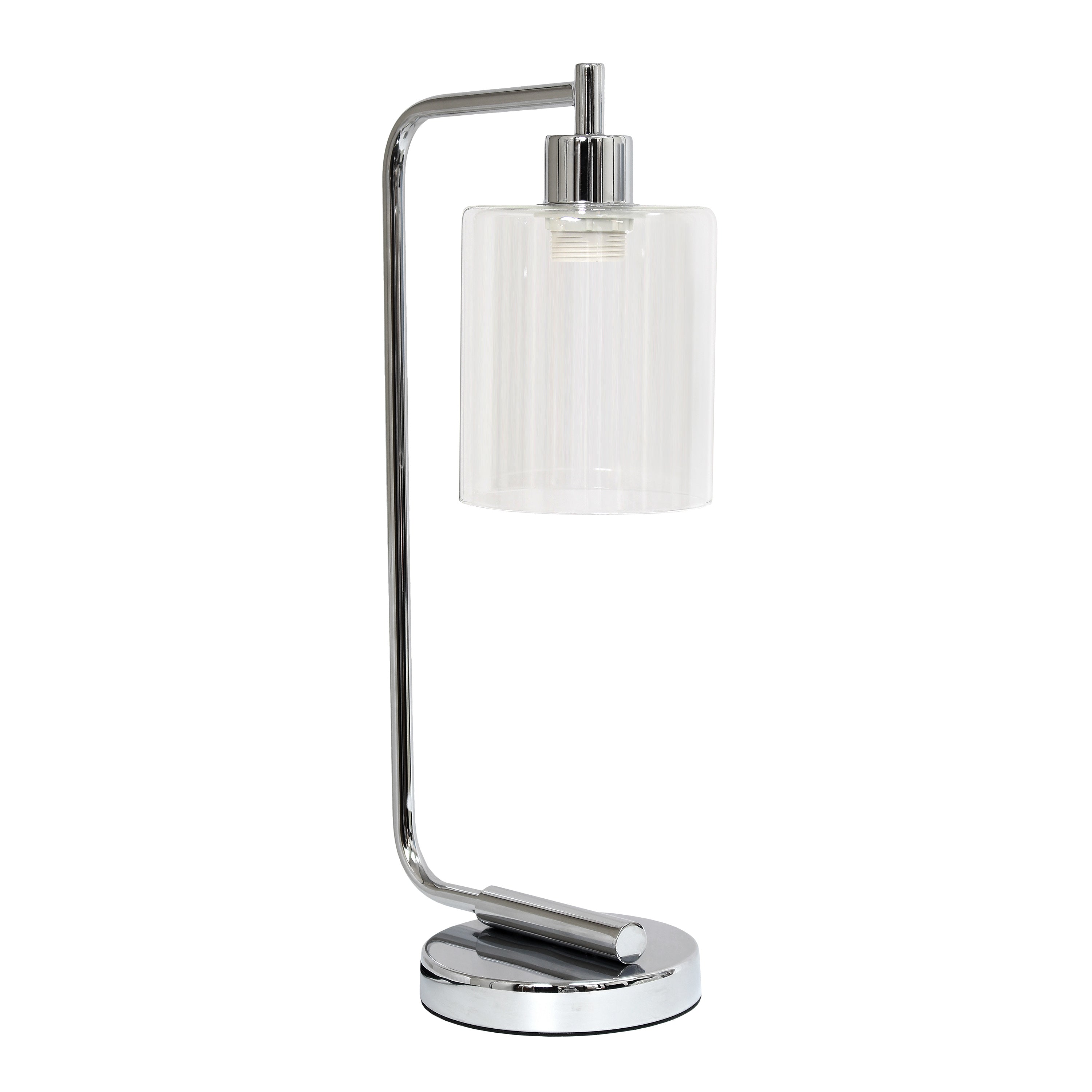 Simple yet modern, this desk lamp is sure to add a touch of style to any room in your home. This beautifully crafted iron desk lamp combines a simple base with a curved arm and a clear cylinder glass shade for a sleek and sophisticated combination. Perfect for your desk, foyer or bedside table for a modest, refined look in trendy lighting.