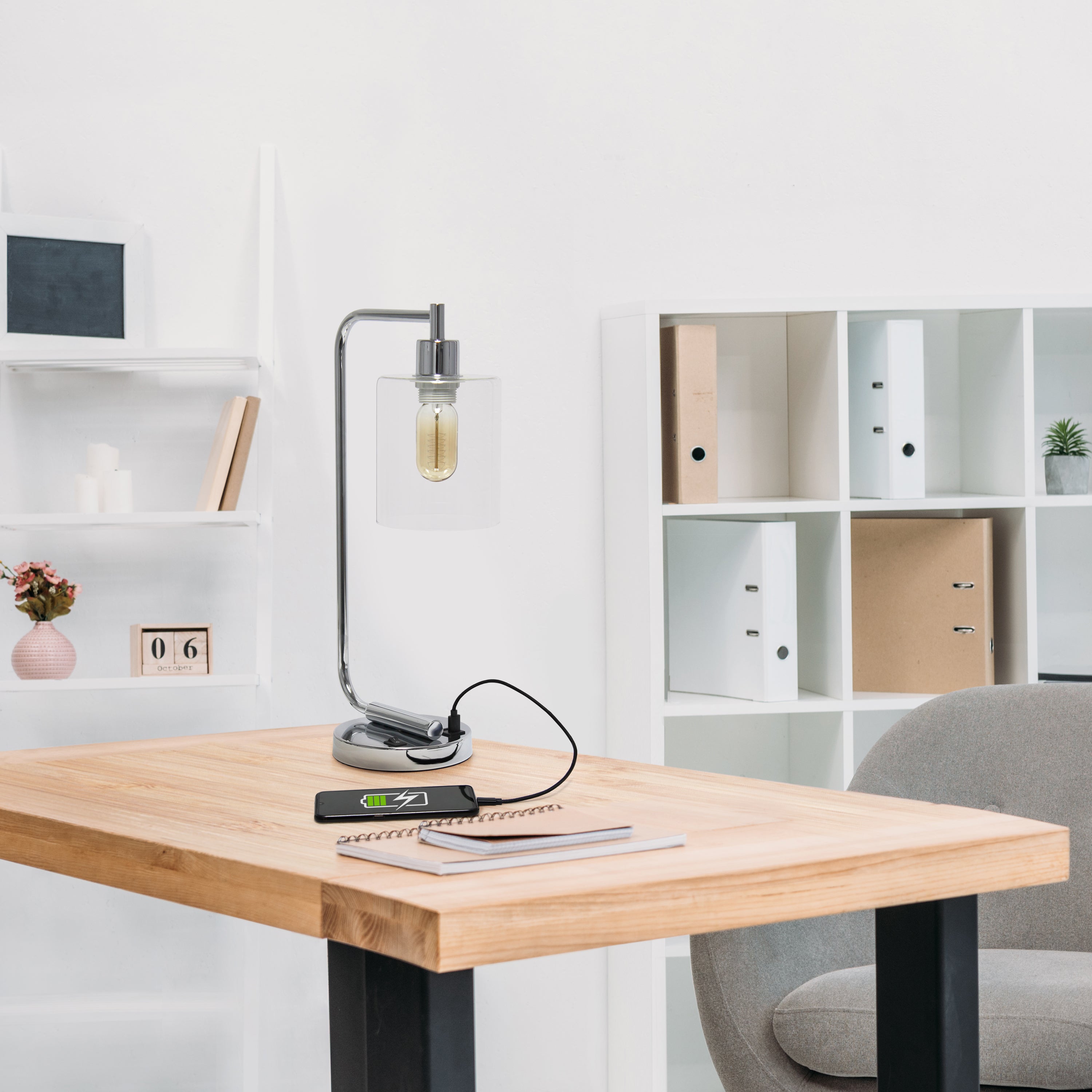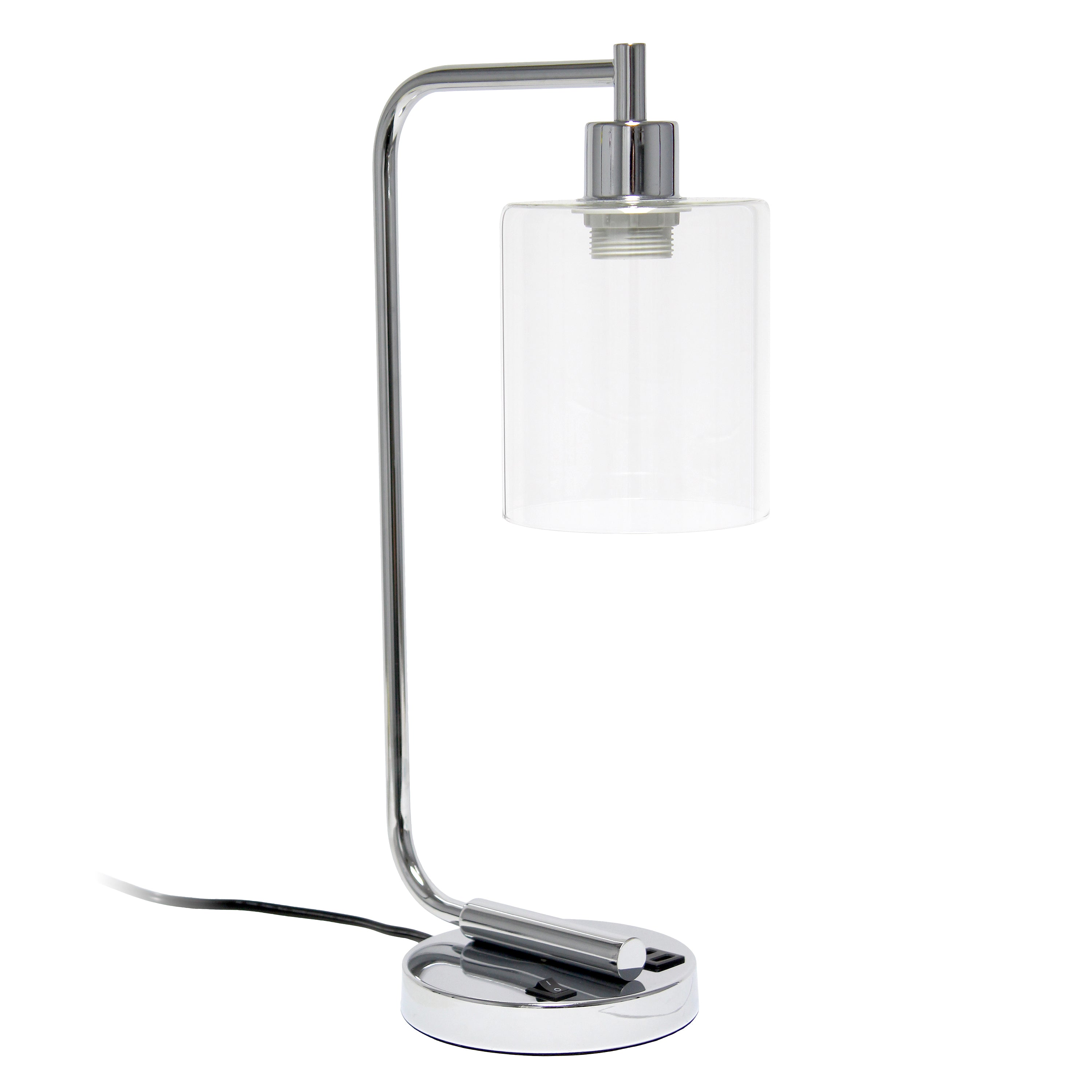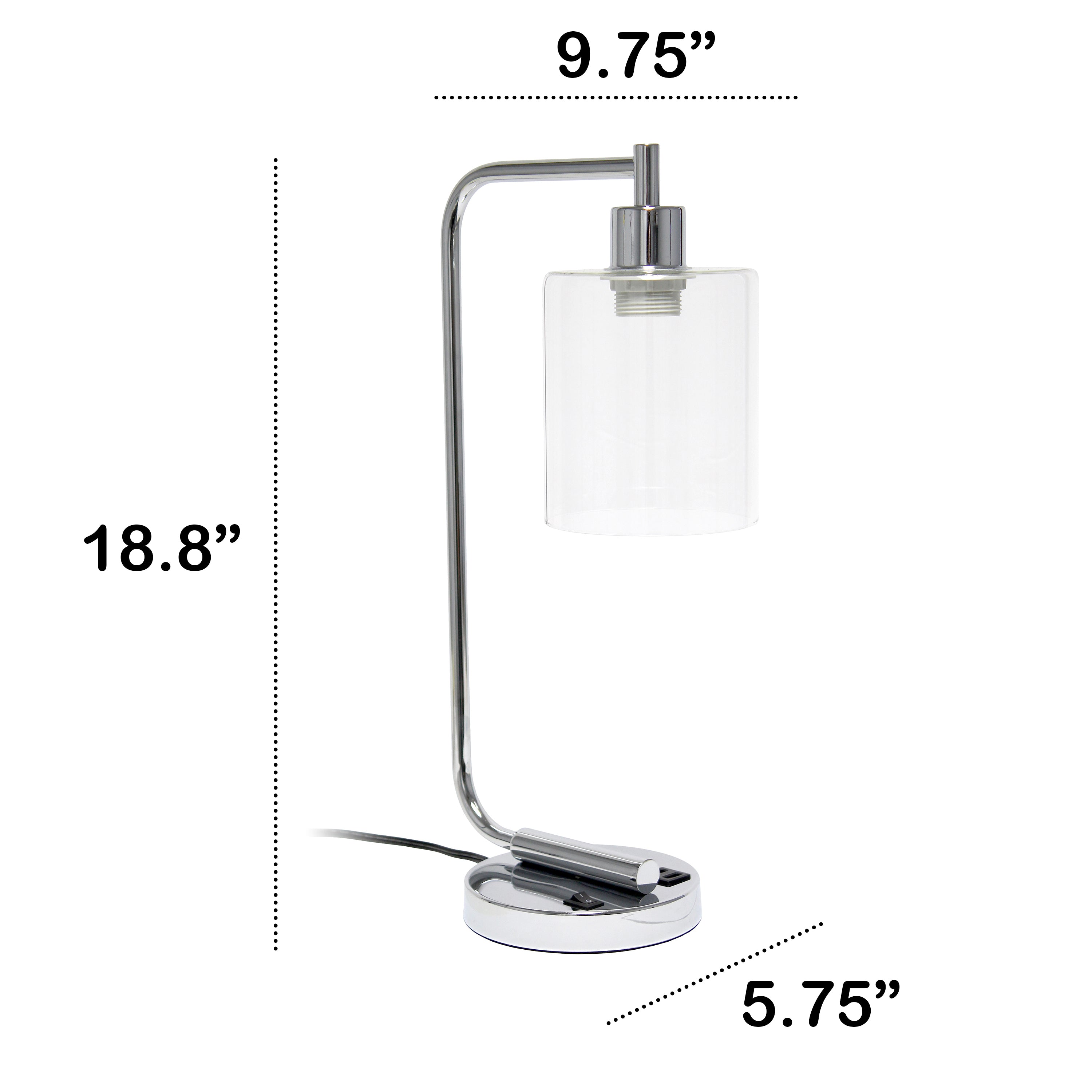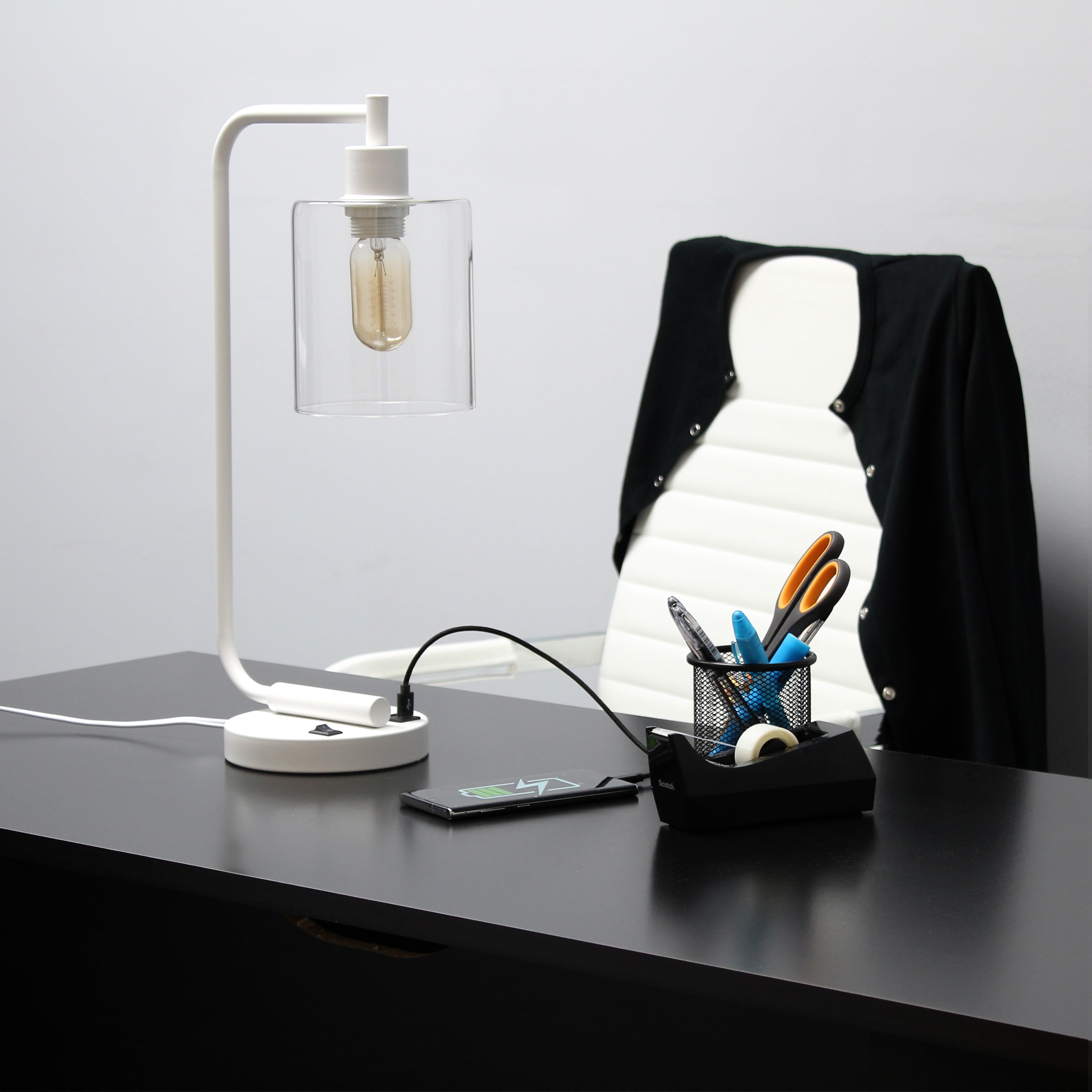 Simple yet modern, this desk lamp is sure to add a touch of style to any room in your home. This beautifully crafted iron desk lamp combines a simple base with a curved arm, (2) USB ports, and a clear cylinder glass shade for a sleek and sophisticated combination. Perfect for your desk, foyer or bedside table for a modest, refined look in trendy lighting.