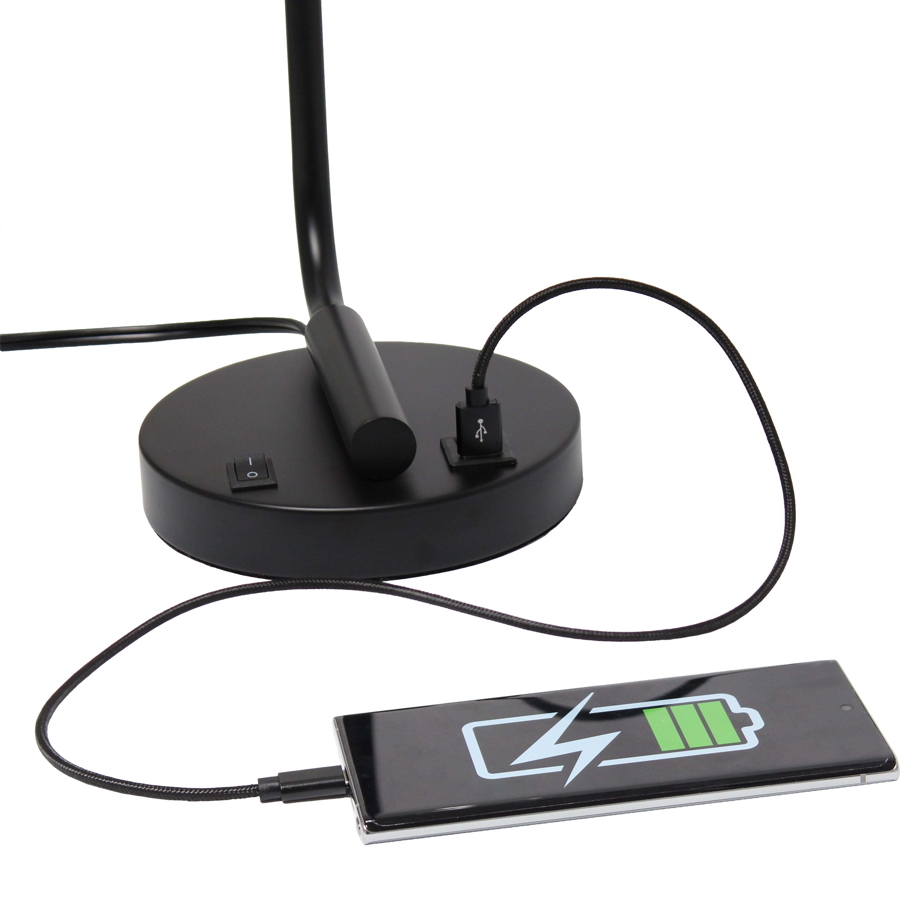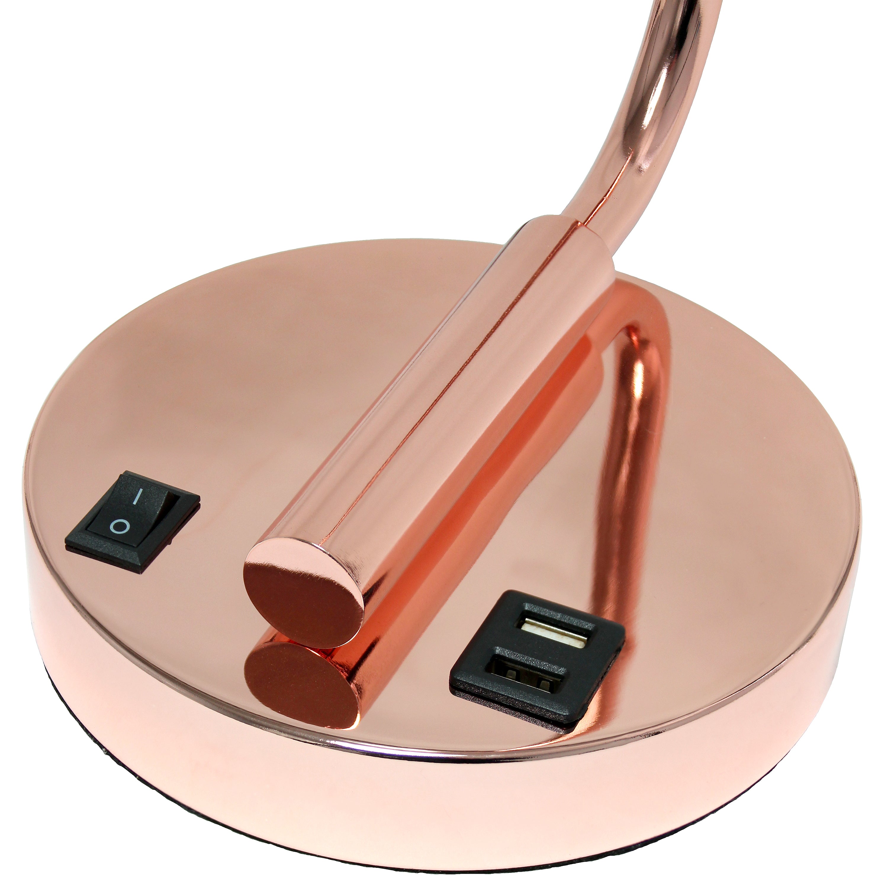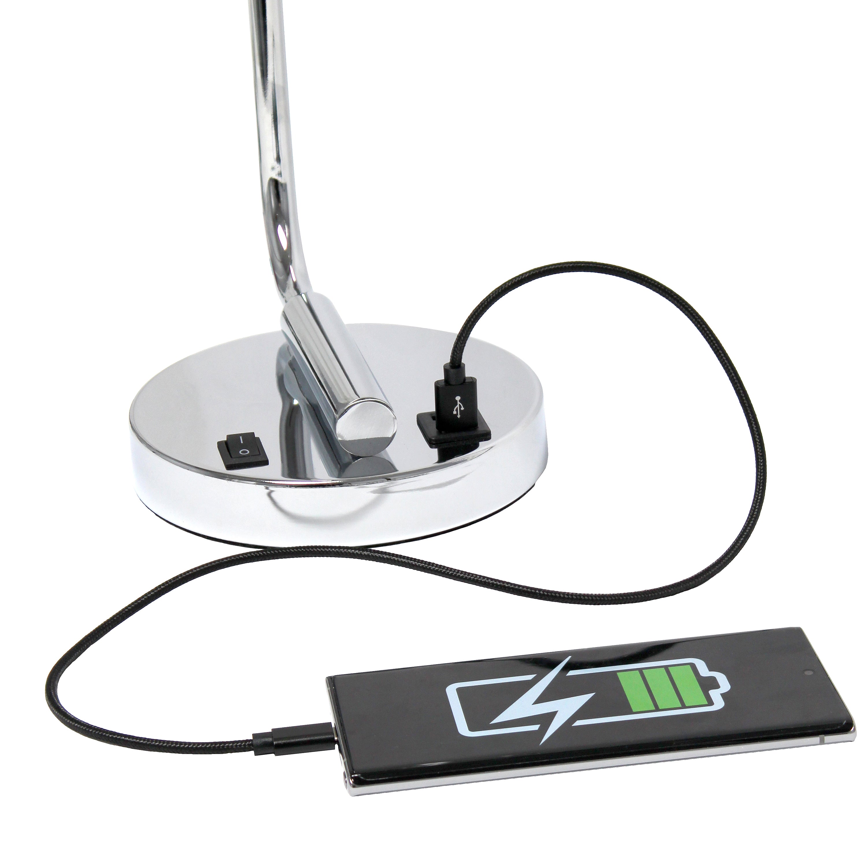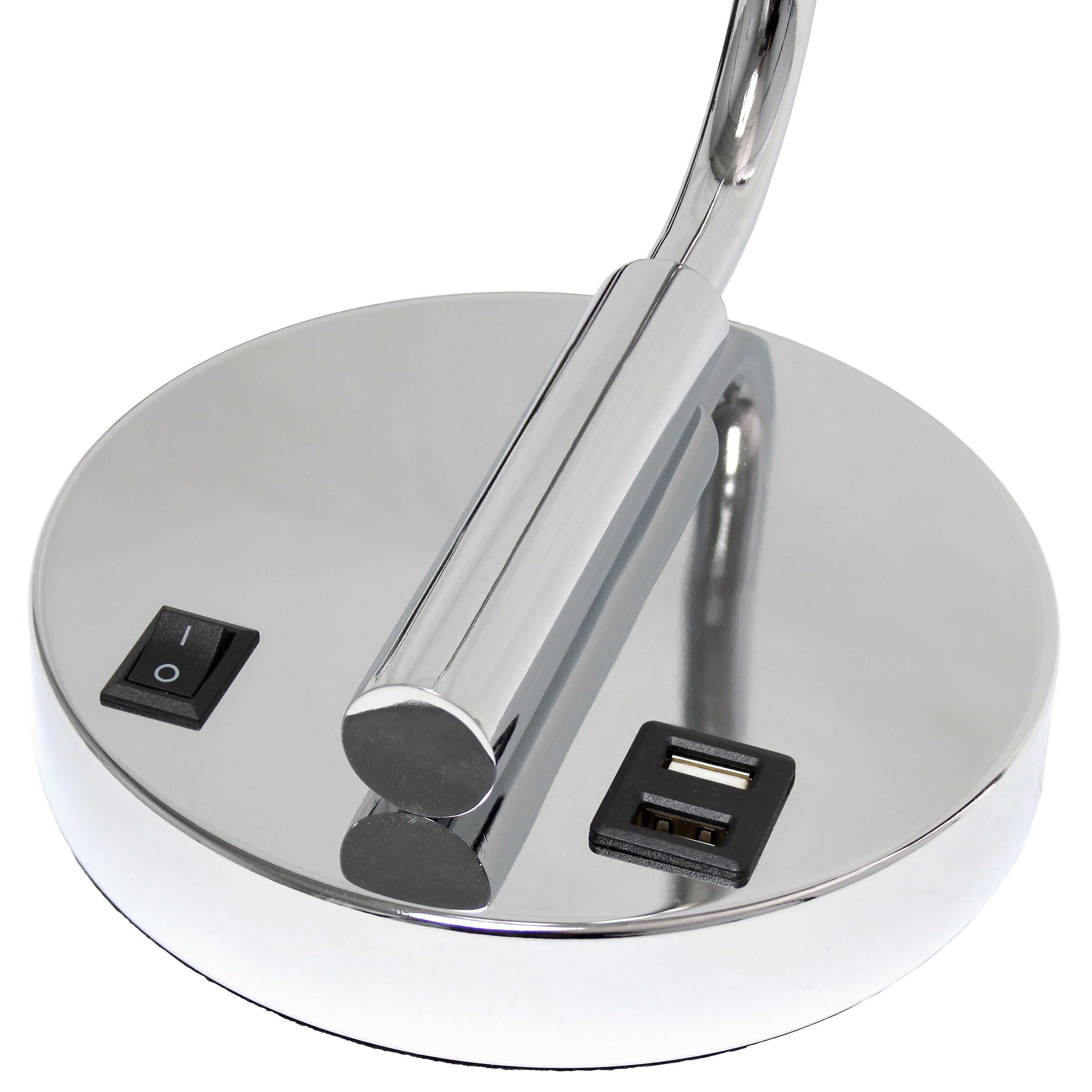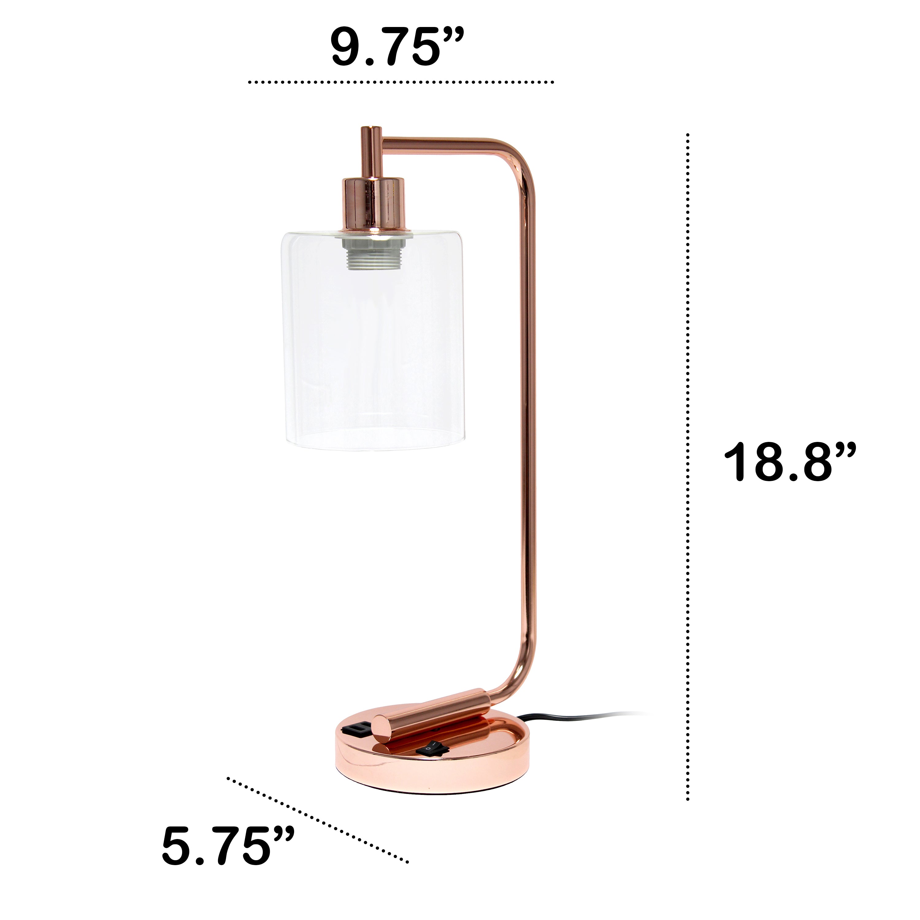 Simple yet modern, this desk lamp is sure to add a touch of style to any room in your home. This beautifully crafted iron desk lamp combines a simple base with a curved arm, (2) USB ports, and a clear cylinder glass shade for a sleek and sophisticated combination. Perfect for your desk, foyer or bedside table for a modest, refined look in trendy lighting.