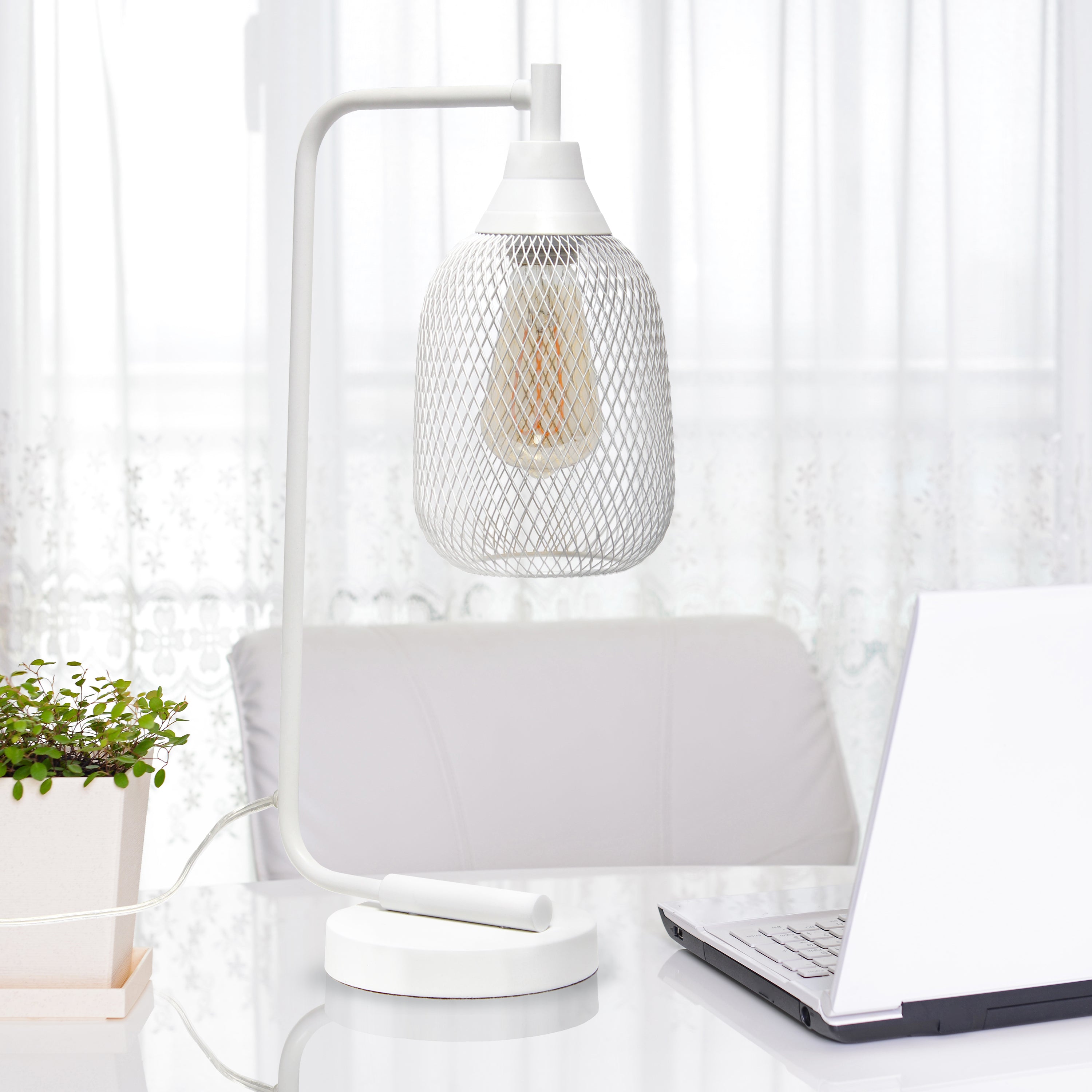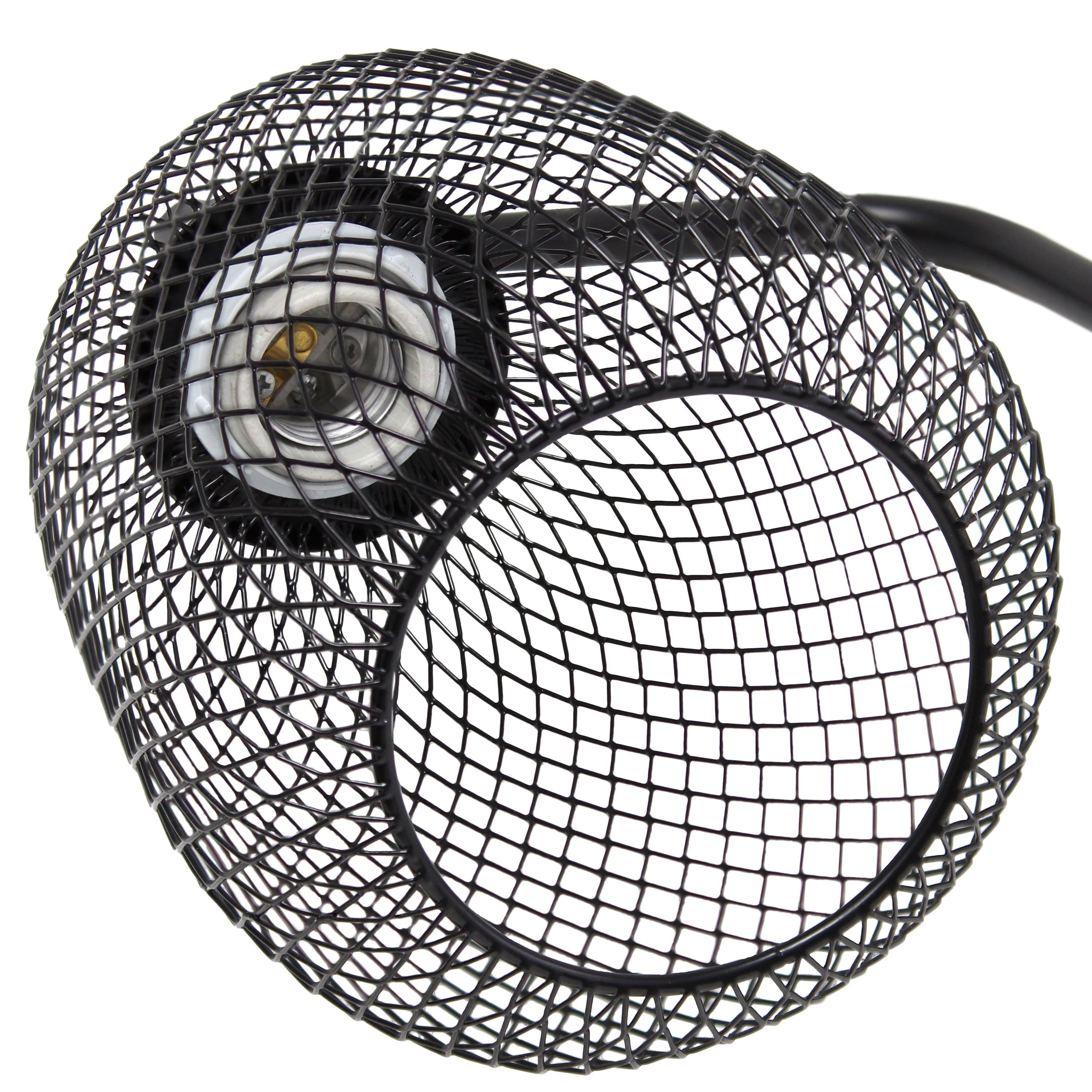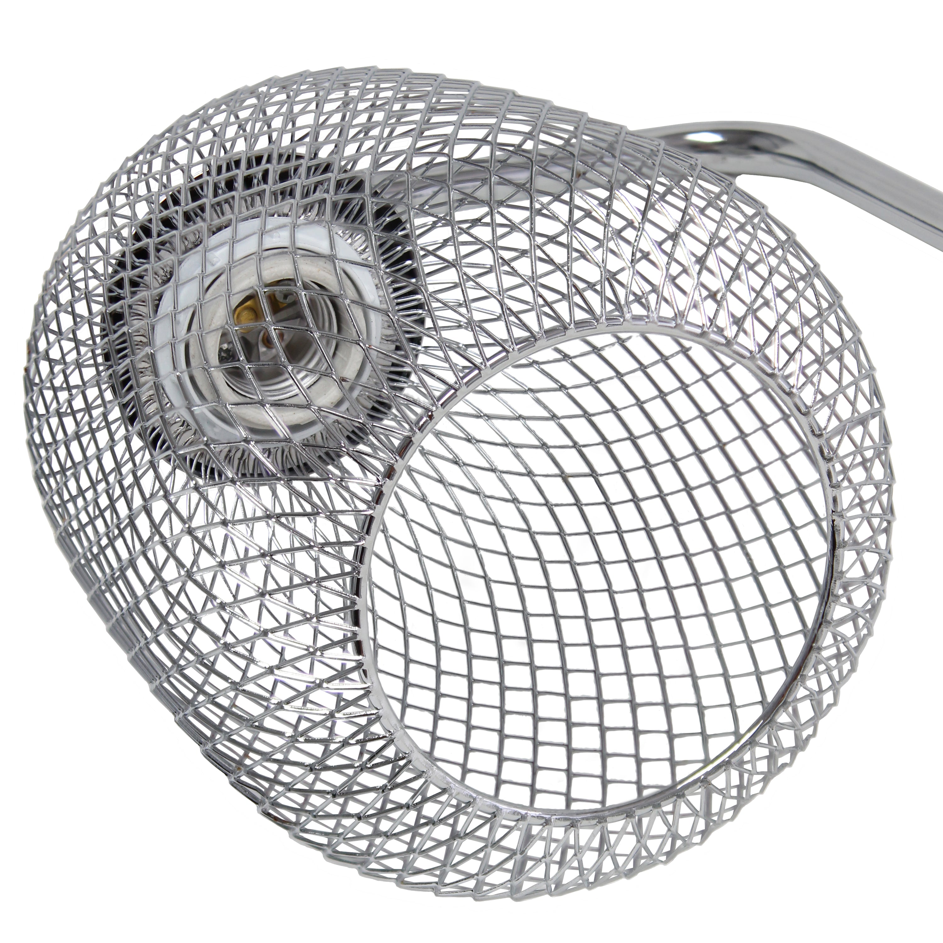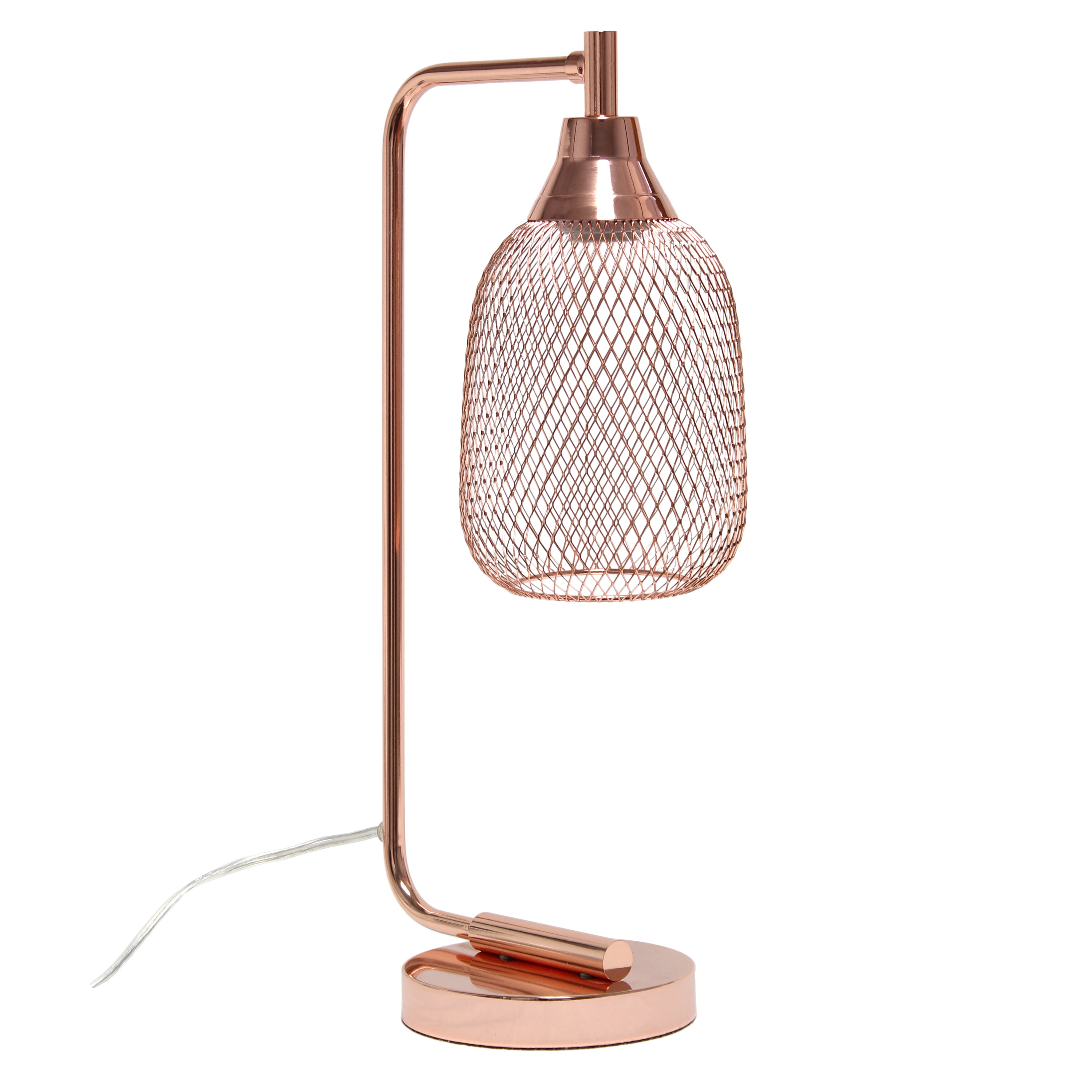 Light up any room in your home with this clean-lined industrial desk lamp. The sleek base is accented with a mesh shade, allowing the light to give off a beautiful glow when lit. This lamp is sure to add a sophisticated, trendy touch to your living room, bedroom, office, apartment or college dorm!