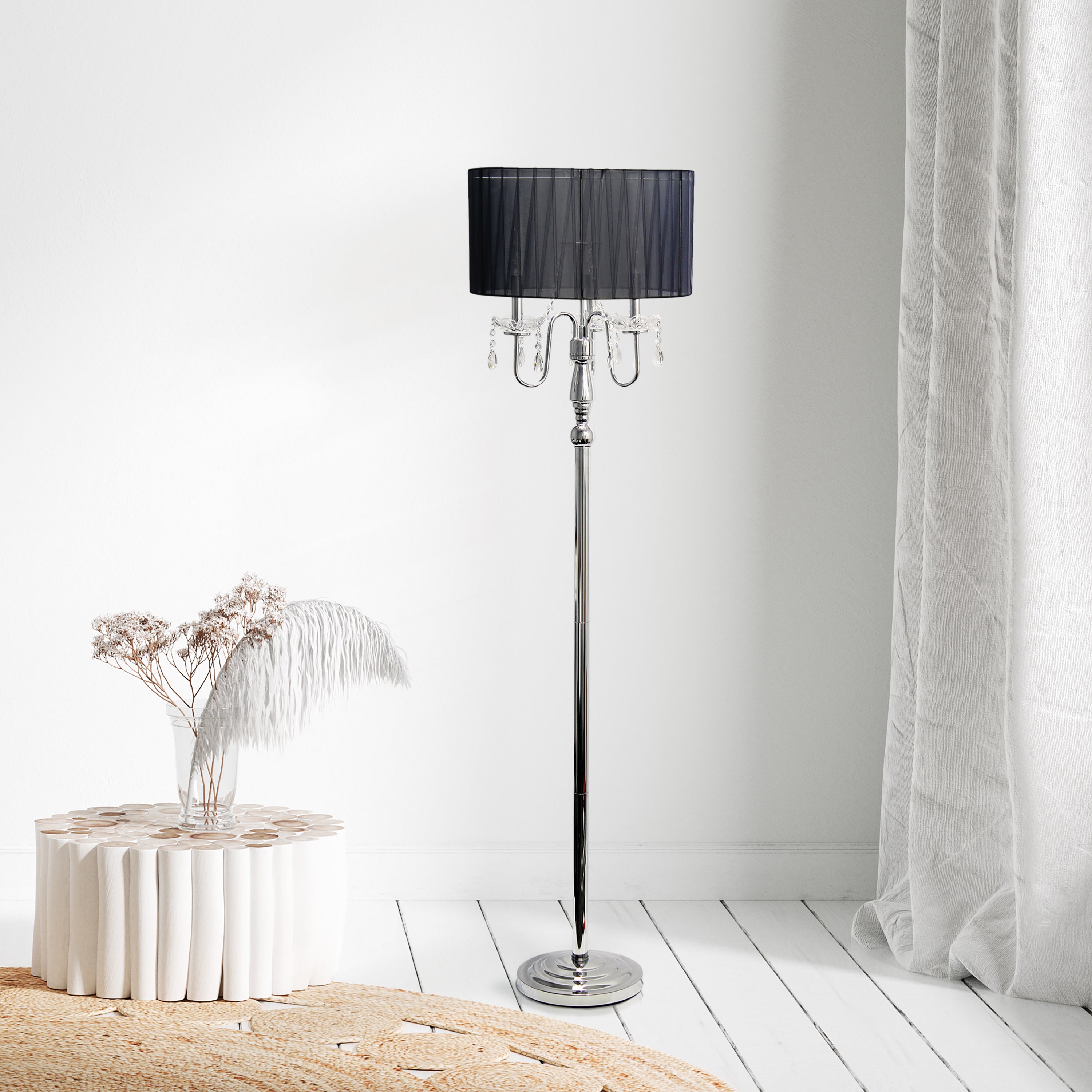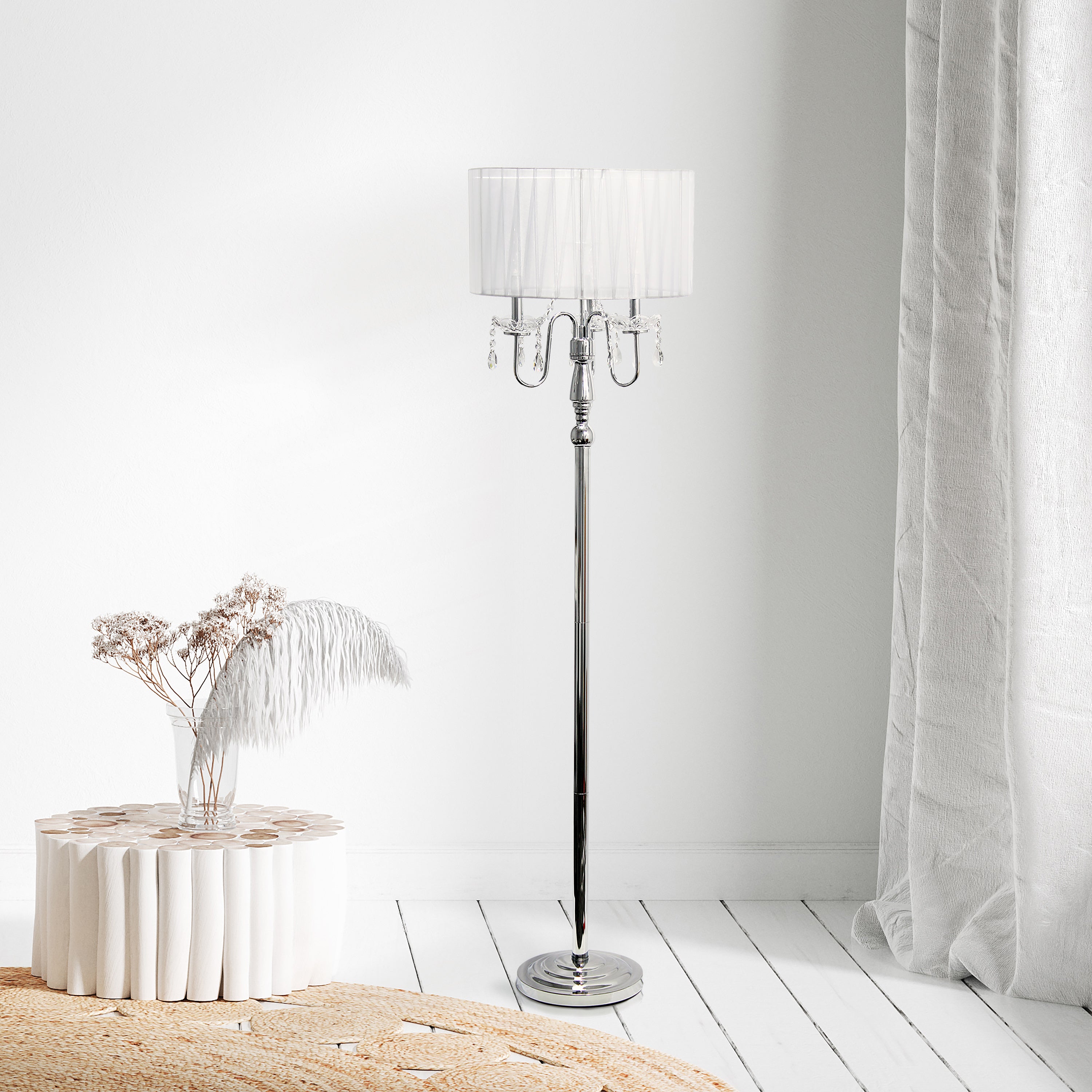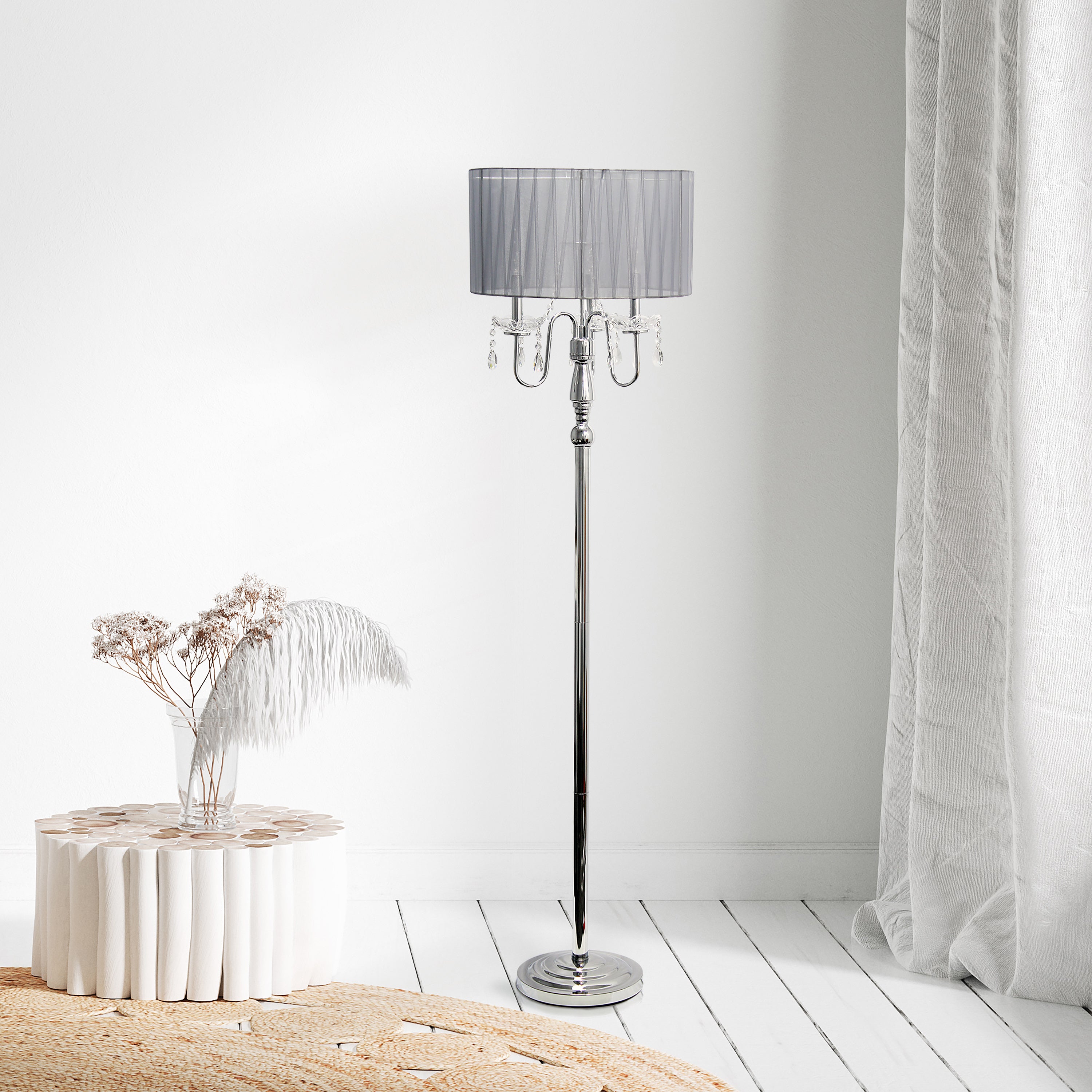 Whether used to enhance the ambiance of a formal setting or to add a touch of glamour to a more casual space, this floor lamp with cascading crystals is a statement piece that combines functionality with exquisite design, elevating the overall aesthetic of the room in which it resides. Whether placed in a living room, bedroom, or foyer, this floor lamp with cascading crystals elevates the ambiance.