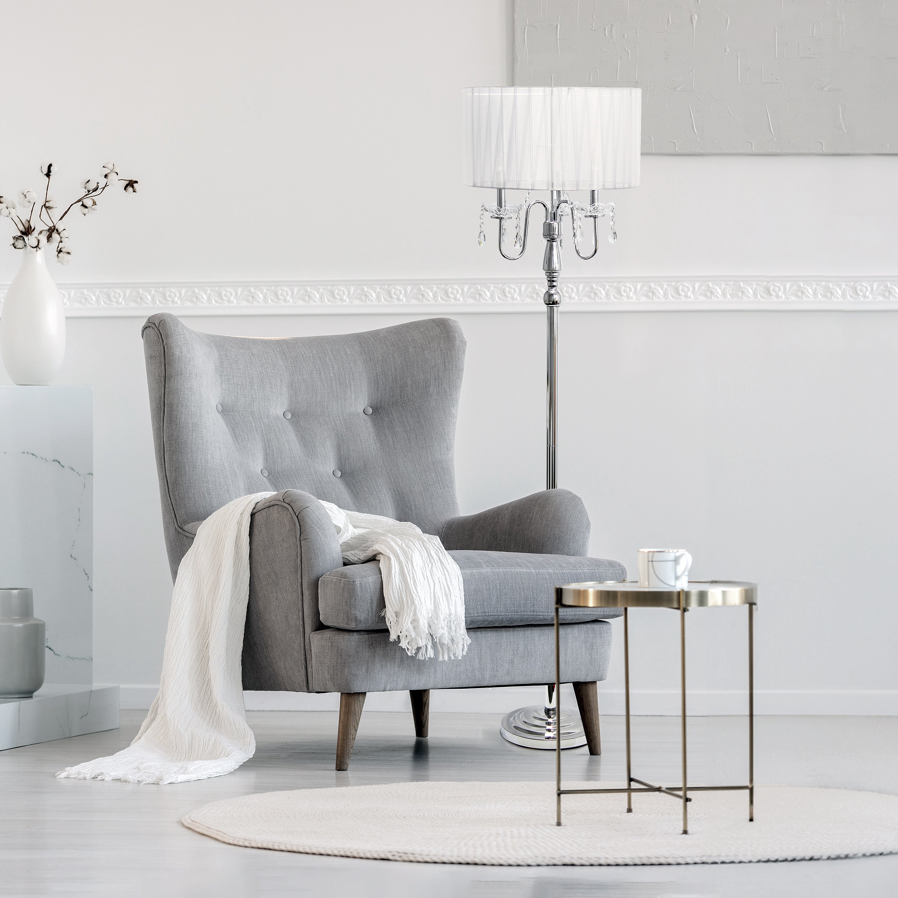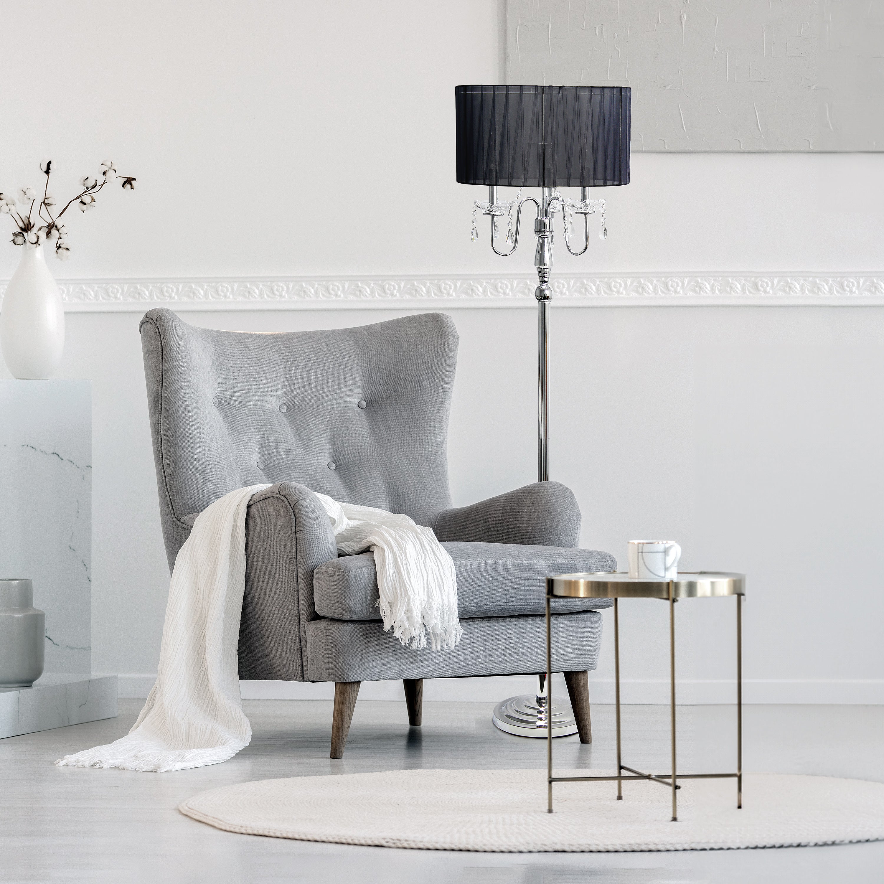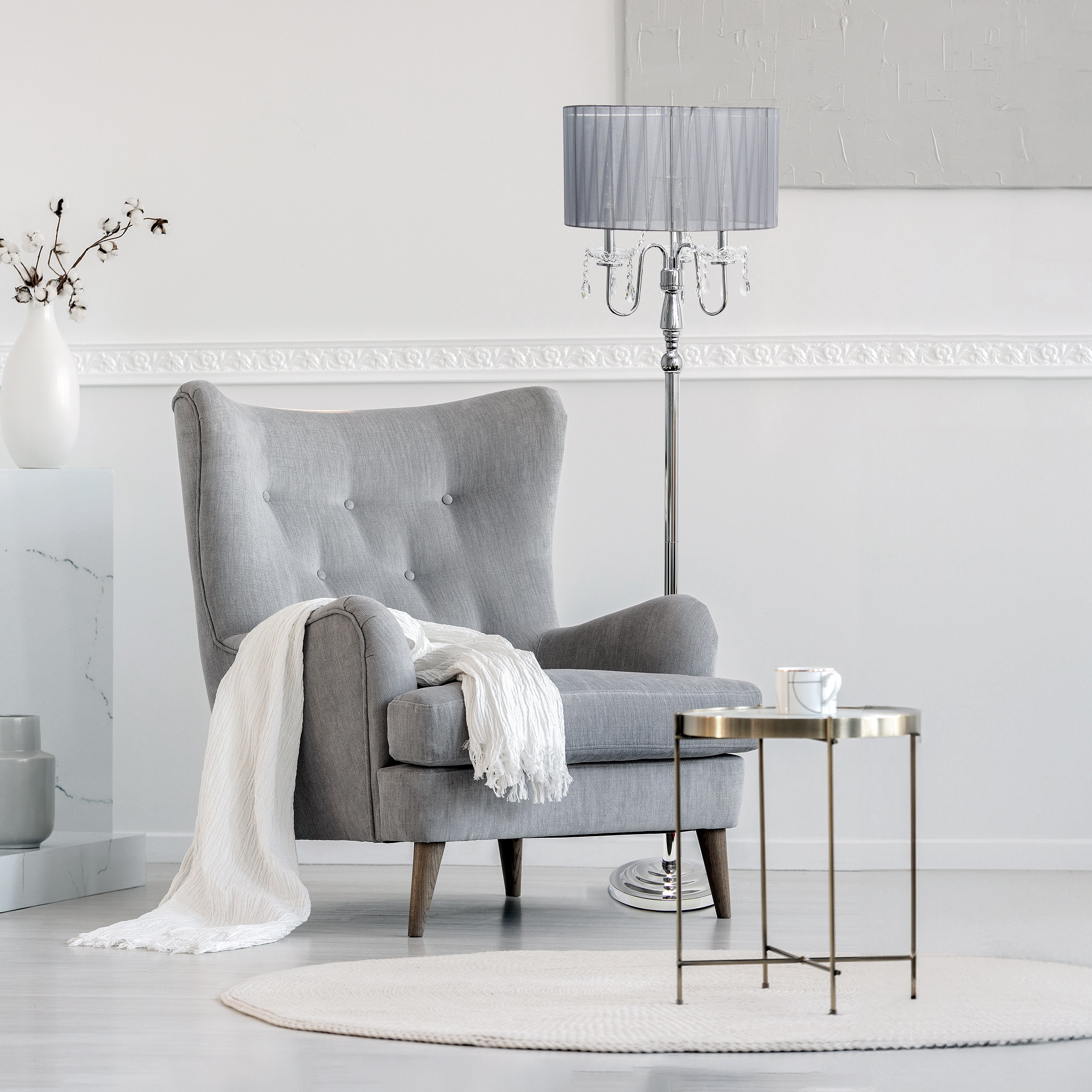 Whether used to enhance the ambiance of a formal setting or to add a touch of glamour to a more casual space, this floor lamp with cascading crystals is a statement piece that combines functionality with exquisite design, elevating the overall aesthetic of the room in which it resides. Whether placed in a living room, bedroom, or foyer, this floor lamp with cascading crystals elevates the ambiance.