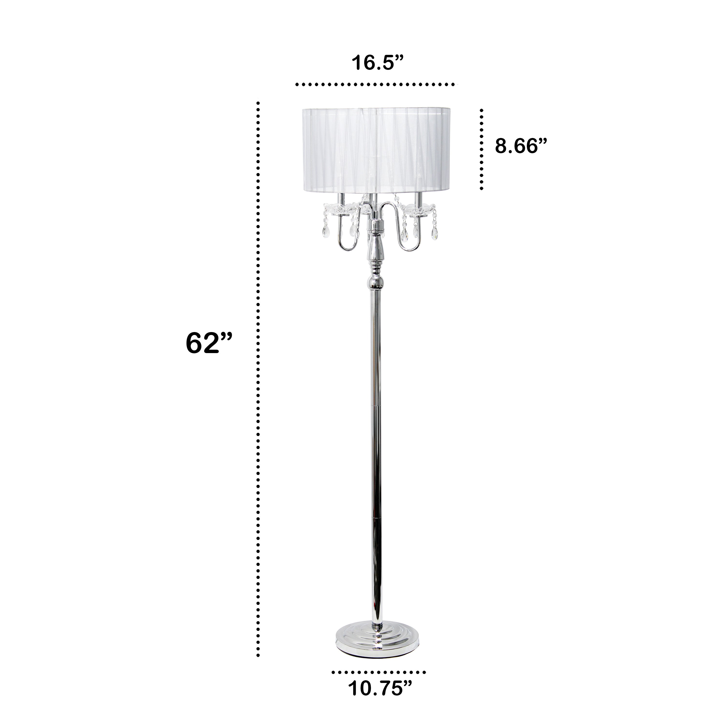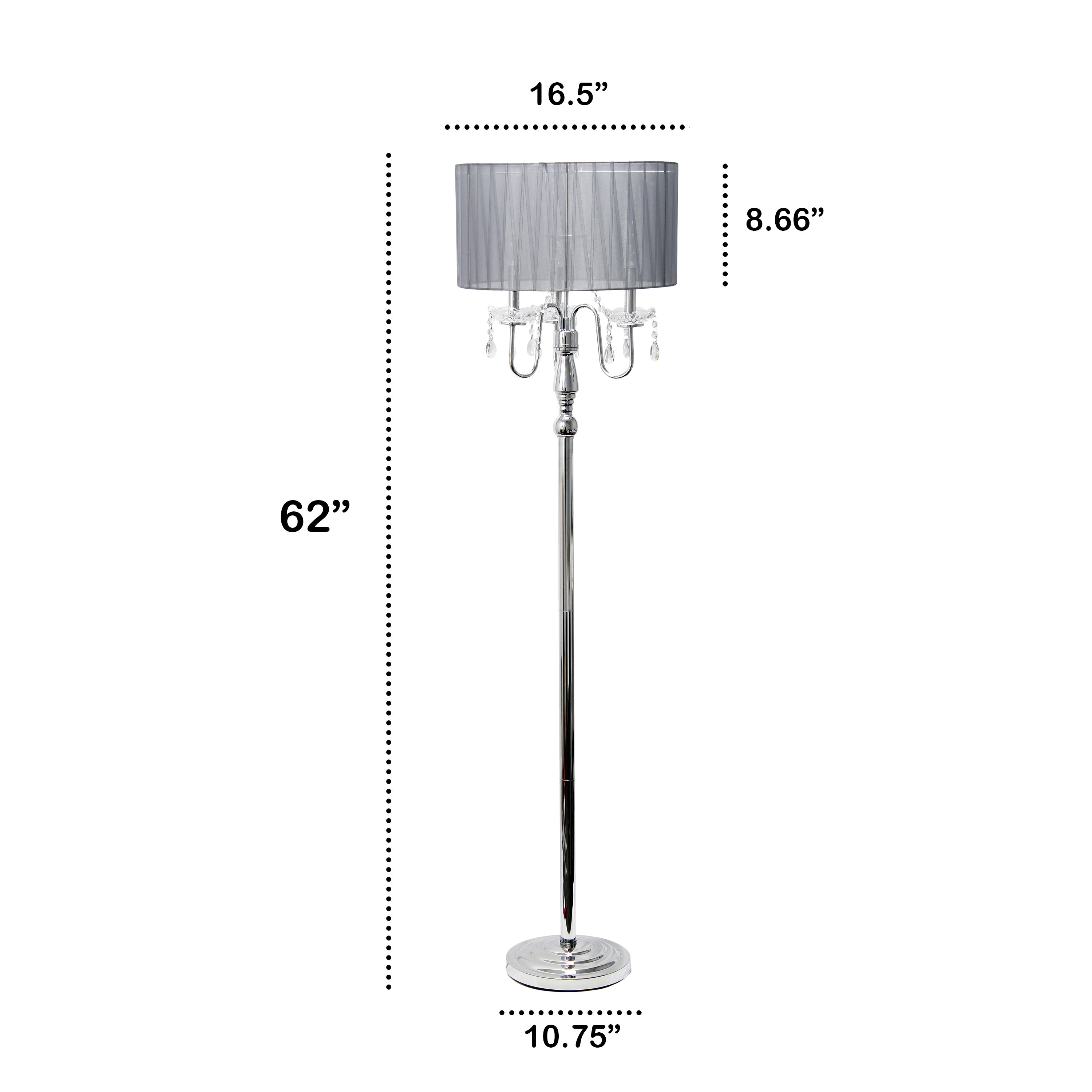 - The shade has a diameter of 16.5 inches and a height of 8.66 inches