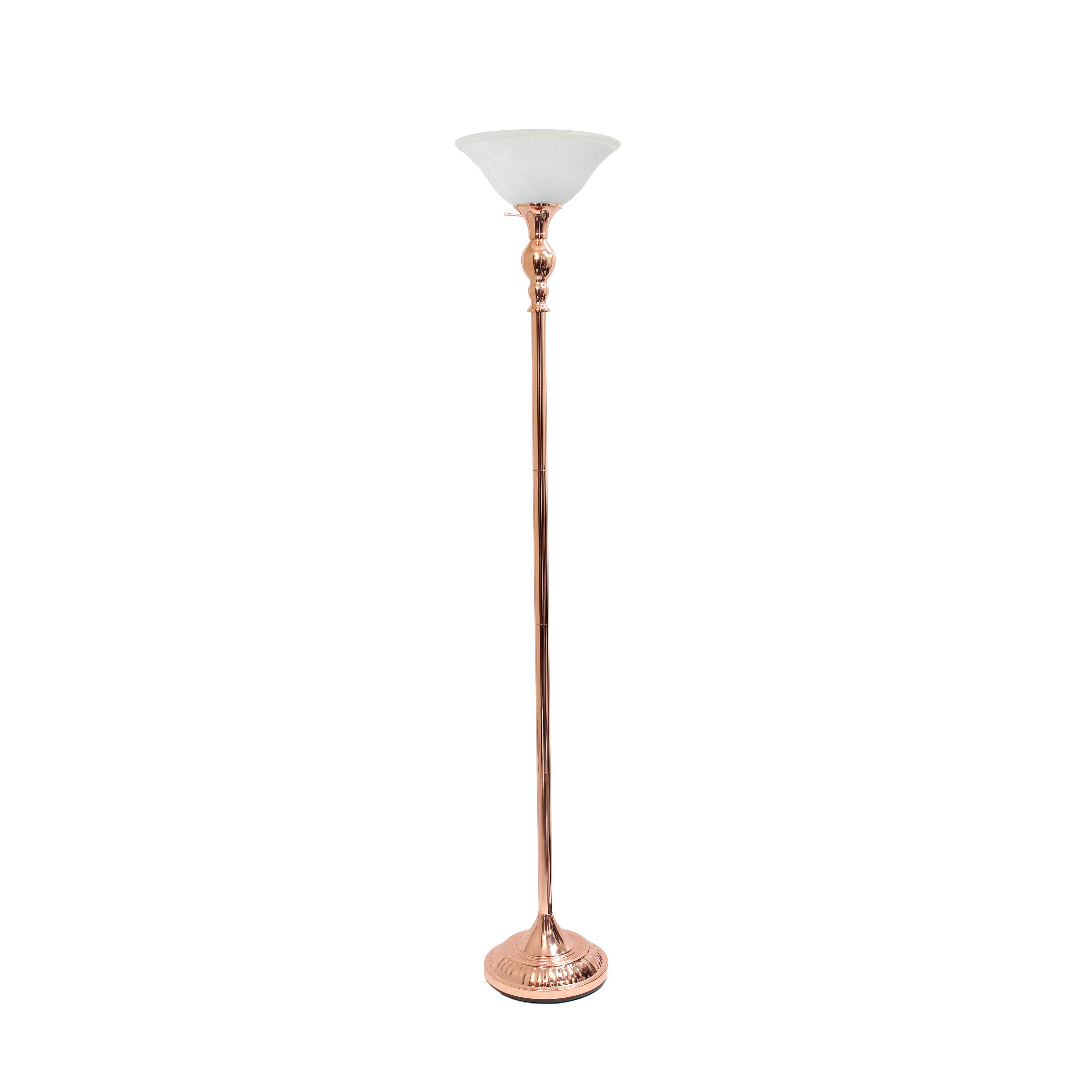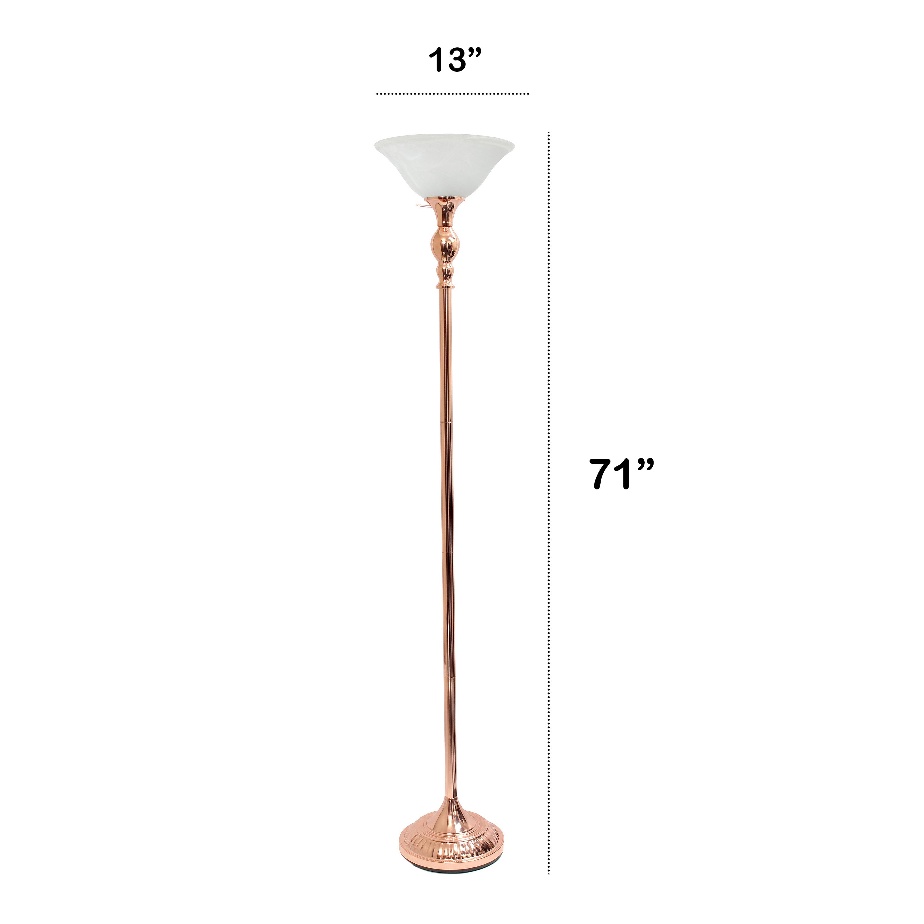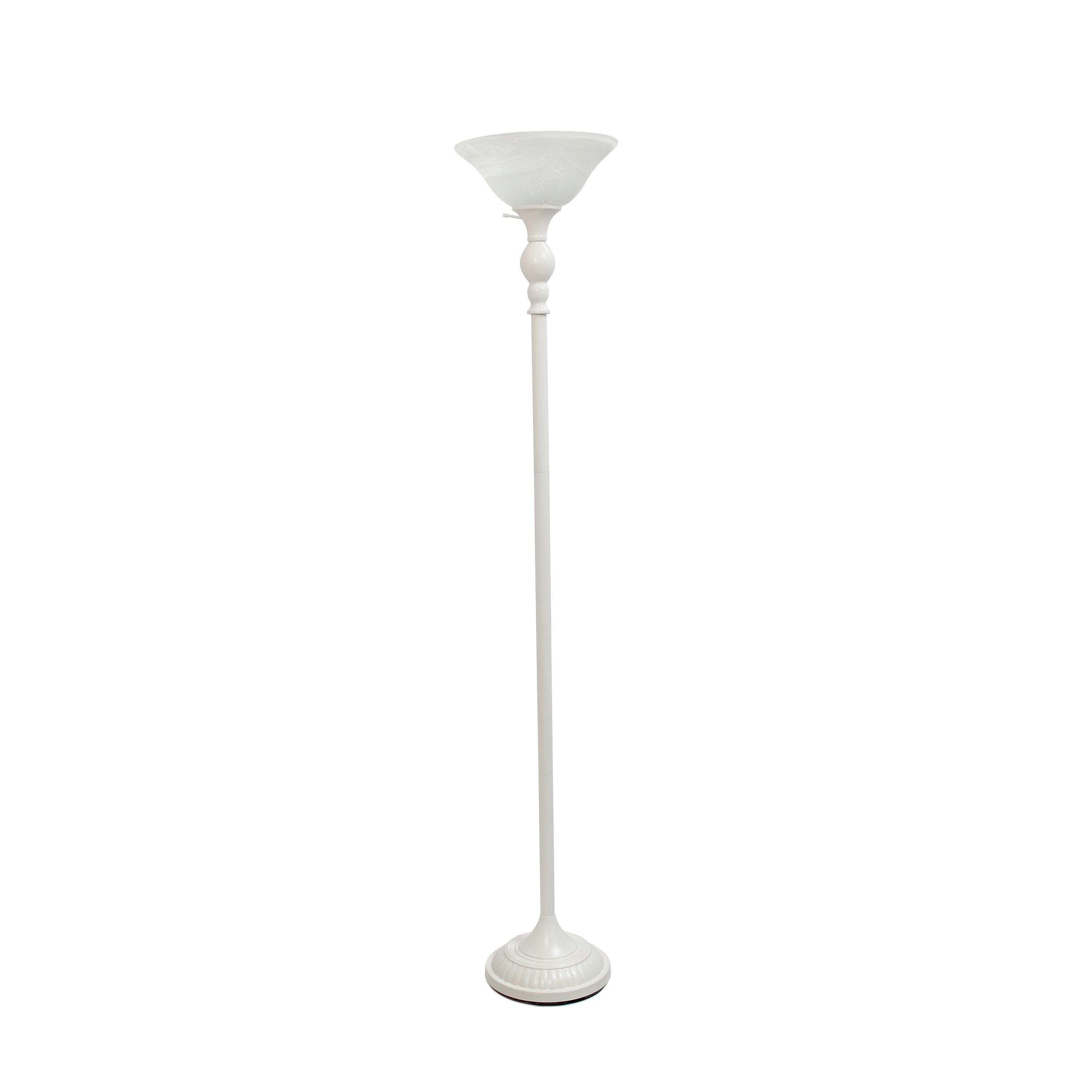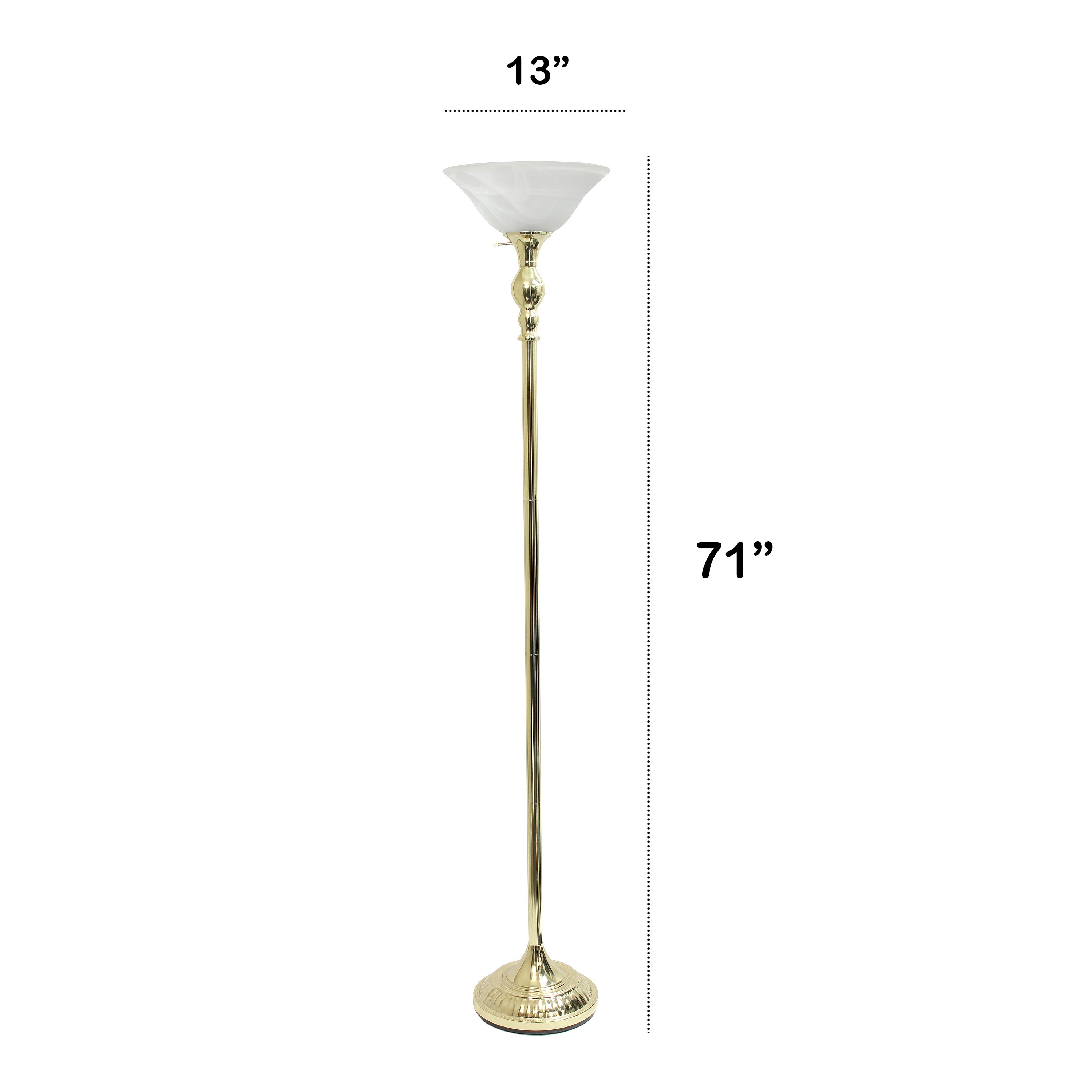 Light up your space with this simple but timeless torchiere floor lamp. It features a marbleized glass shade on a stunning metal base for a clean, sophisticated look. Perfect for your bedroom, office, foyer or living room.