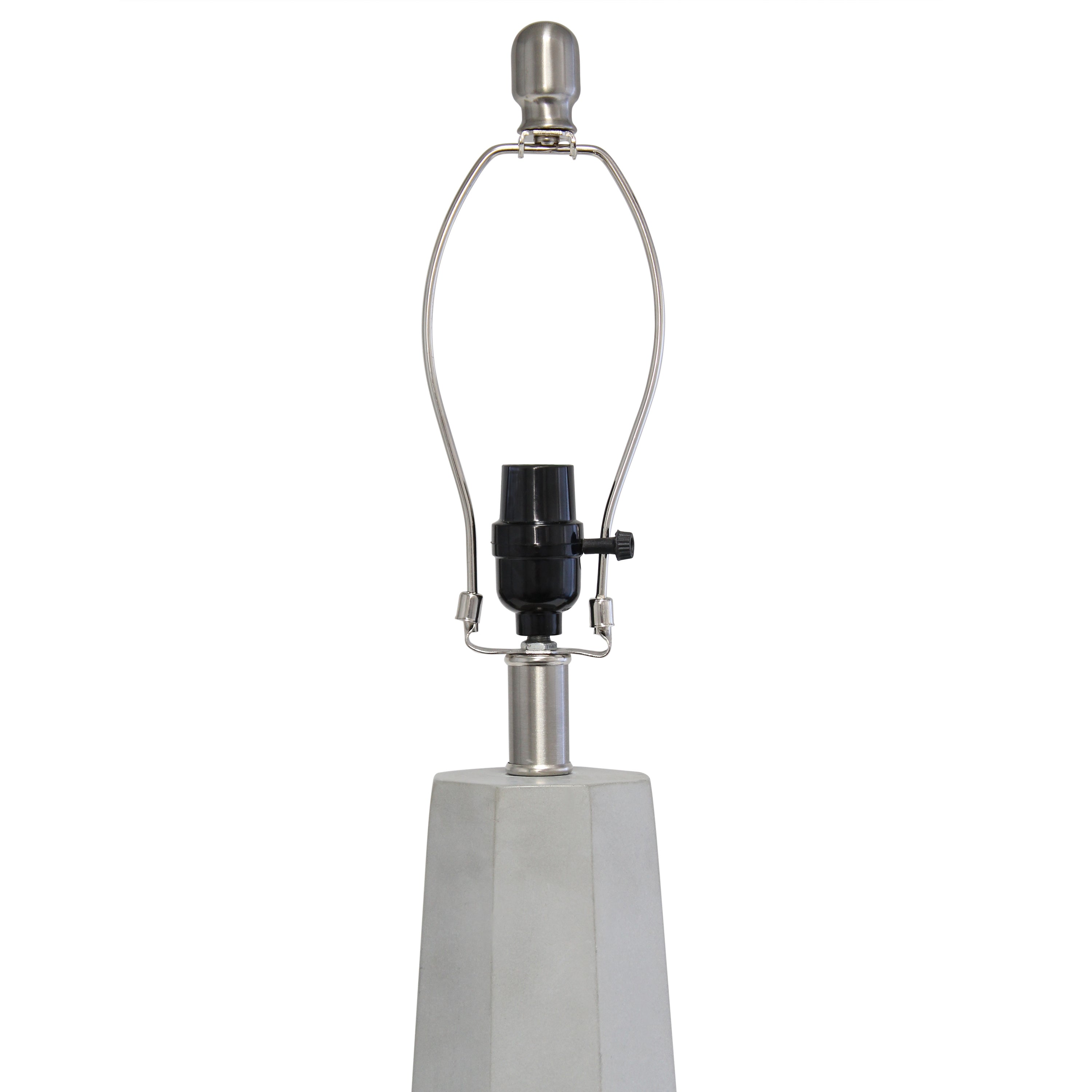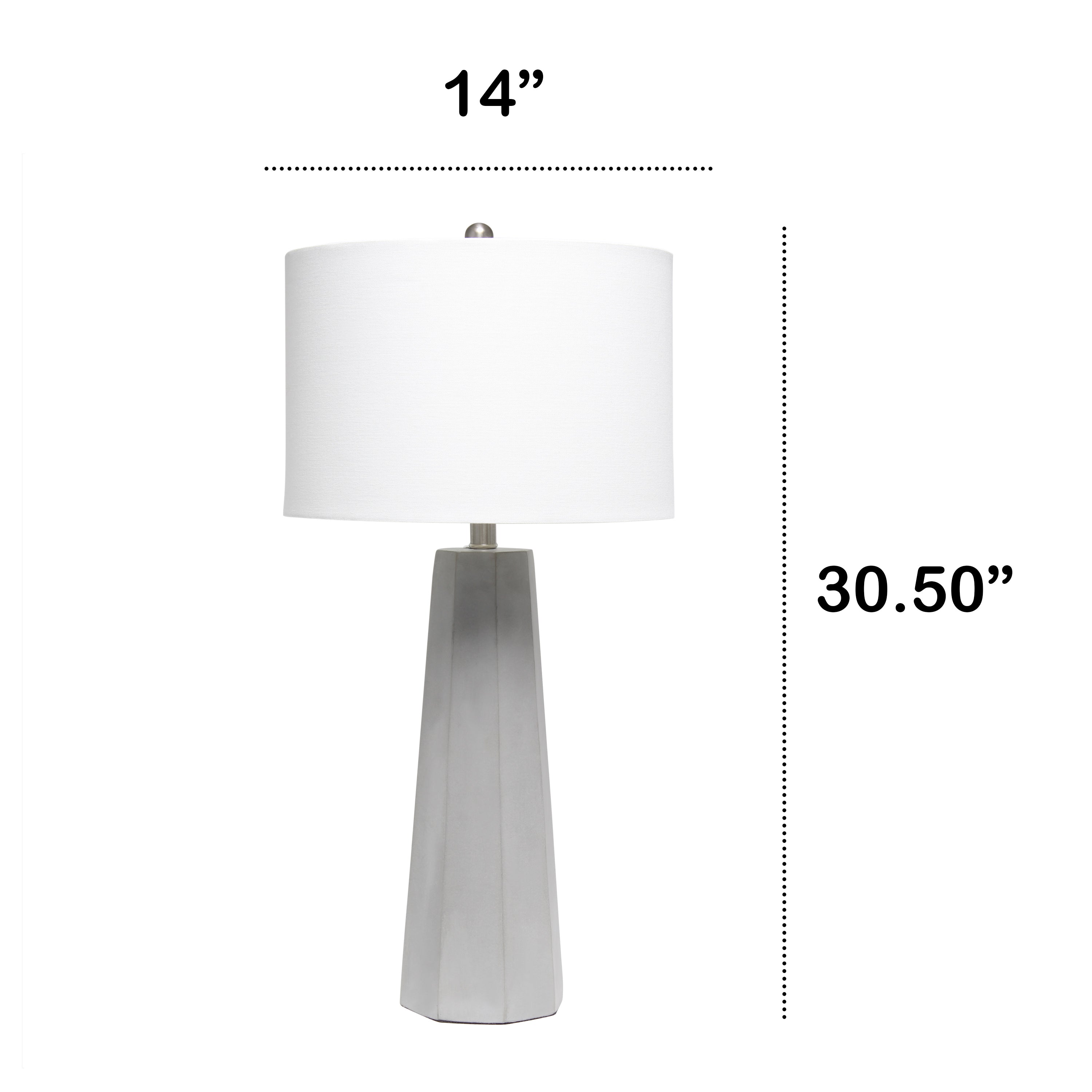 Standing tall at 30.50", this lamp is sure to make a statement in any room in your home! The gray concrete base is multifaceted with clean lines and is accented with brushed nickel touches and a white fabric drum shade. Perfect for living room, bedroom, office, or anywhere you need to add a touch of industrial style!