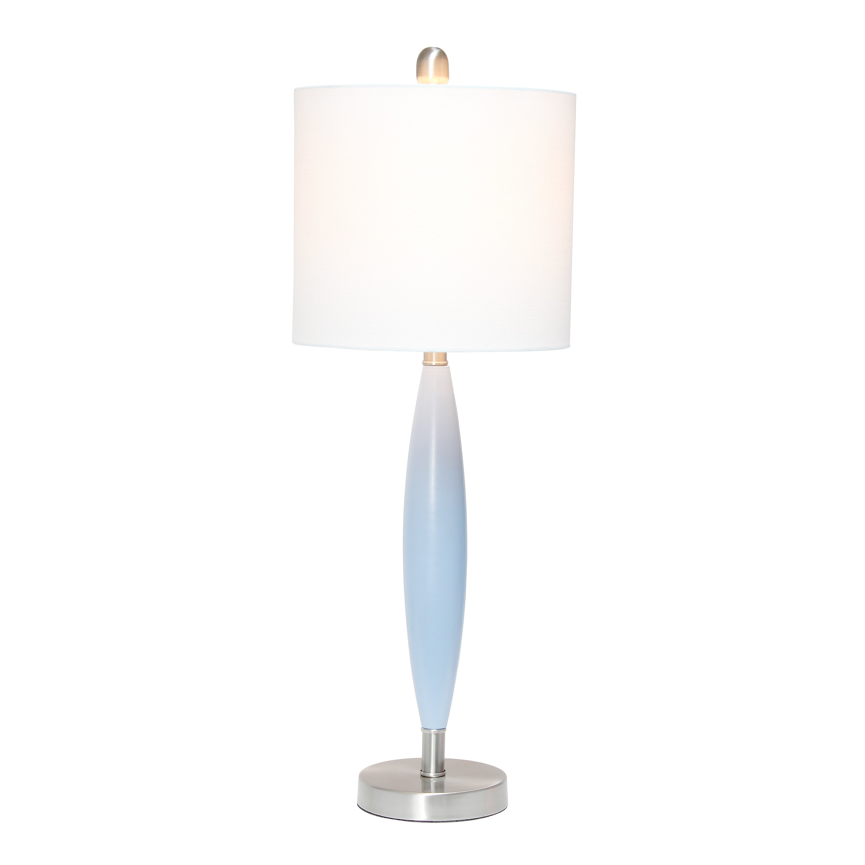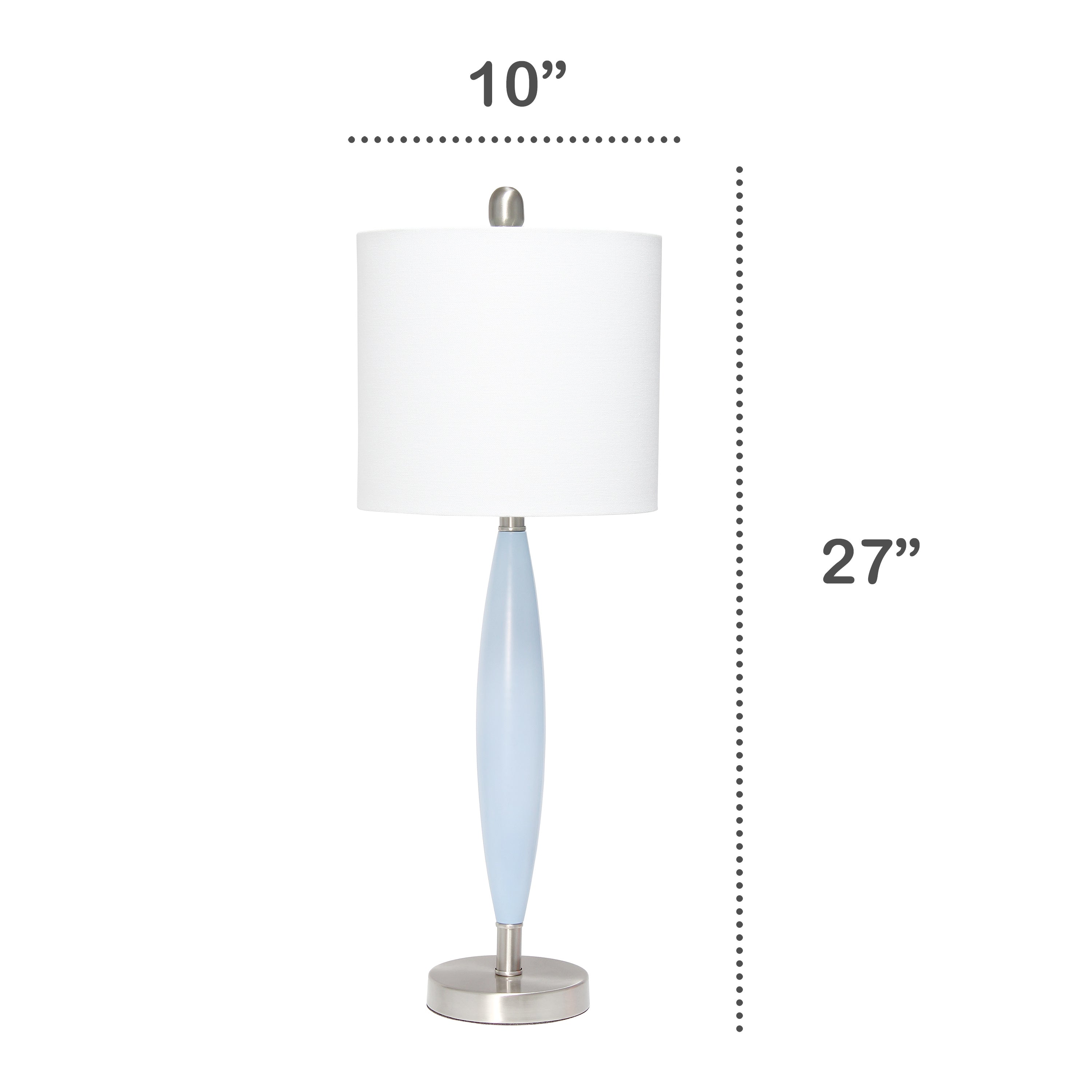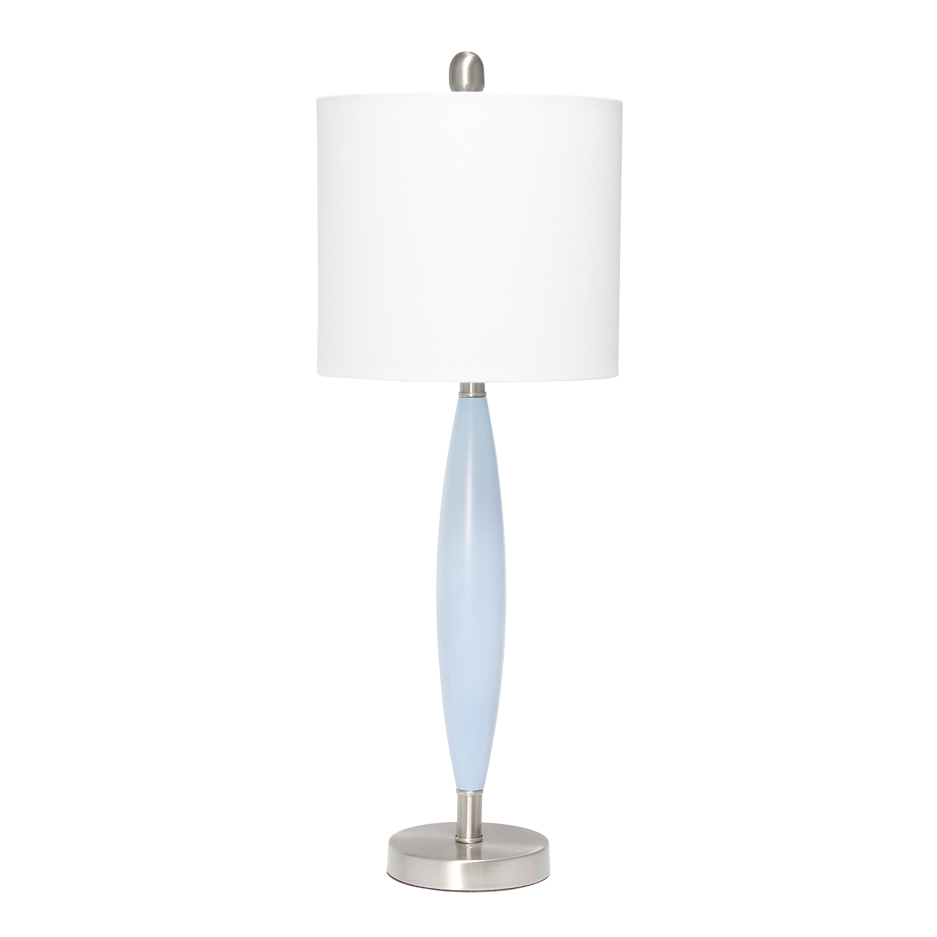Illuminate your room in style with this simple, contemporary table lamp. With a pop of blue color in the center, accented with brushed nickel and a white fabric drum shade, this lamp is sure to add a touch of sophistication to any room in your home! Perfect for adding the little refresh to your living room, bedroom, foyer or office that you've been looking for!