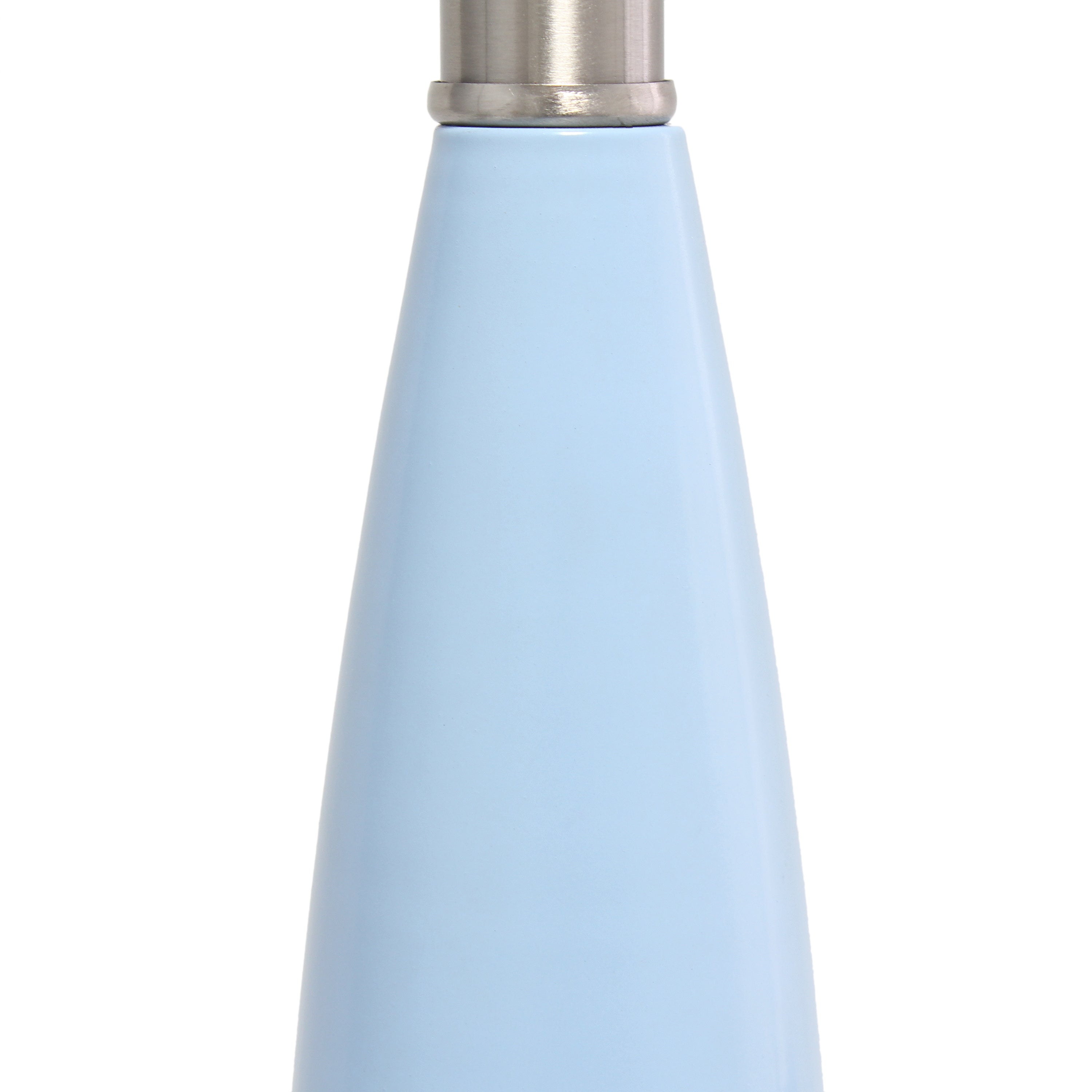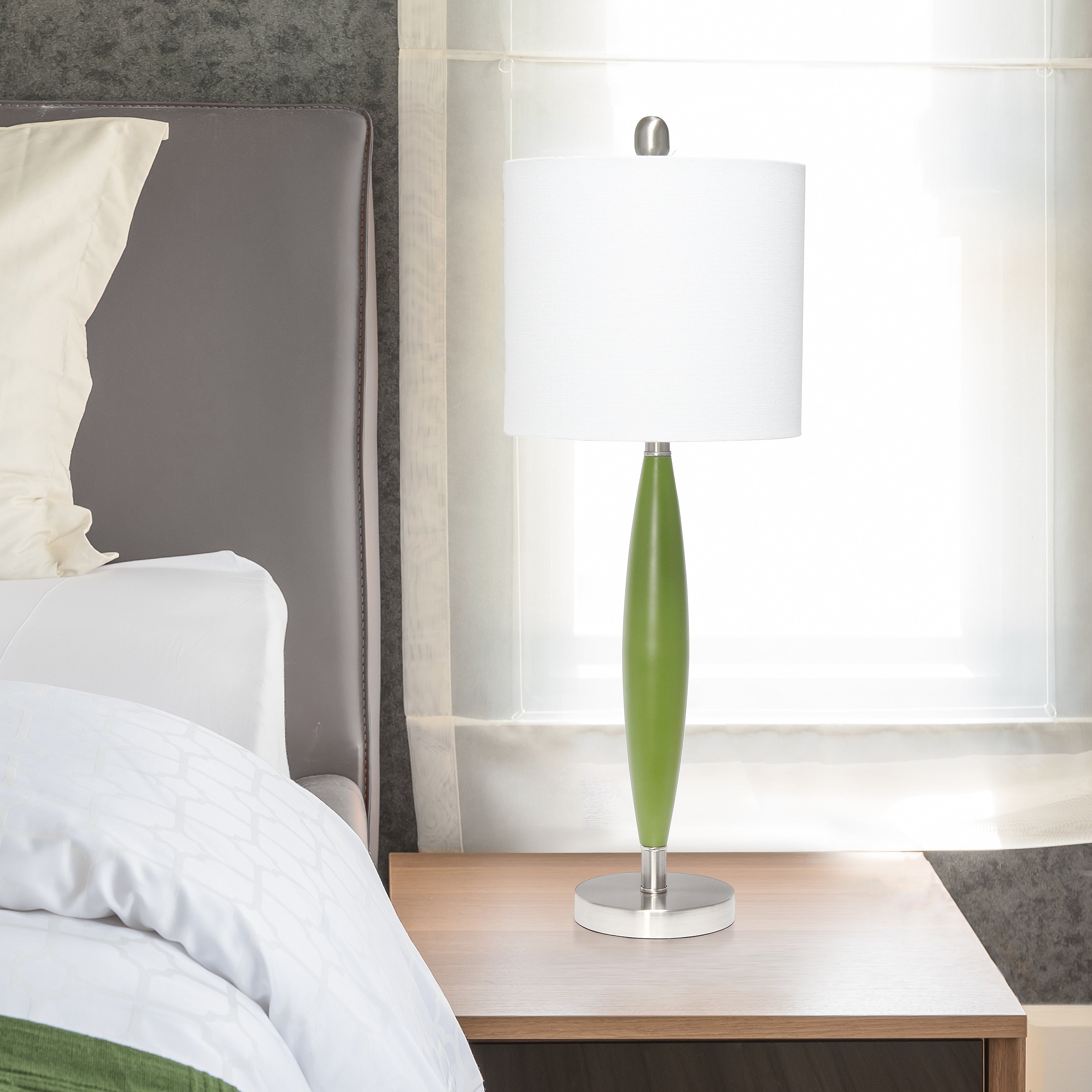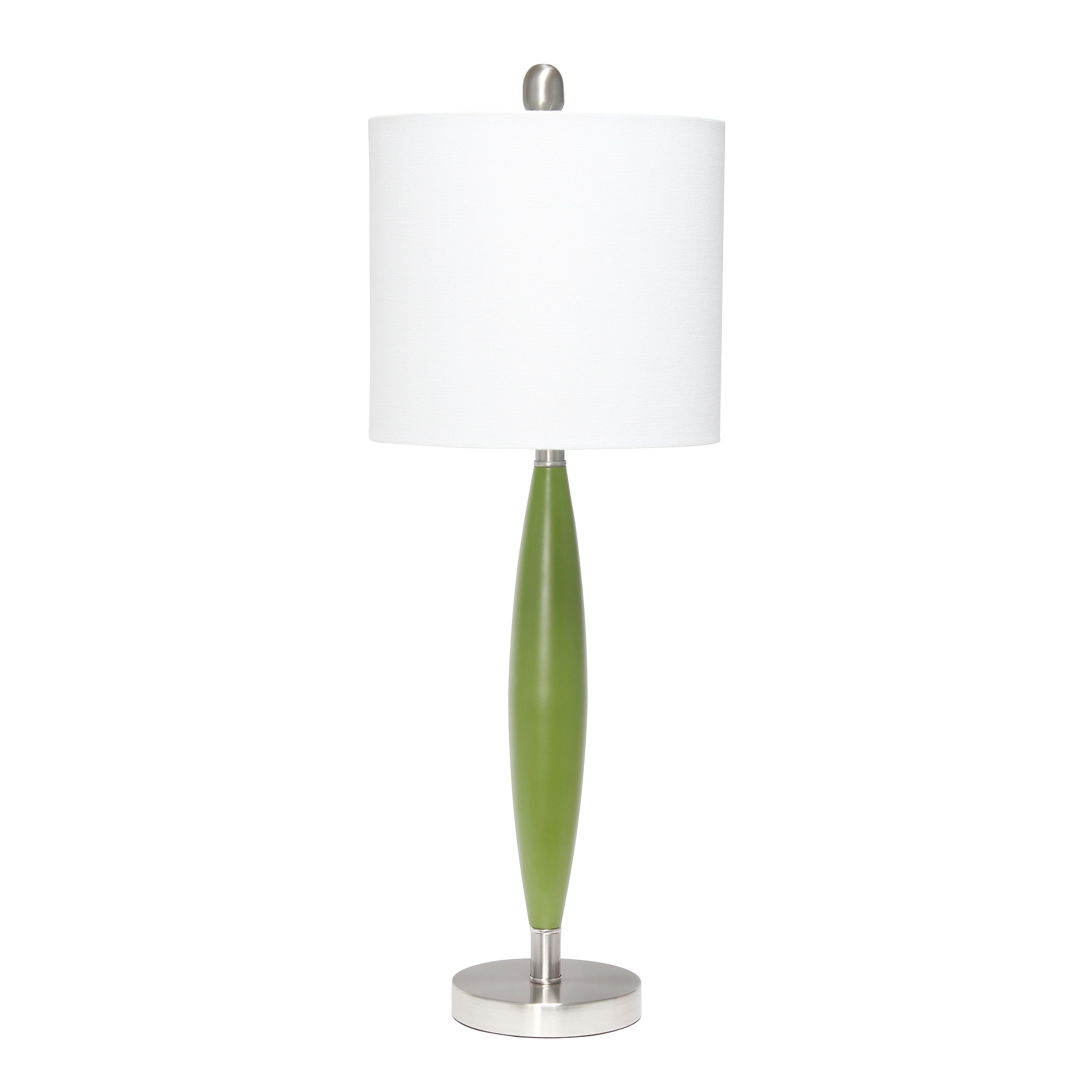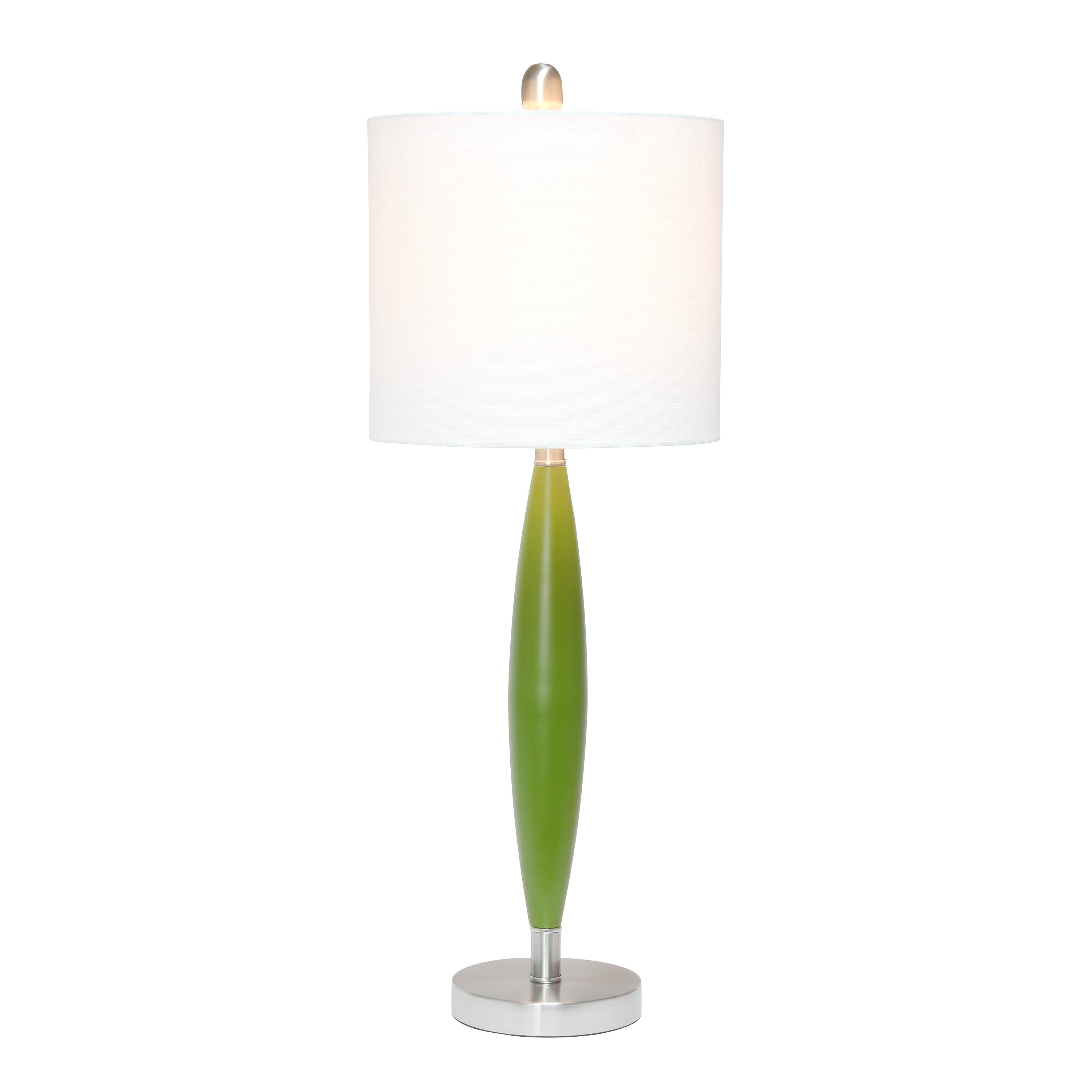 Illuminate your room in style with this simple, contemporary table lamp. With a pop of blue color in the center, accented with brushed nickel and a white fabric drum shade, this lamp is sure to add a touch of sophistication to any room in your home! Perfect for adding the little refresh to your living room, bedroom, foyer or office that you've been looking for!
