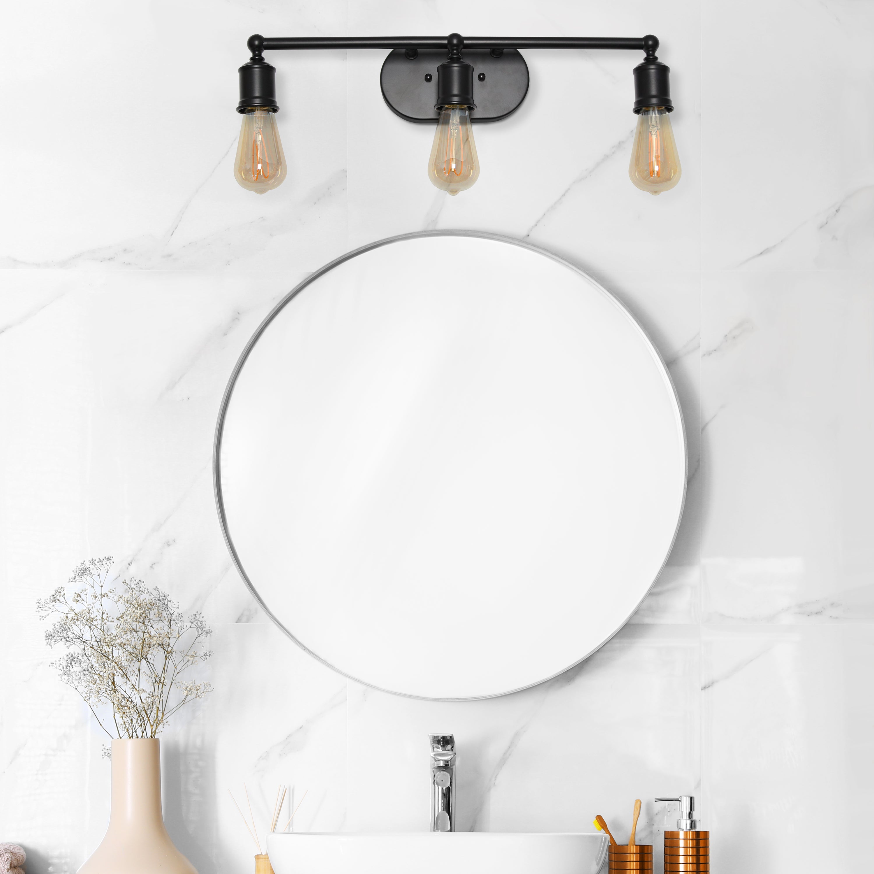 This simple design is sure to add the perfect amount of industrial farmhouse to your space! This fixture features a smooth black bar with an oval back plate. The perfect vanity light for the minimalist. Hang beautifully not only in your bathroom, but will fit just right near a reading nook, foyer entrance, or space of your choice.