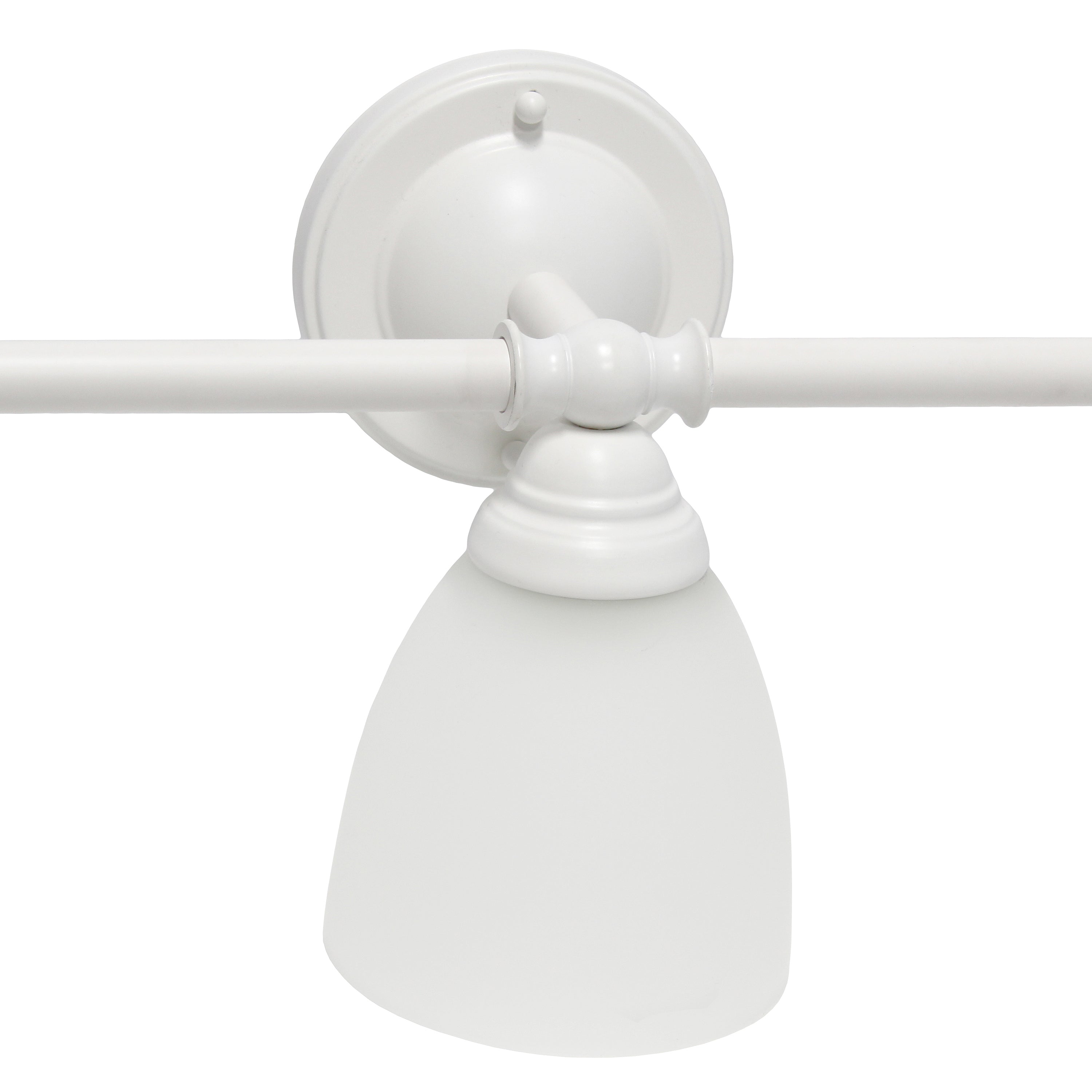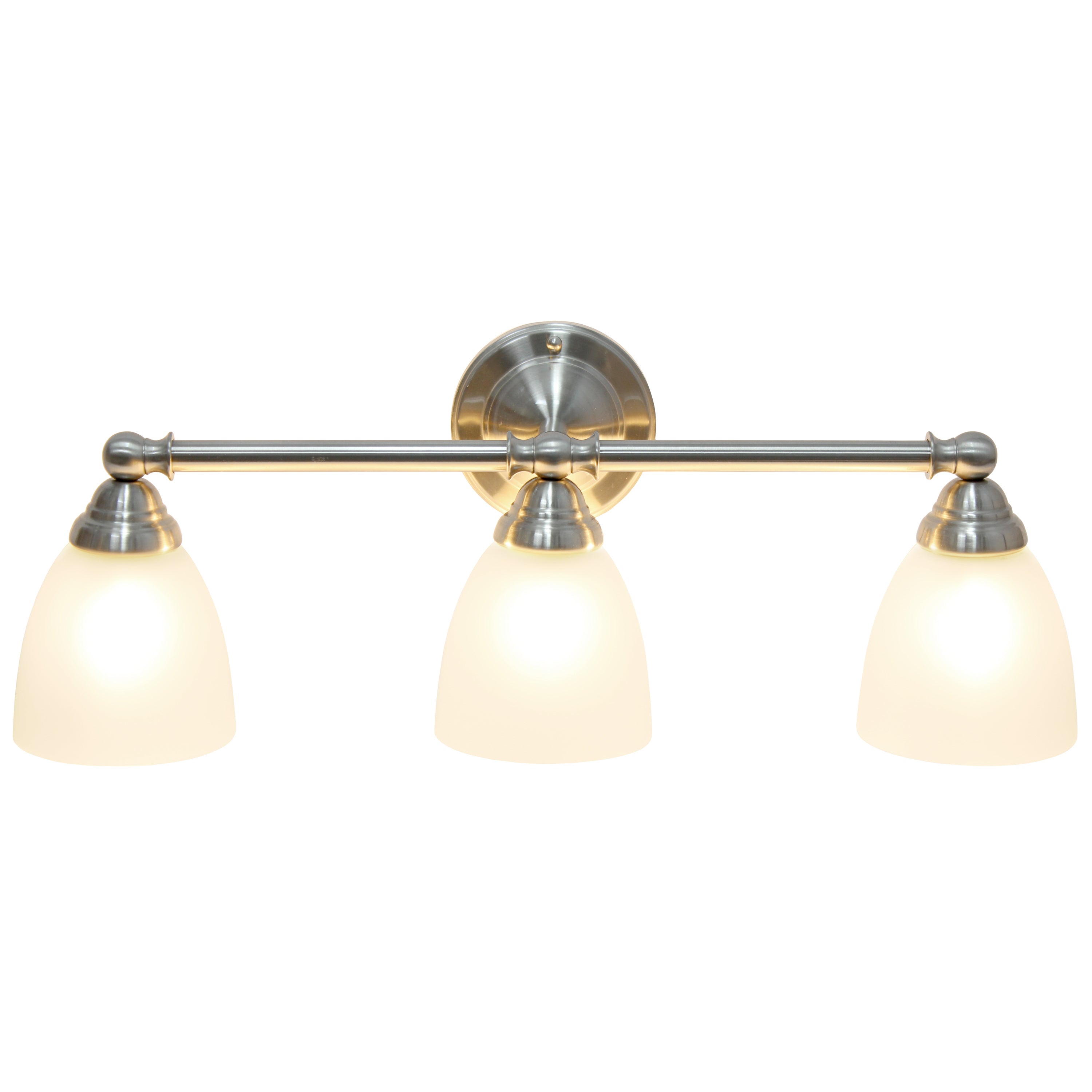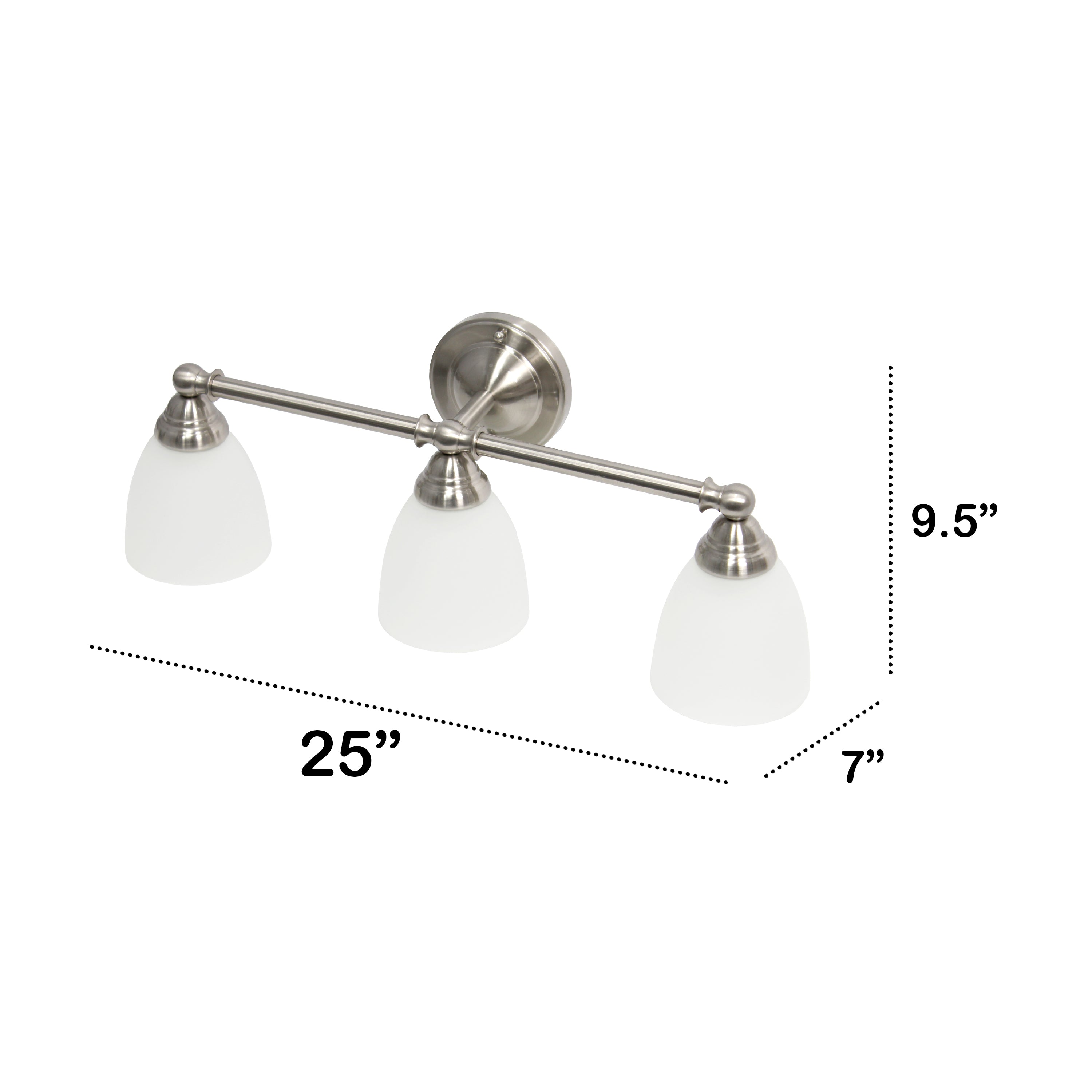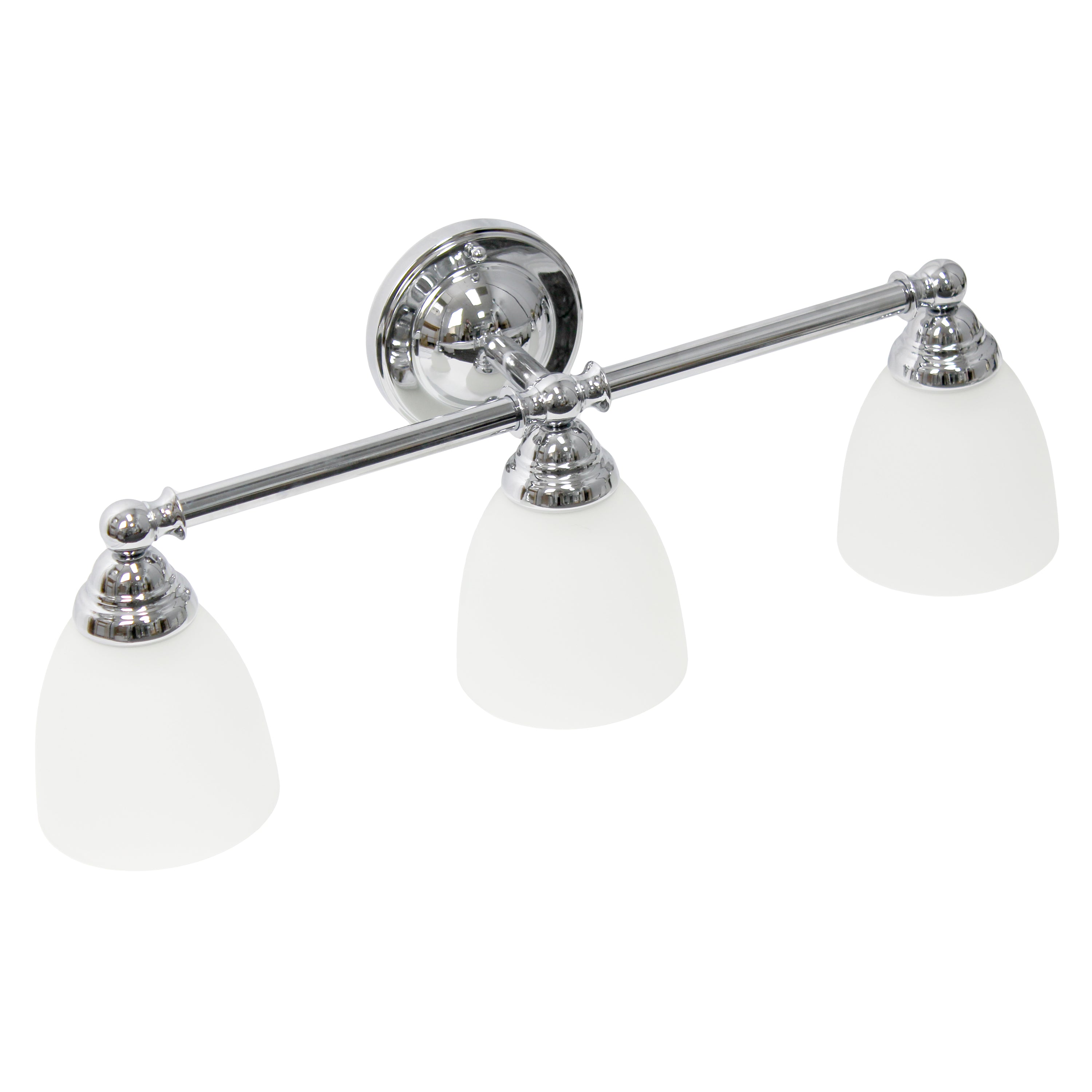 This lovely three light vanity fixture has been carefully designed to serve both your lighting and decor needs in a sophisticated, yet traditional manner. Three identical translucent shades are held in place on a straight metal bar by matching metal socket holders in the finish of your choice. Perfect for your bathroom, hallway, bedroom, foyer, or above your vanity!