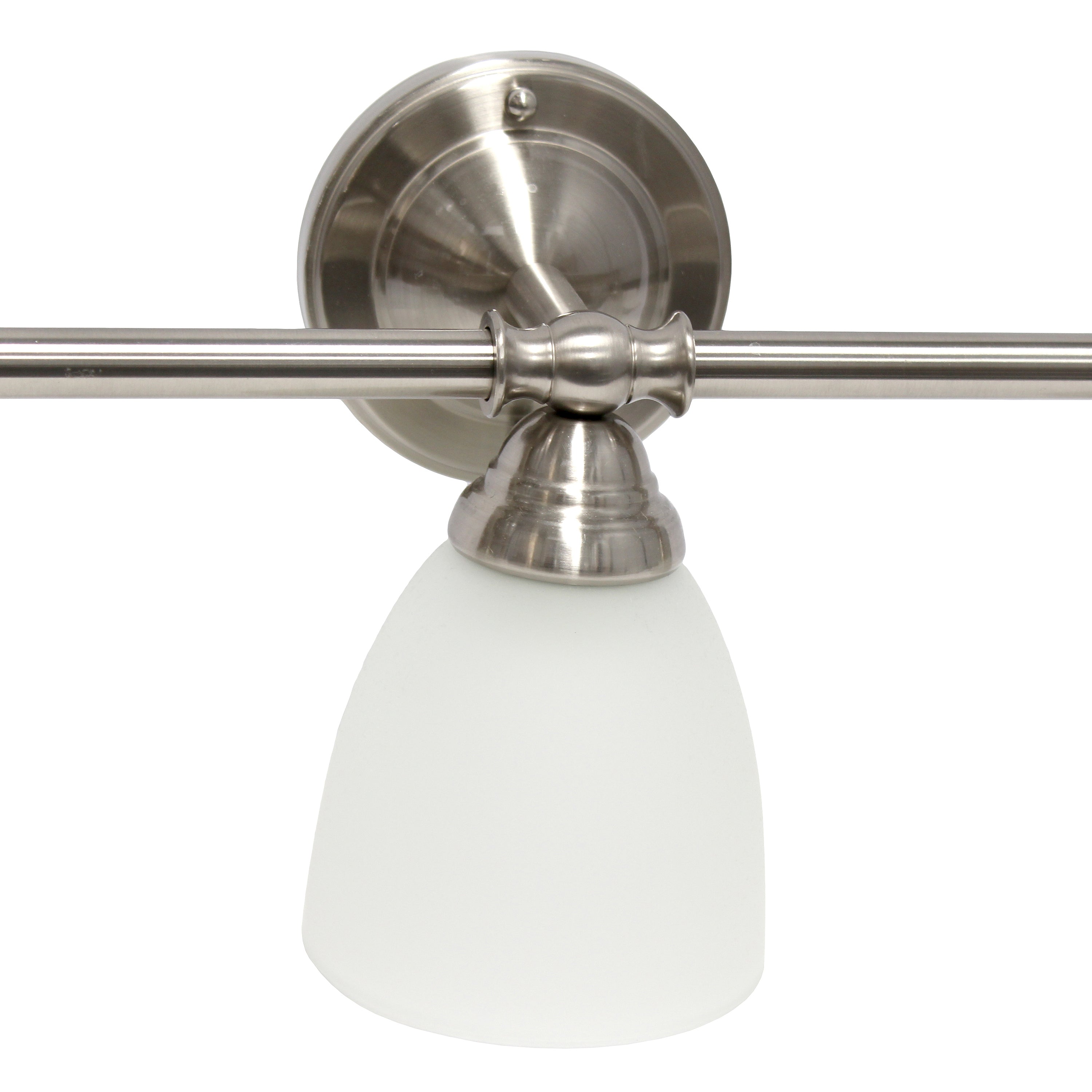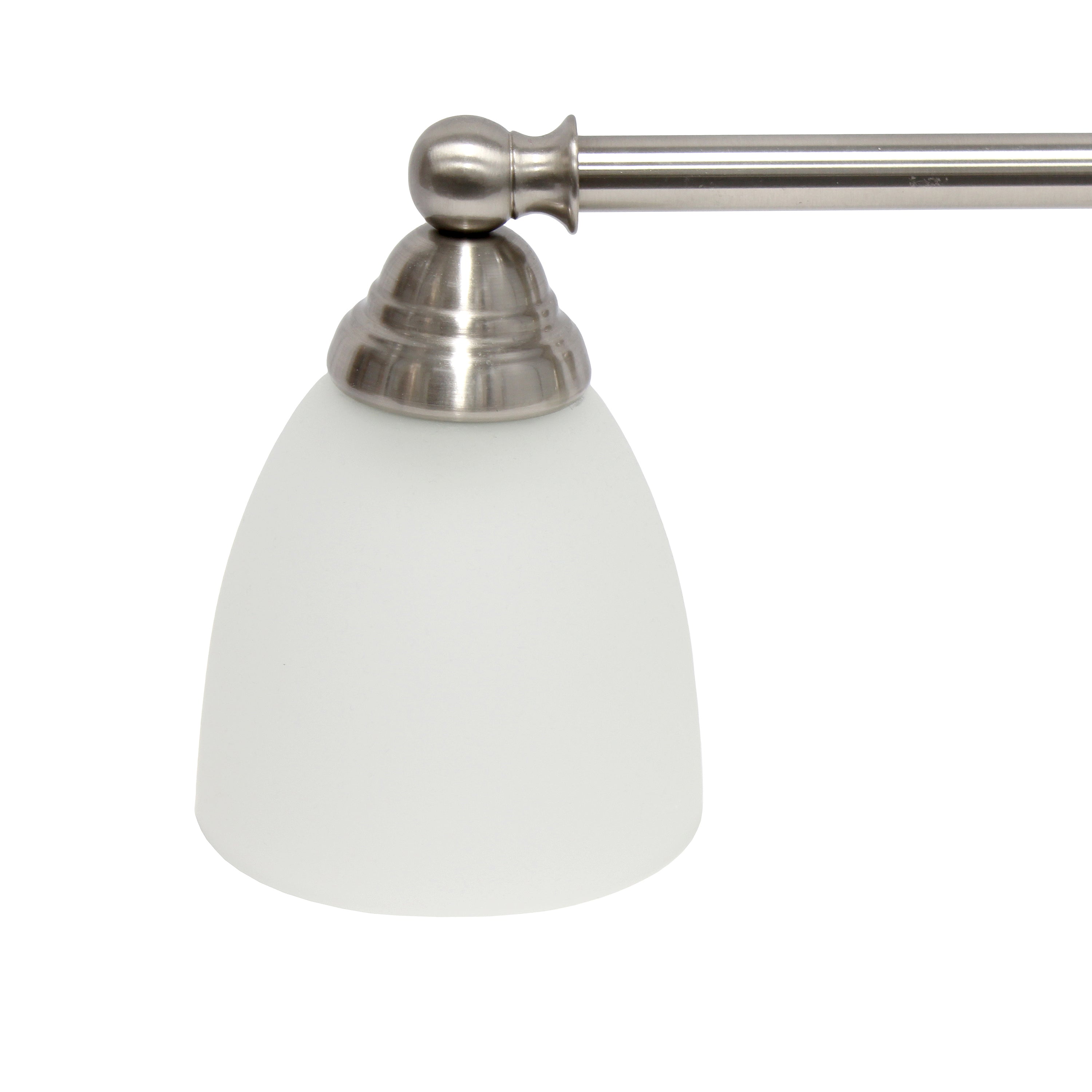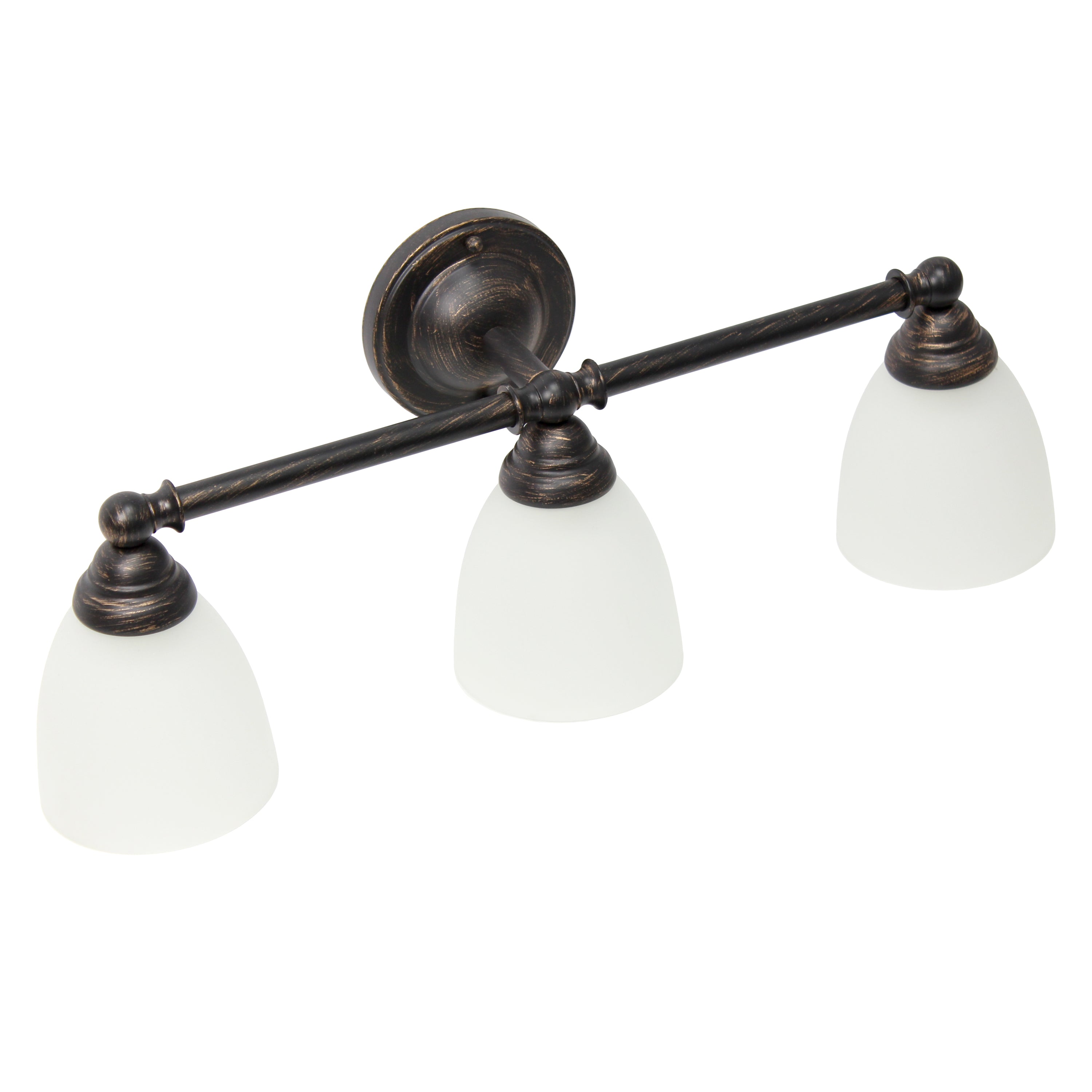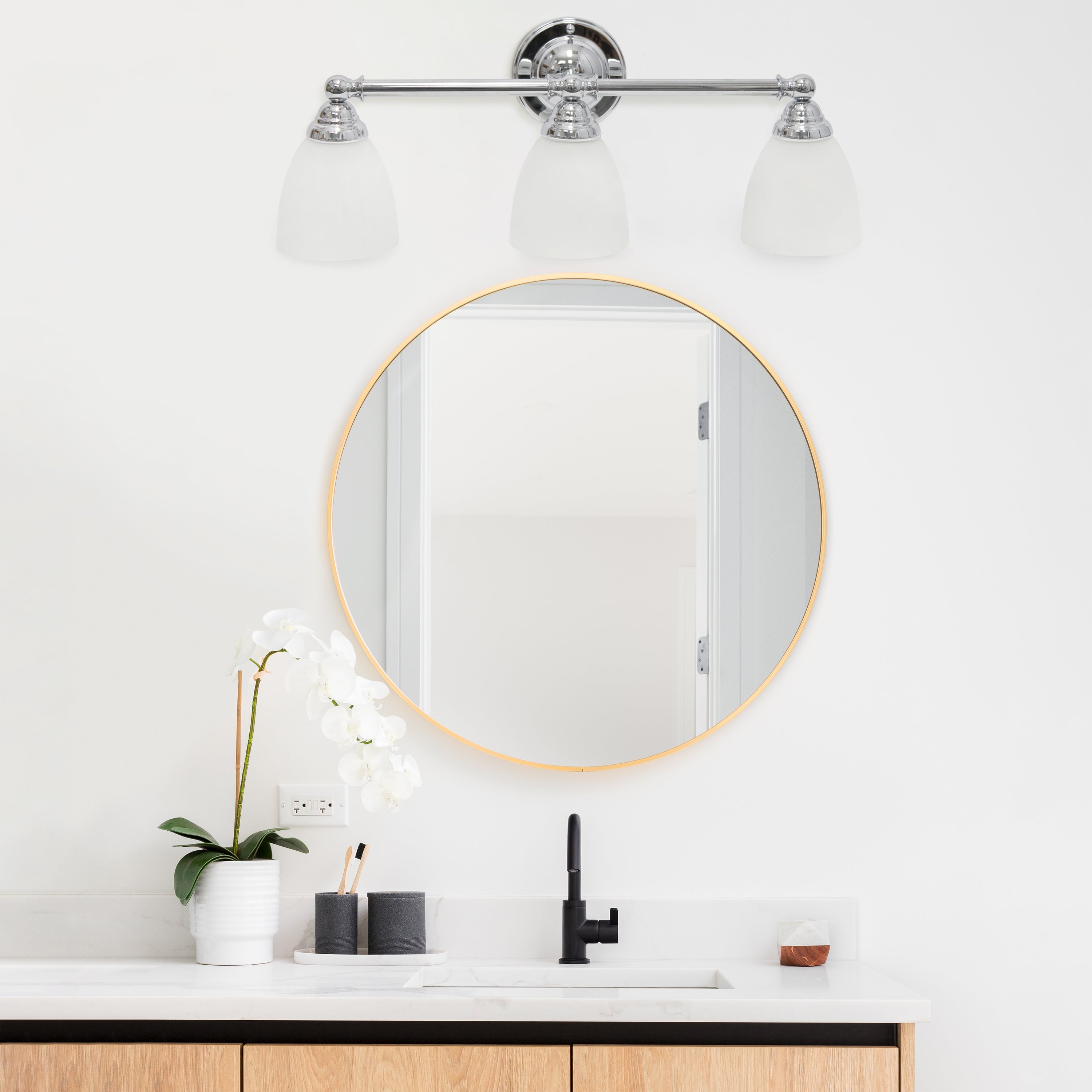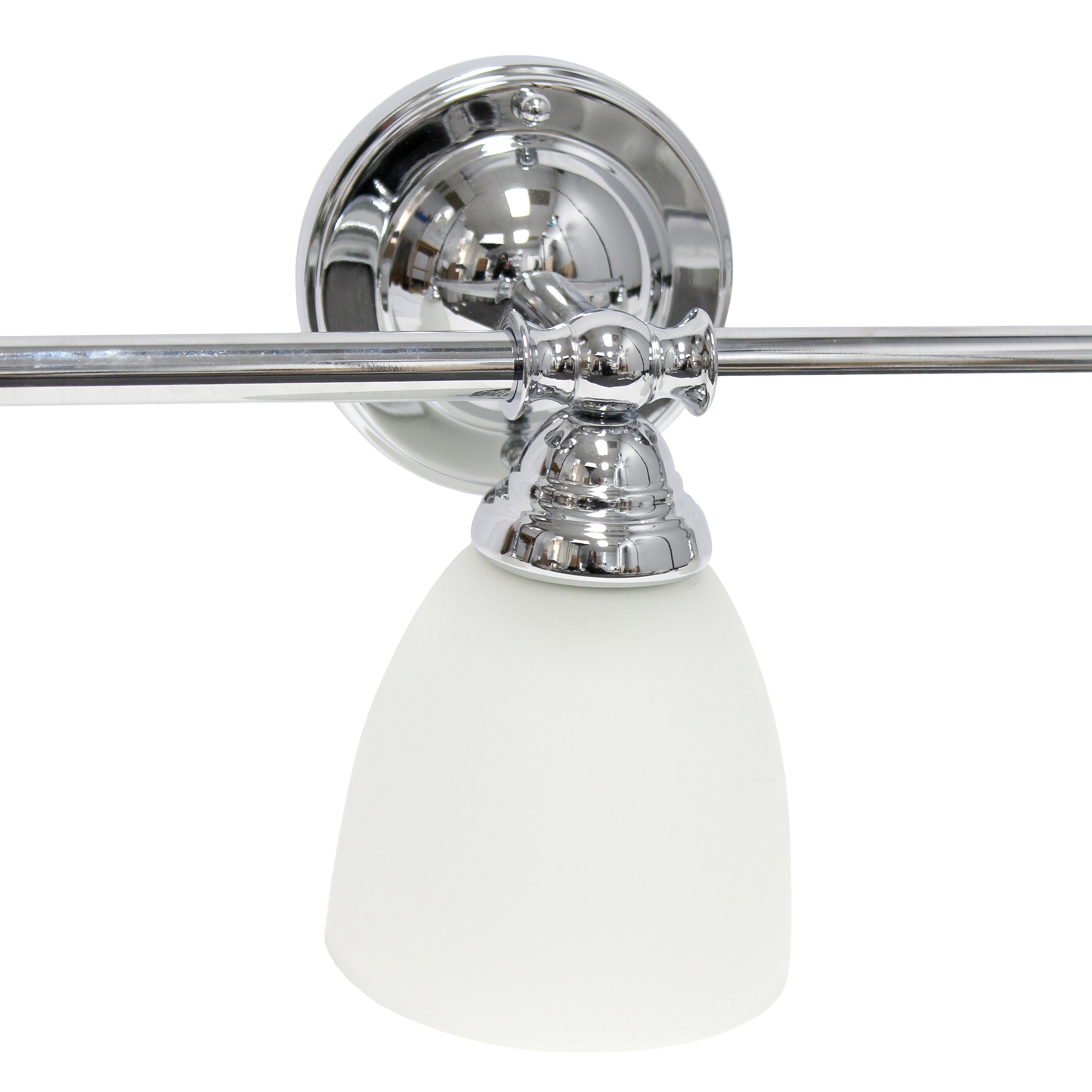 This lovely three light vanity fixture has been carefully designed to serve both your lighting and decor needs in a sophisticated, yet traditional manner. Three identical translucent shades are held in place on a straight metal bar by matching metal socket holders in the finish of your choice. Perfect for your bathroom, hallway, bedroom, foyer, or above your vanity!