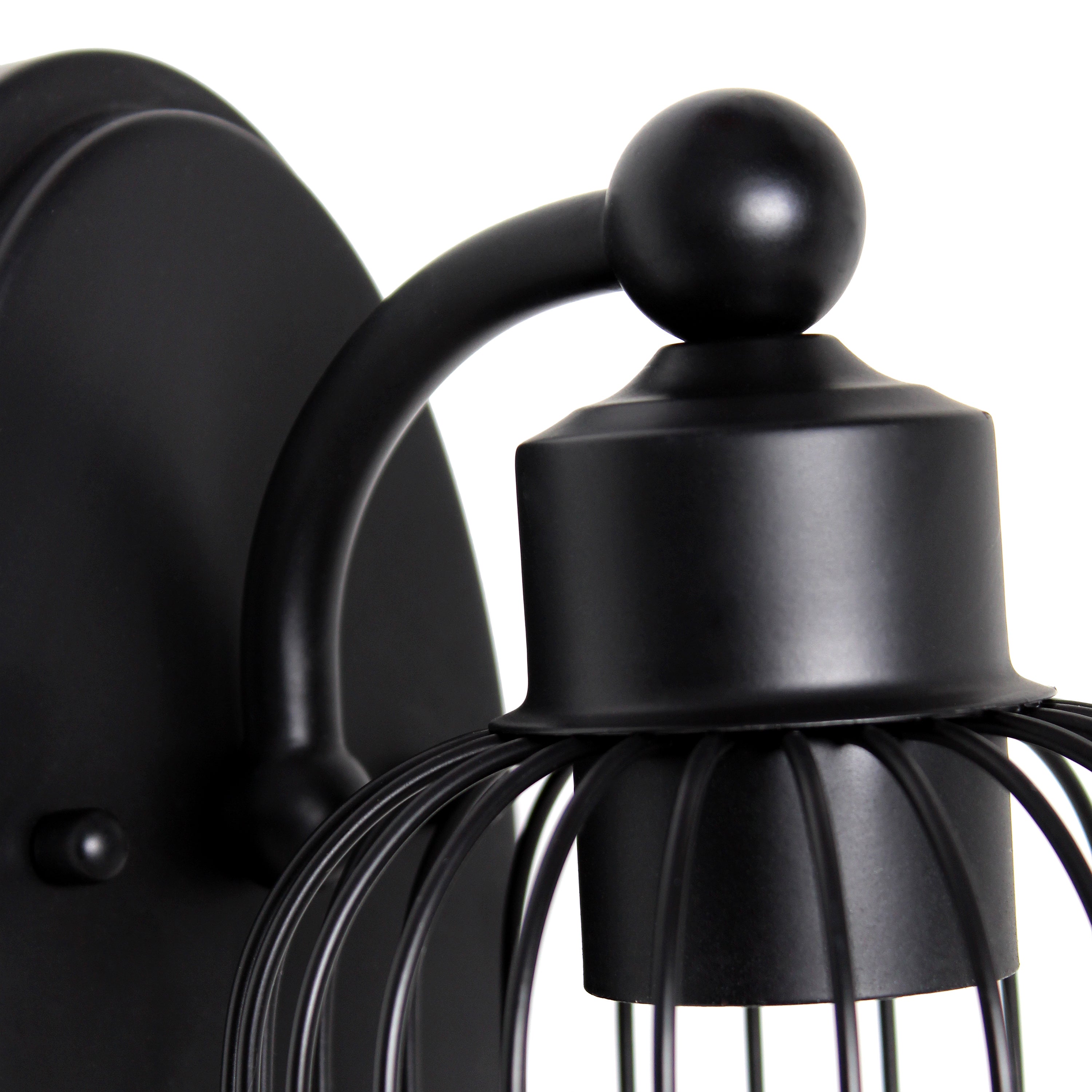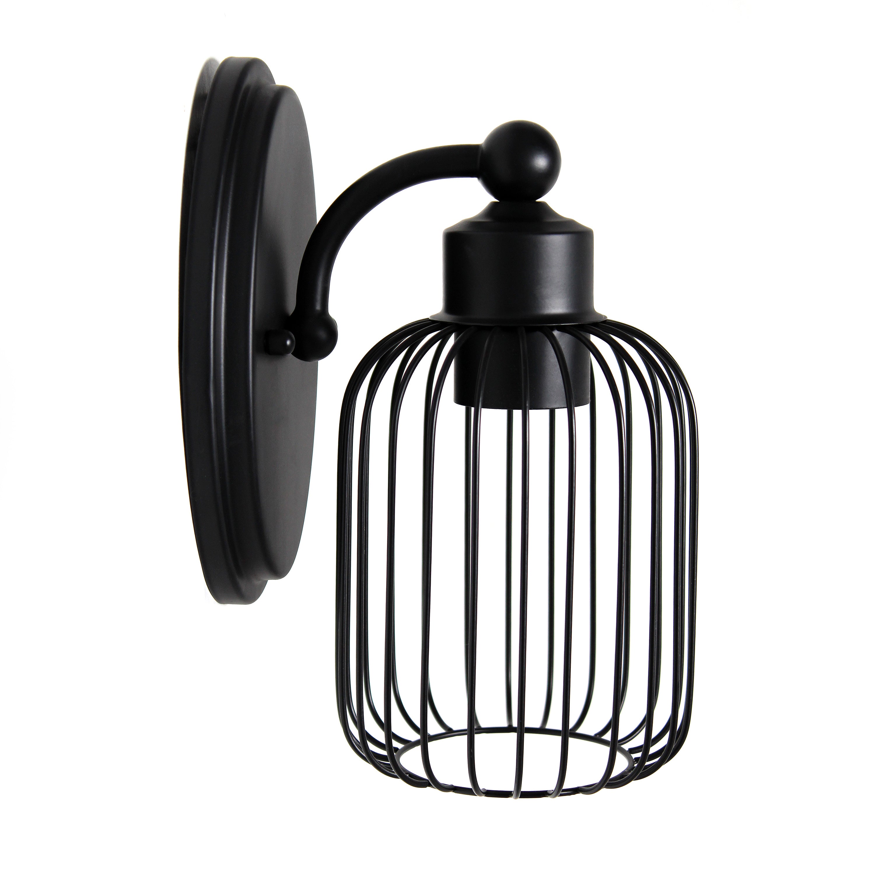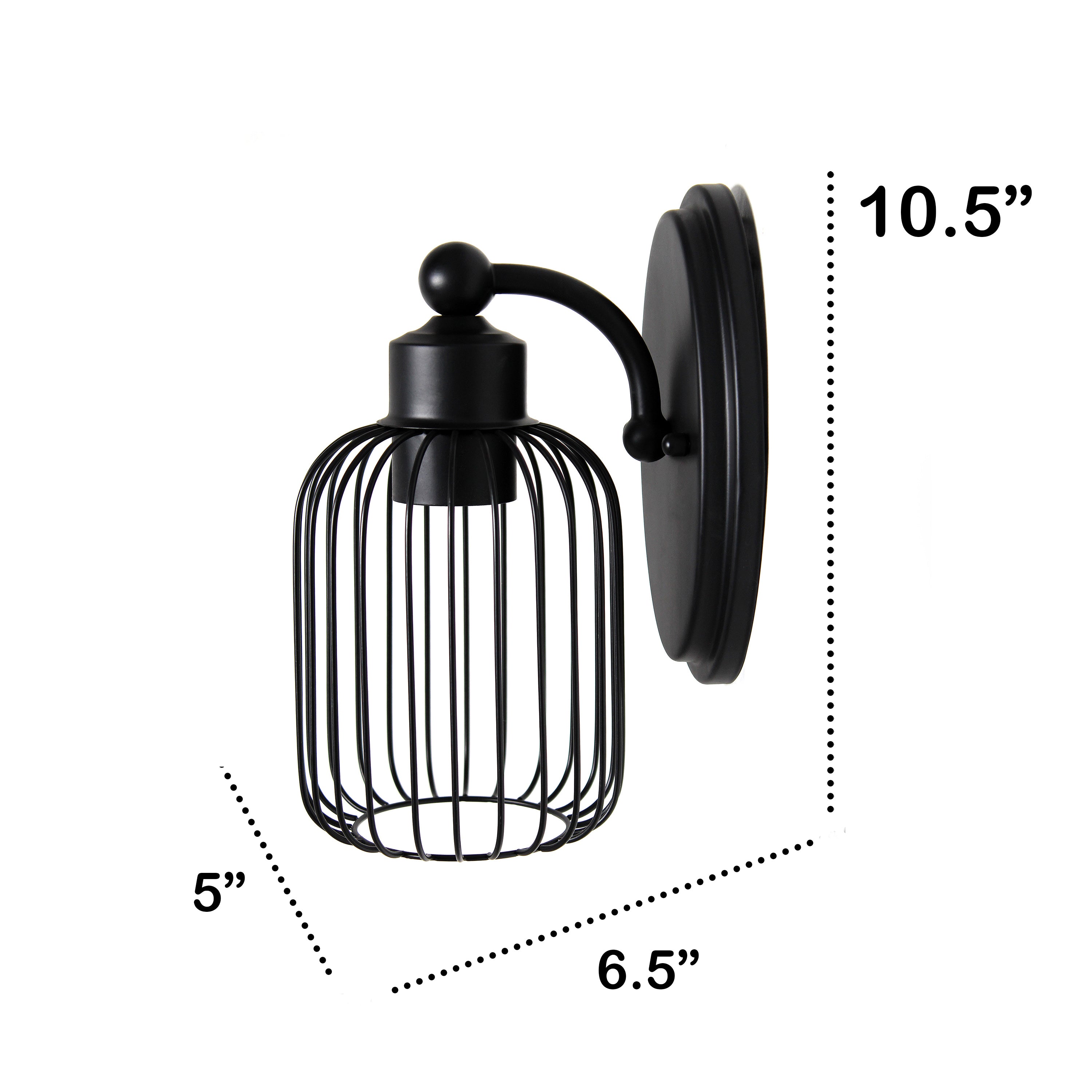 Carefully constructed with both tradition and on trend designs in mind, this all black caged style wall sconce is just what you need in your home and/or office. Equipped to easily mount onto the wall of your choice, this piece will enhance your decor all while lighting up the room adequately with the open cage design of the fixture. Check out all of the Ironhouse collection fixtures to combine vanity, wall sconce and pendant lighting to match into your space.