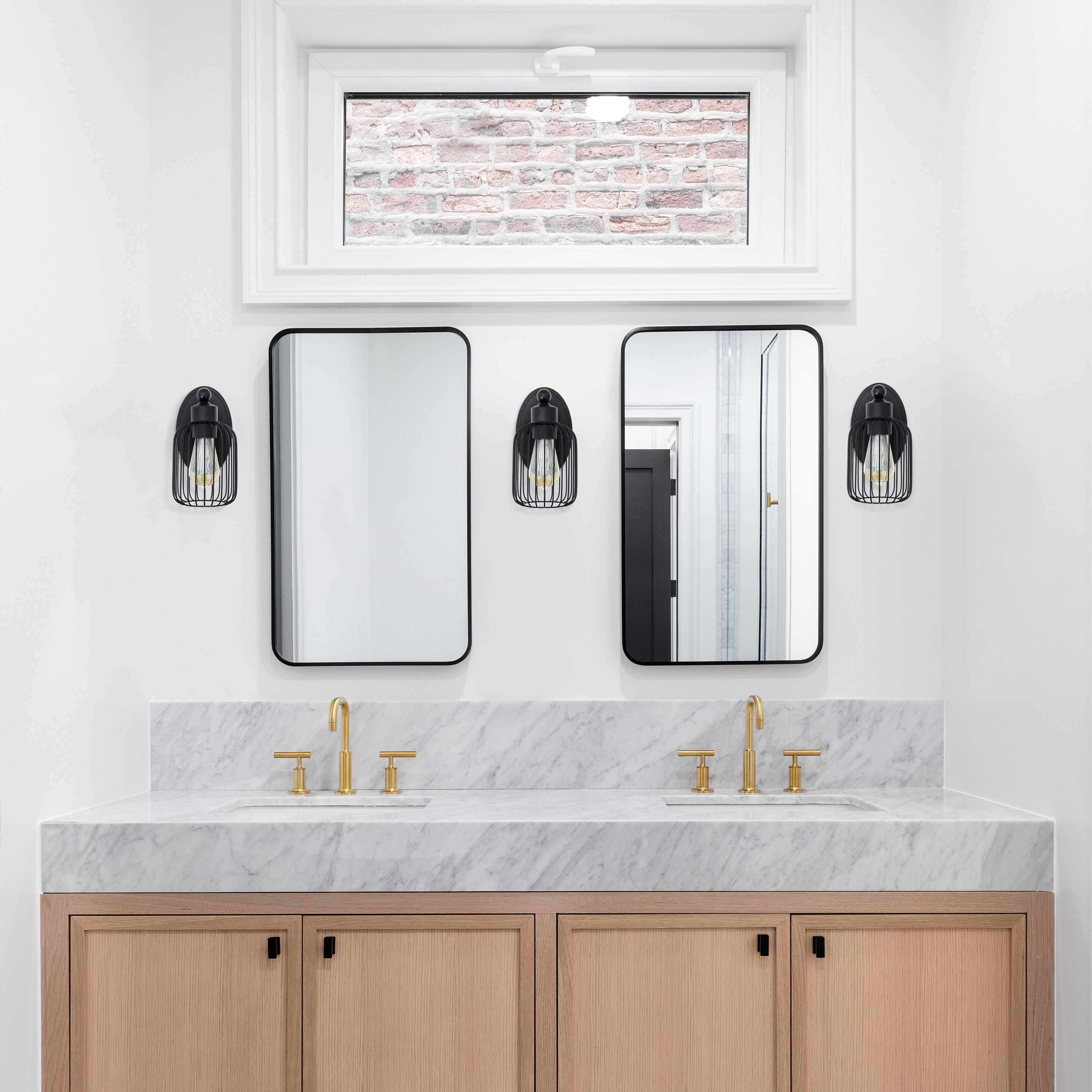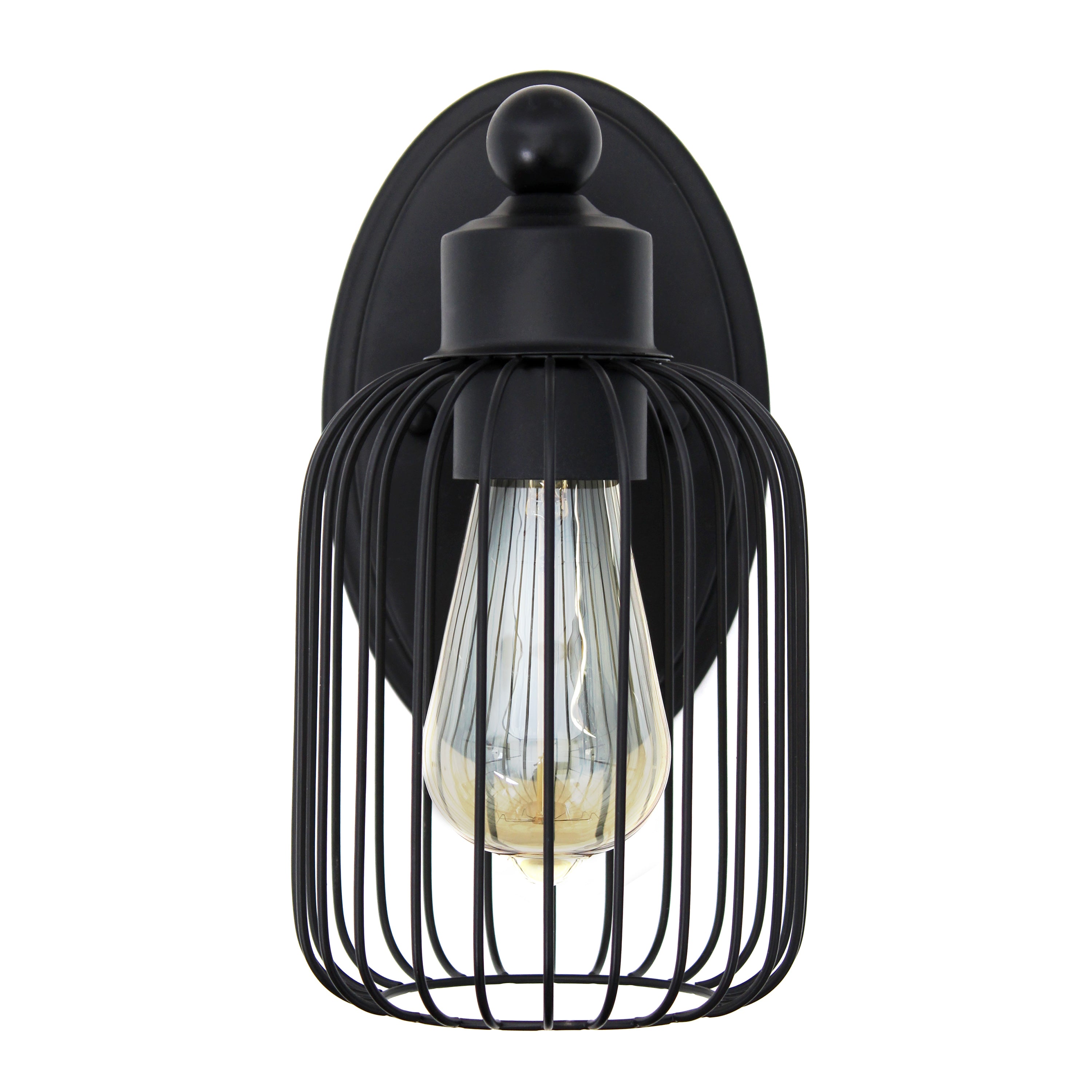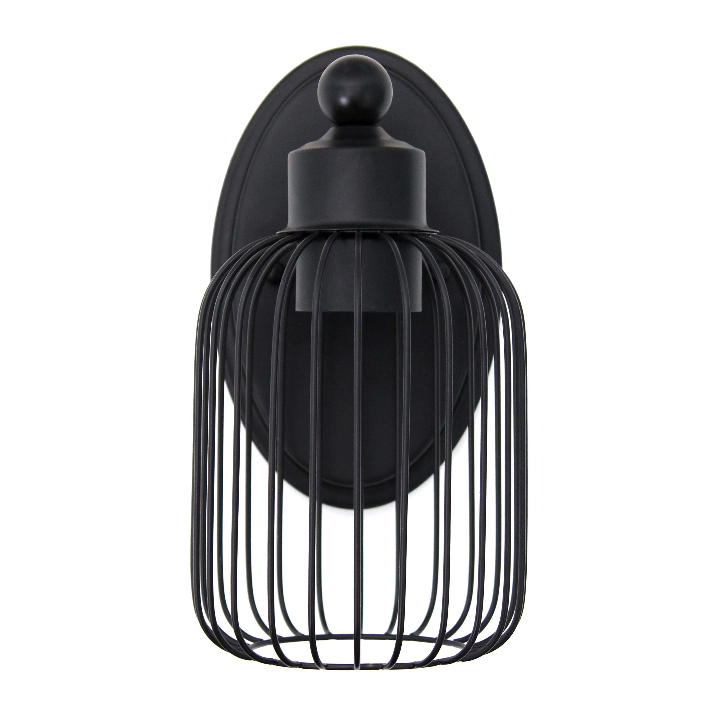 Carefully constructed with both tradition and on trend designs in mind, this all black caged style wall sconce is just what you need in your home and/or office. Equipped to easily mount onto the wall of your choice, this piece will enhance your decor all while lighting up the room adequately with the open cage design of the fixture. Check out all of the Ironhouse collection fixtures to combine vanity, wall sconce and pendant lighting to match into your space.