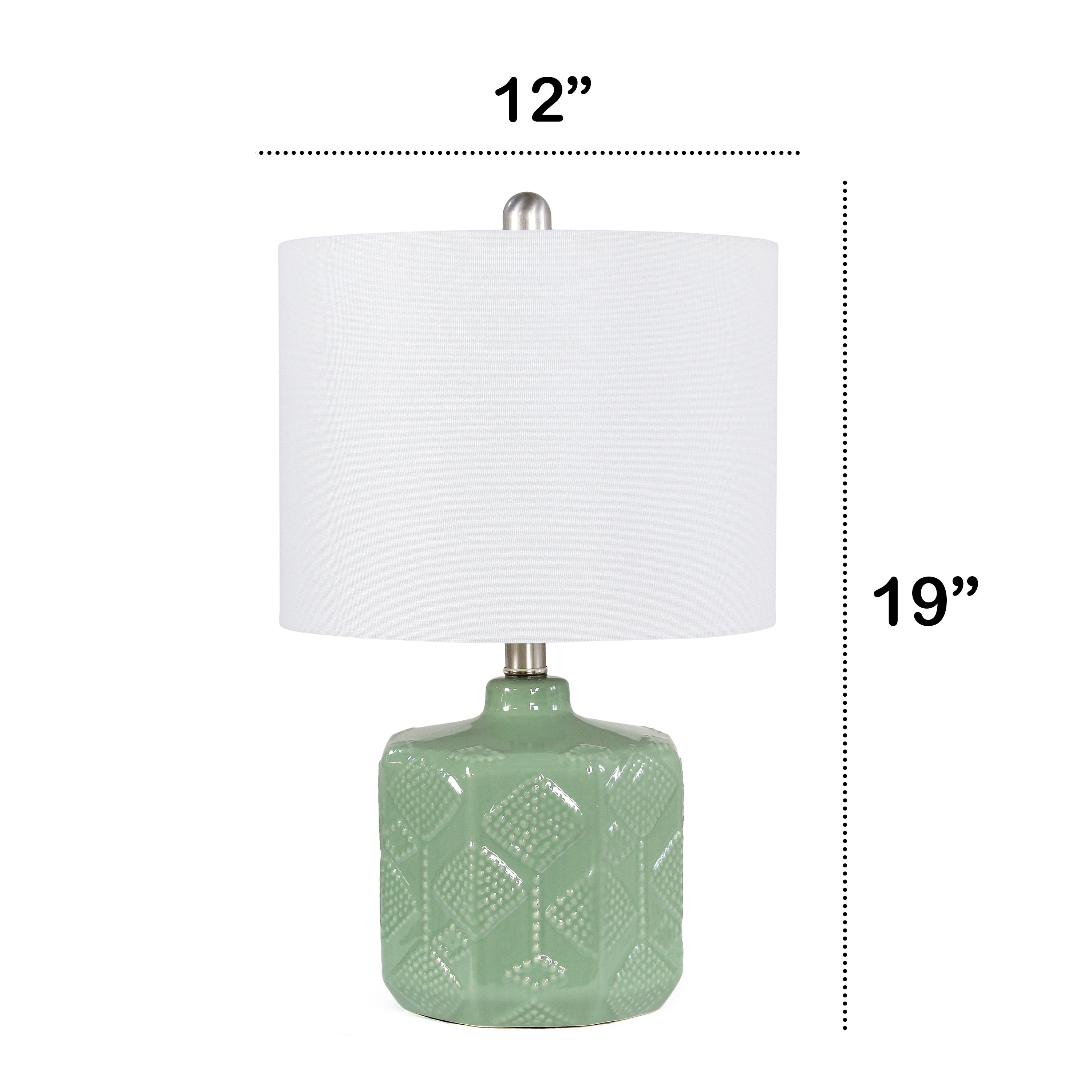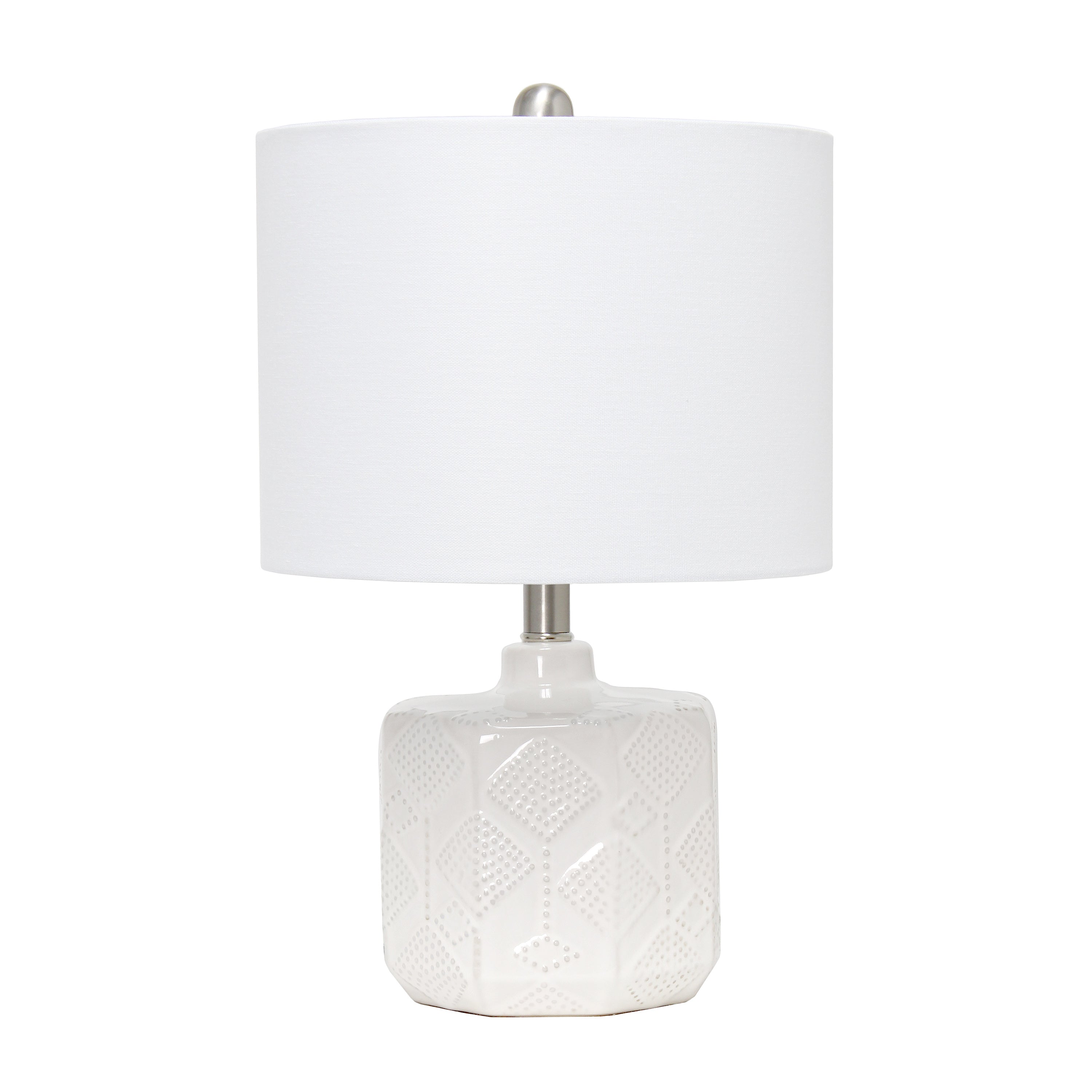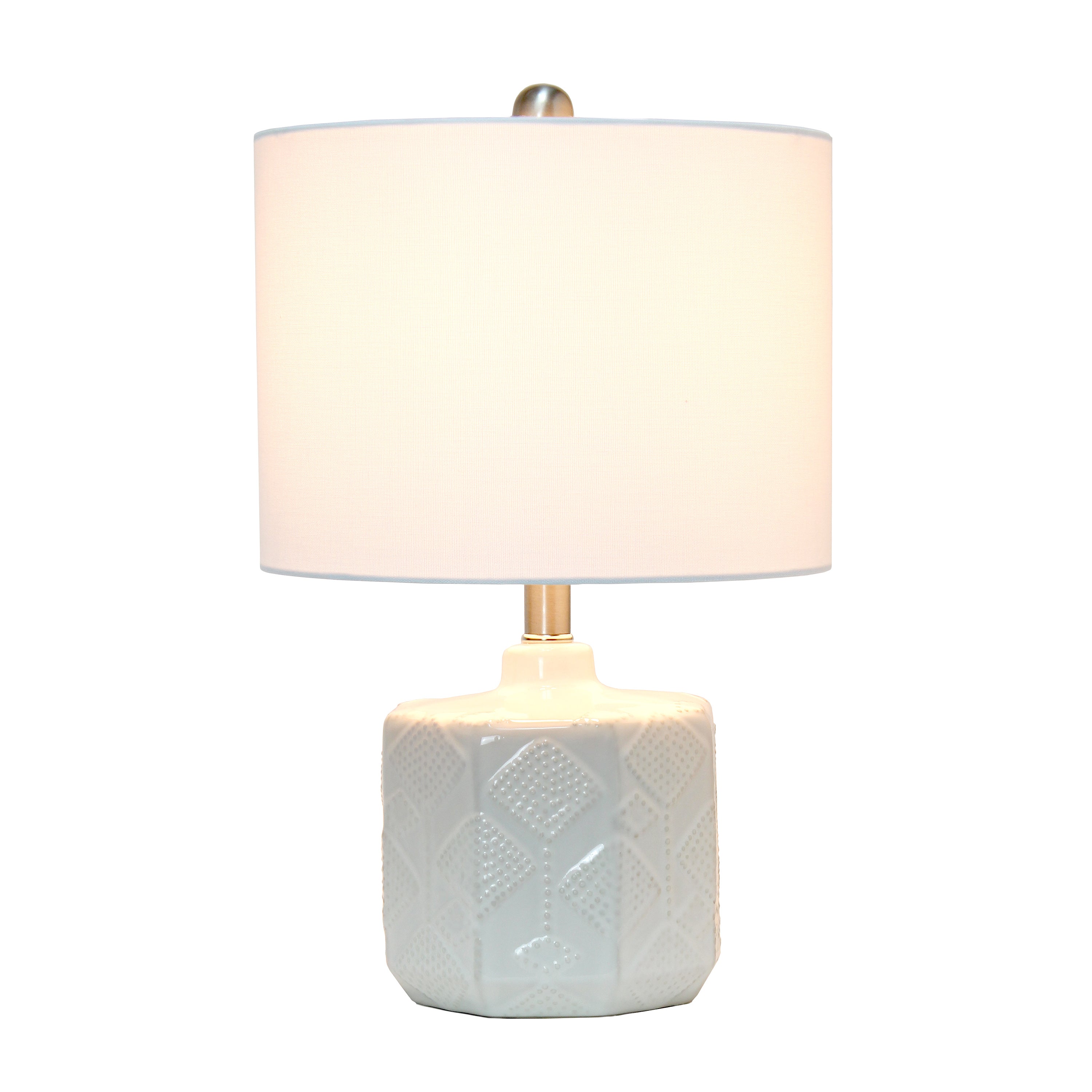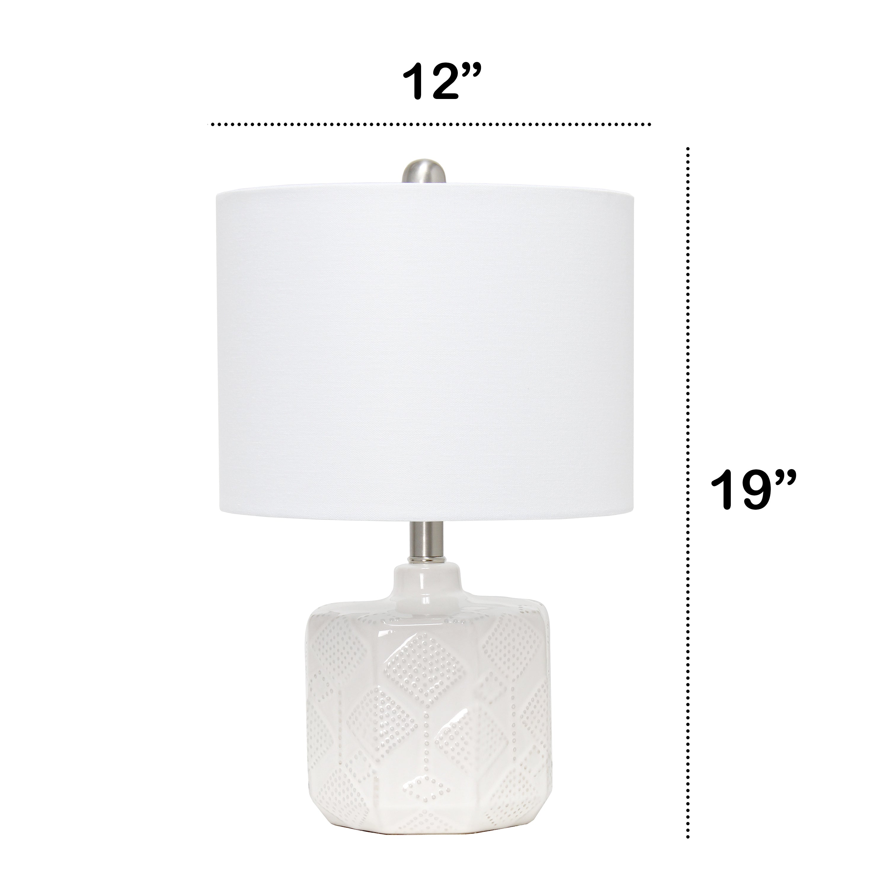 Adorn your space with this beautifully crafted ceramic table lamp. Aesthetically designed with an angular base and embellished with a floral studded texture adding elegance to your space. The white fabric drum shade accents the off-white finish for a clean, fresh look. Perfectly designed for your bedroom nightstand or home office or use as an accent piece in a common area such as your living room or foyer.