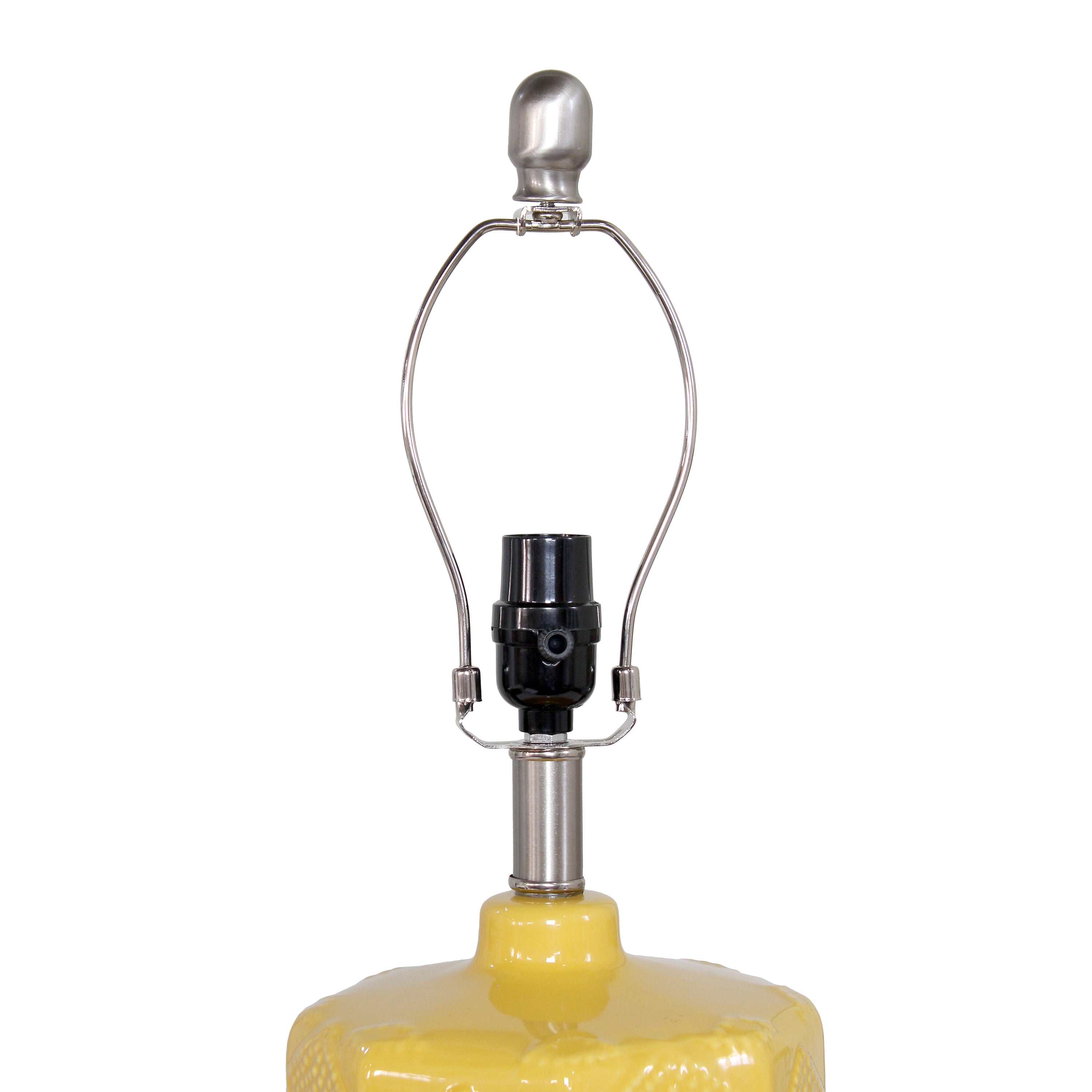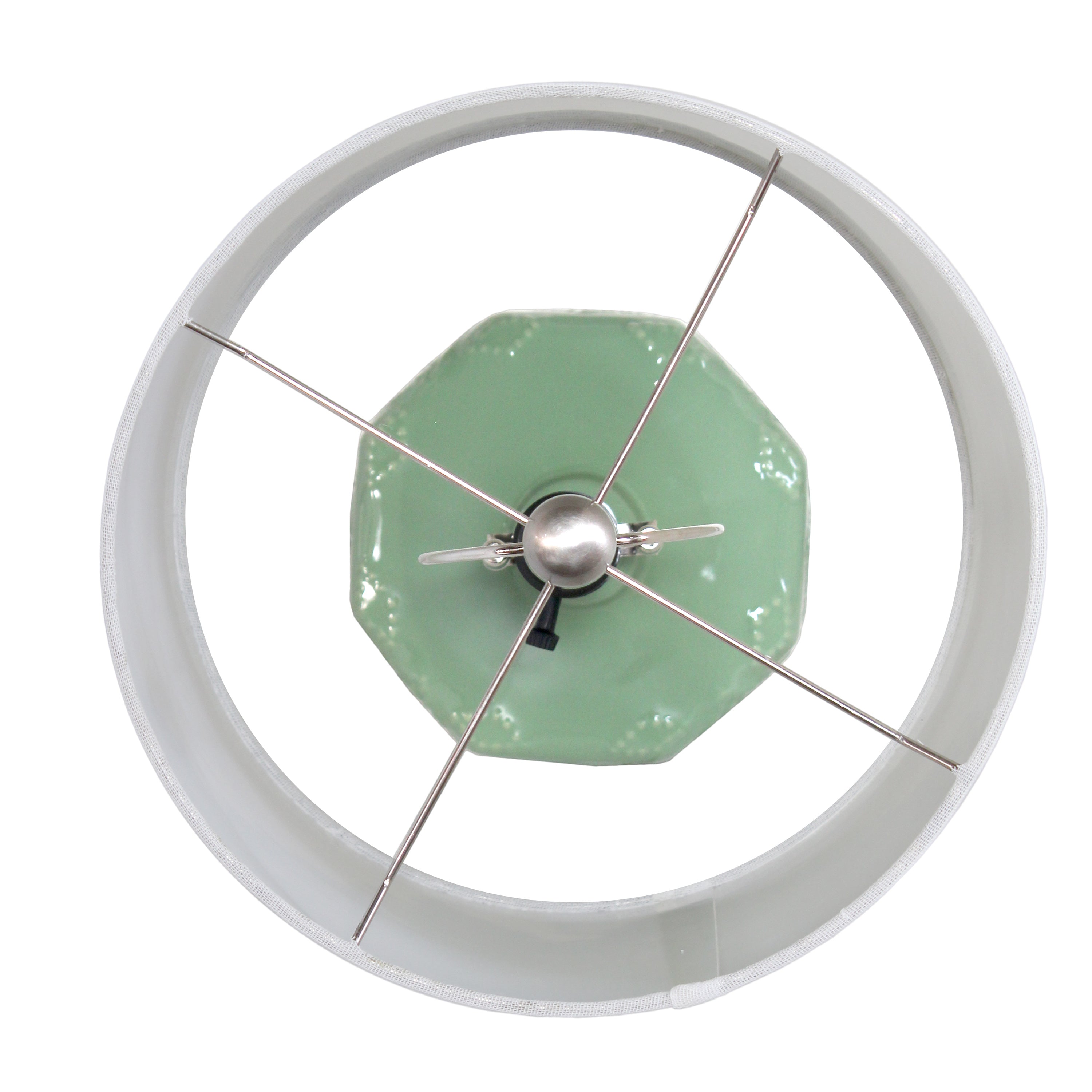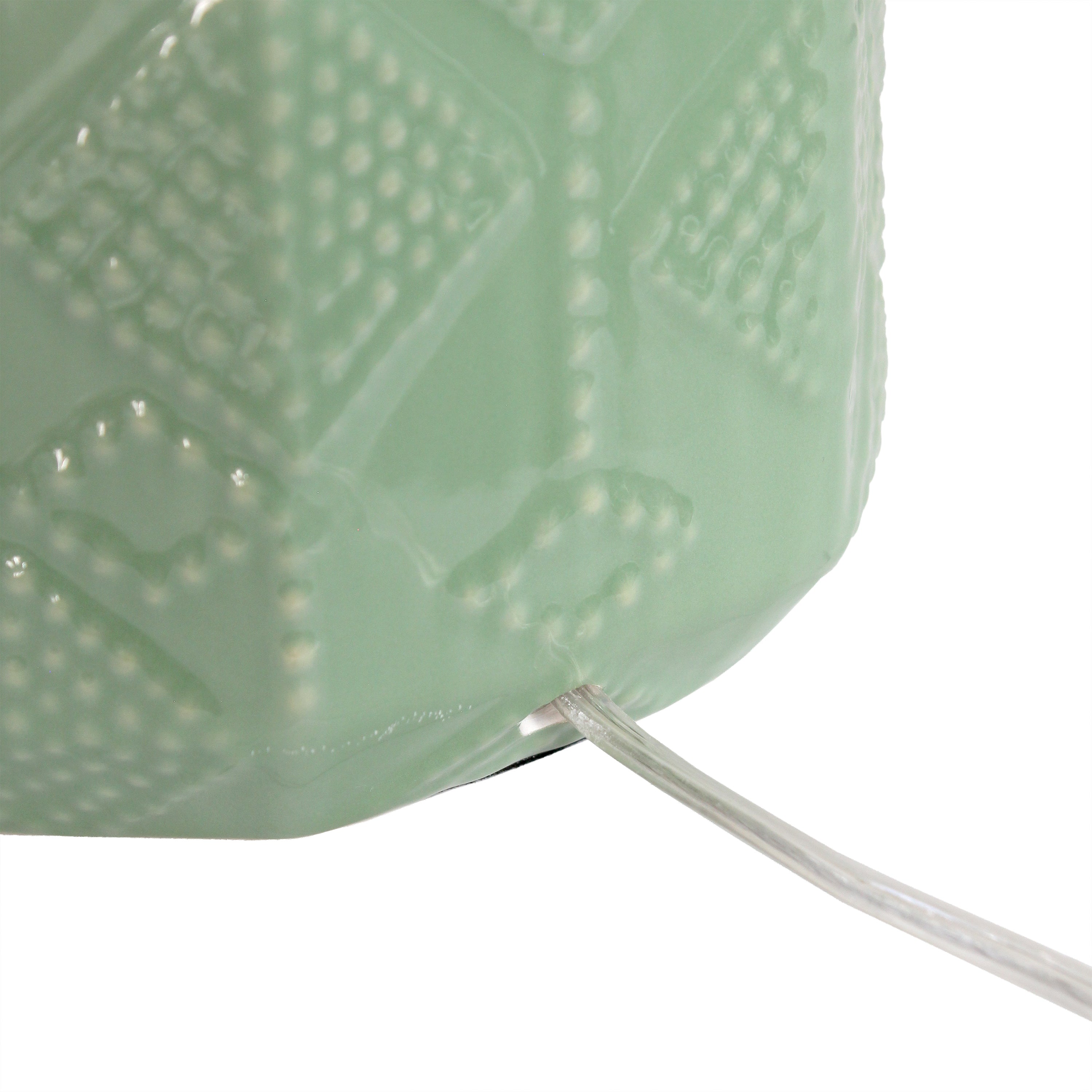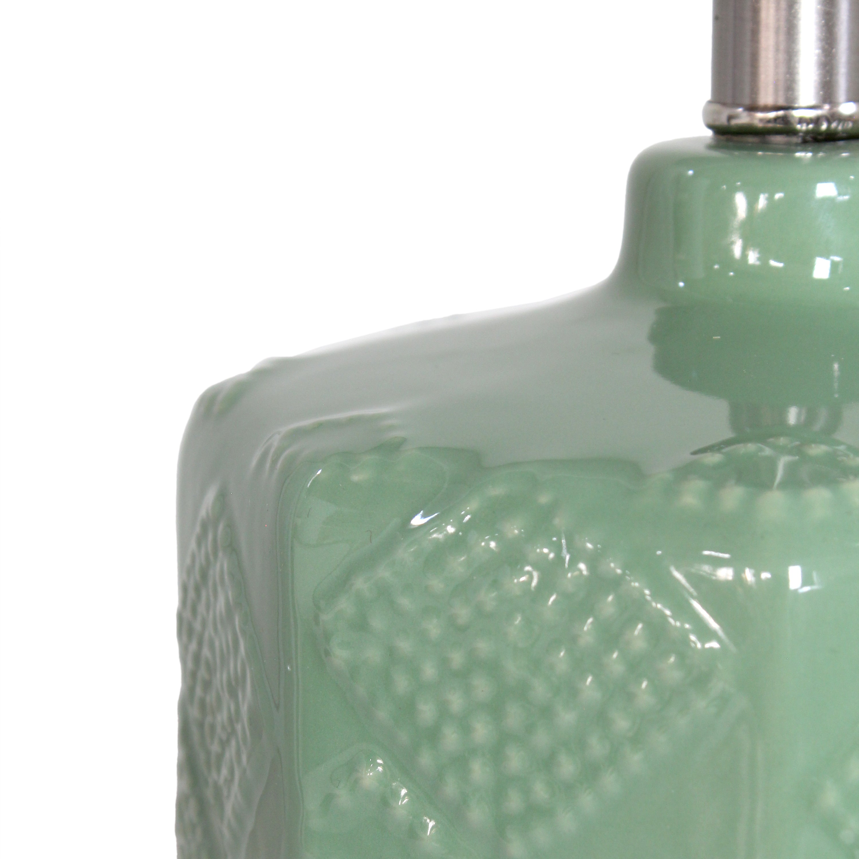 Adorn your space with this beautifully crafted ceramic table lamp. Aesthetically designed with an angular base and embellished with a floral studded texture adding elegance to your space. The white fabric drum shade accents the off-white finish for a clean, fresh look. Perfectly designed for your bedroom nightstand or home office or use as an accent piece in a common area such as your living room or foyer.
