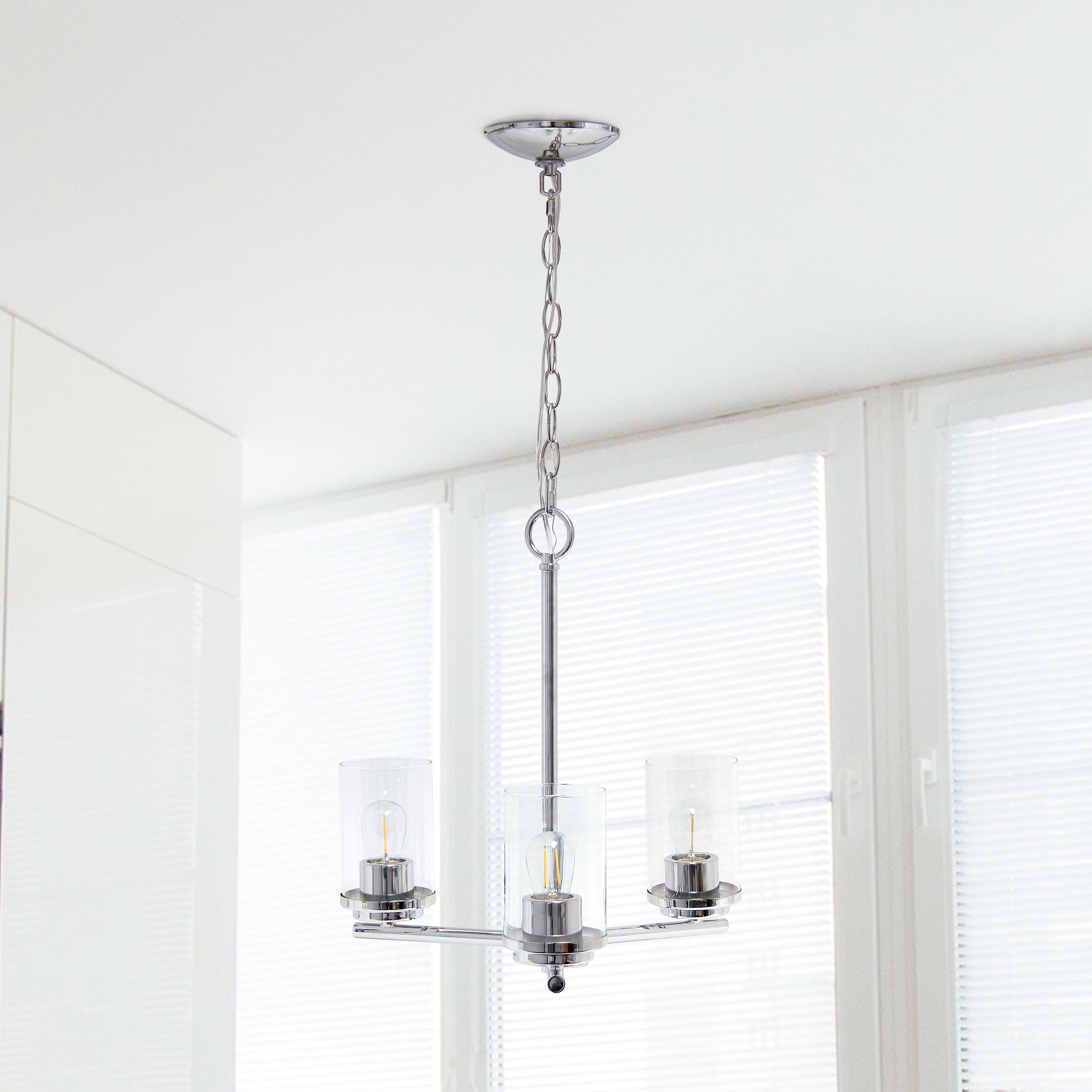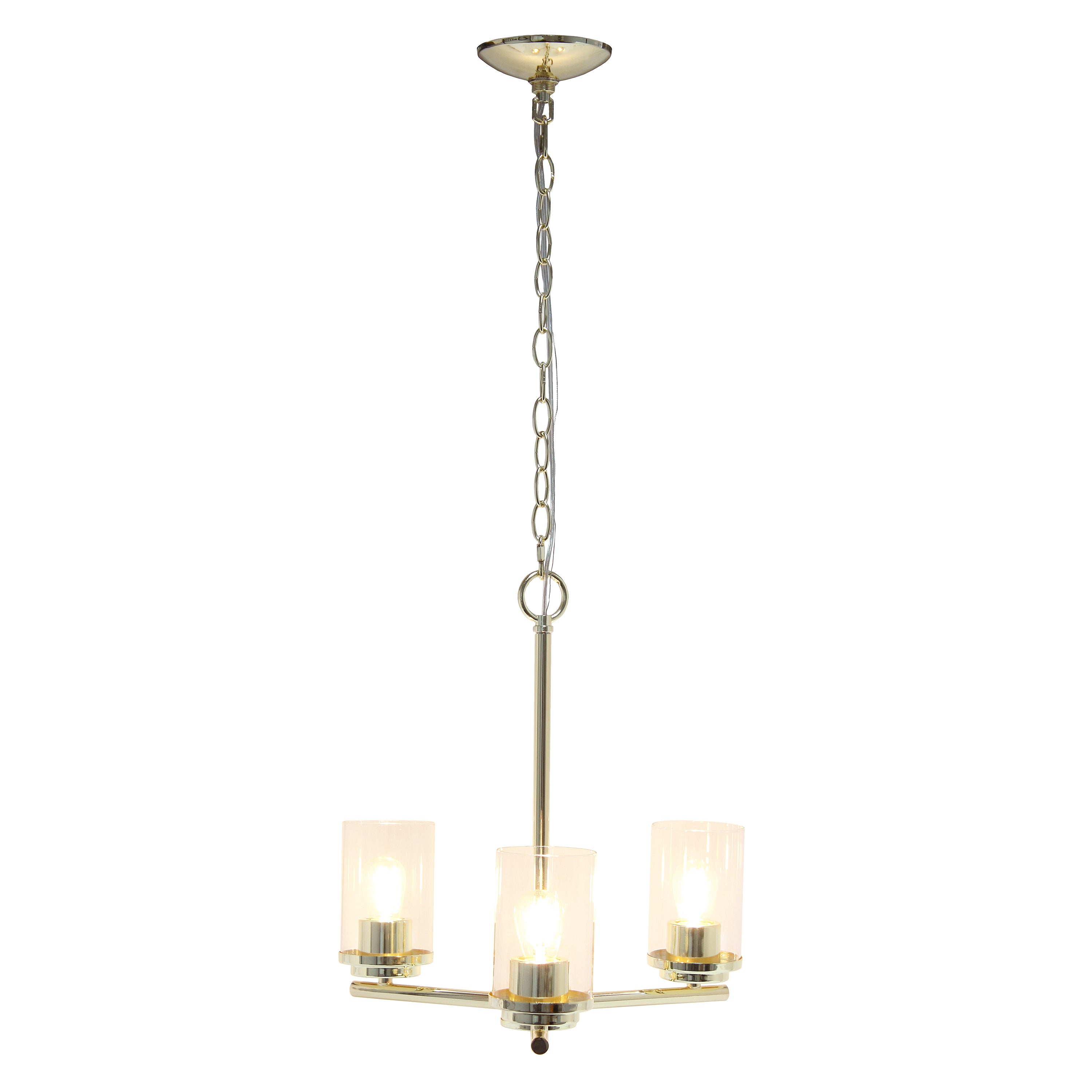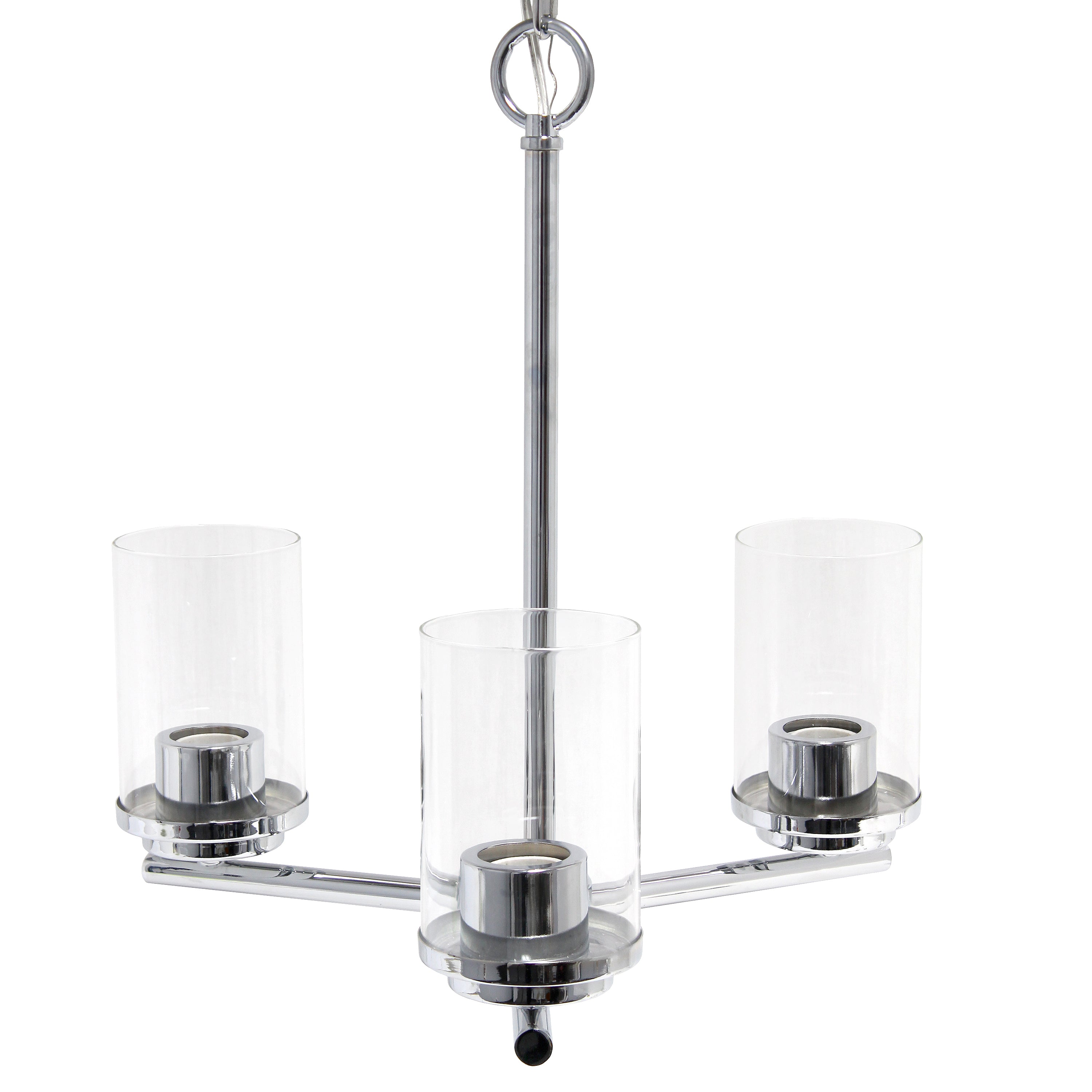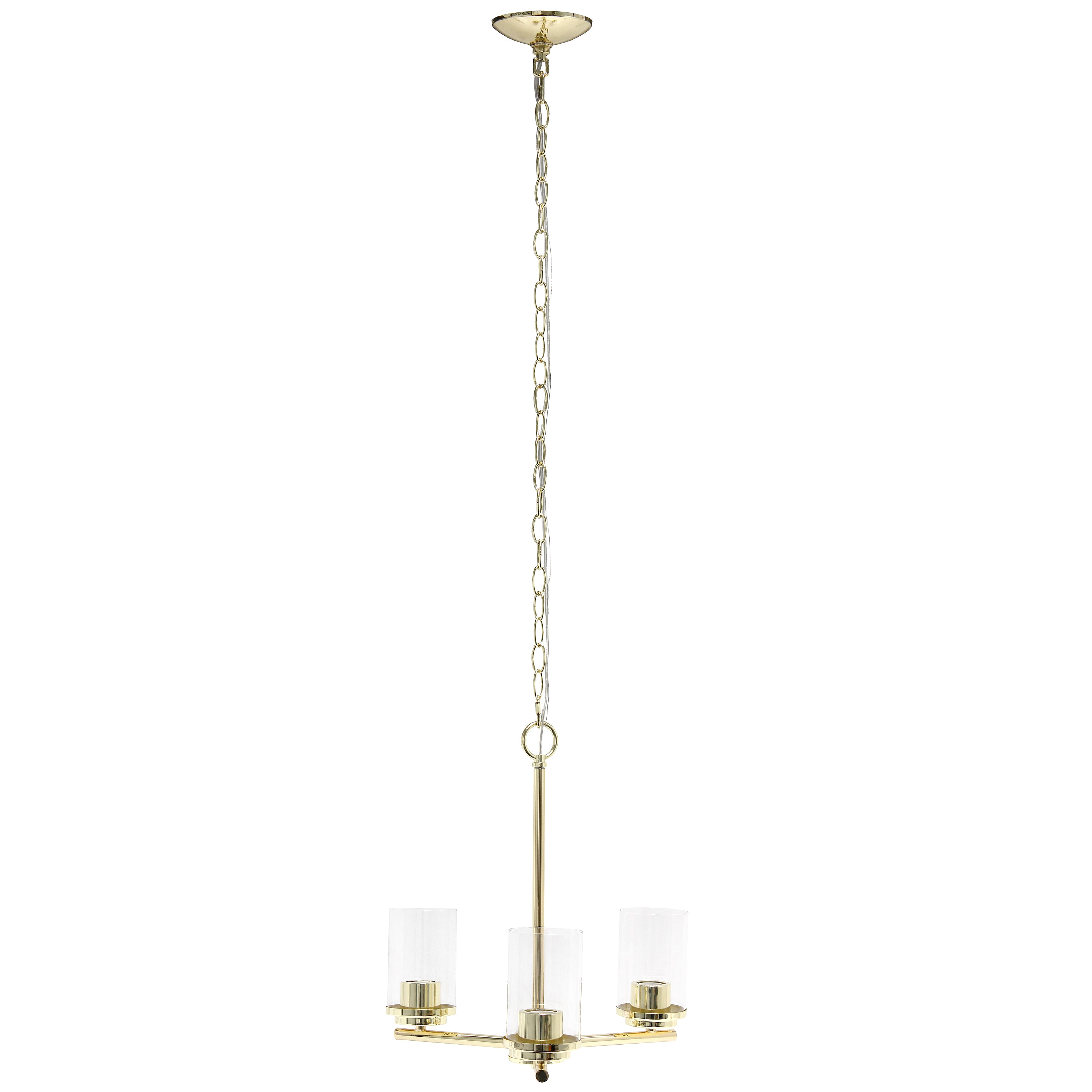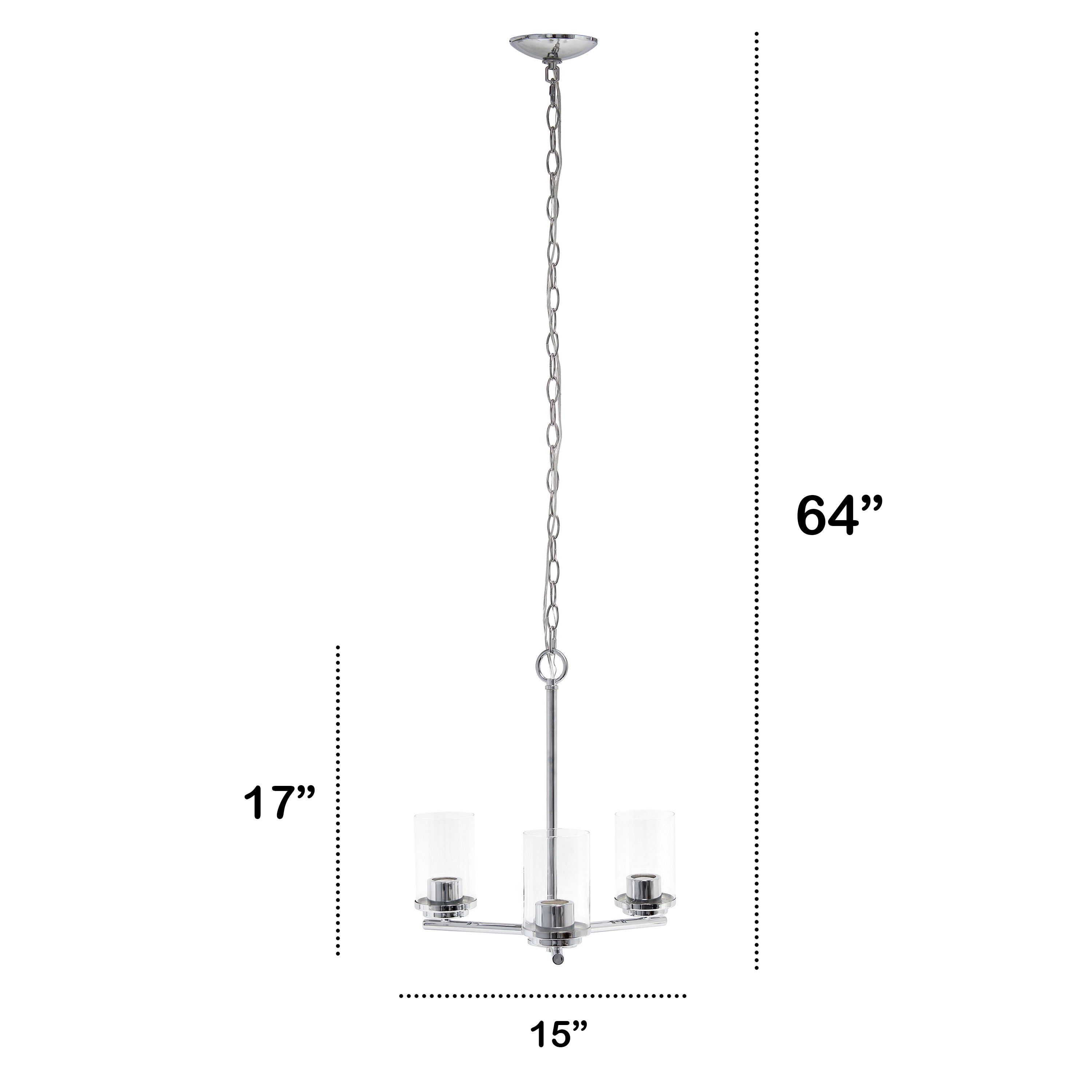 The smooth metal finish and simple clear glass shades on this three-light pendant come together and create a traditional design with a modern update. Add brightness and charm to your entryway, stairwell, dining room, bedroom, office or living room with this elegant chandelier pendant fixture!