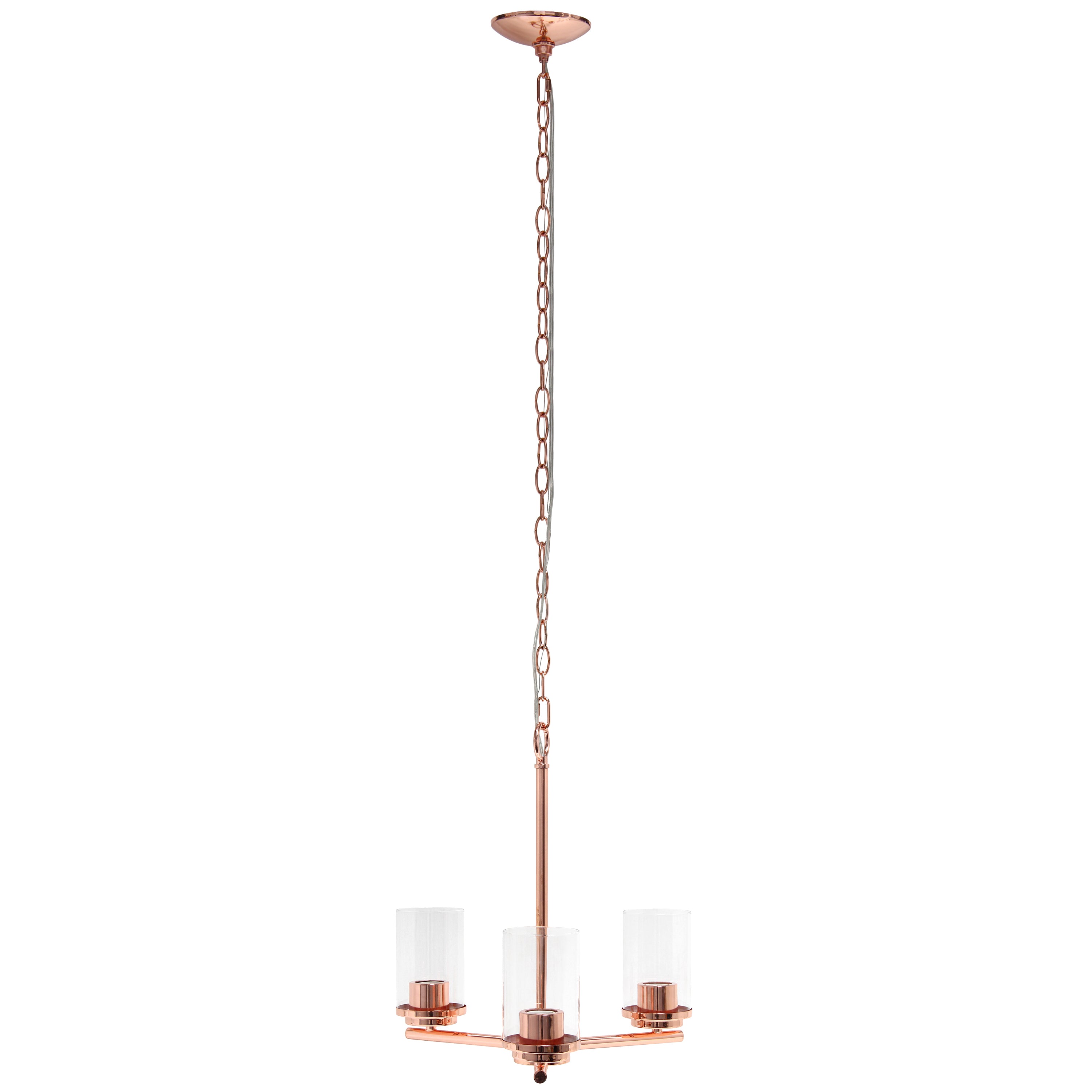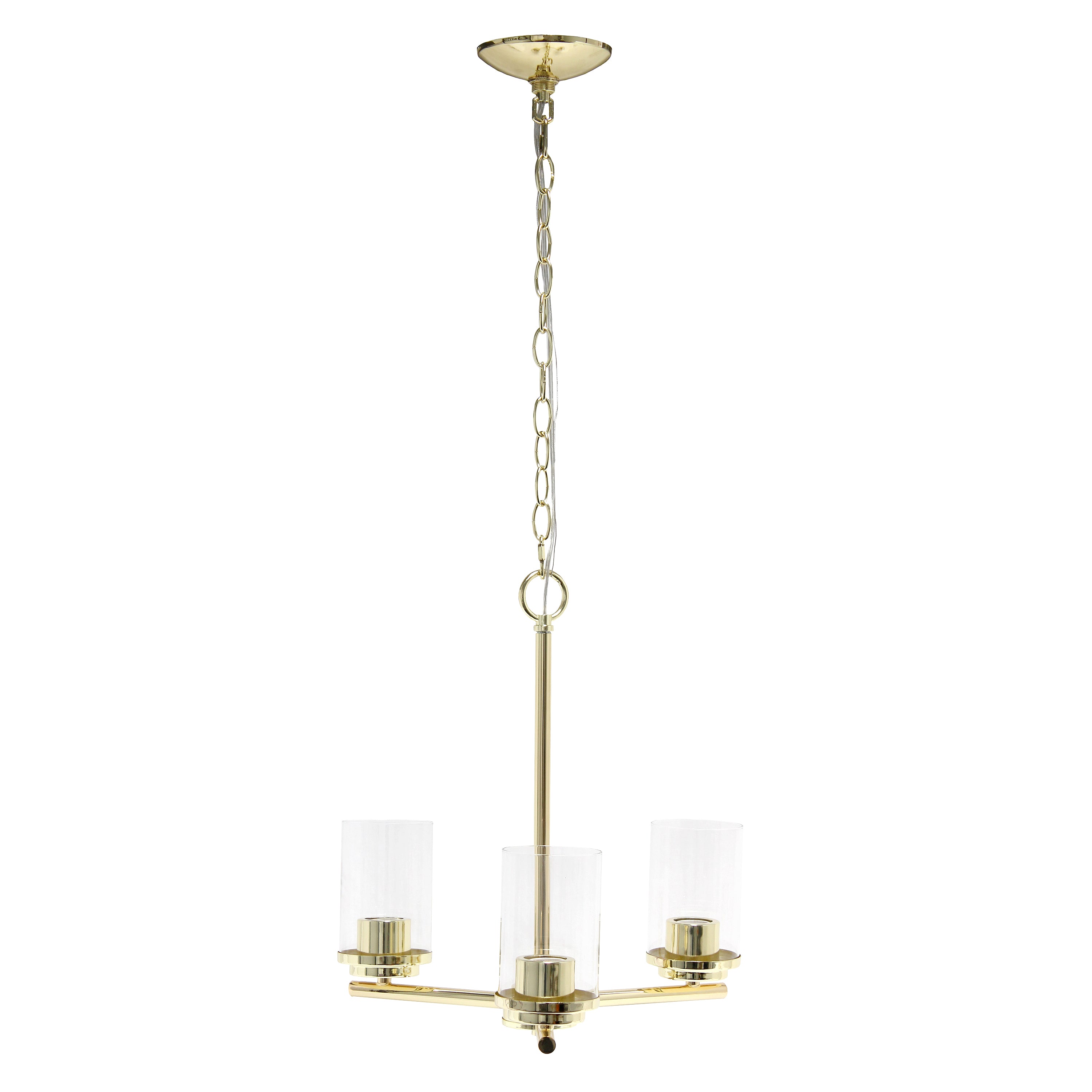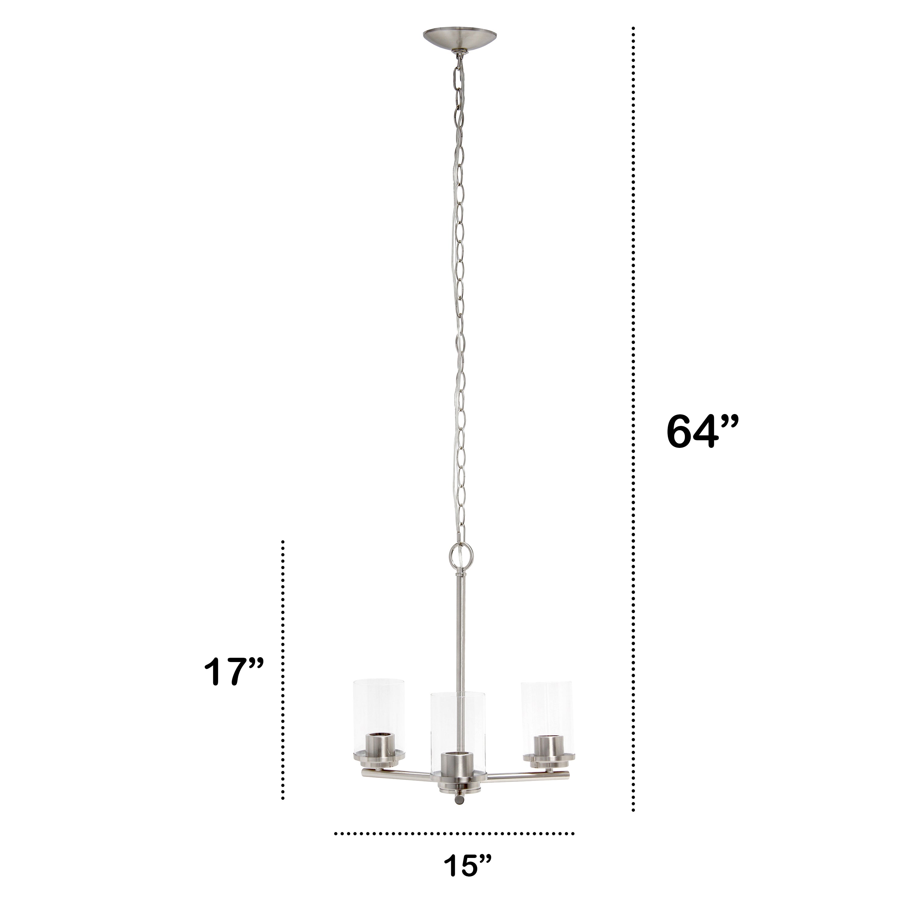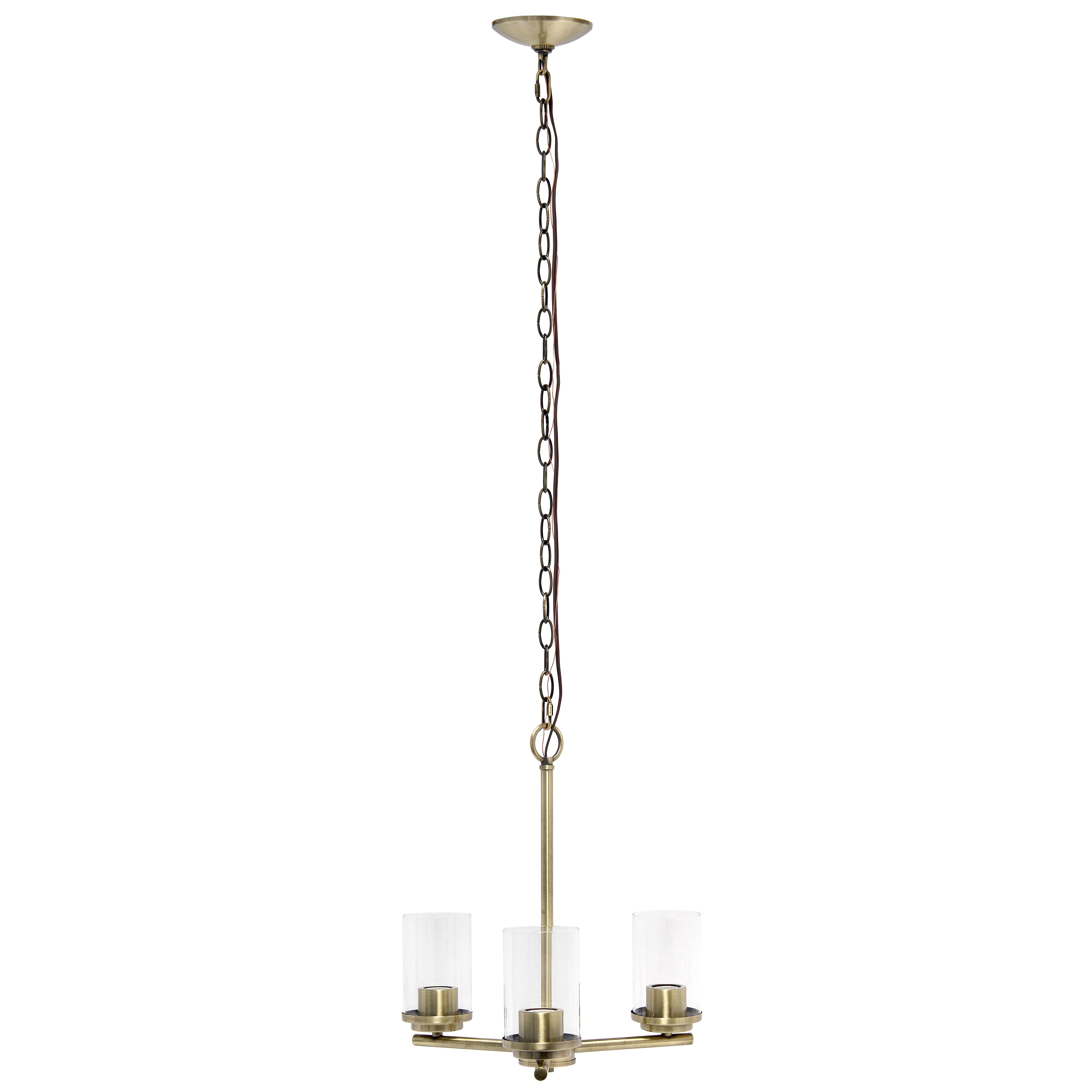 The smooth metal finish and simple clear glass shades on this three-light pendant come together and create a traditional design with a modern update. Add brightness and charm to your entryway, stairwell, dining room, bedroom, office or living room with this elegant chandelier pendant fixture!