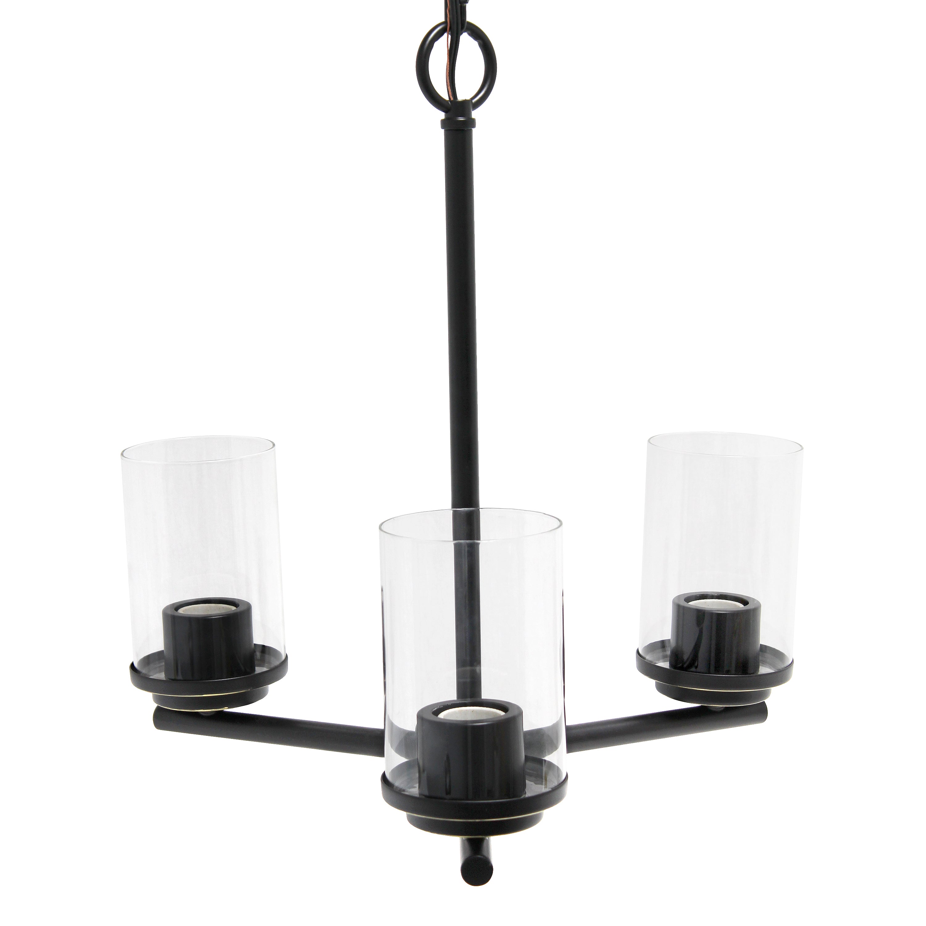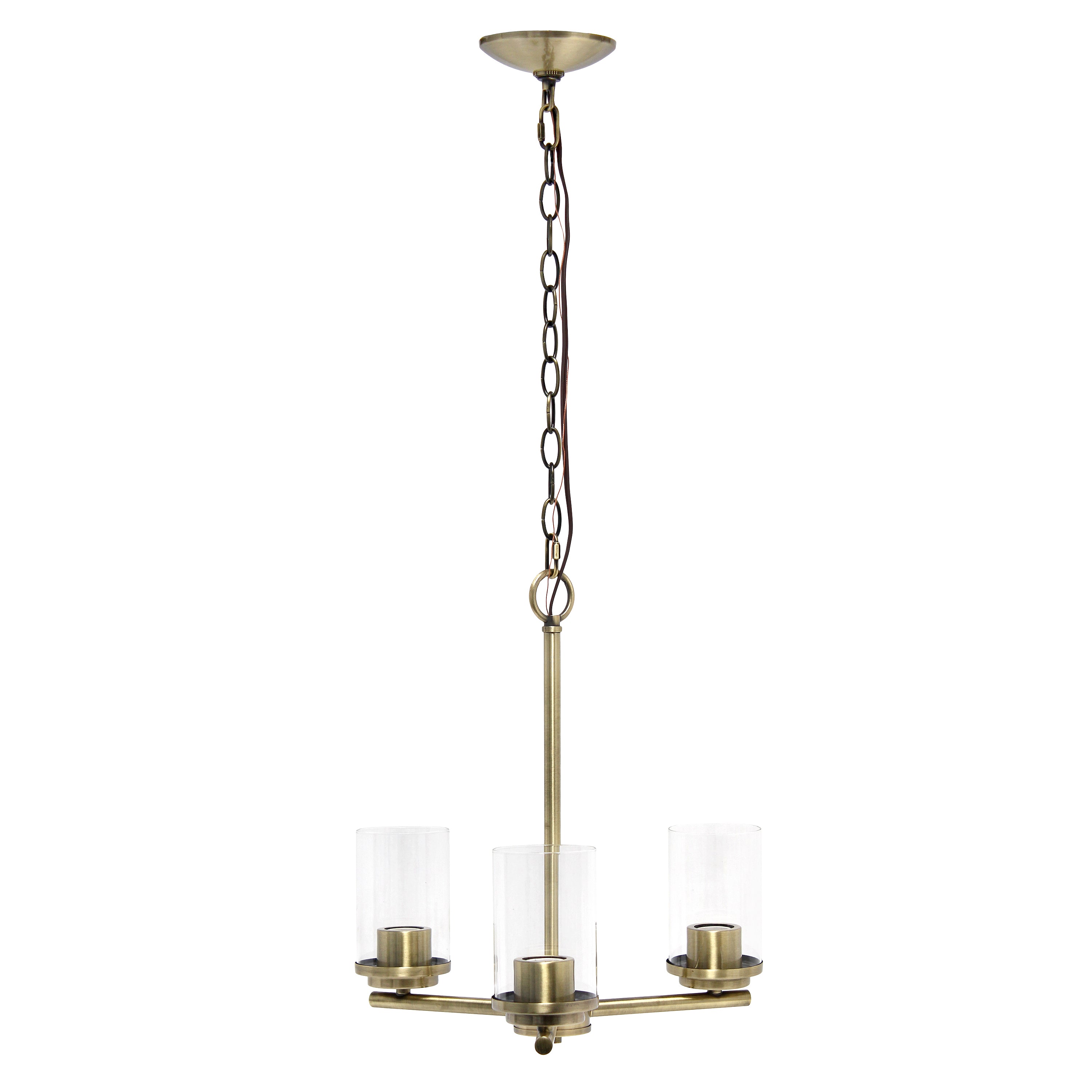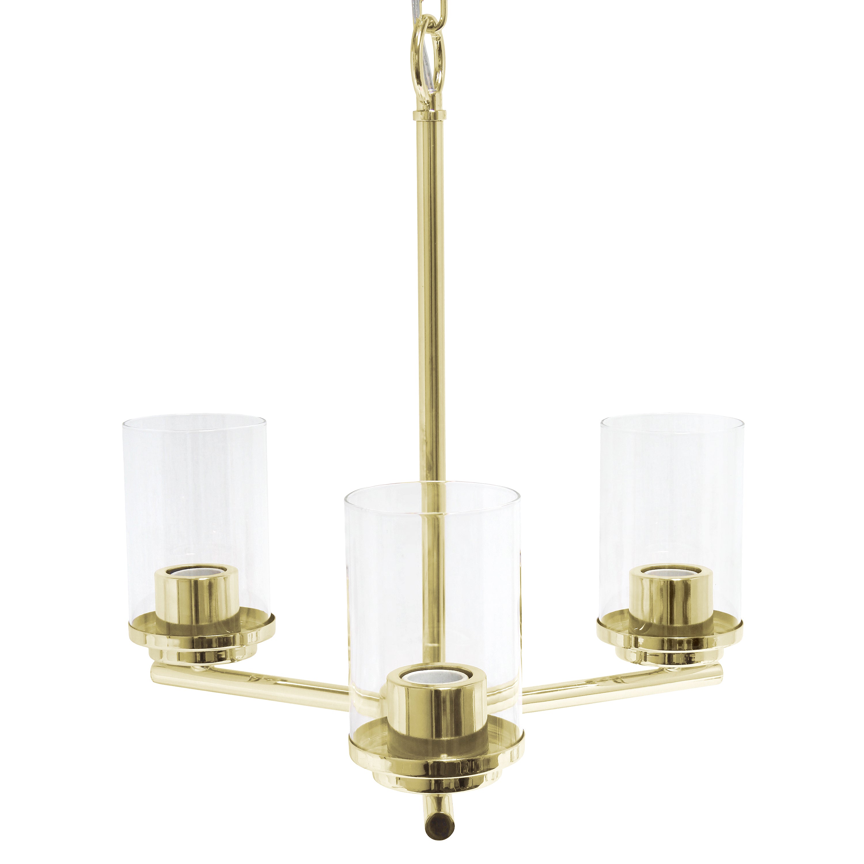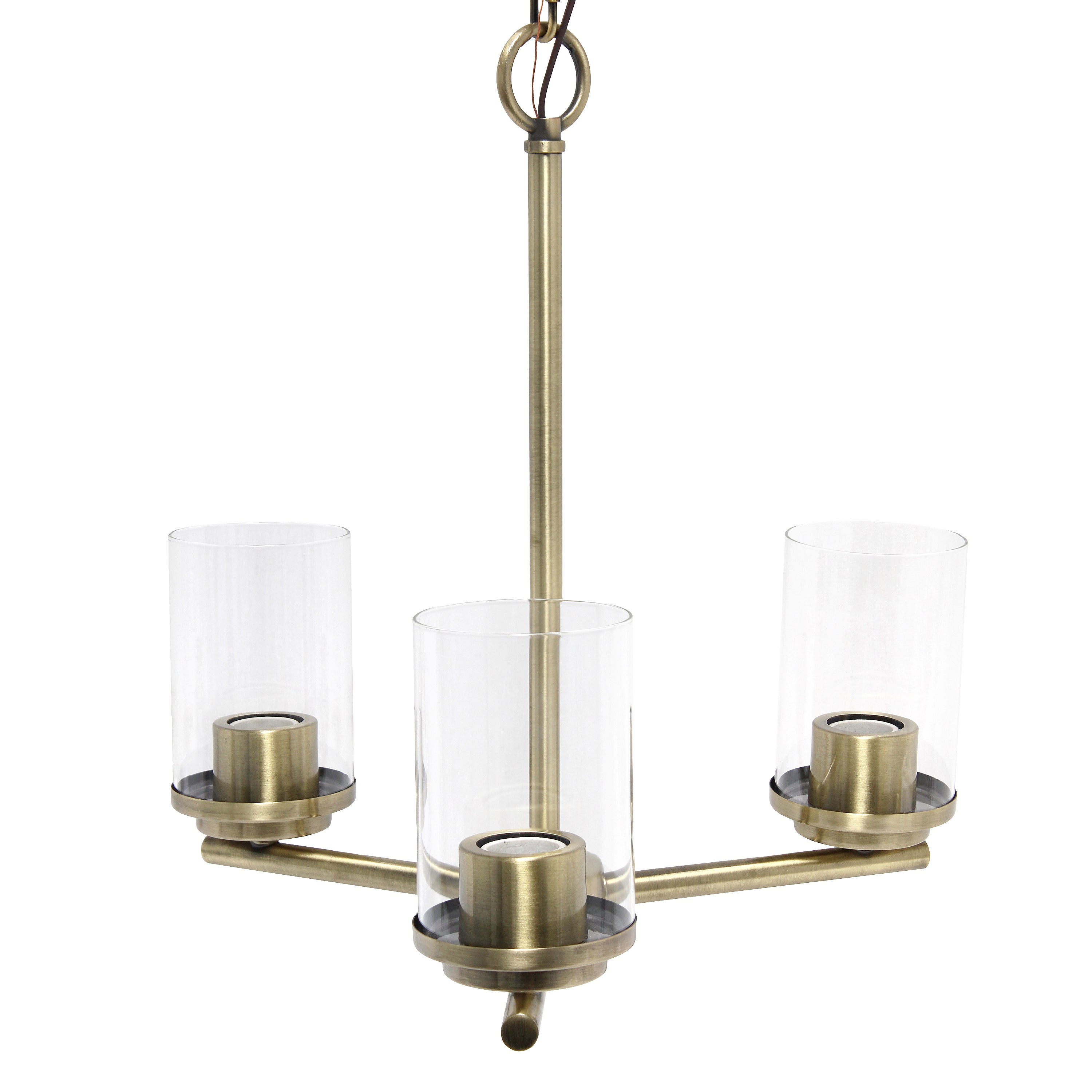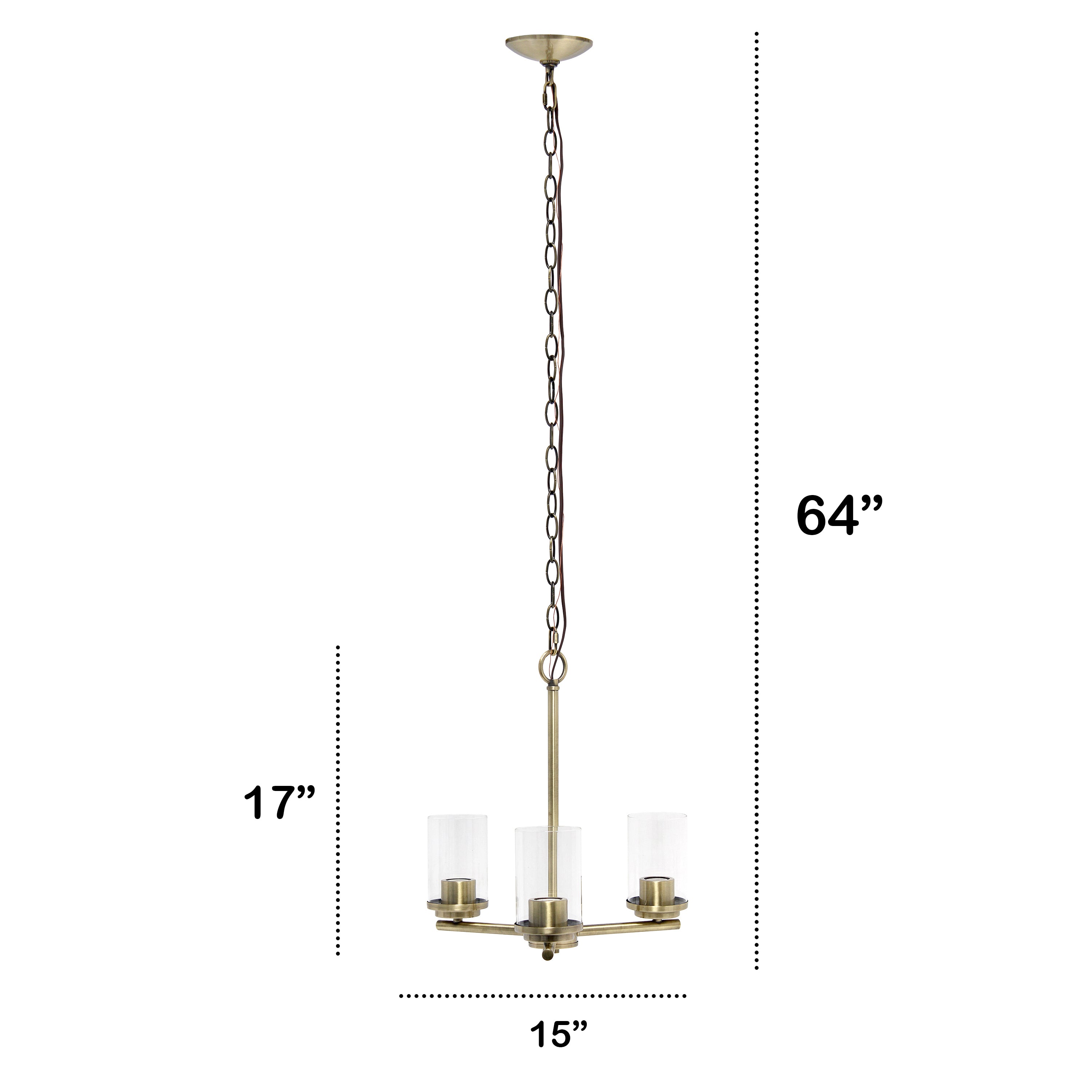 The smooth metal finish and simple clear glass shades on this three-light pendant come together and create a traditional design with a modern update. Add brightness and charm to your entryway, stairwell, dining room, bedroom, office or living room with this elegant chandelier pendant fixture!