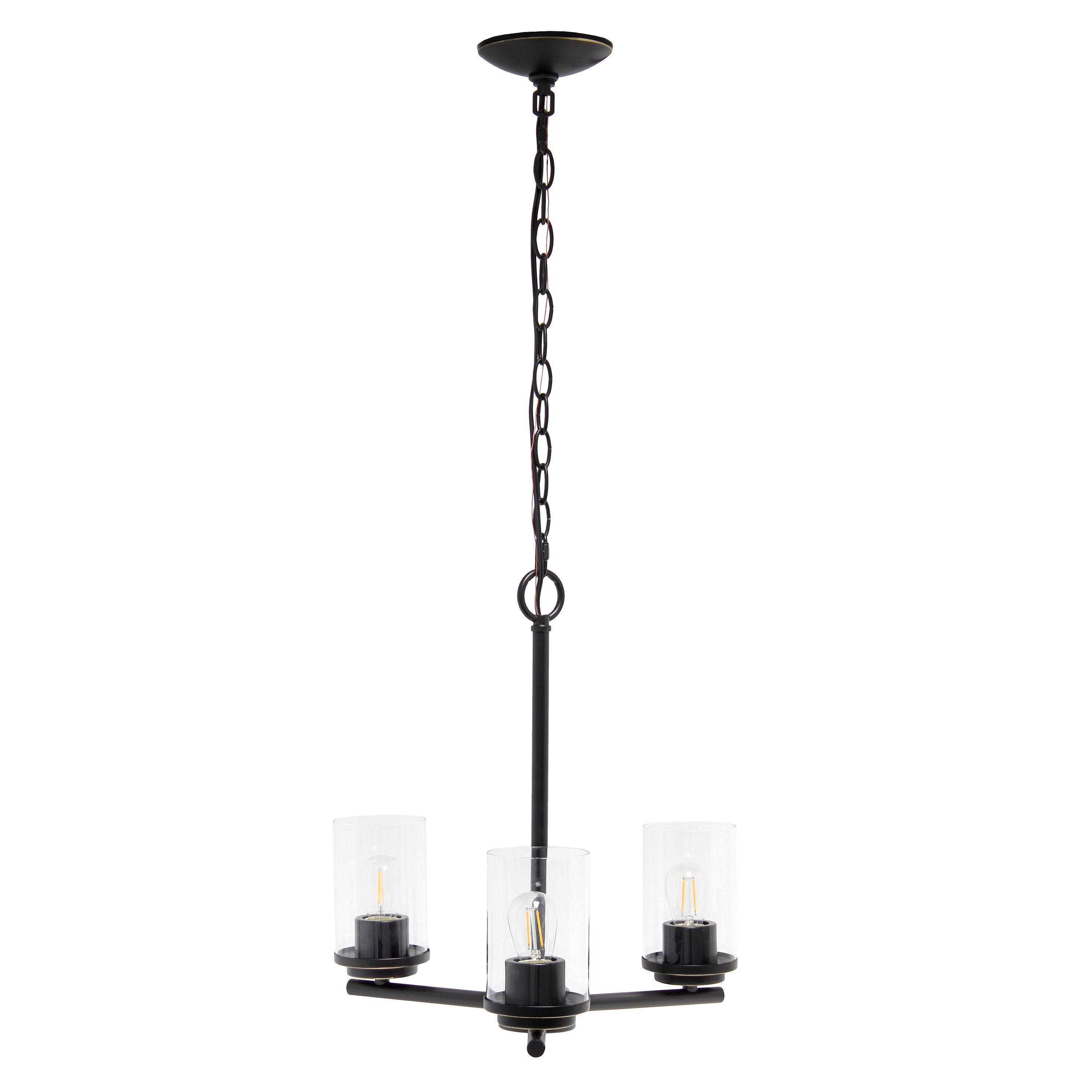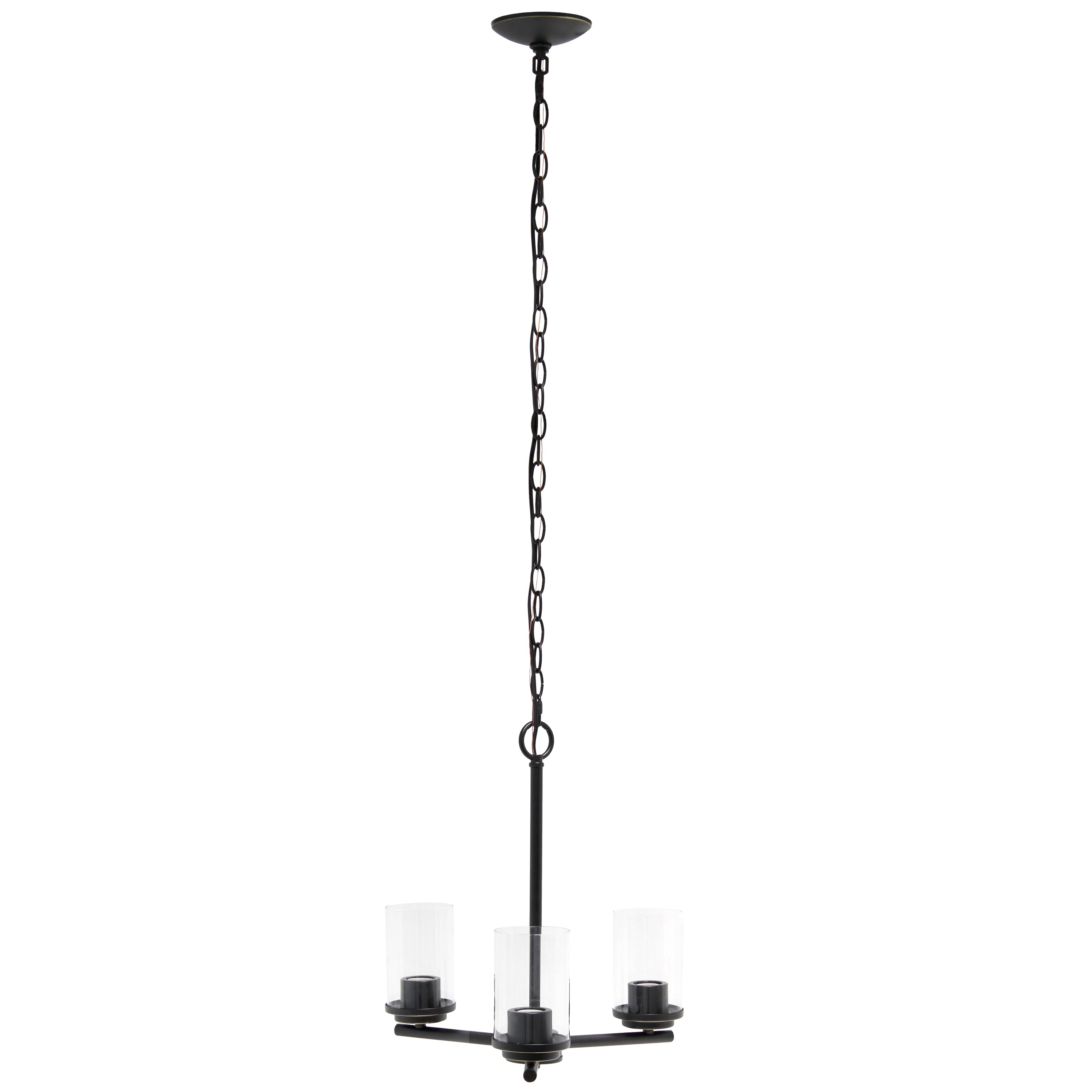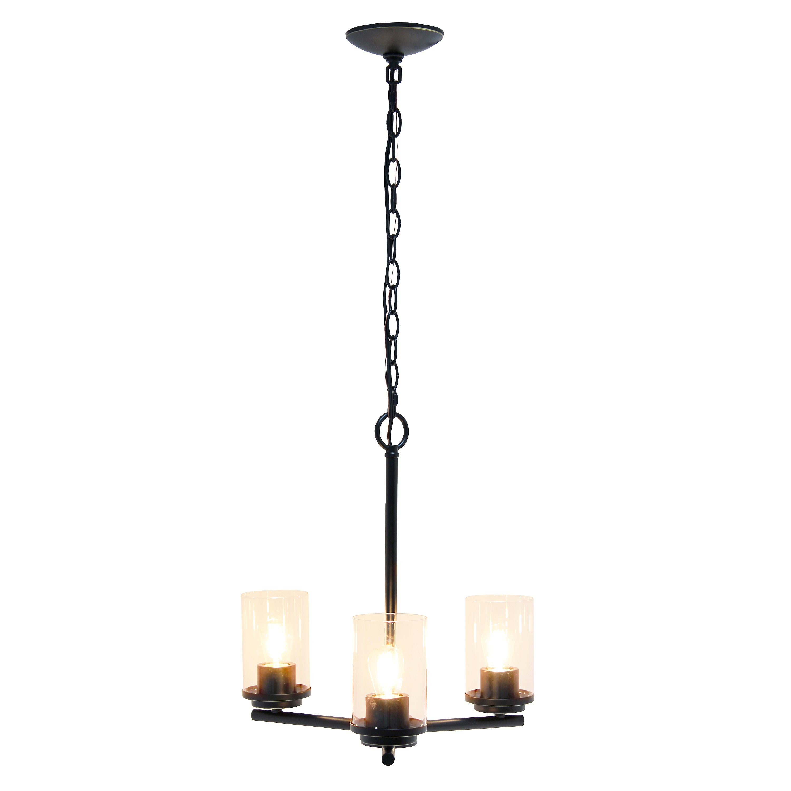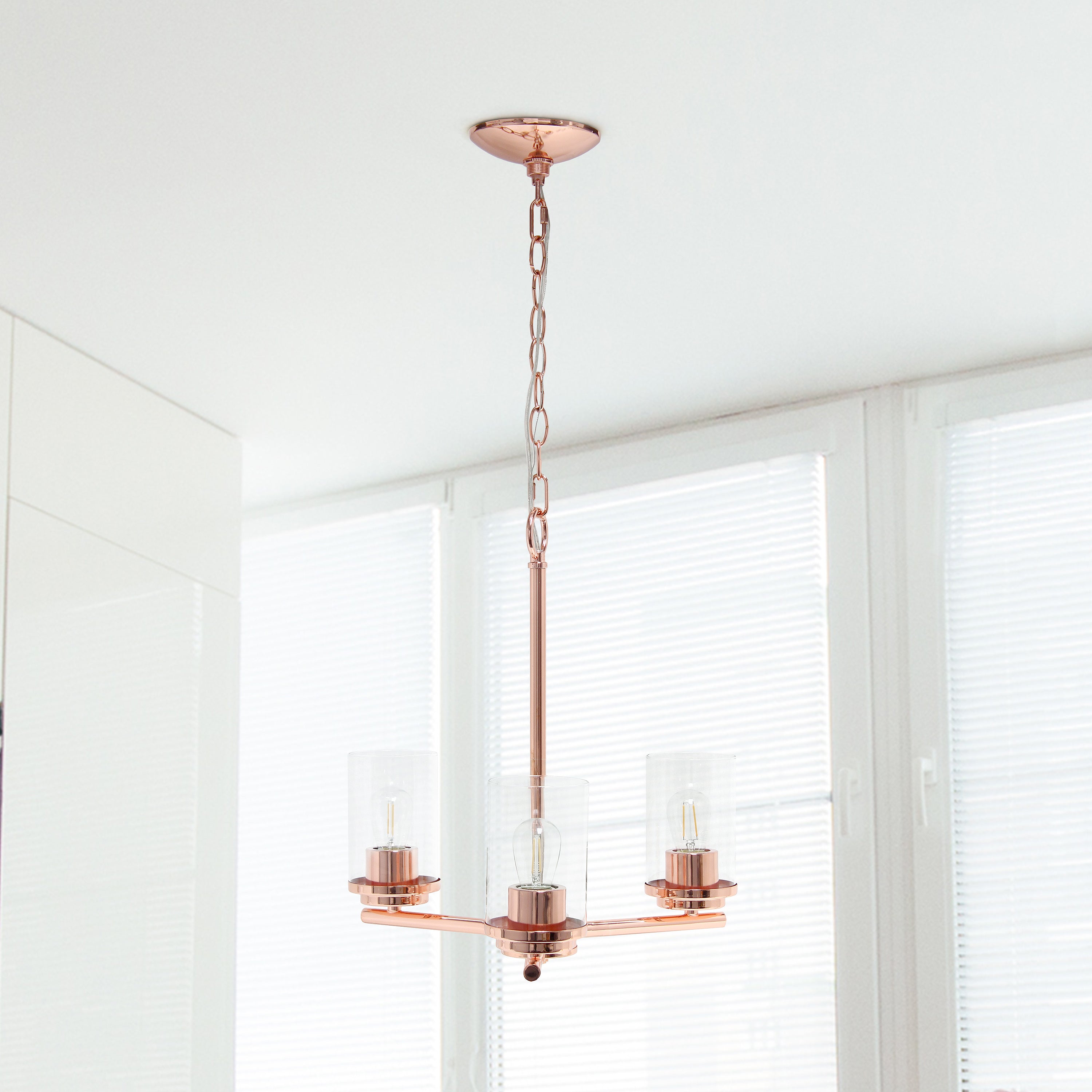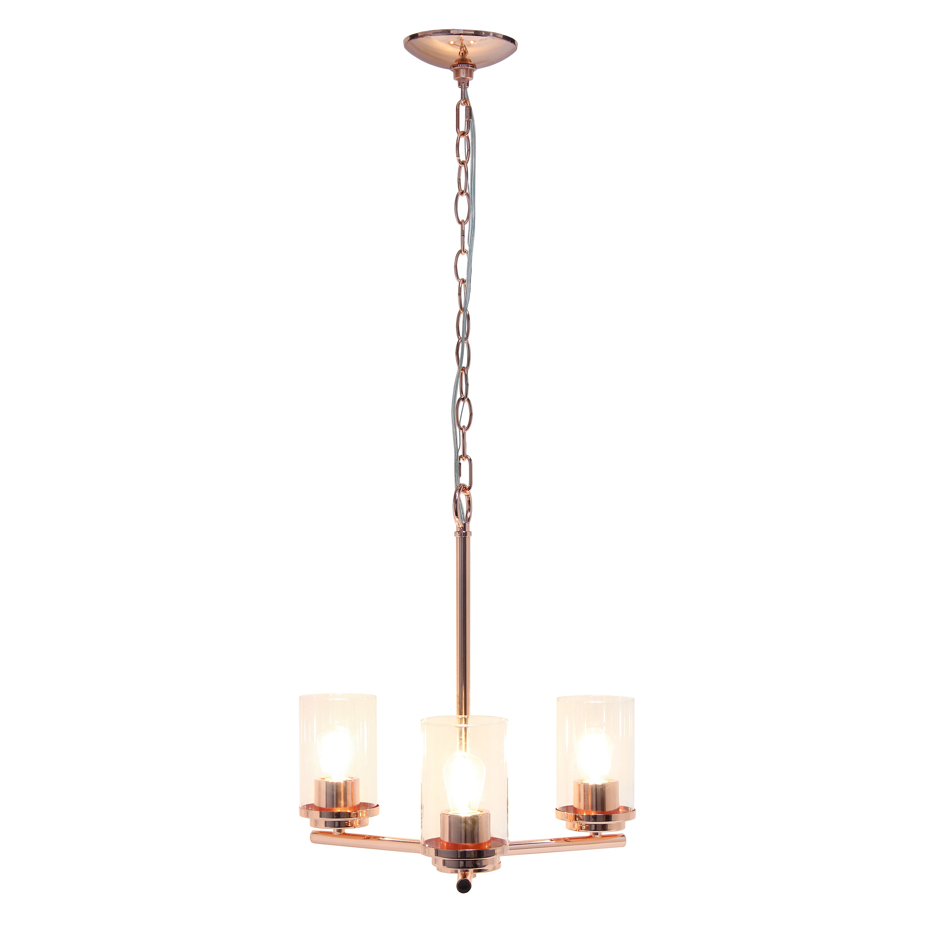 The smooth metal finish and simple clear glass shades on this three-light pendant come together and create a traditional design with a modern update. Add brightness and charm to your entryway, stairwell, dining room, bedroom, office or living room with this elegant chandelier pendant fixture!
