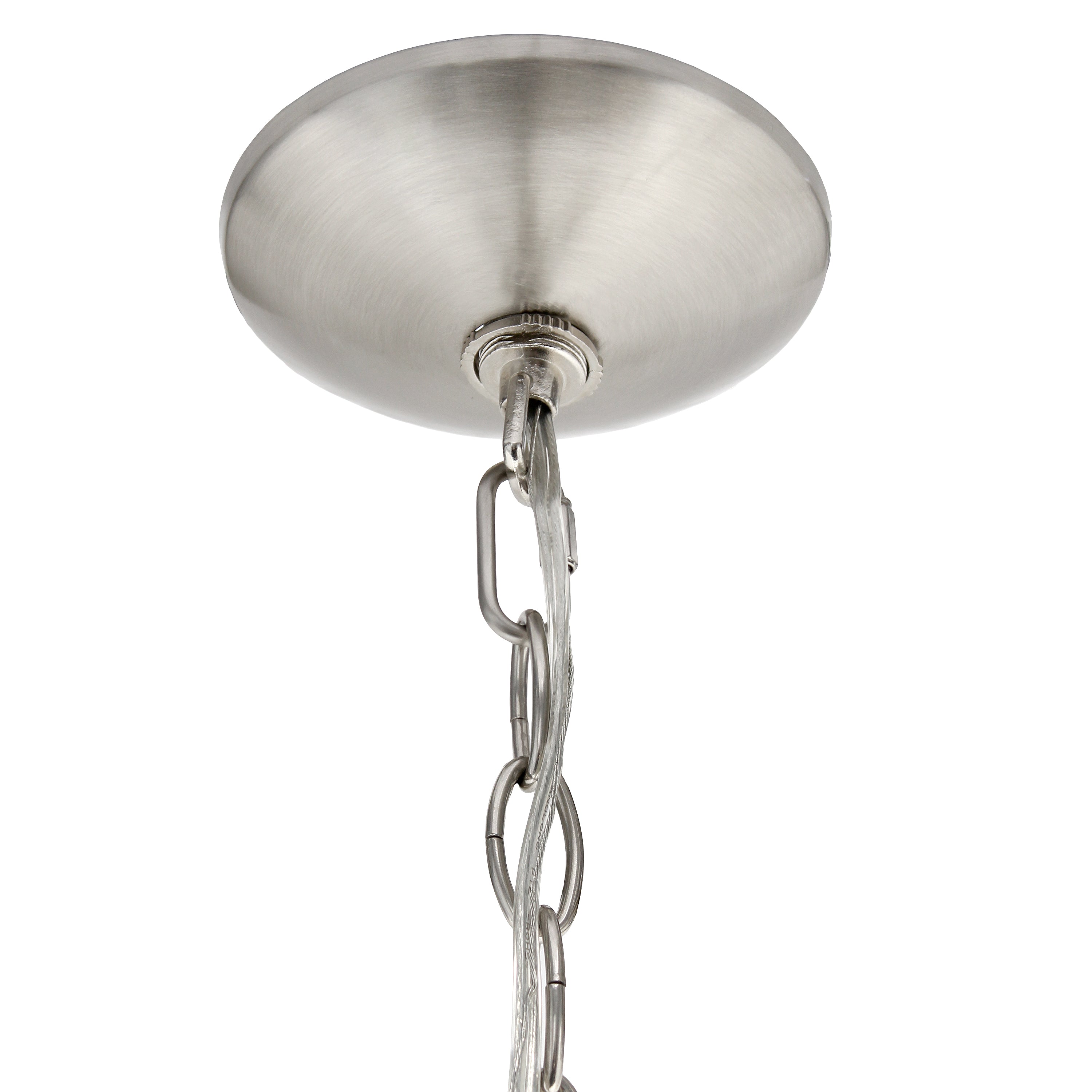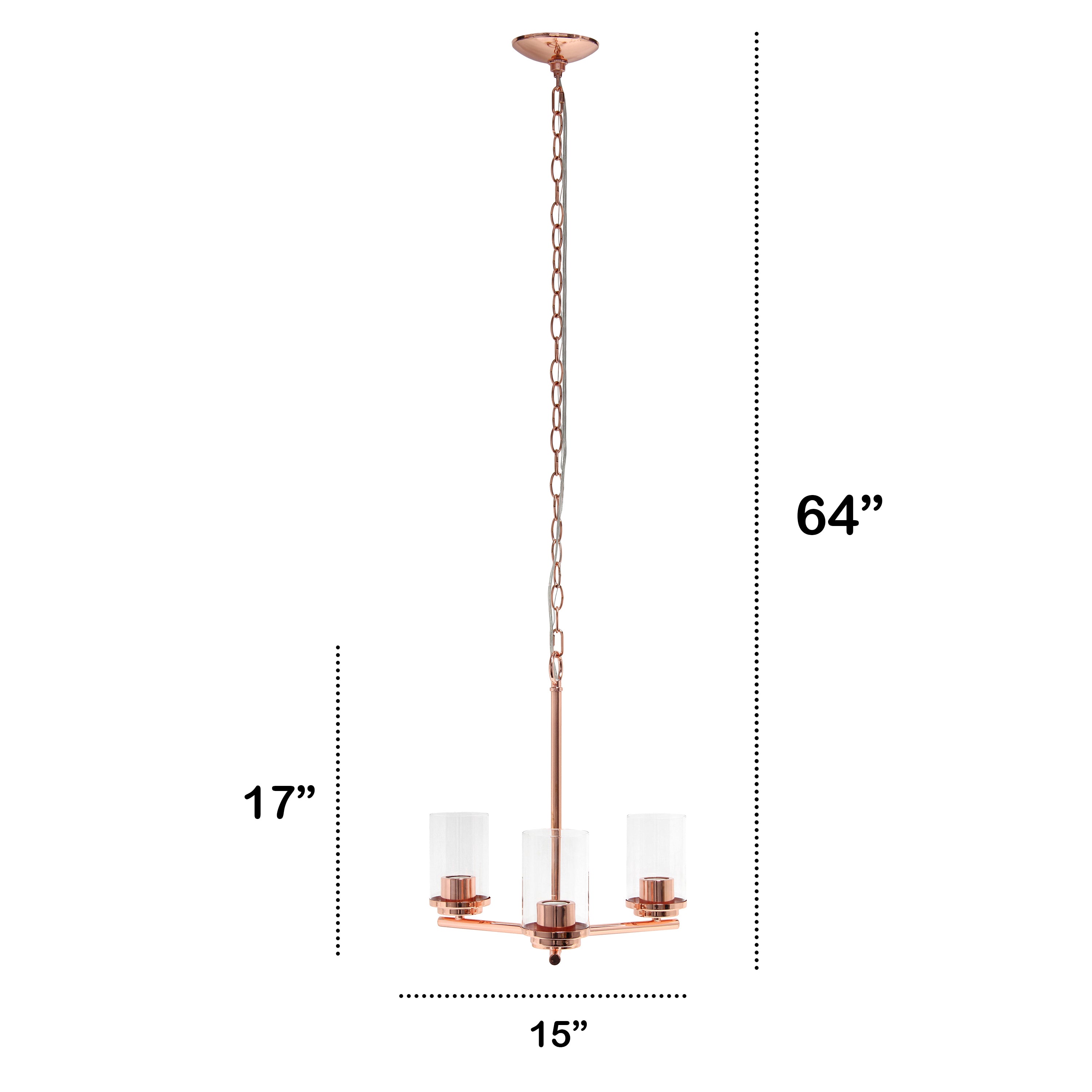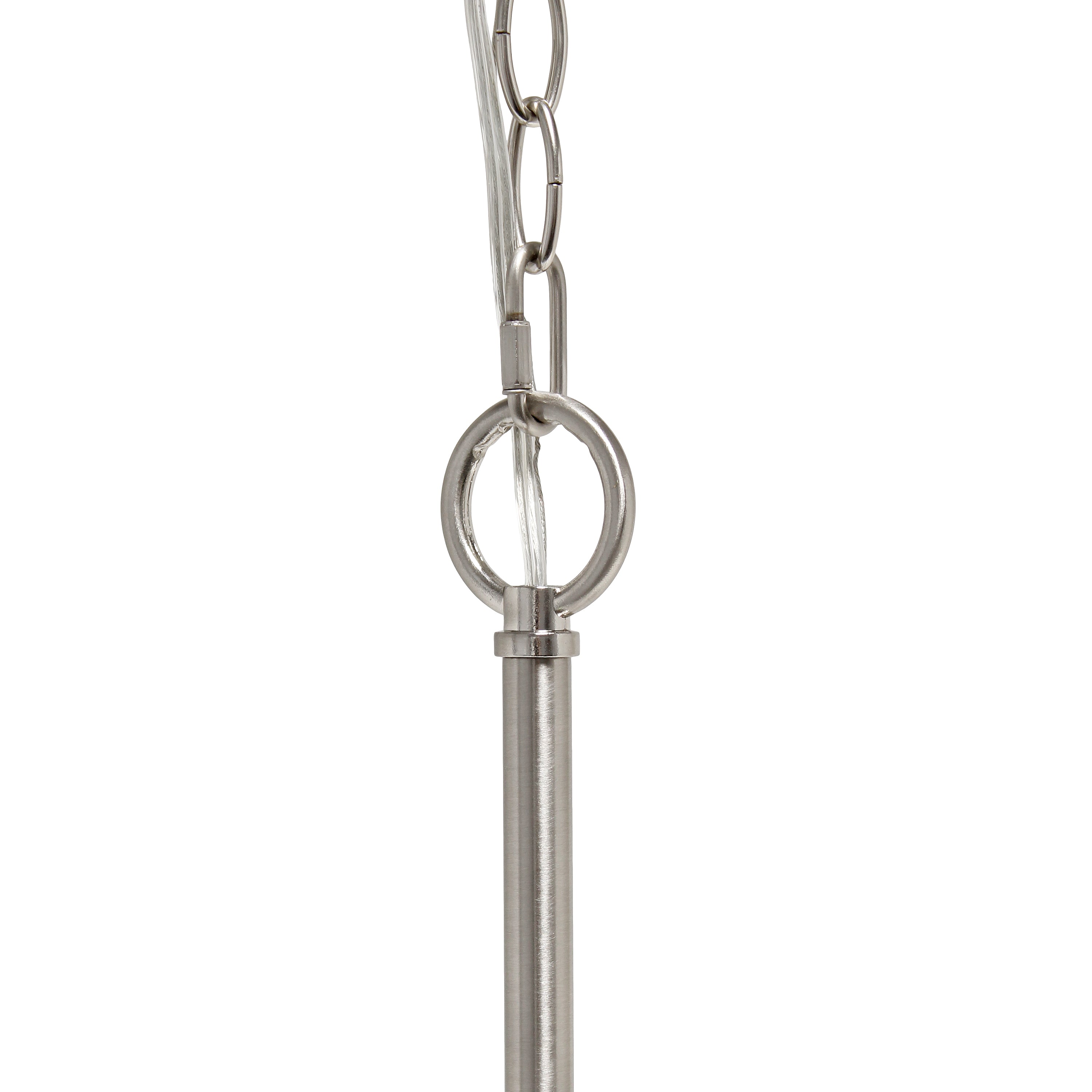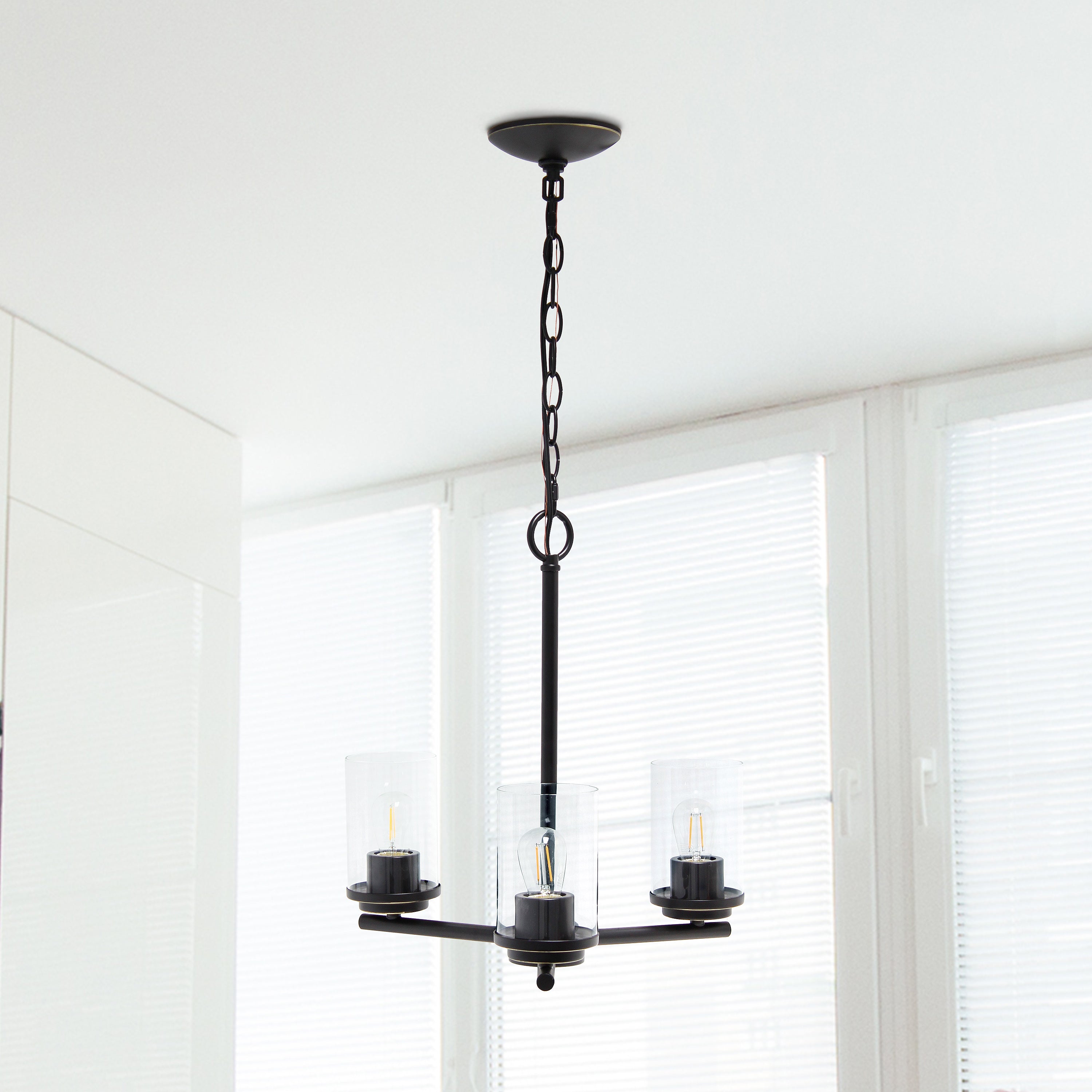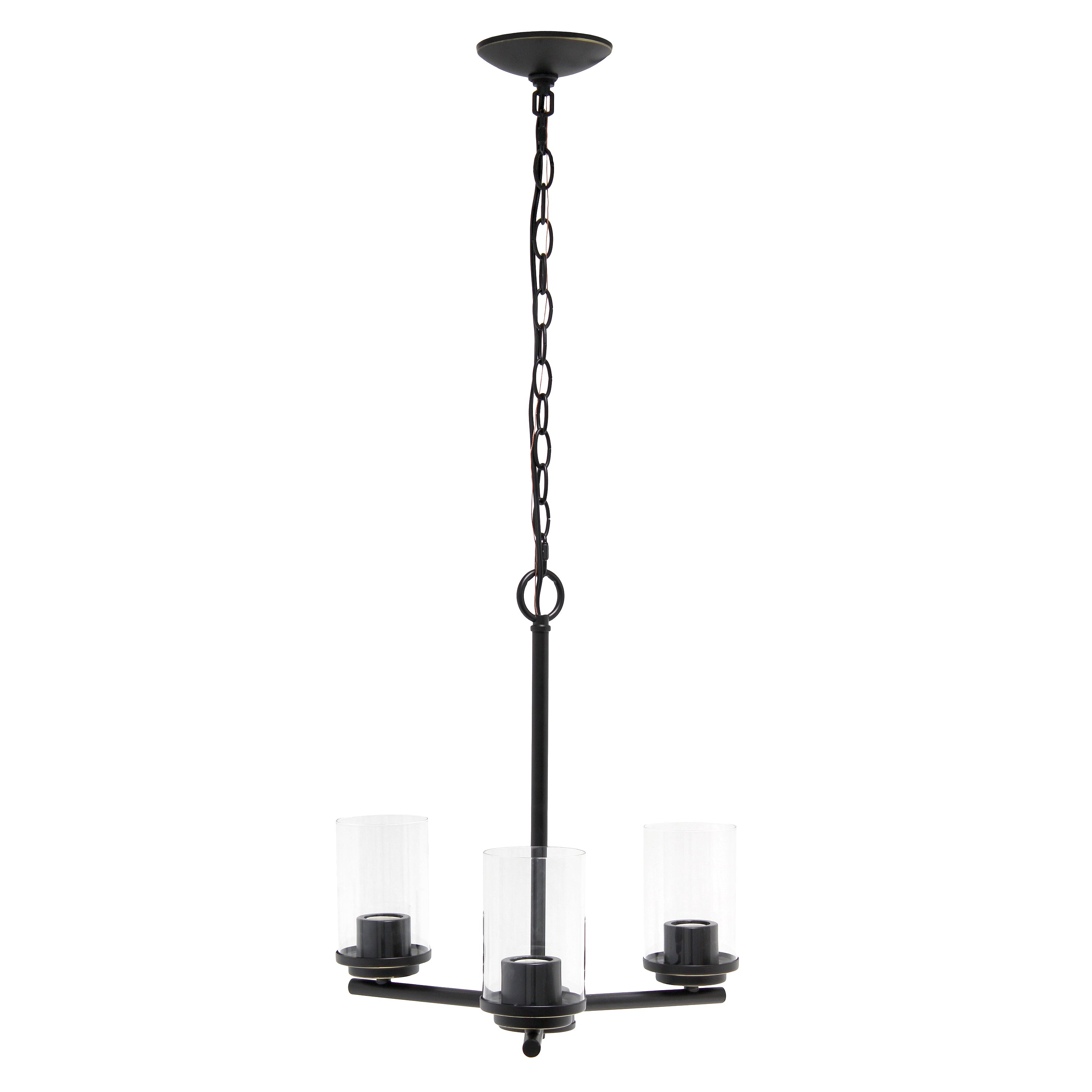 The smooth metal finish and simple clear glass shades on this three-light pendant come together and create a traditional design with a modern update. Add brightness and charm to your entryway, stairwell, dining room, bedroom, office or living room with this elegant chandelier pendant fixture!