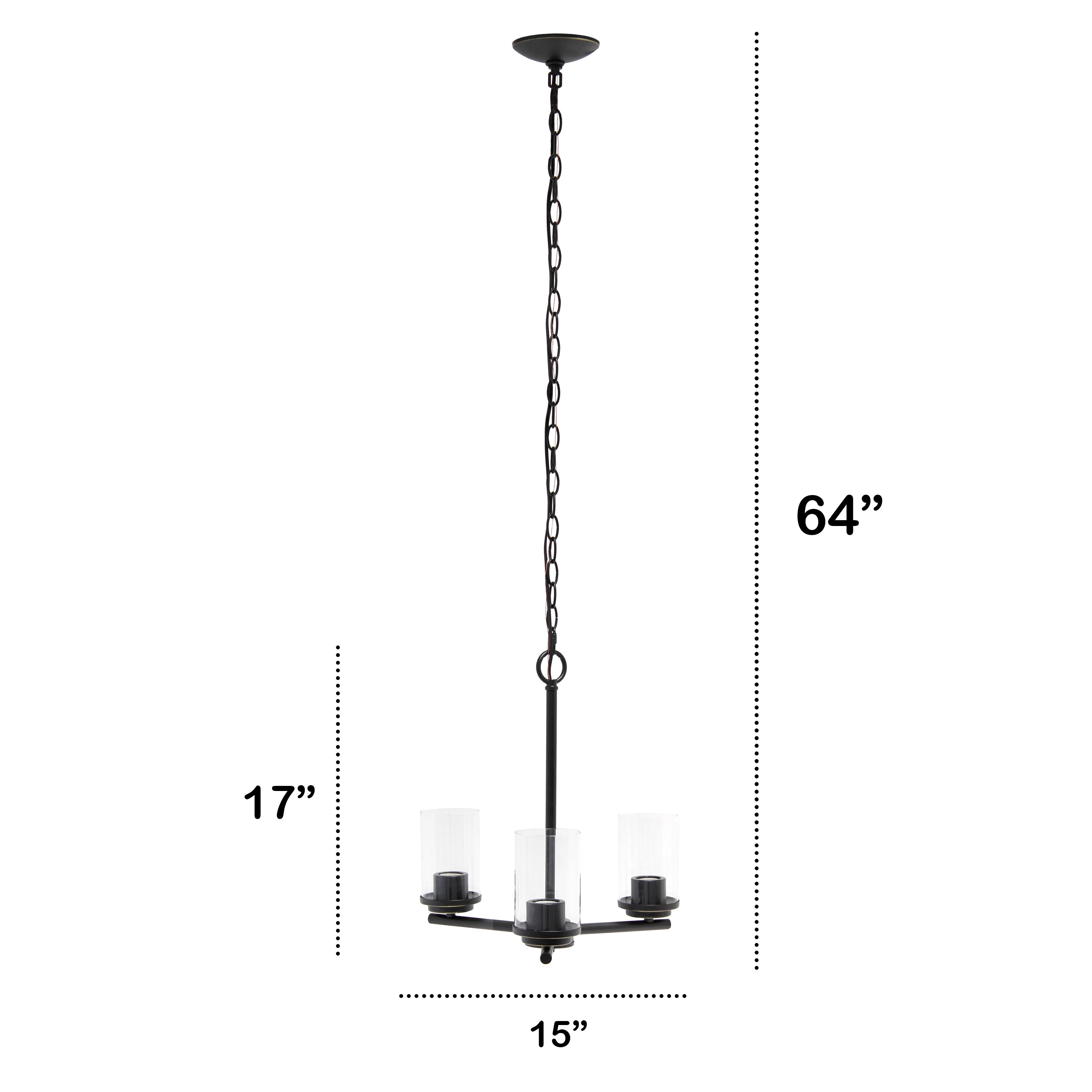 3 Light Clear Glass Metal Hanging 15" Pendant Chandelier