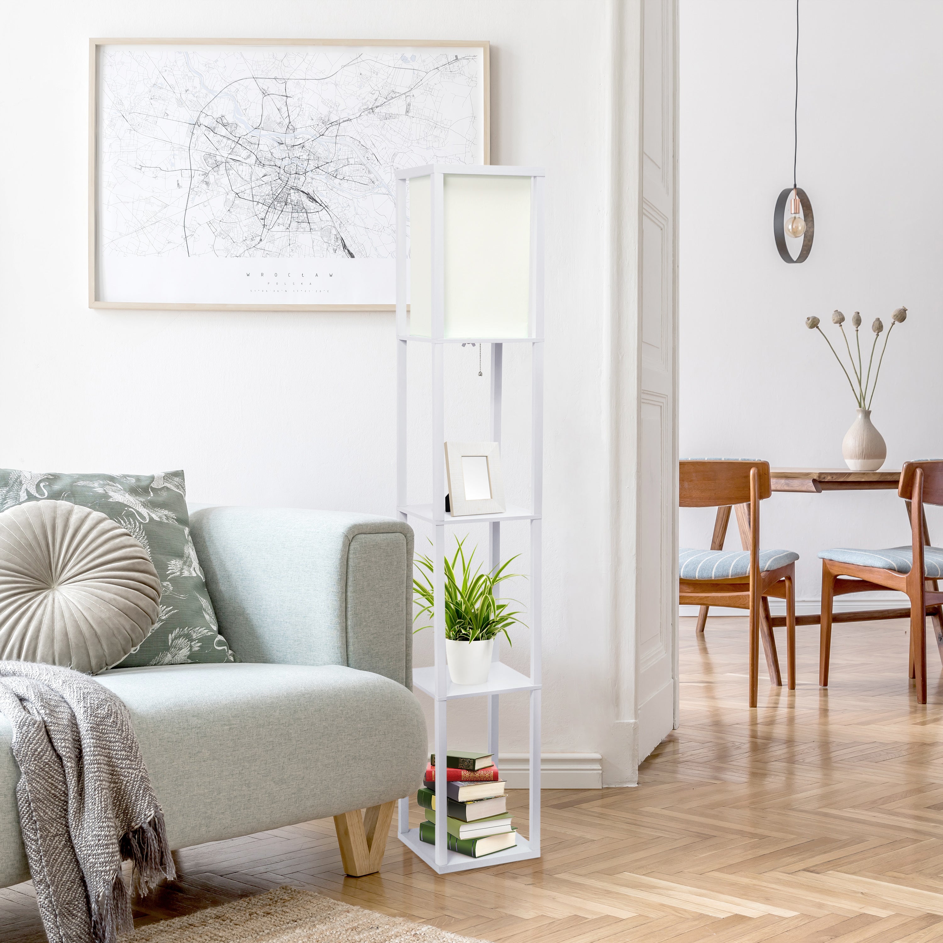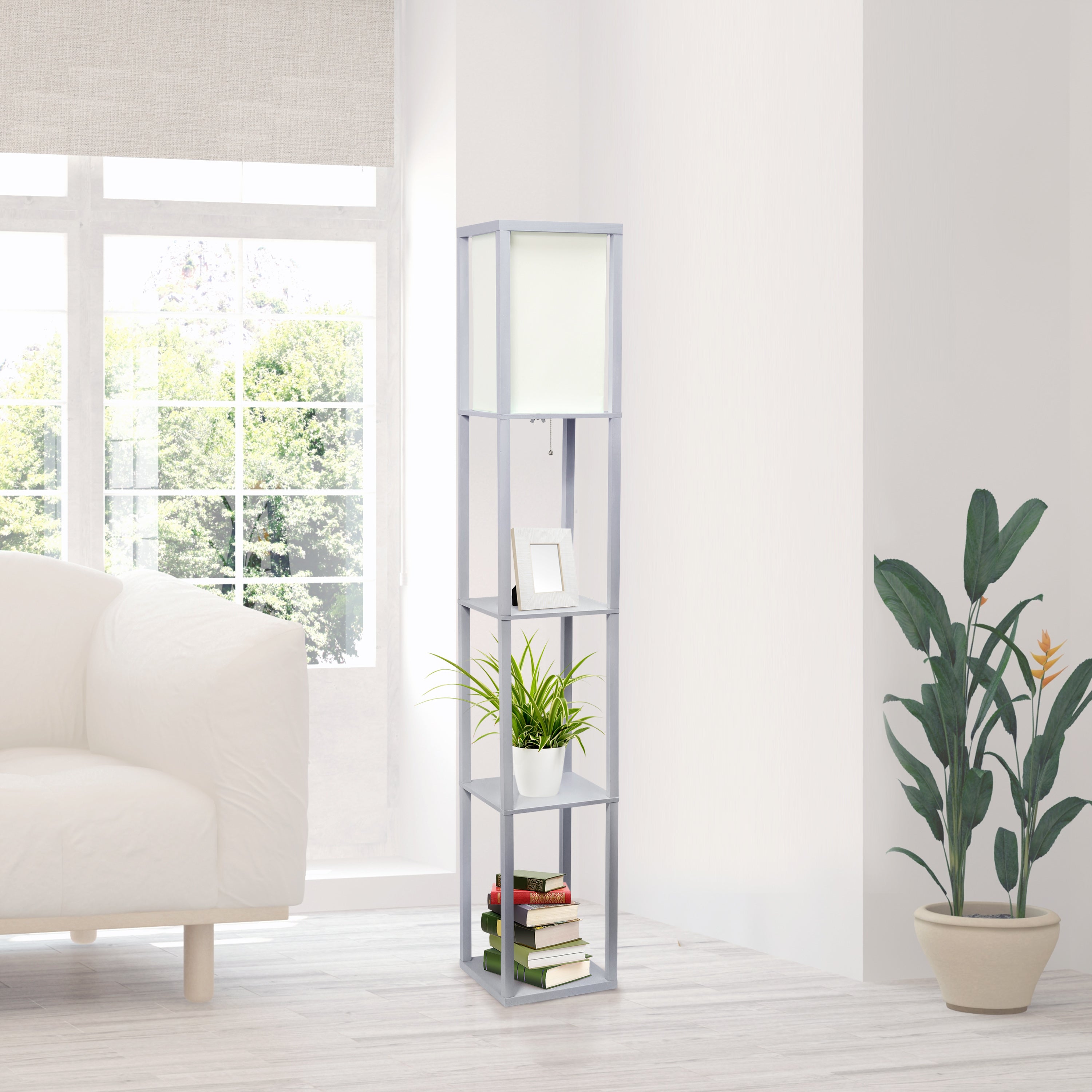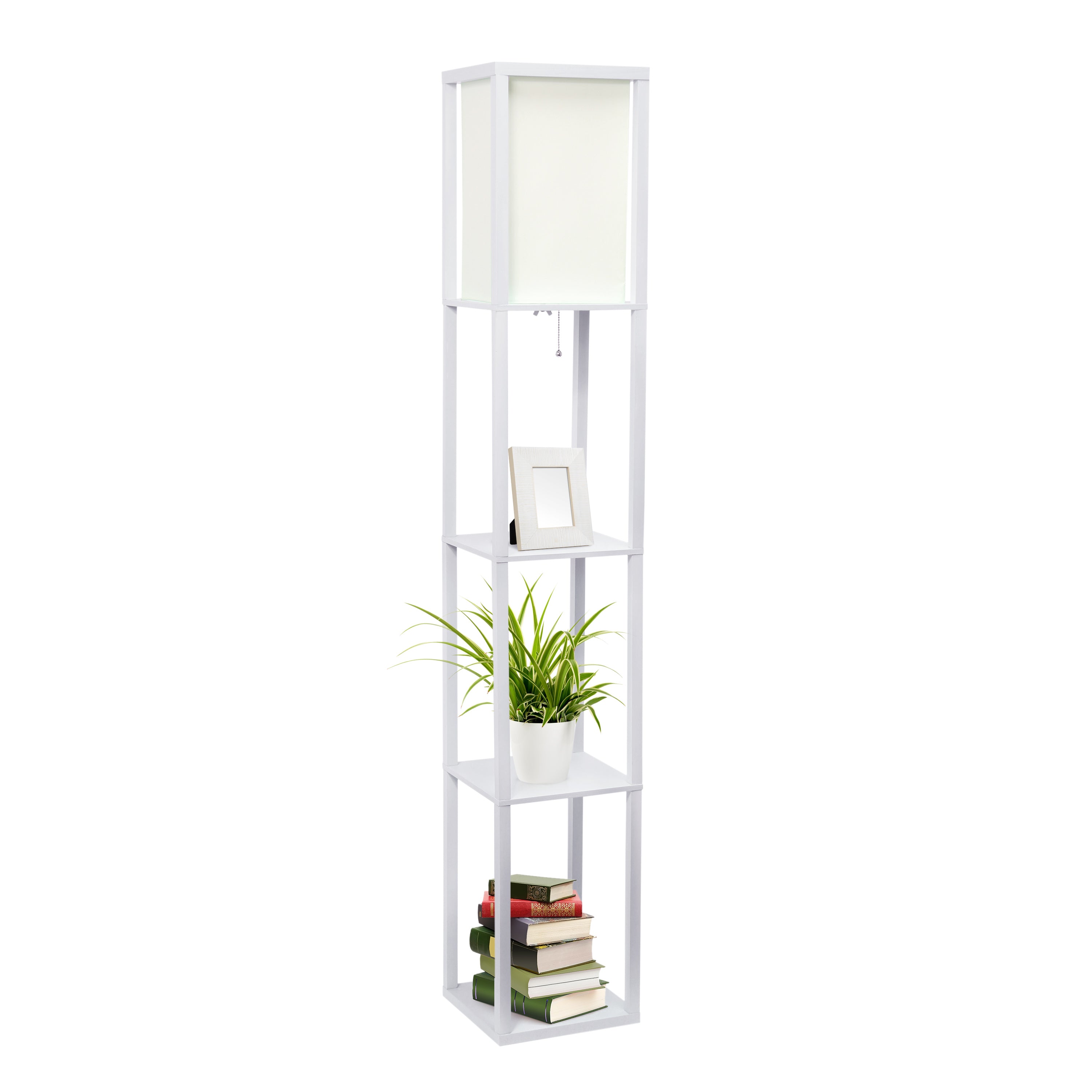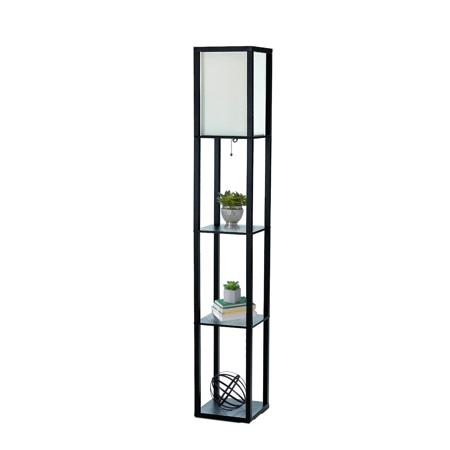 Light up your living space with this multifunctional floor shelf lamp. Display photographs or other home decor on the 3 shelves while the linen lamp shade casts a soft, warm glow throughout your room. Versatility and style at its best, this floor lamp will add sophistication to any home's decor.
