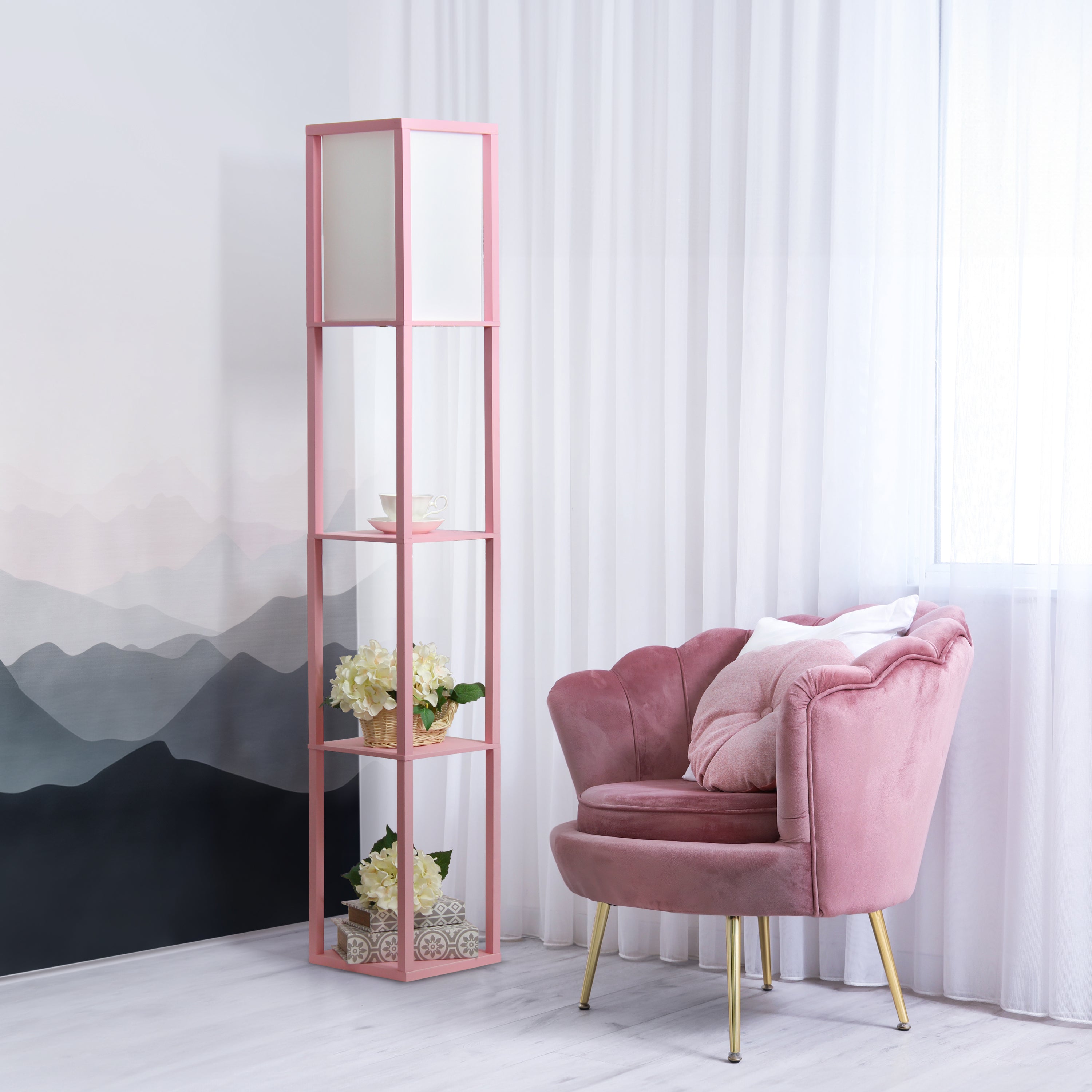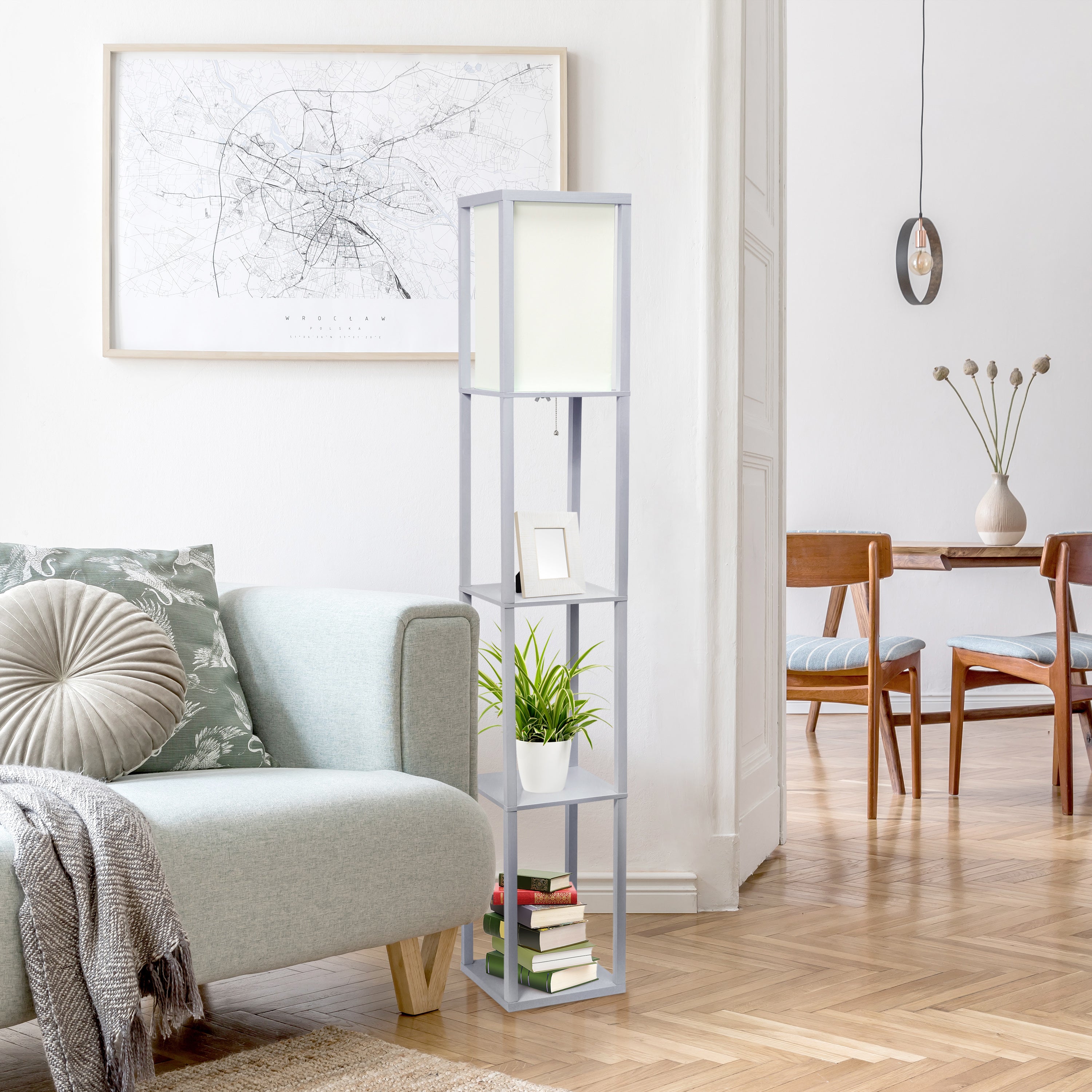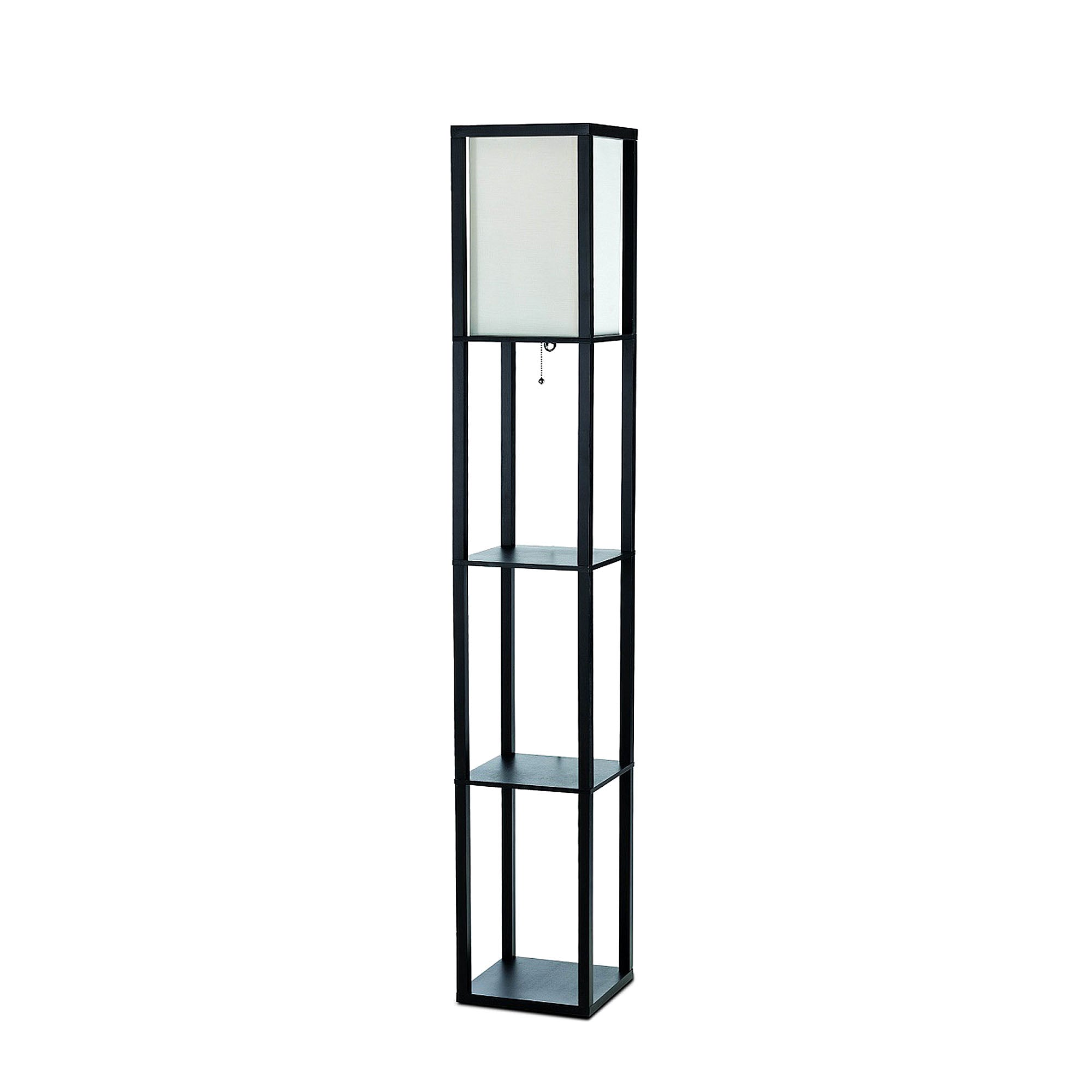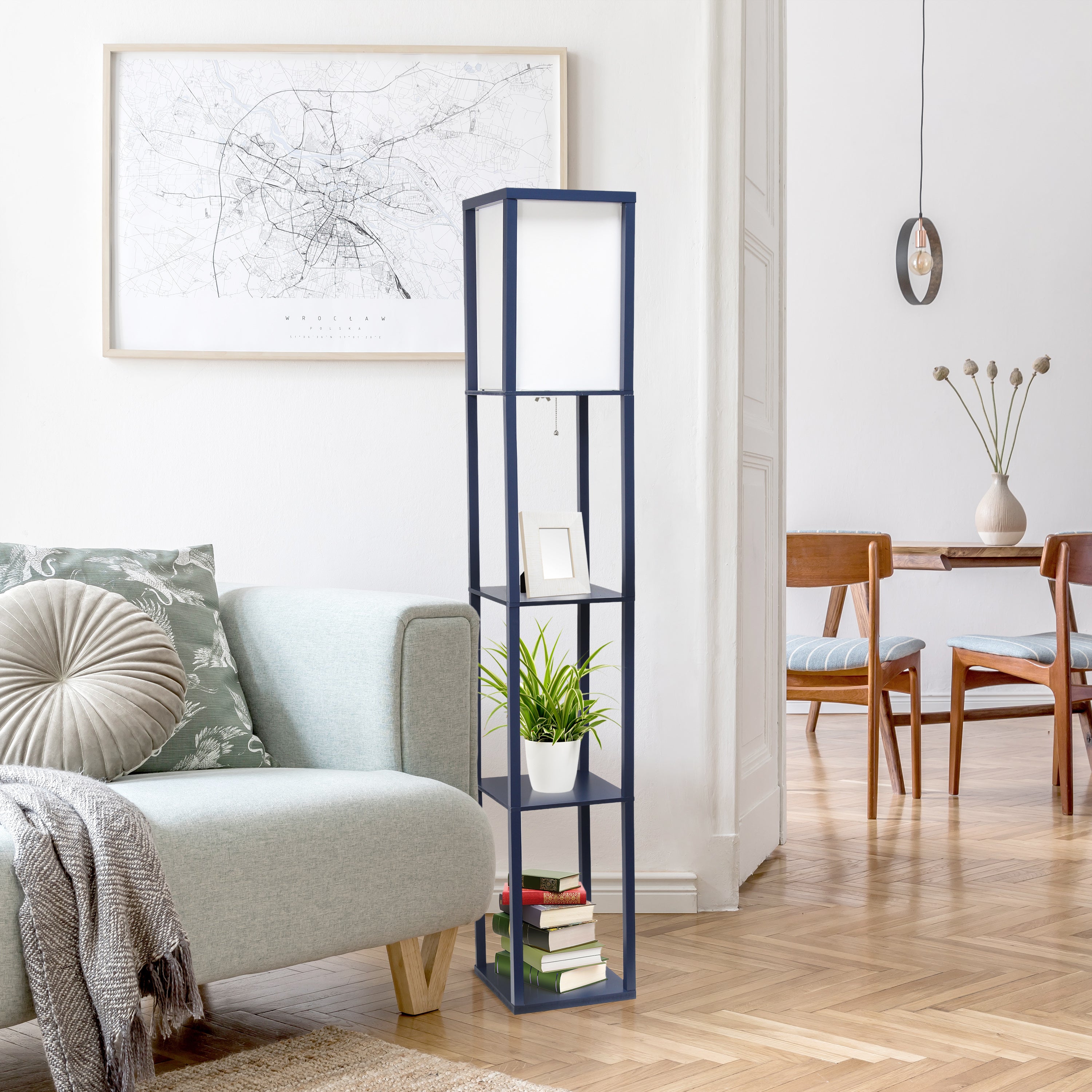 Light up your living space with this multifunctional floor shelf lamp. Display photographs or other home decor on the 3 shelves while the linen lamp shade casts a soft, warm glow throughout your room. Versatility and style at its best, this floor lamp will add sophistication to any home's decor.