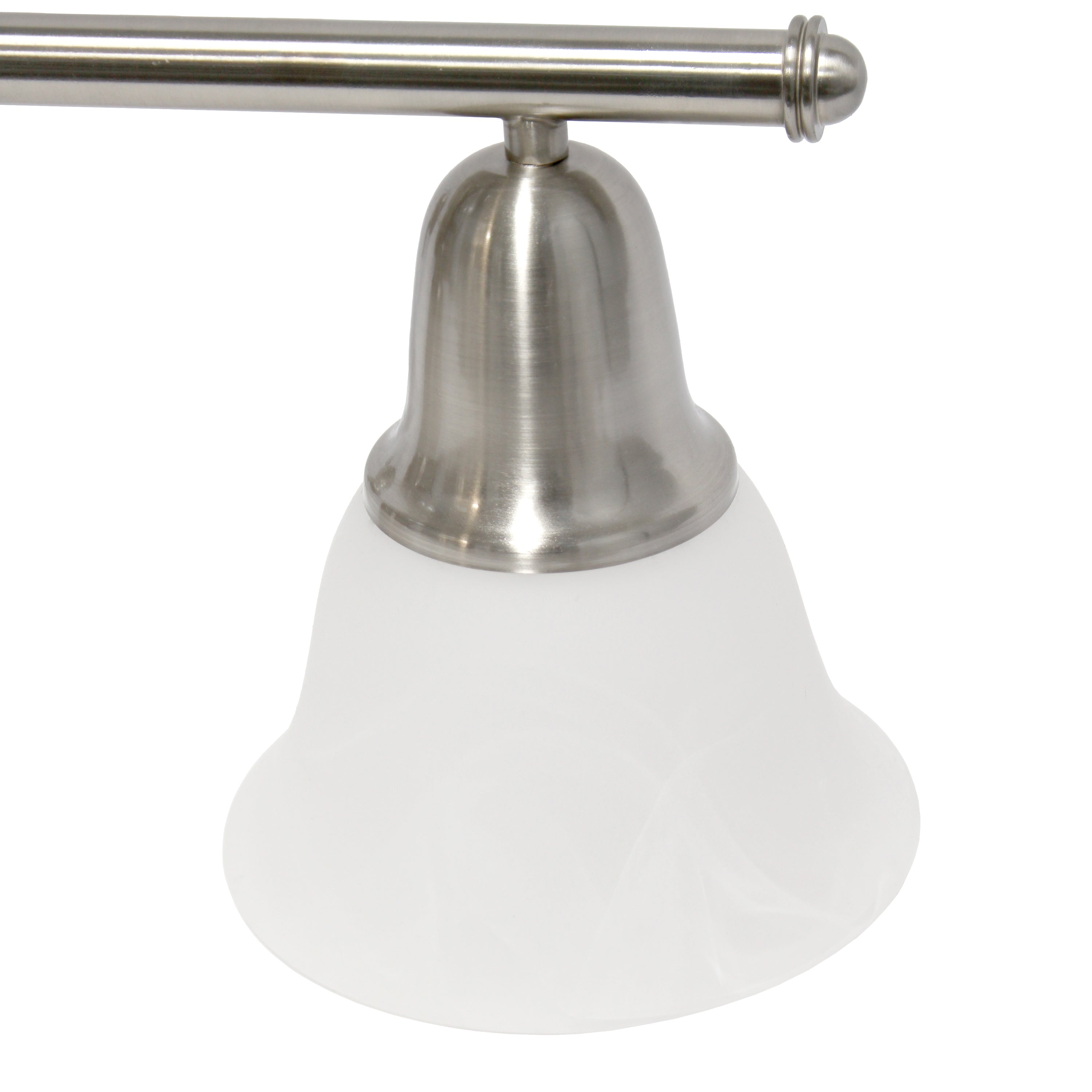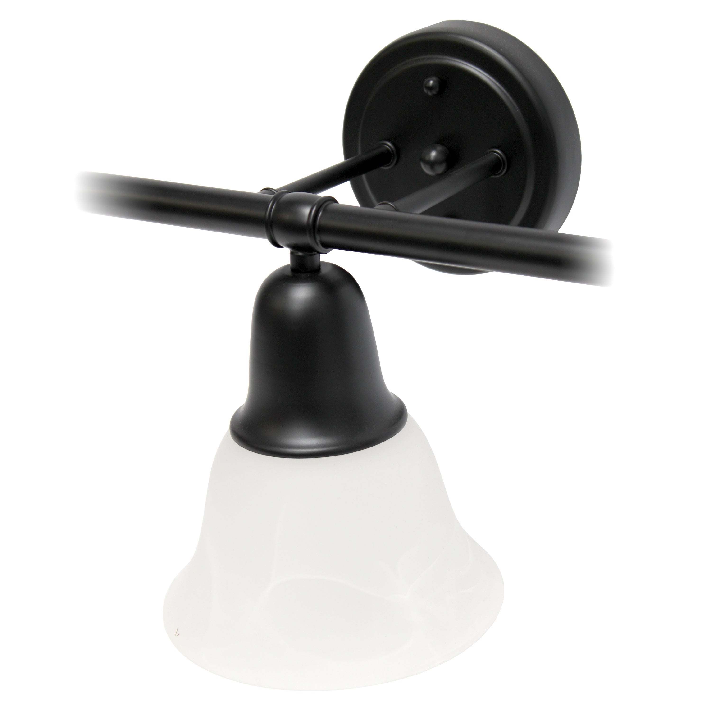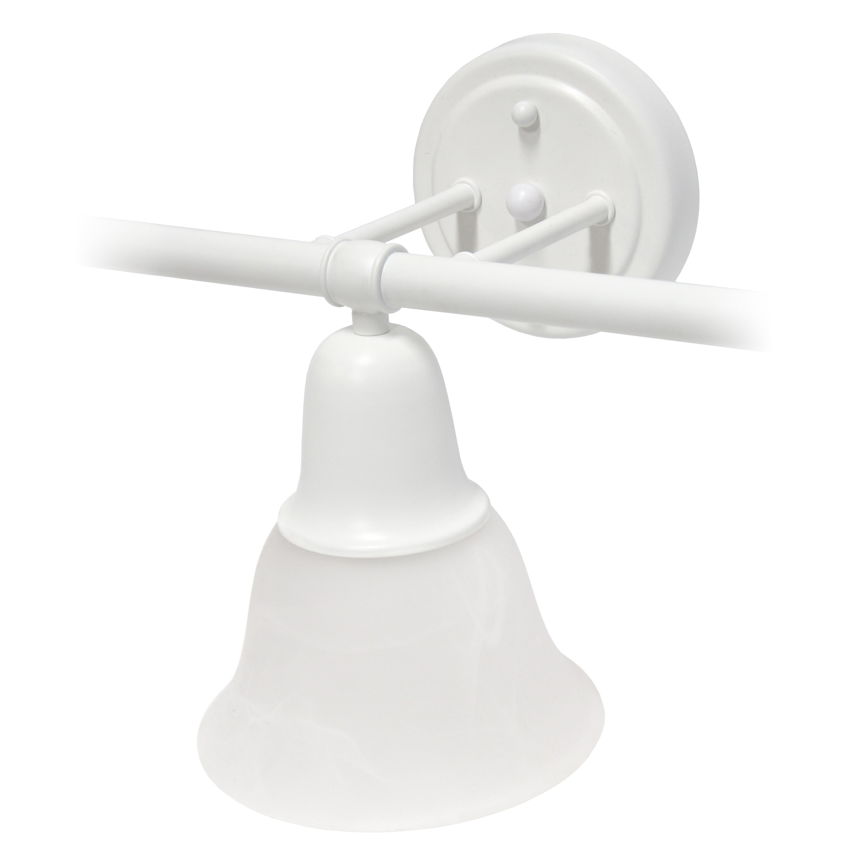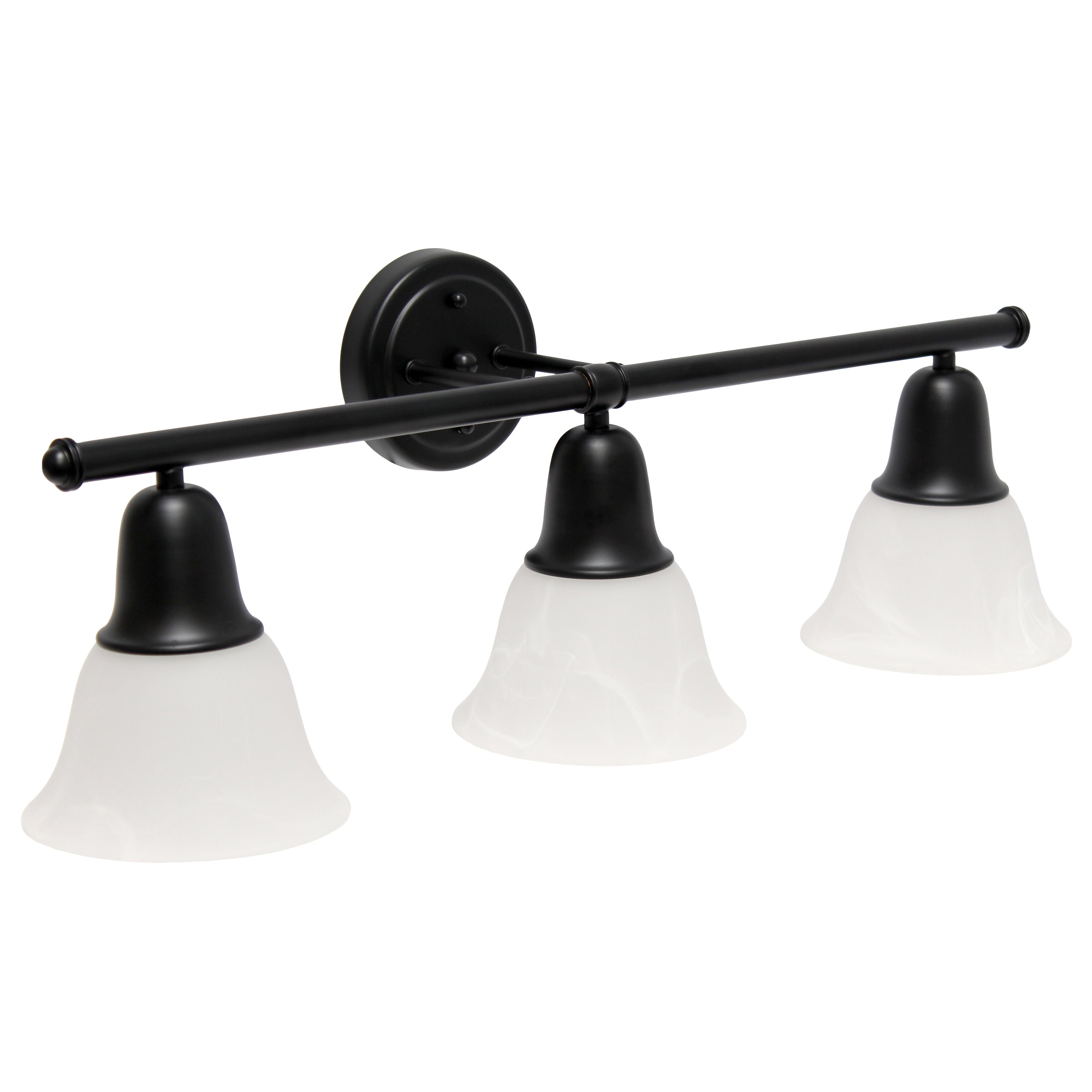 This lovely three light vanity fixture has been carefully designed to serve both your lighting and decor needs in a sophisticated and contemporary manner. Three identical alabaster white shades are held in place on a straight metal bar by matching metal socket holders in the finish of your choice. Perfect for your bathroom, hallway, bedroom, foyer, or above your vanity!